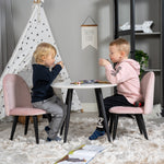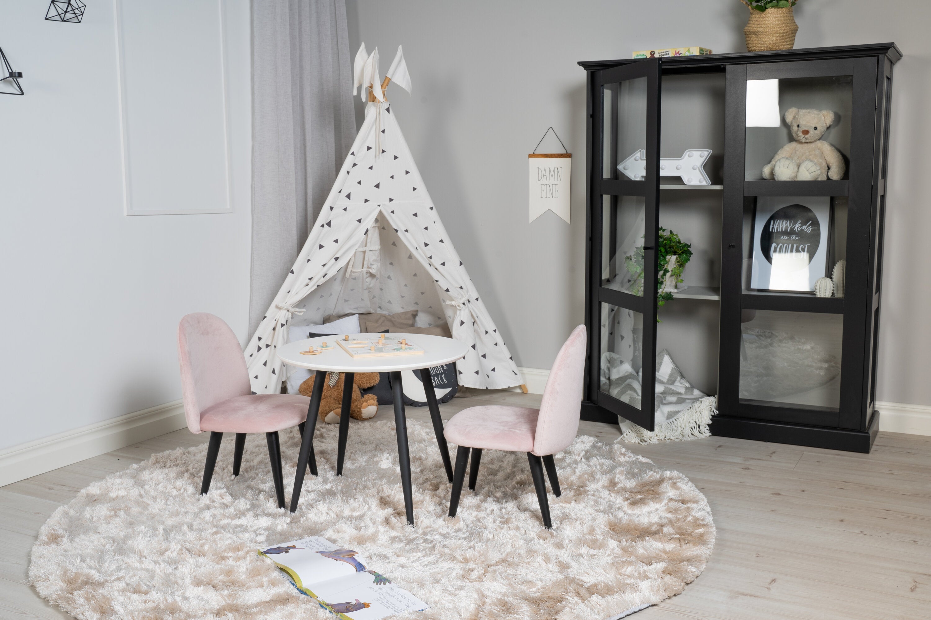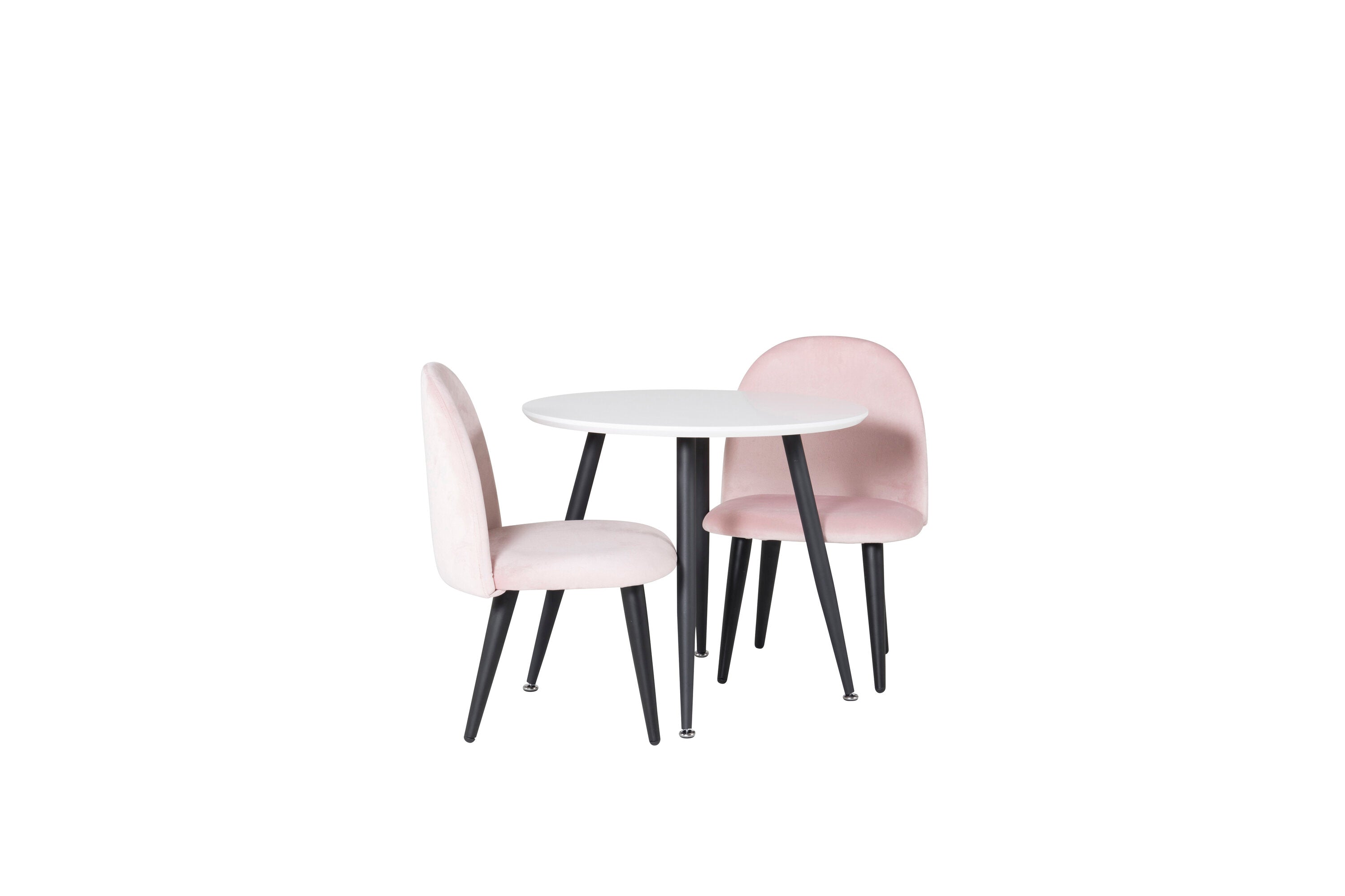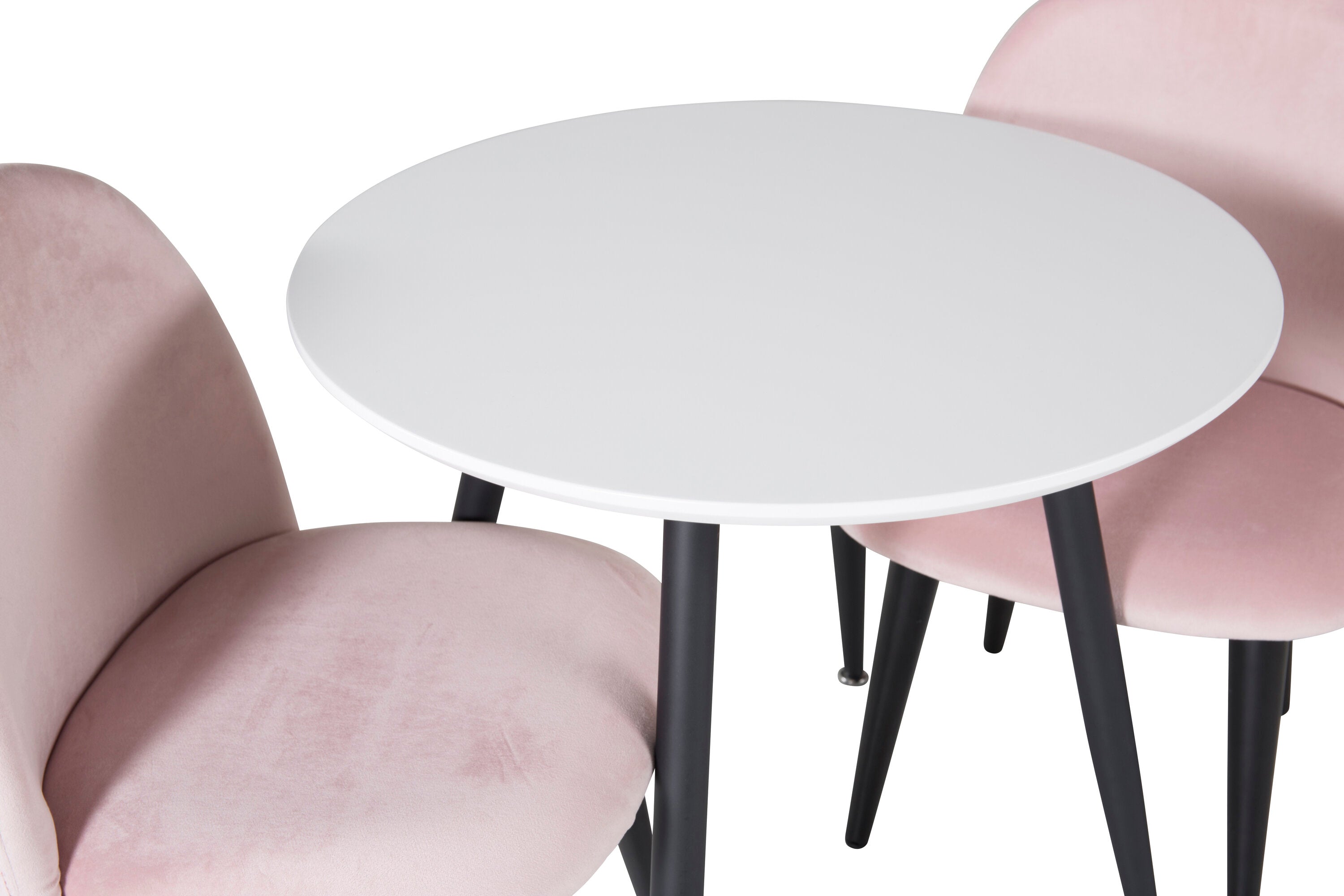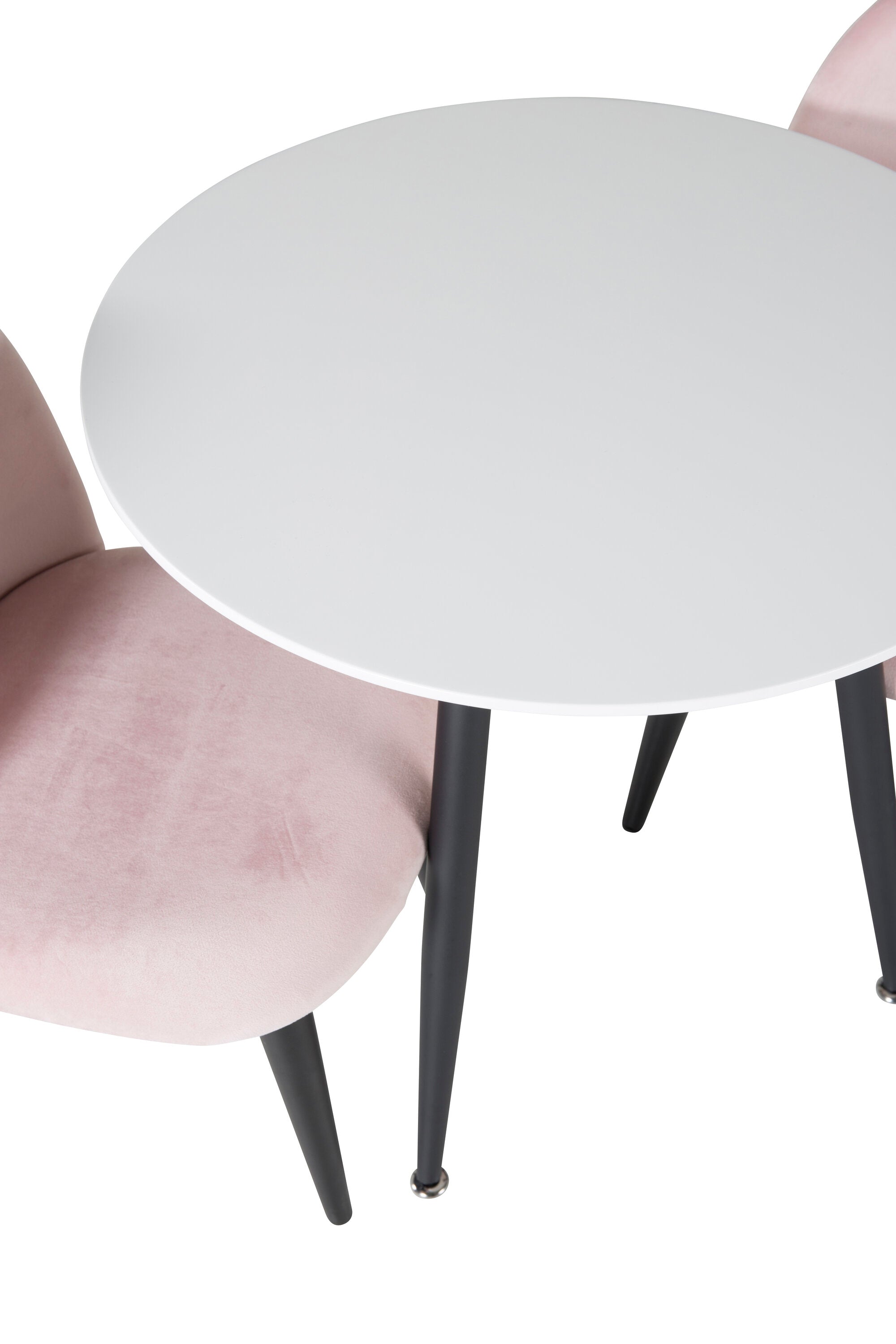 Plaza kulatý jídelní stůl ø60 XXS - bílá / černá + sametová jídelní židle XXS - růžová V