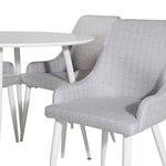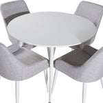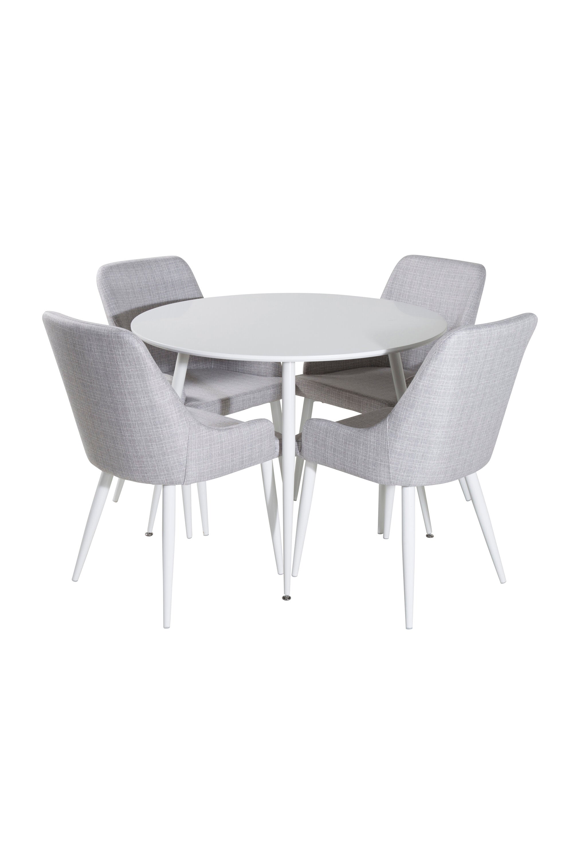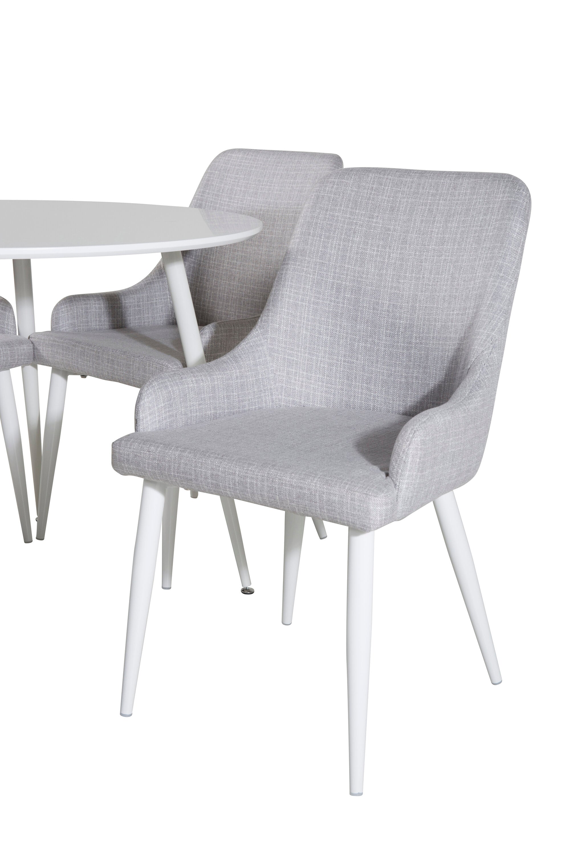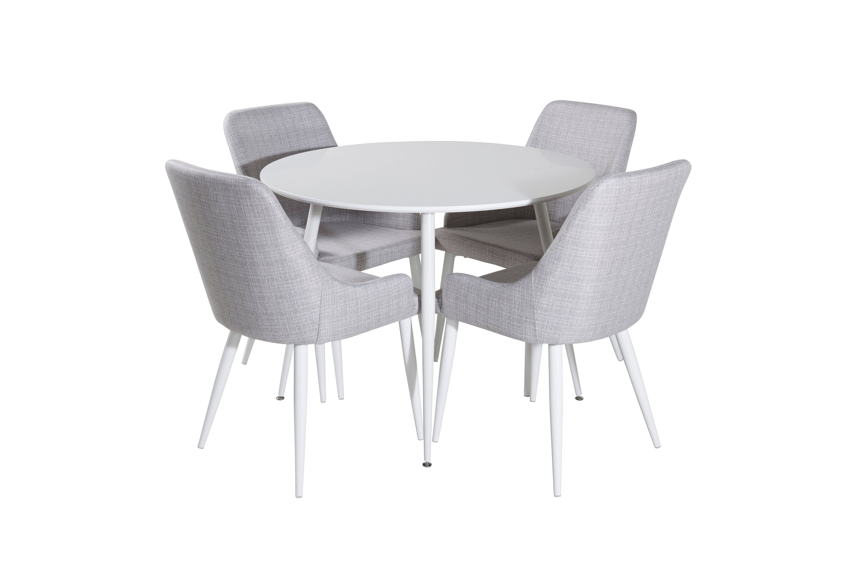 Plaza Kulatý stůl 100 cm - Bílá deska / Bílé nohy+Plaza Jídelní židle - Bílé nohy - Světle šedá Fabric_4