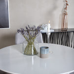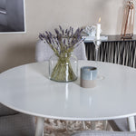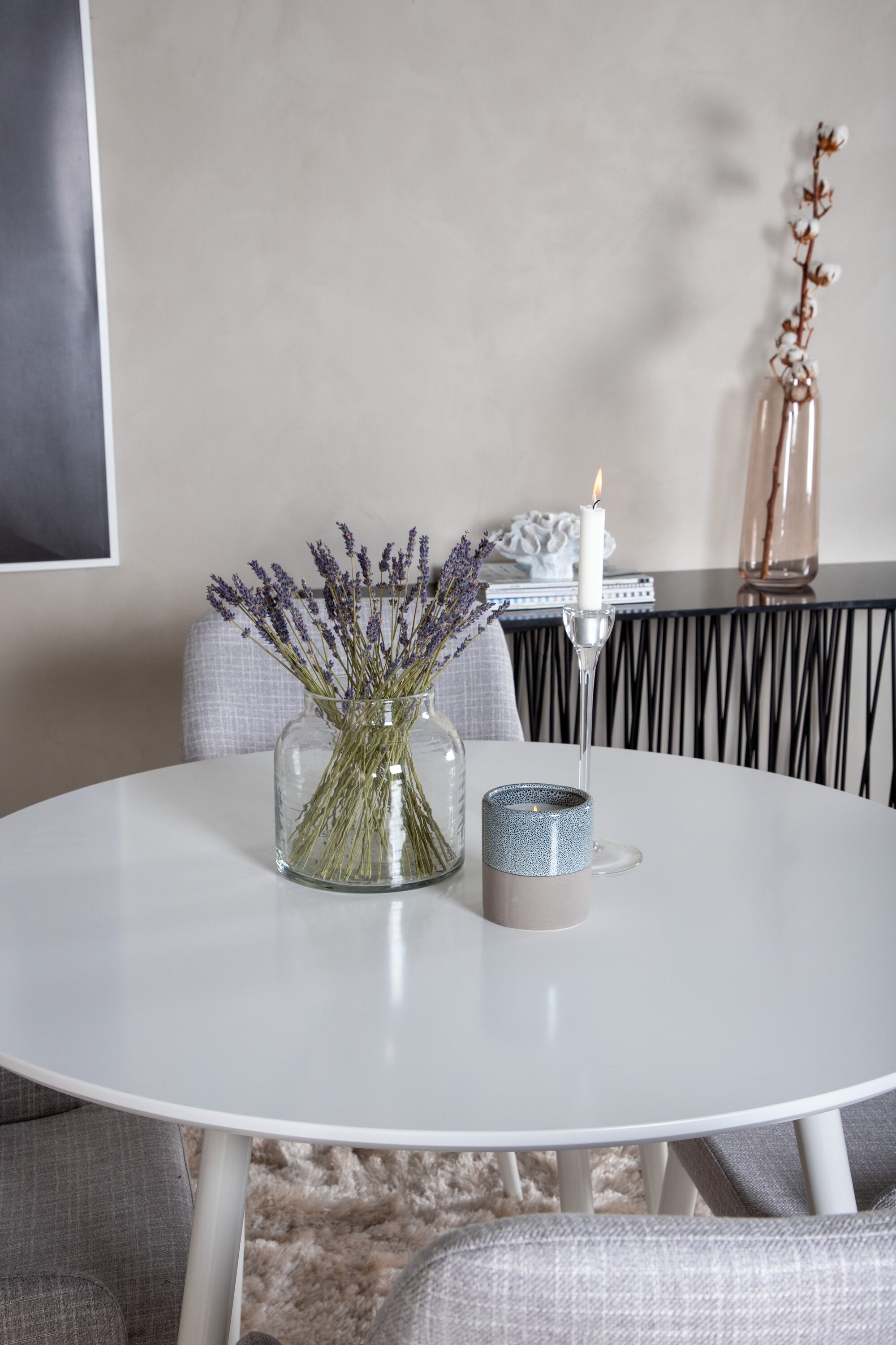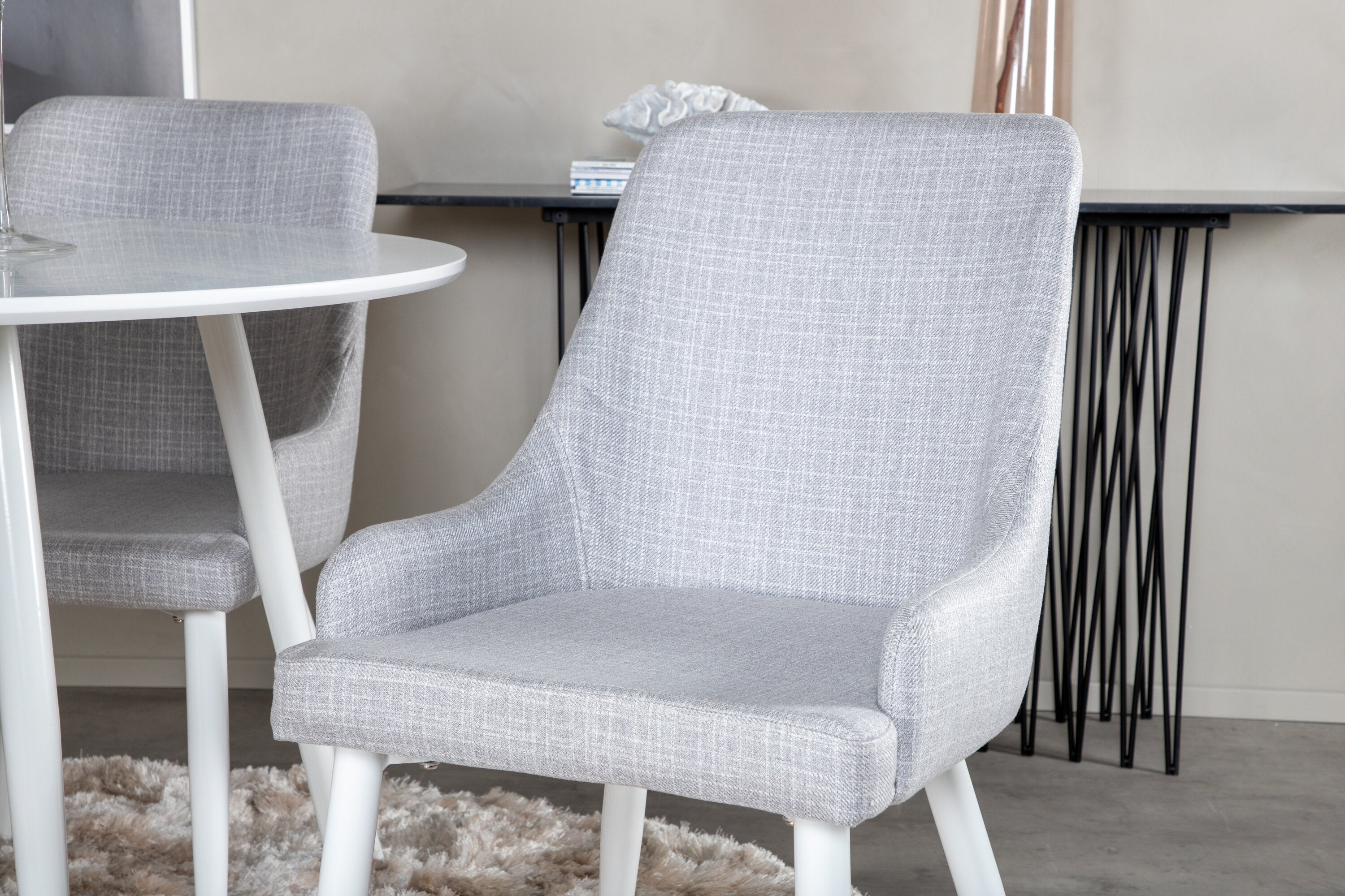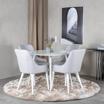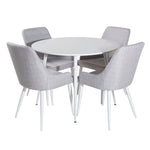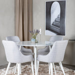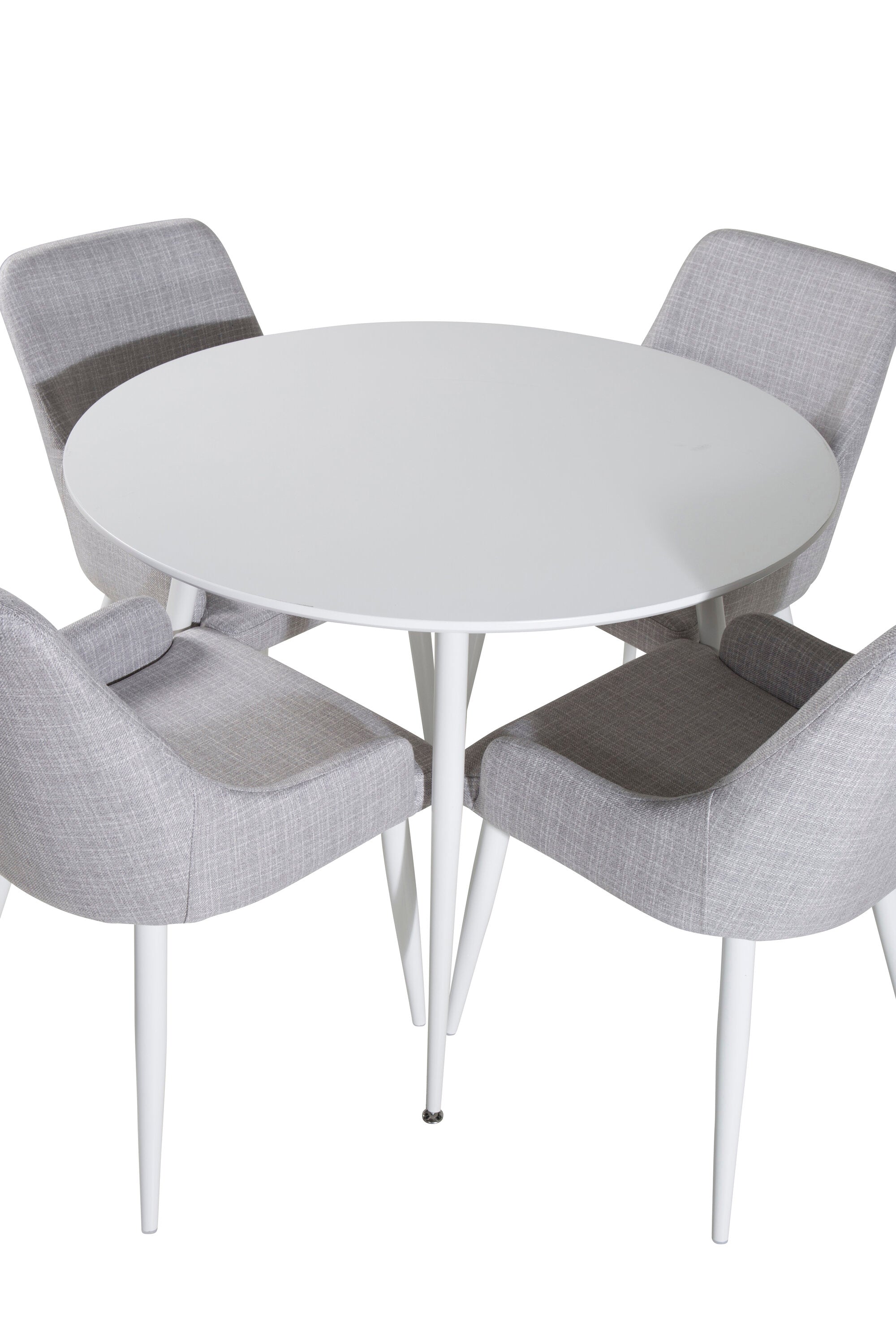Plaza Kulatý stůl 100 cm - Bílá deska / Bílé nohy+Plaza Jídelní židle - Bílé nohy - Světle šedá Fabric_4