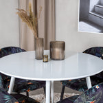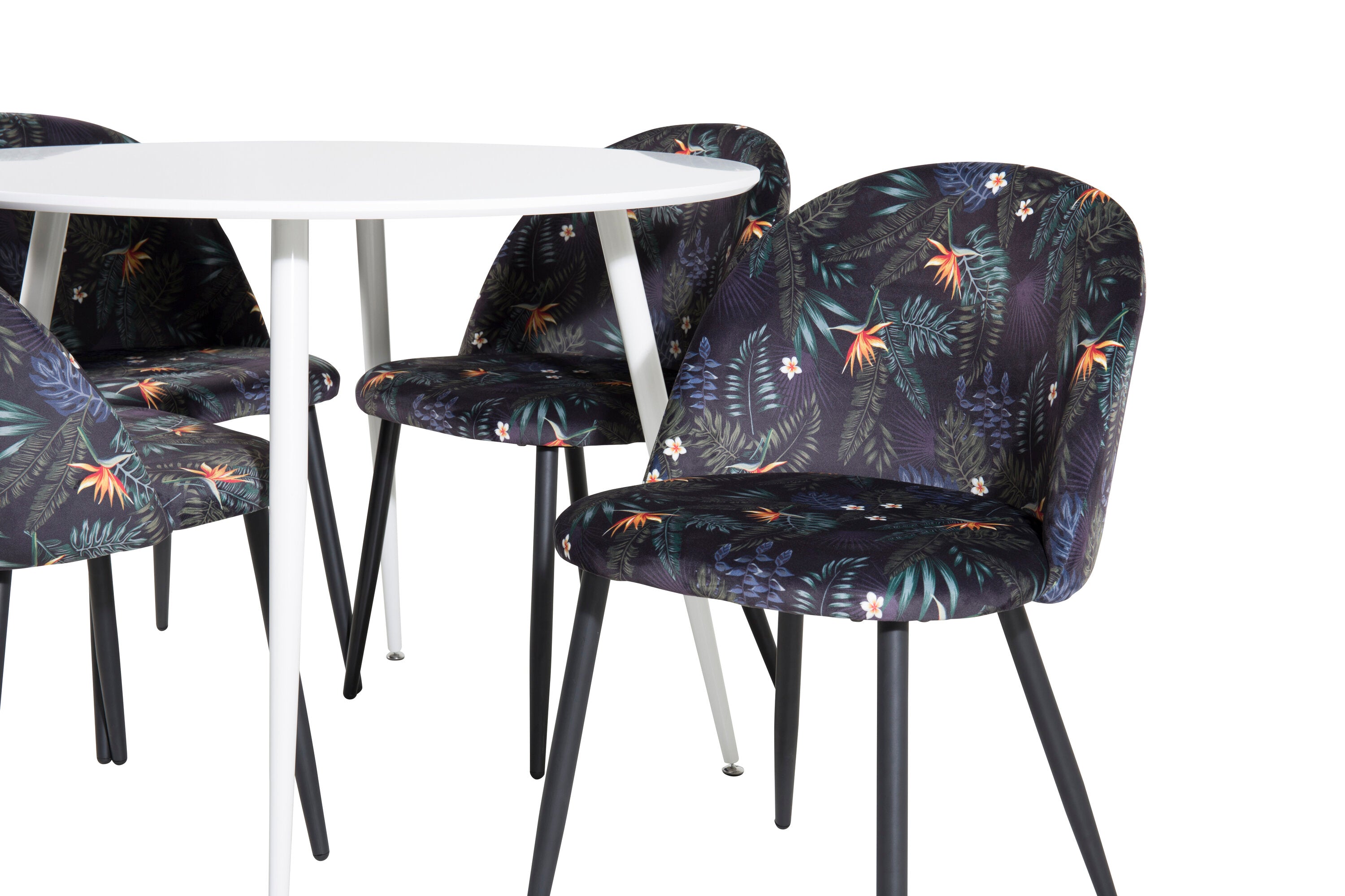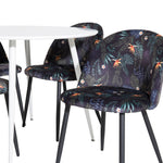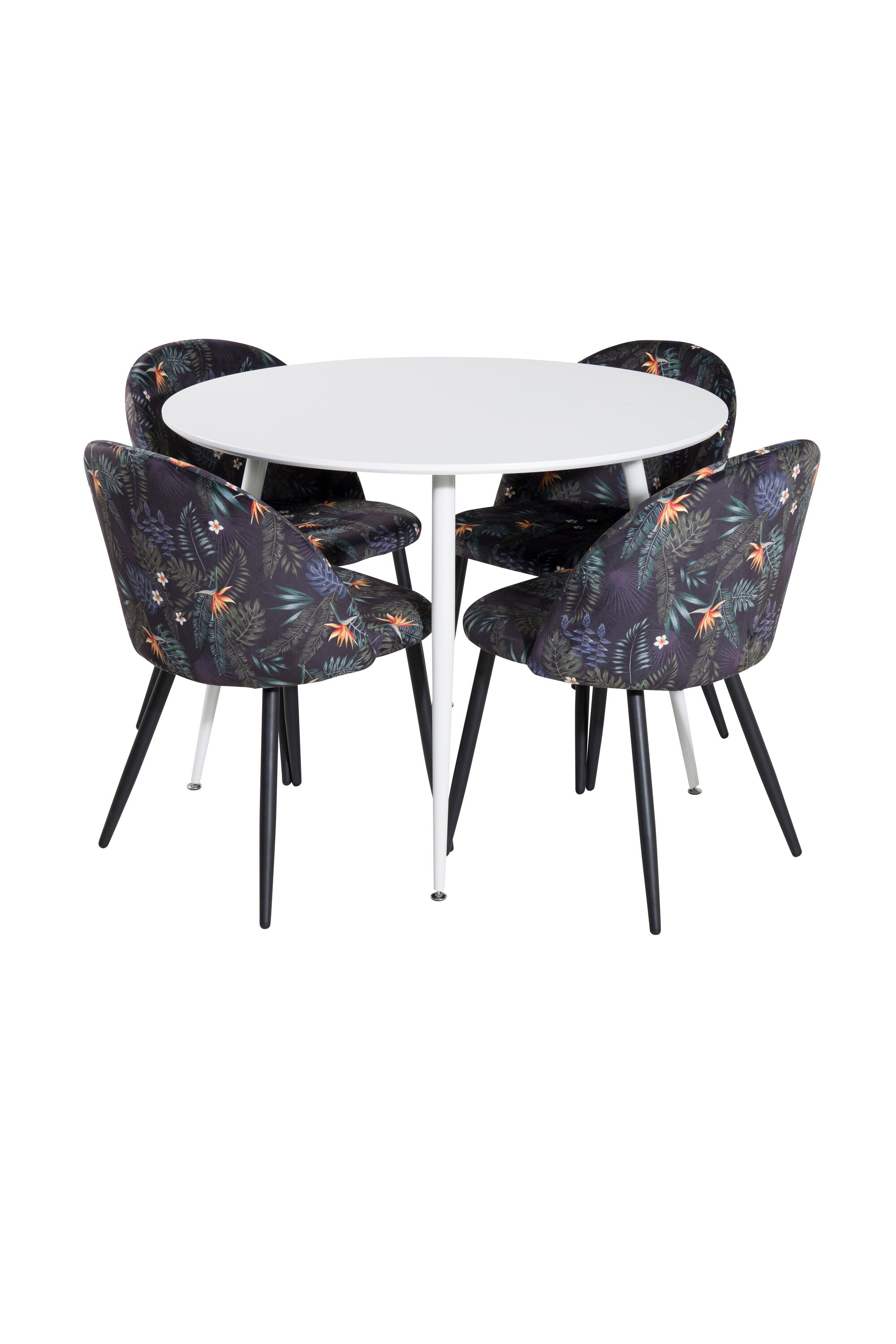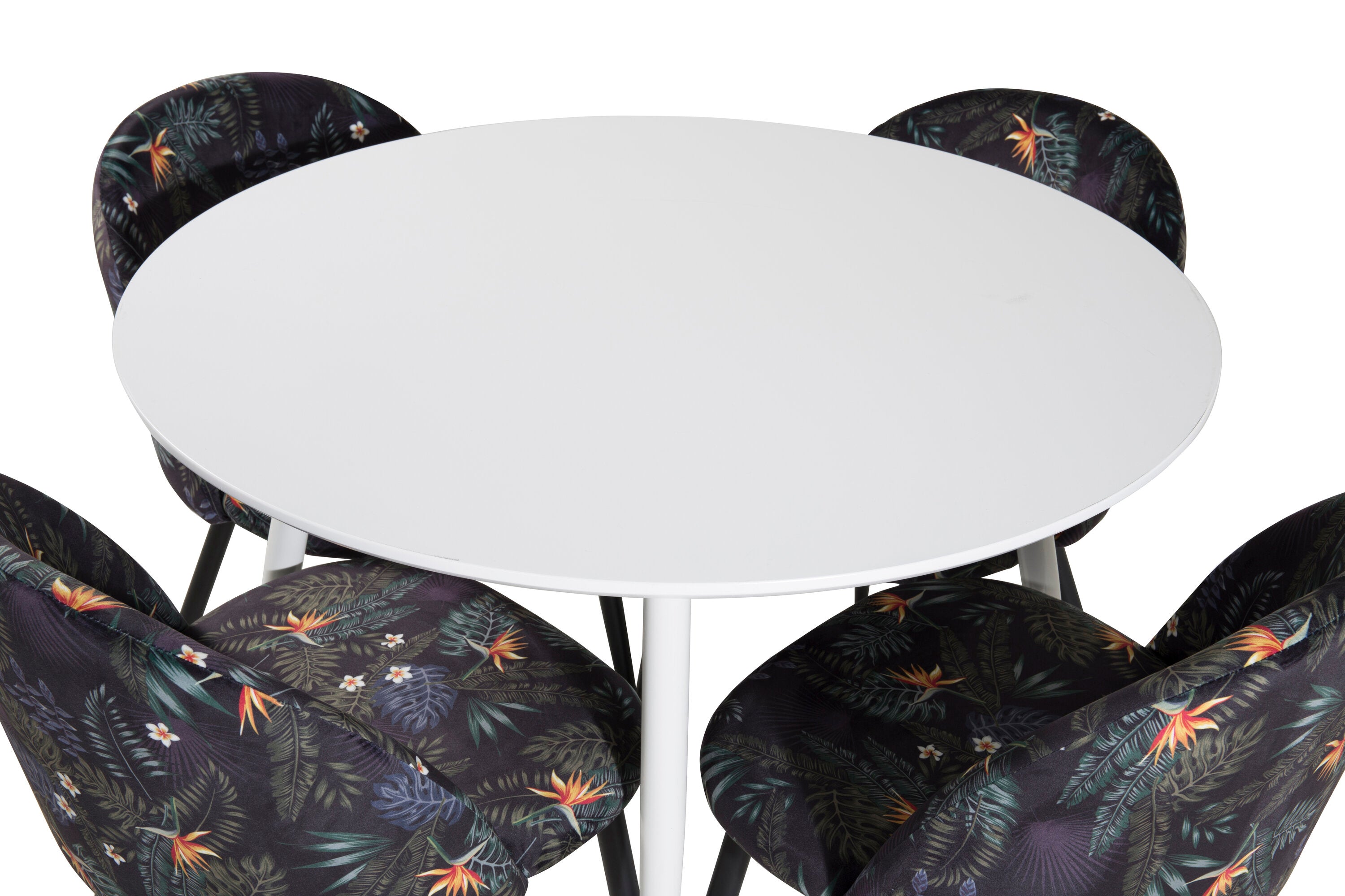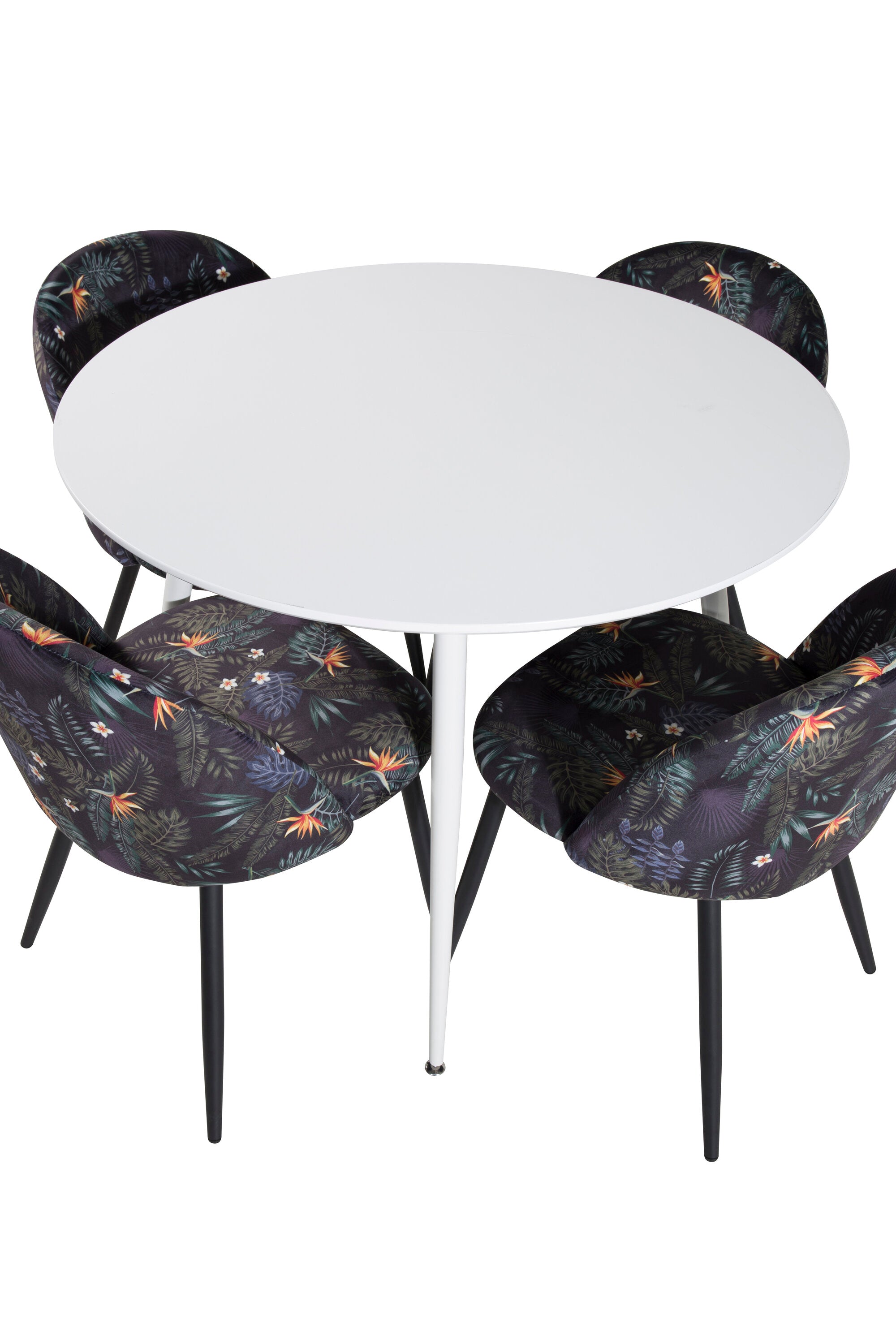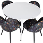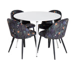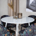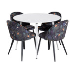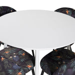 Plaza Kulatý stůl 100 cm - Bílá deska / Bílé nohy + Sametová jídelní židle - Black Flower fabric_4