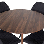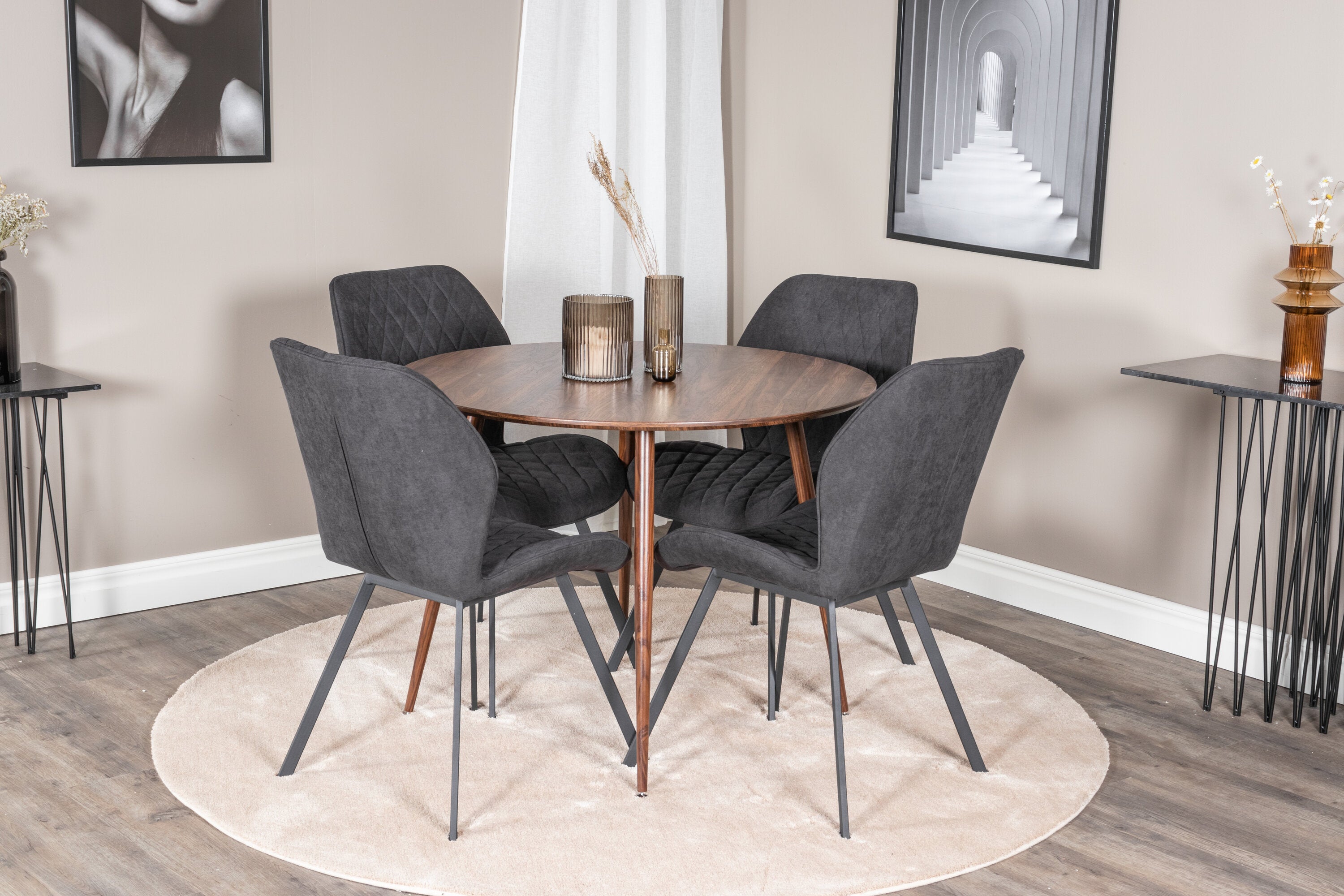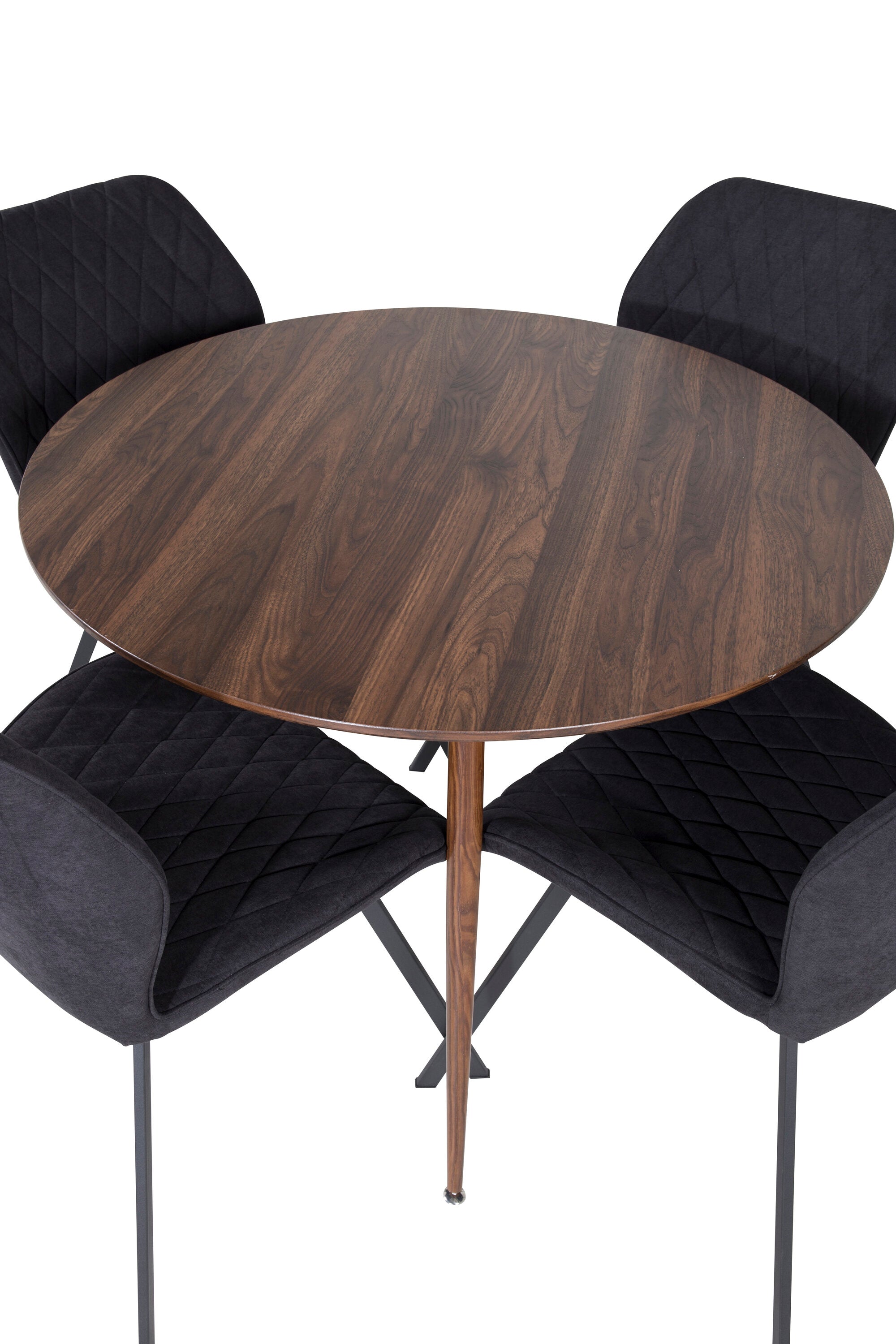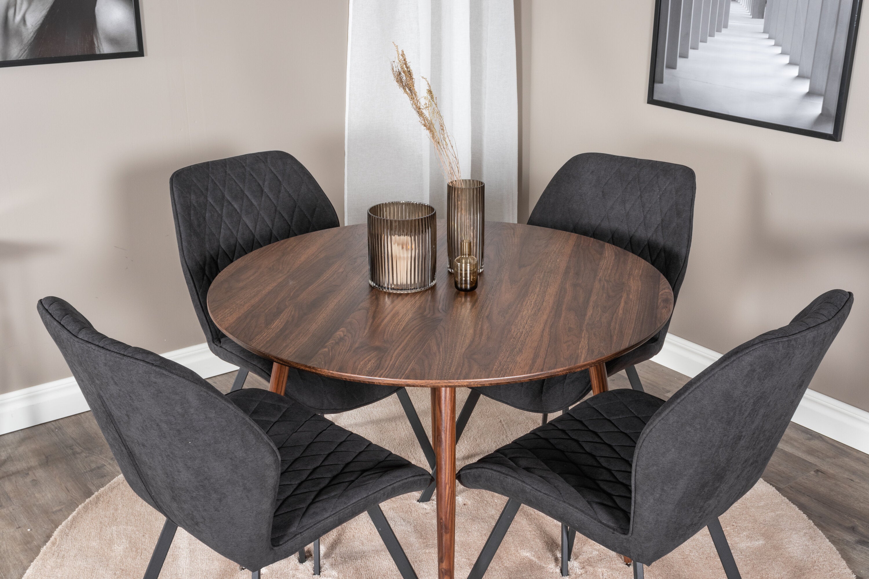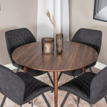 Plaza Kulatý stůl 100 cm - Ořechová deska - Ořechové nohy+Jídelní židle Gemma - Černé nohy - Černá Fabric_4