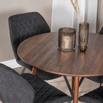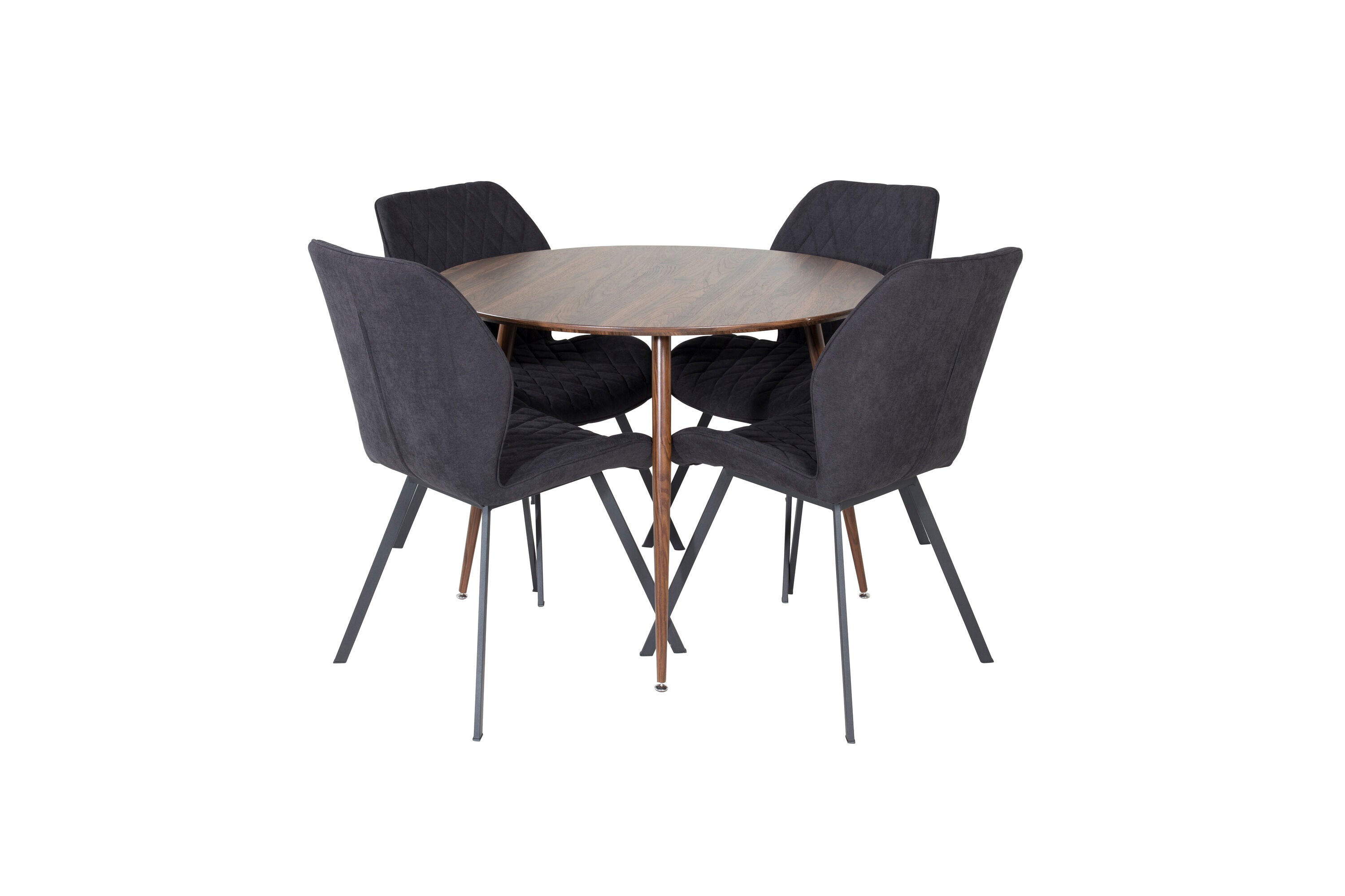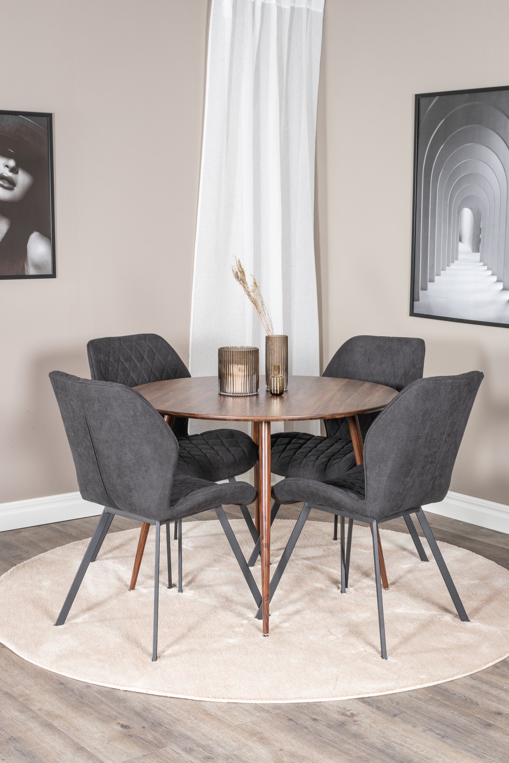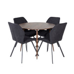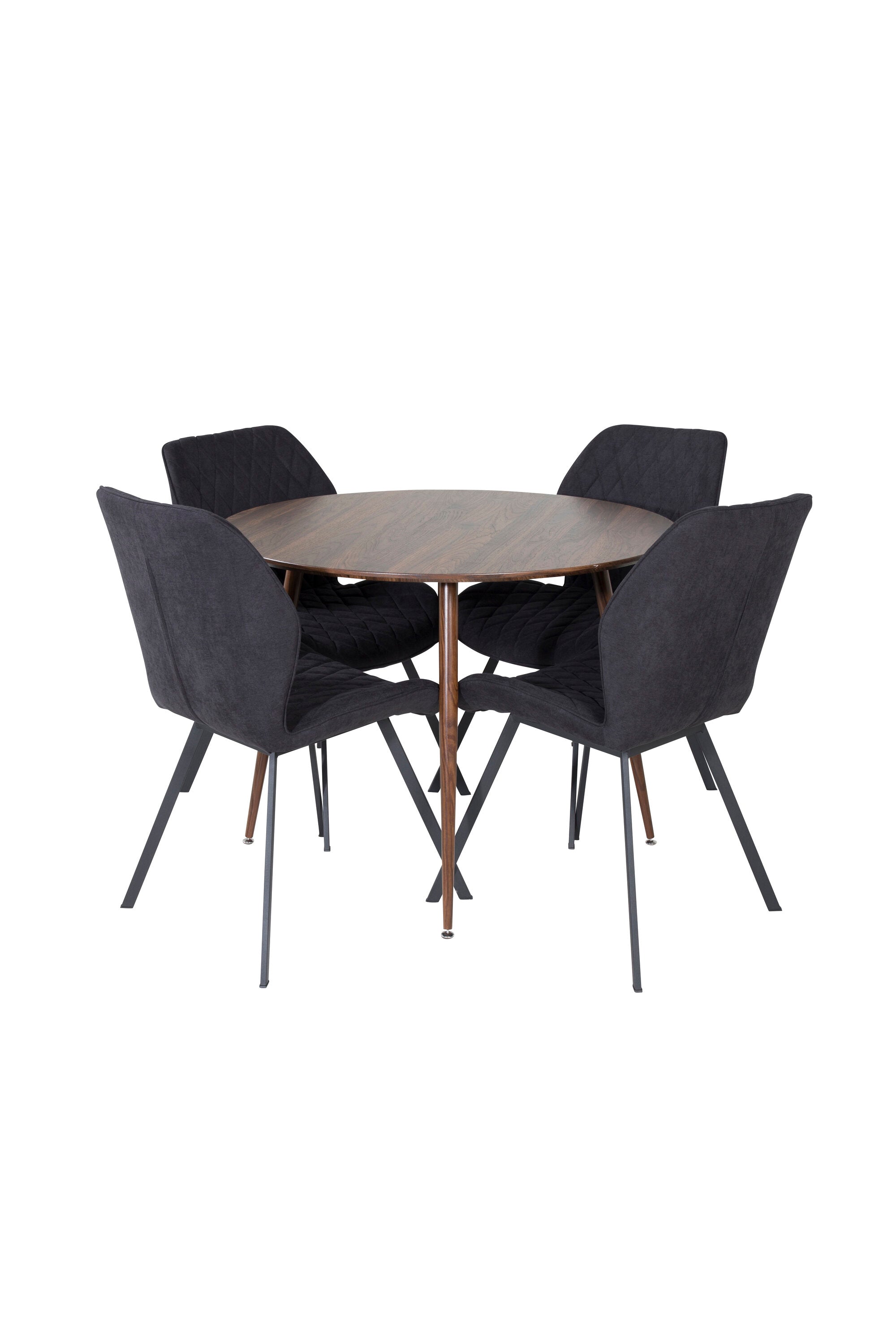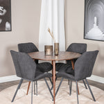 Plaza Kulatý stůl 100 cm - Ořechová deska - Ořechové nohy+Jídelní židle Gemma - Černé nohy - Černá Fabric_4