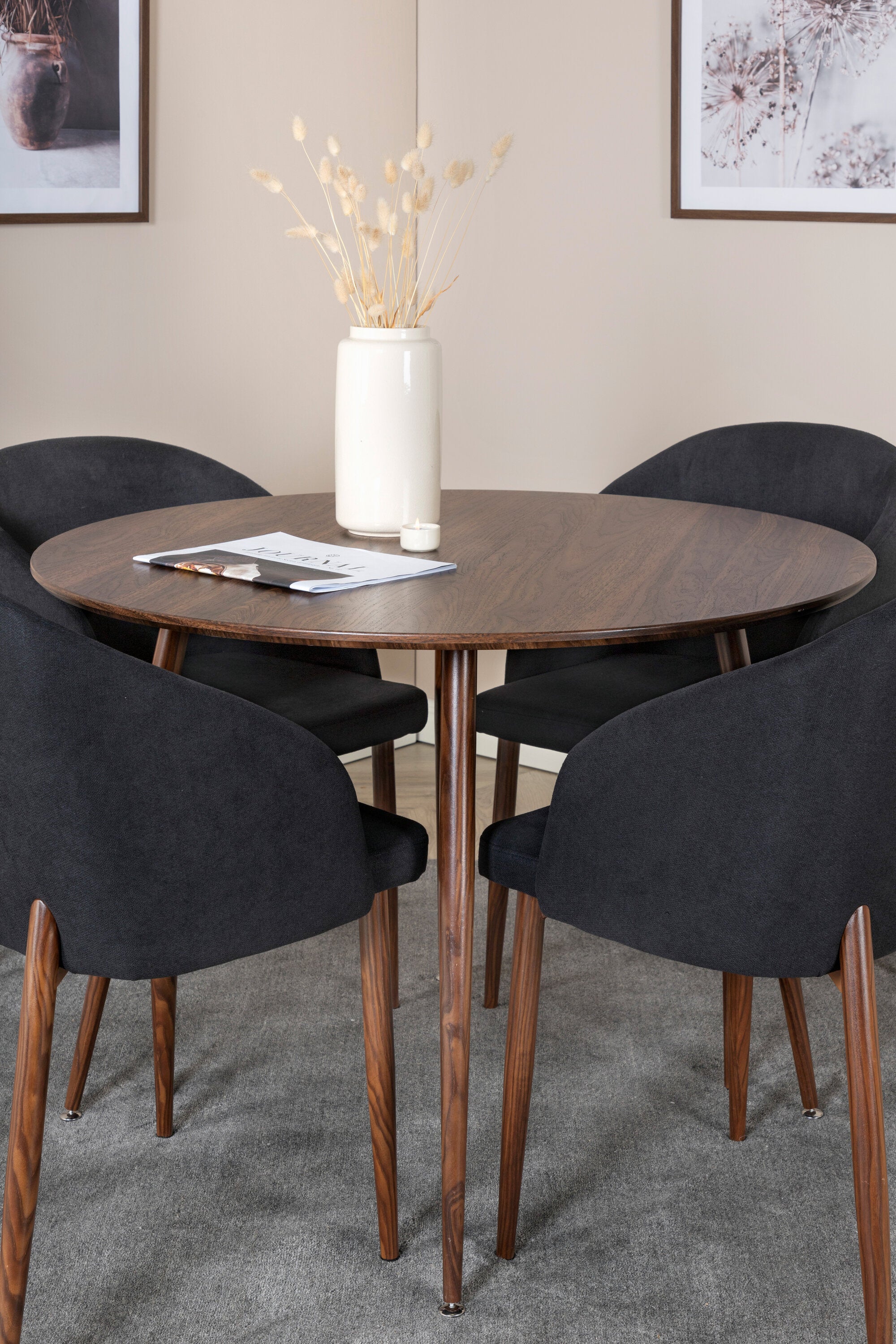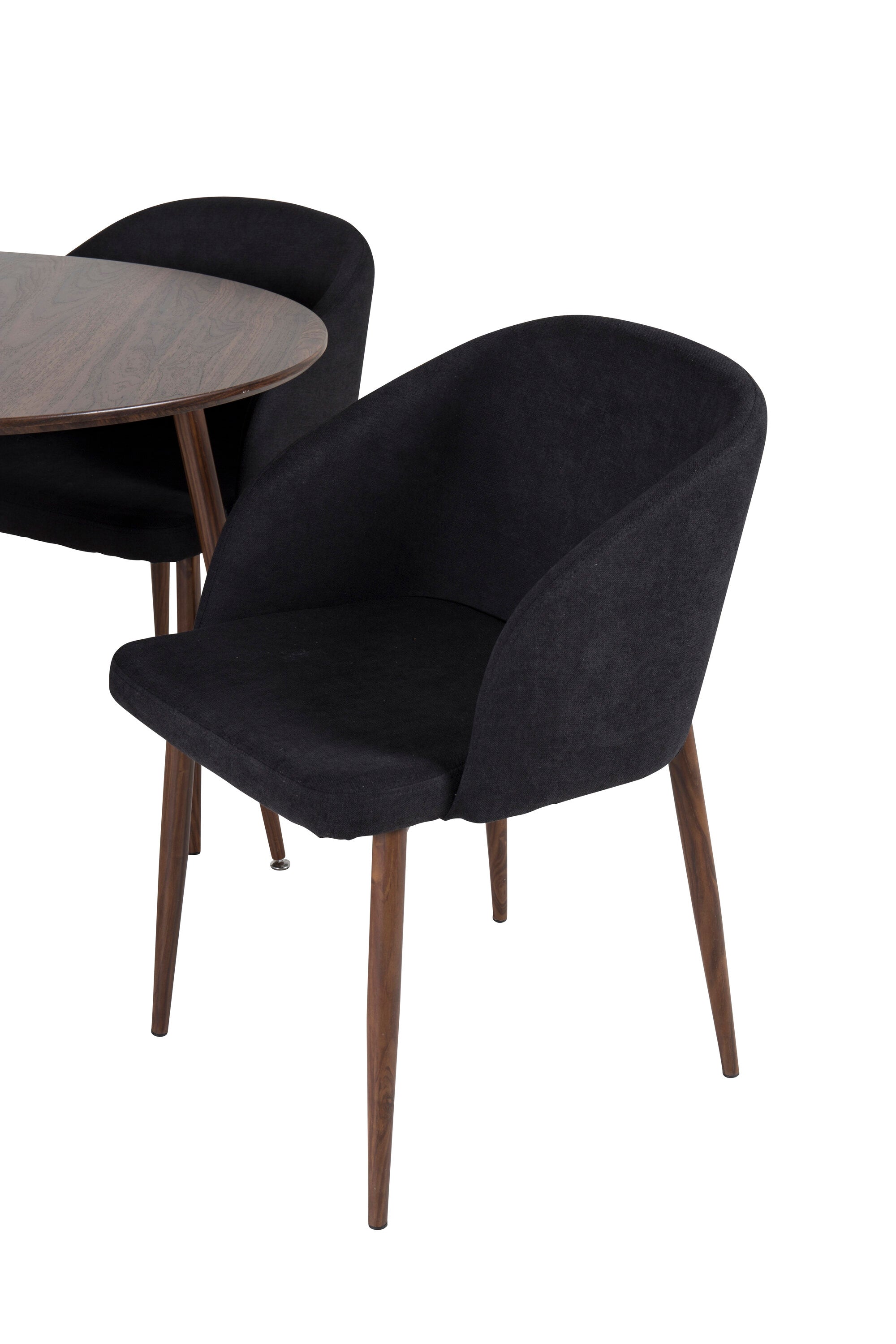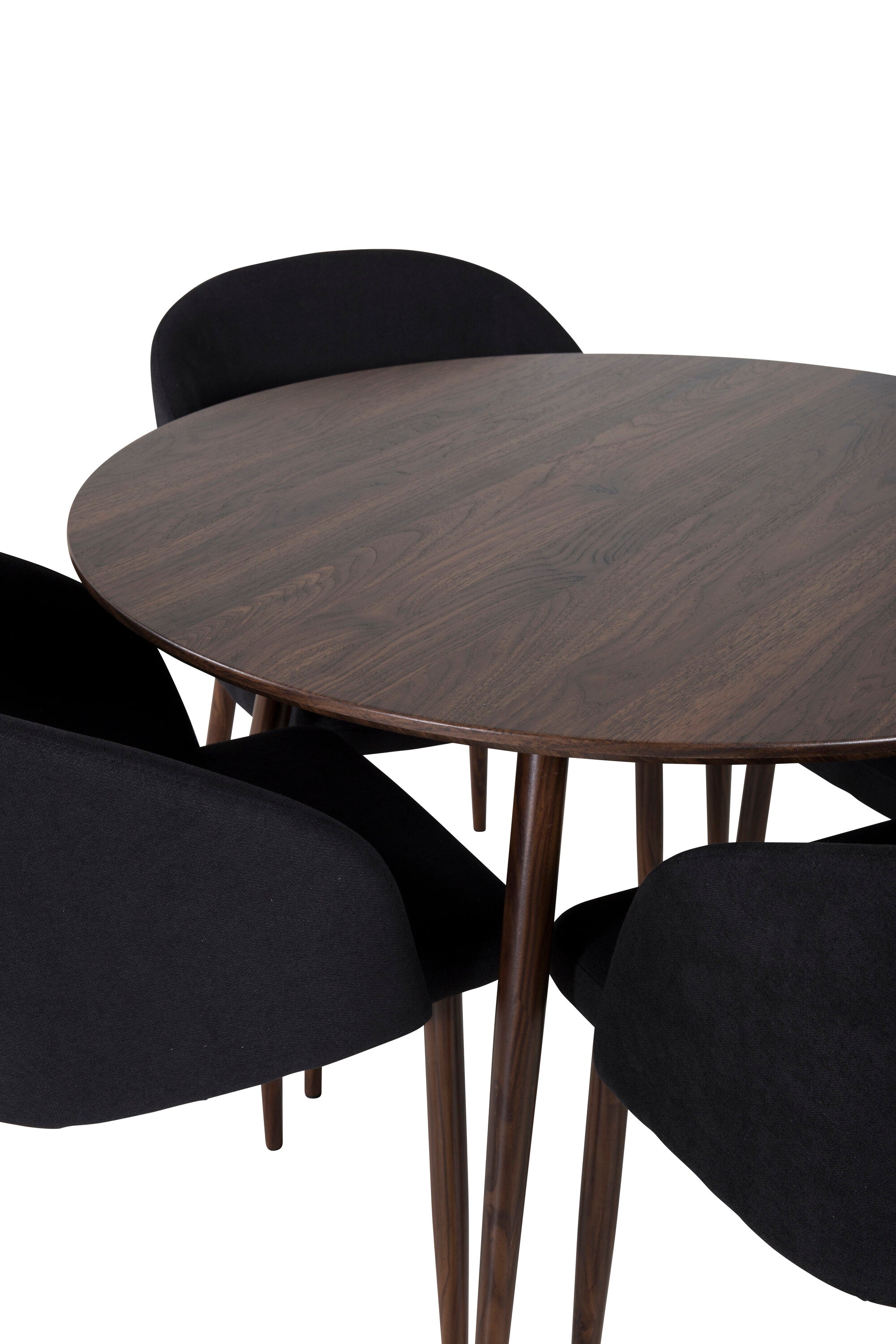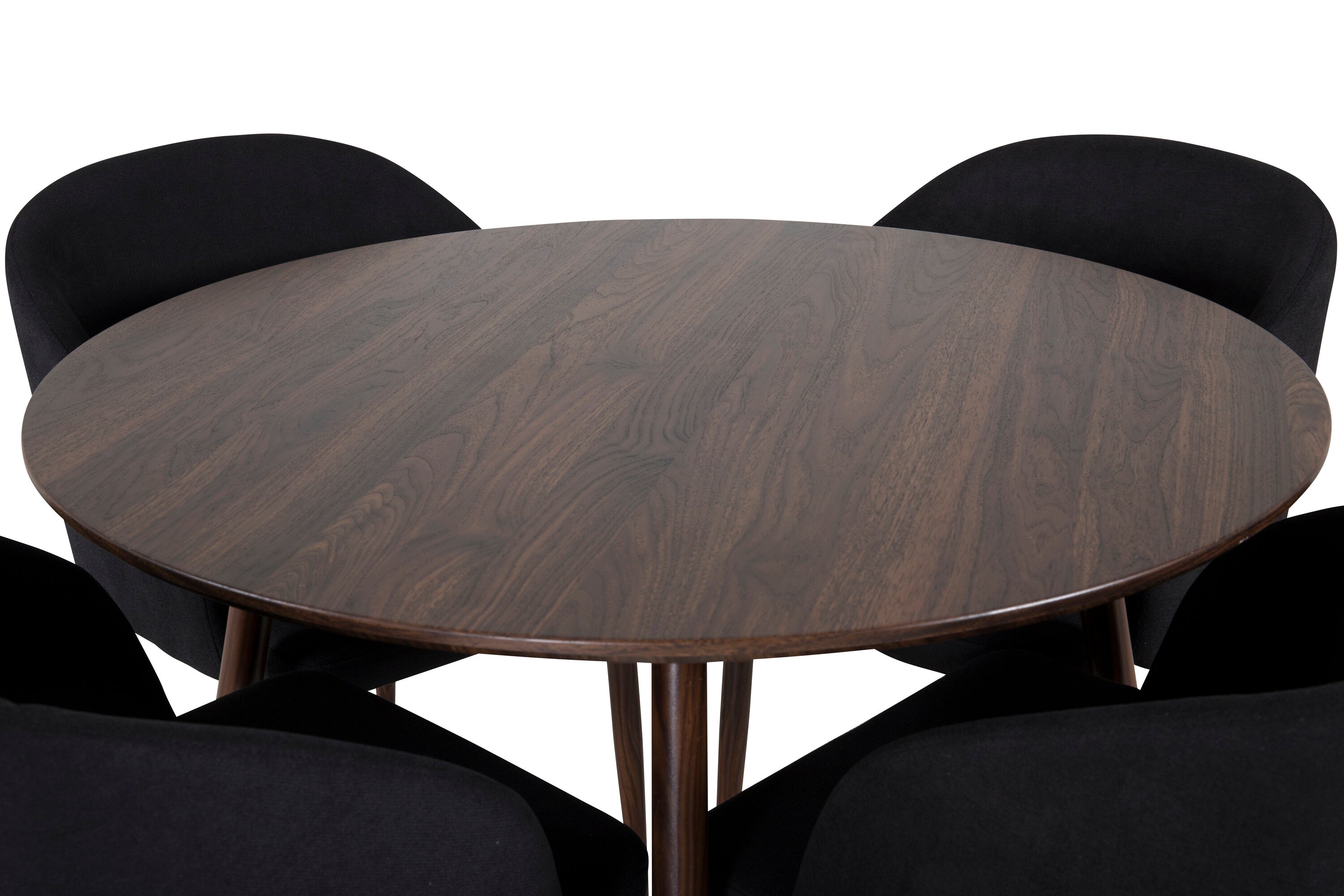 Plaza Kulatý stůl 100 cm - Ořechová deska - Ořechové nohy+Jídelní židle Oblouk - Ořechové nohy - Černá látka_4