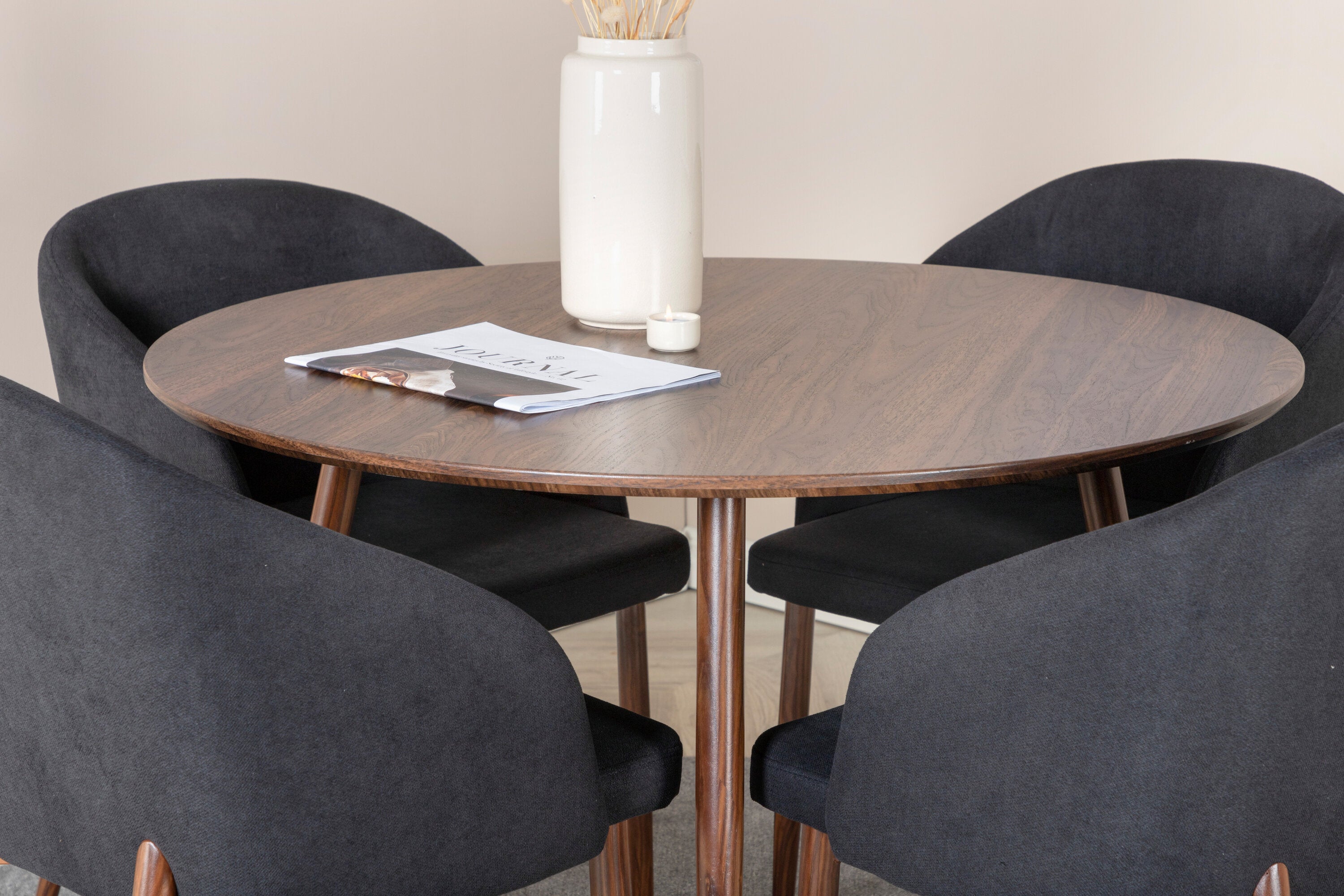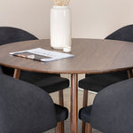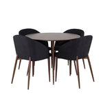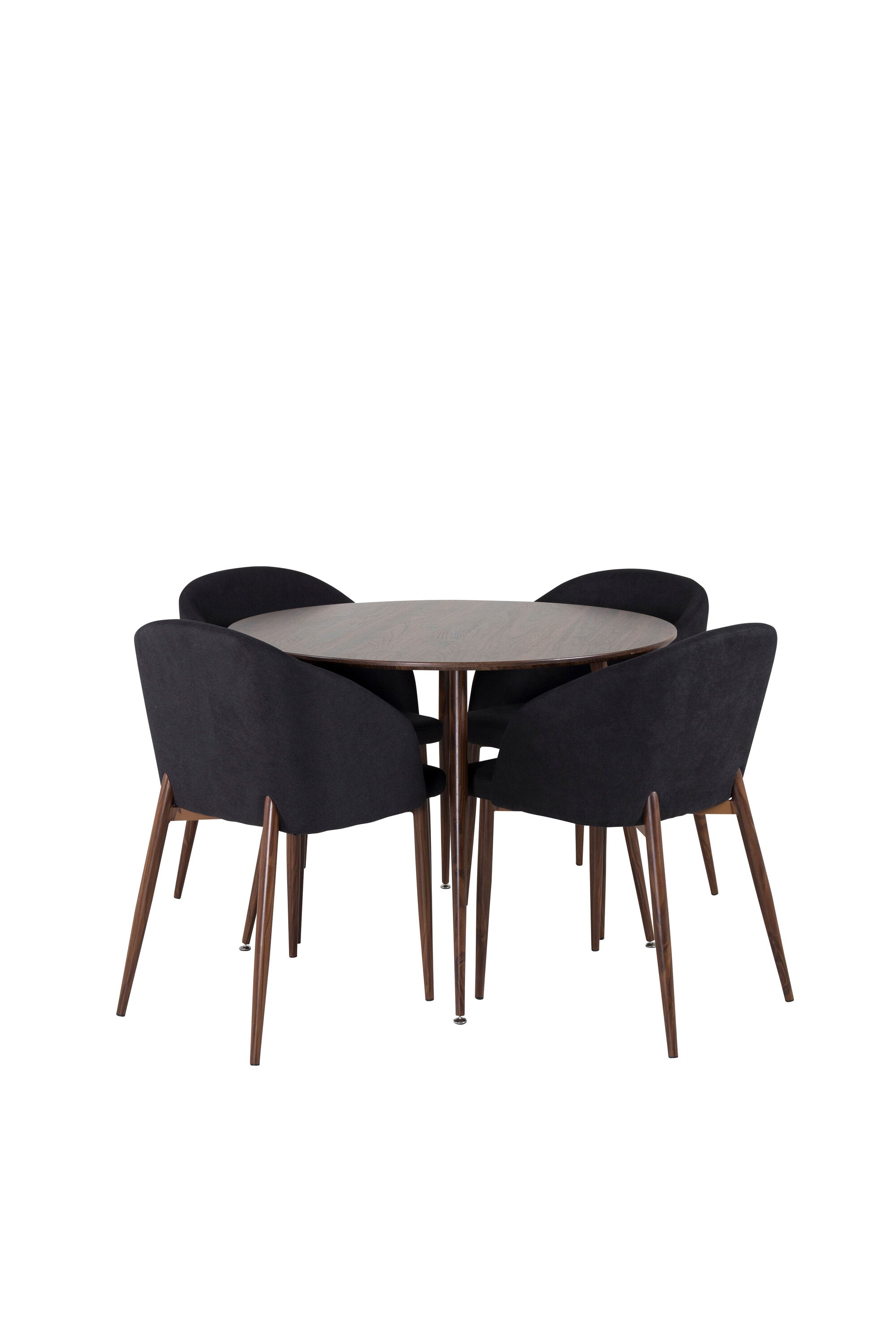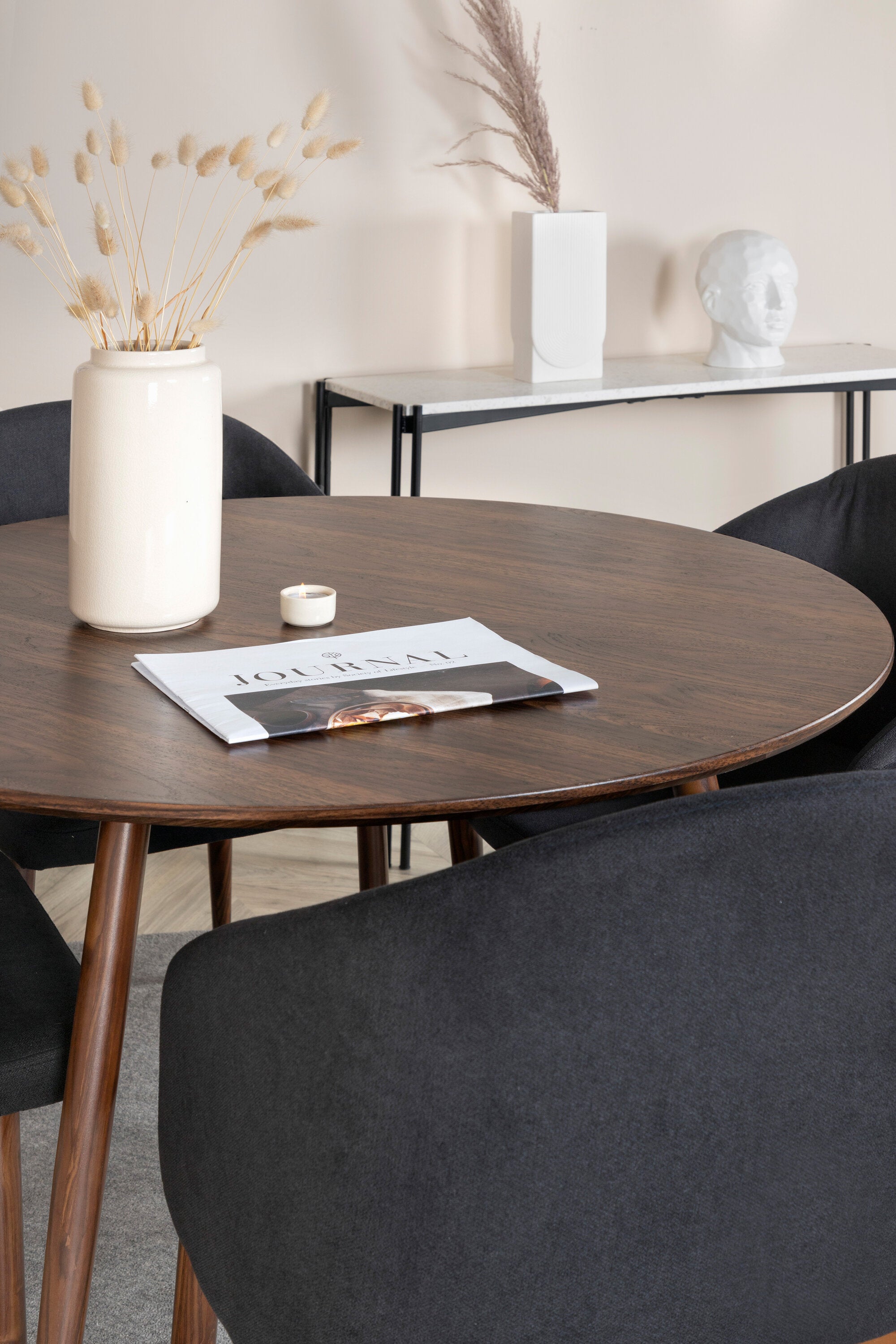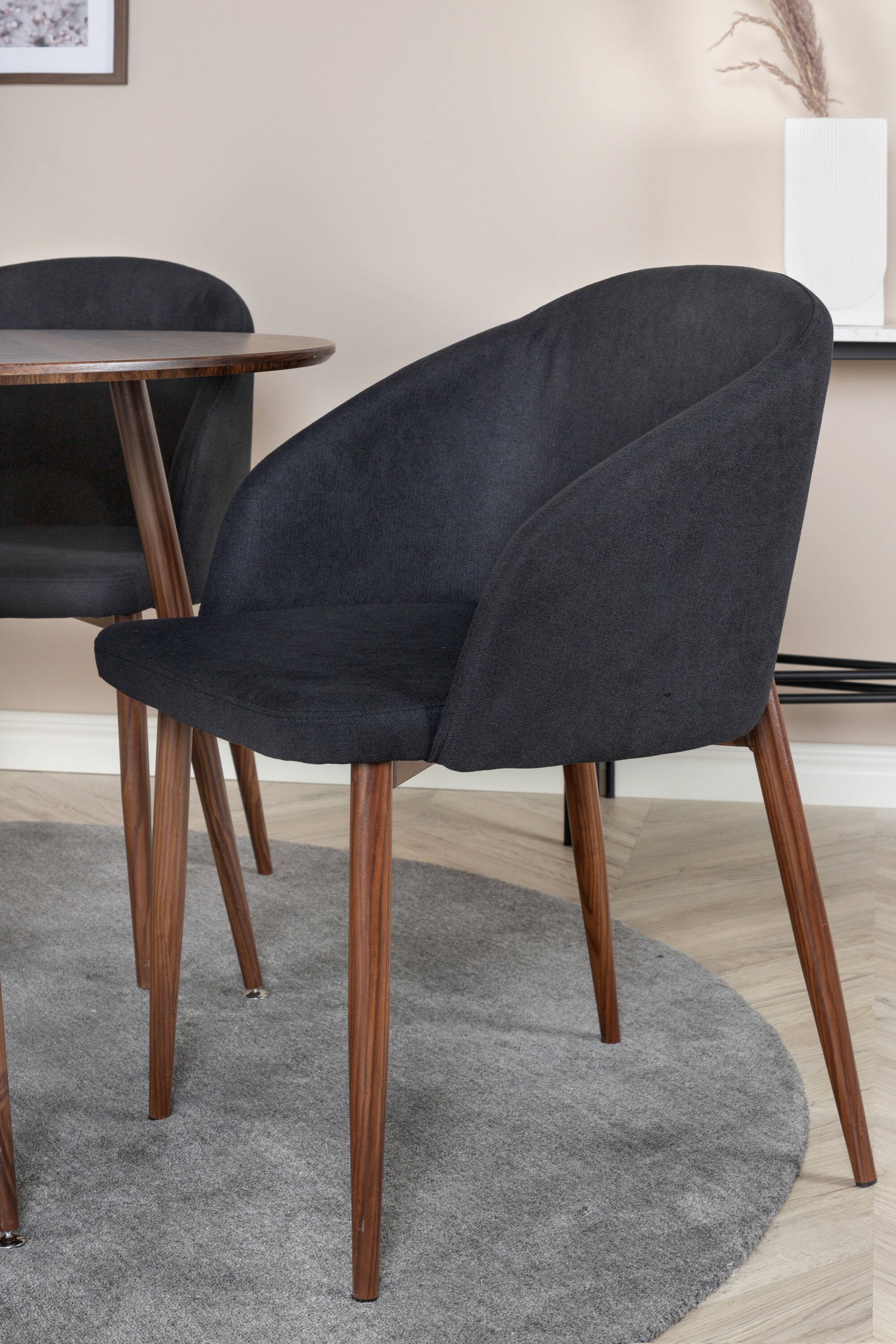 Plaza Kulatý stůl 100 cm - Ořechová deska - Ořechové nohy+Jídelní židle Oblouk - Ořechové nohy - Černá látka_4