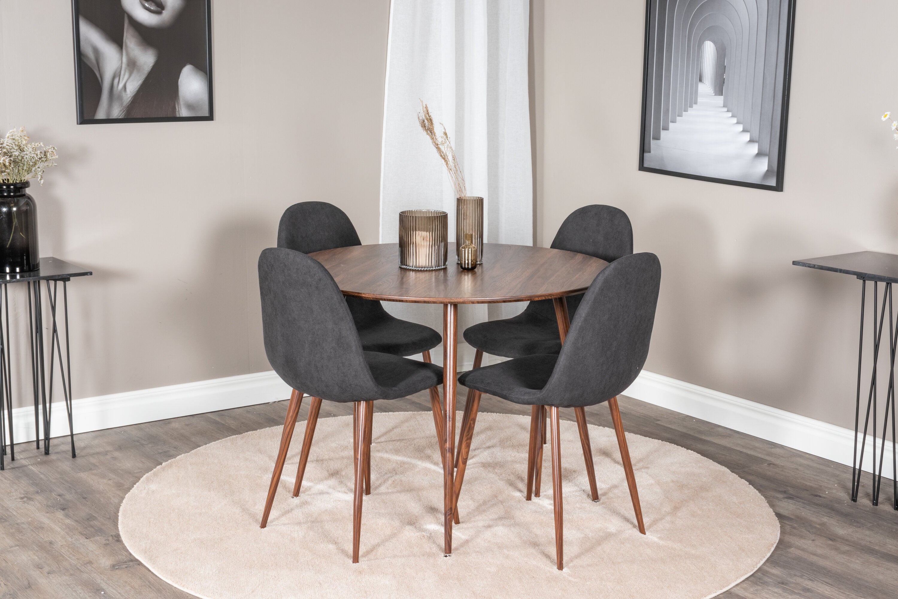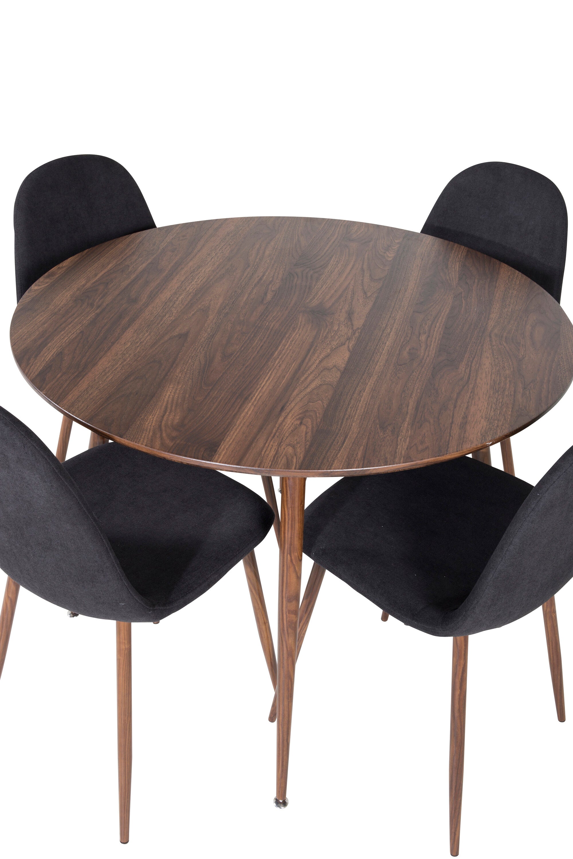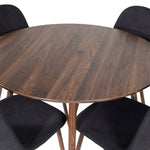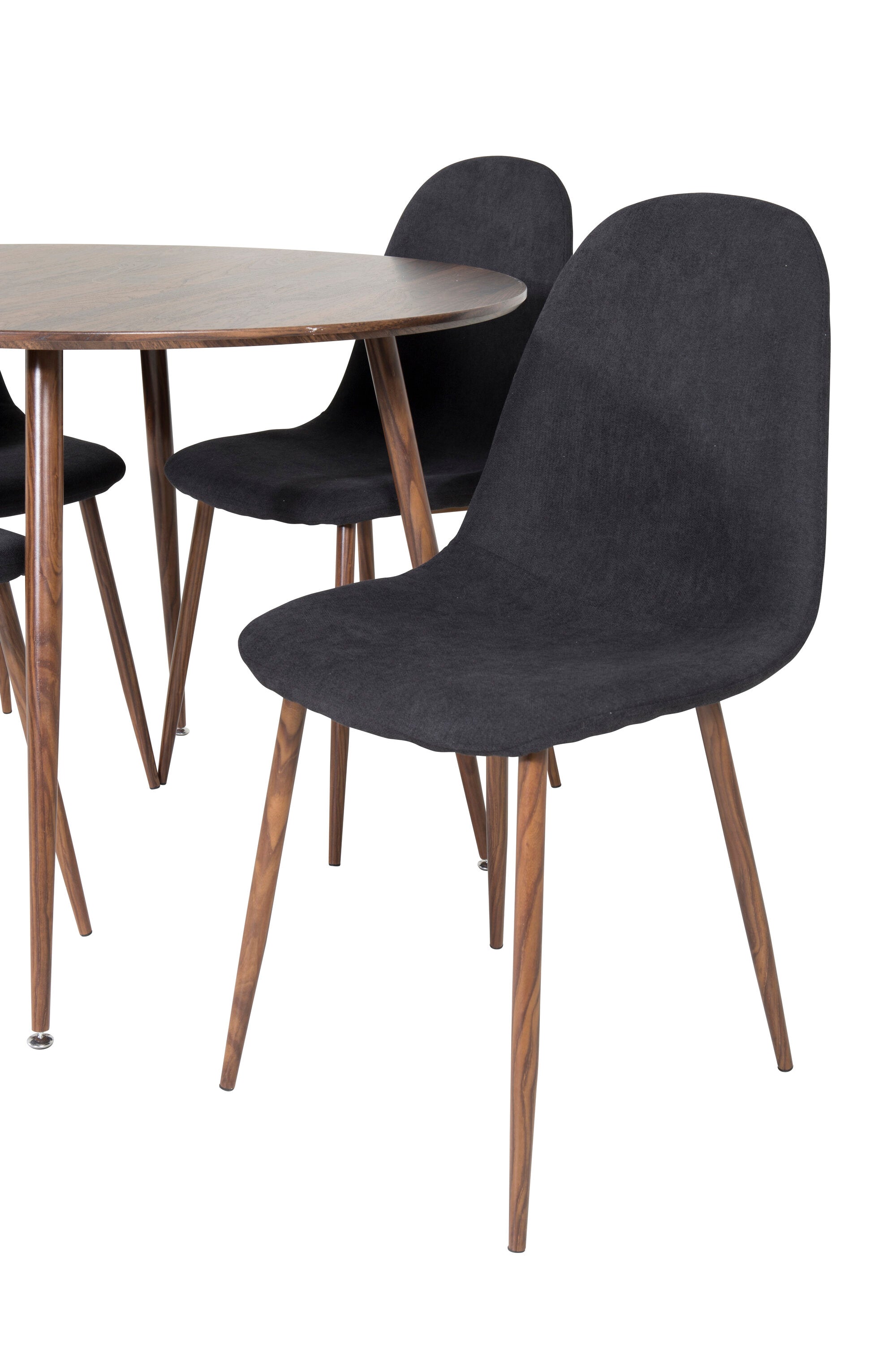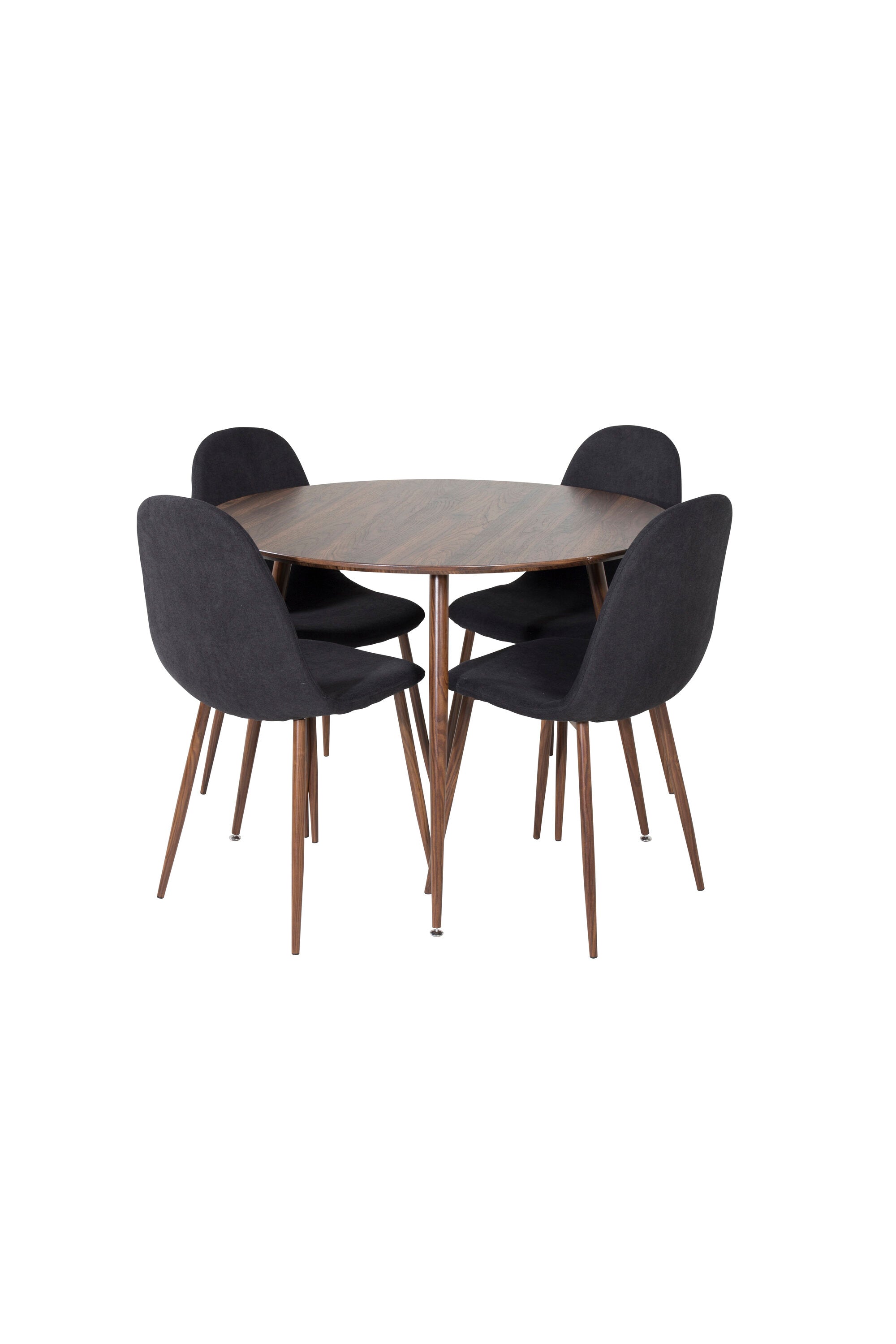 Plaza Kulatý stůl 100 cm - Ořechová deska - Ořechové nohy+Jídelní židle Polar - Ořechové nohy - Černá látka_4