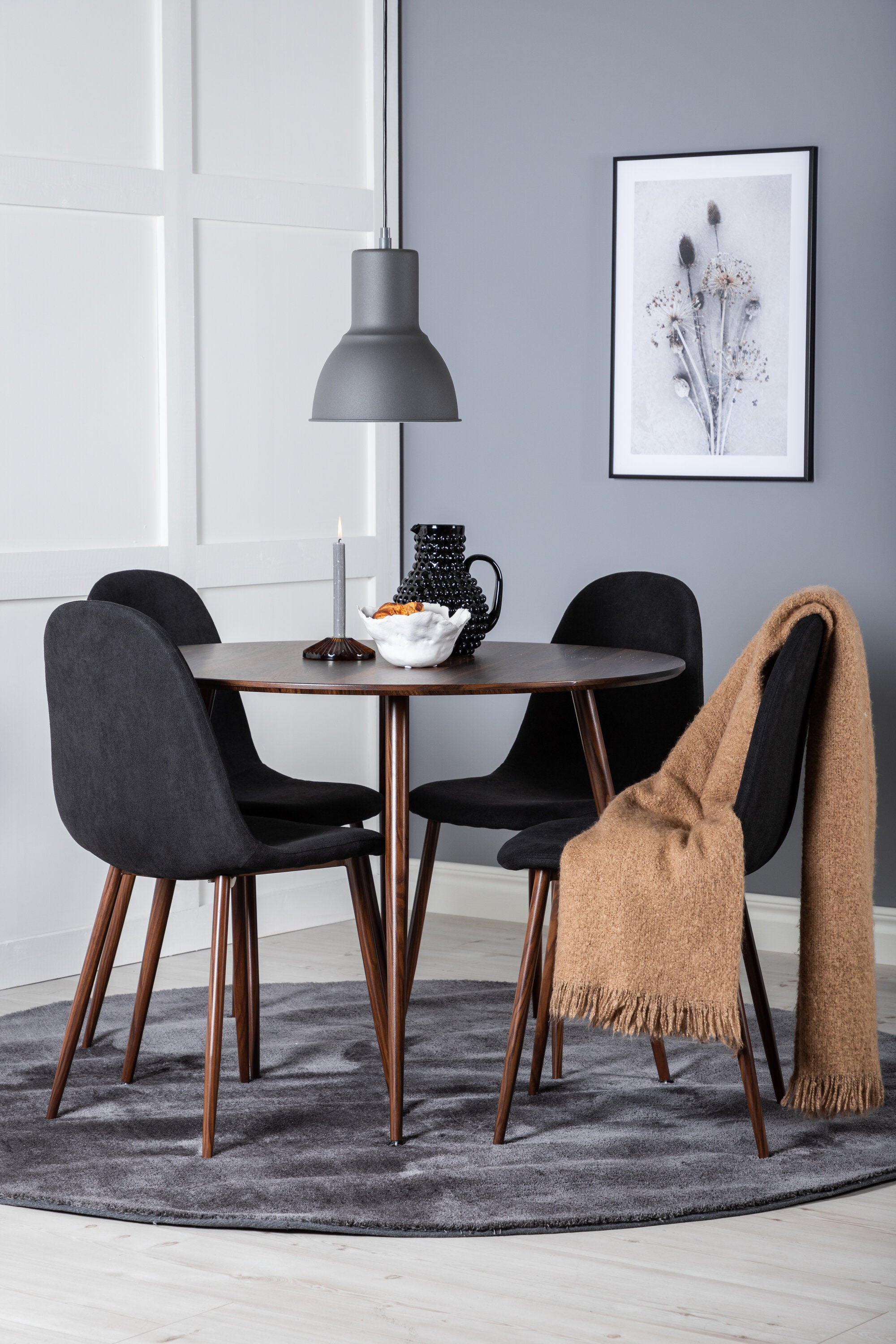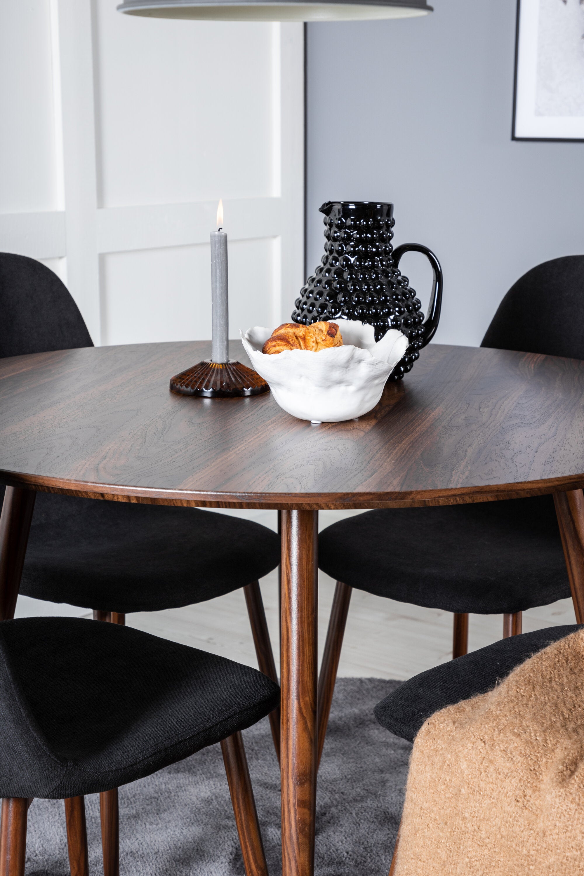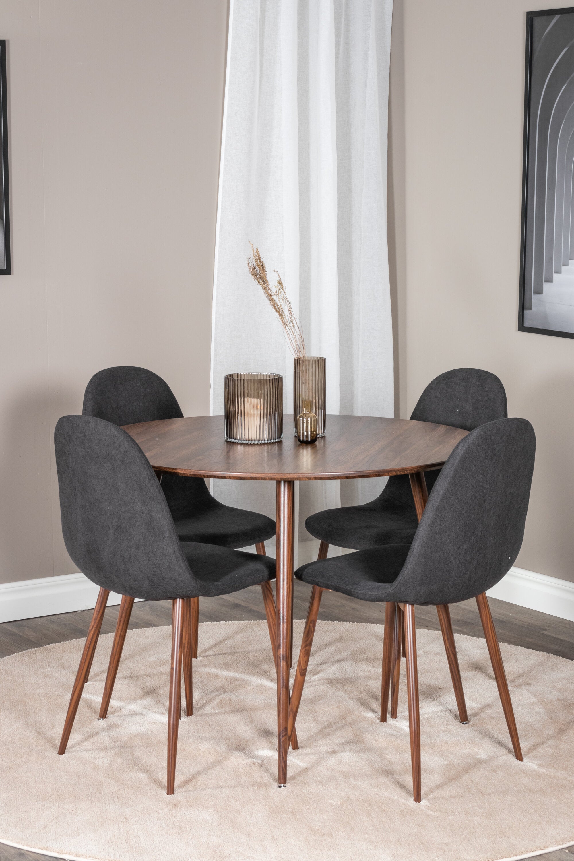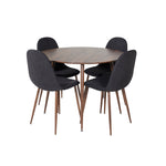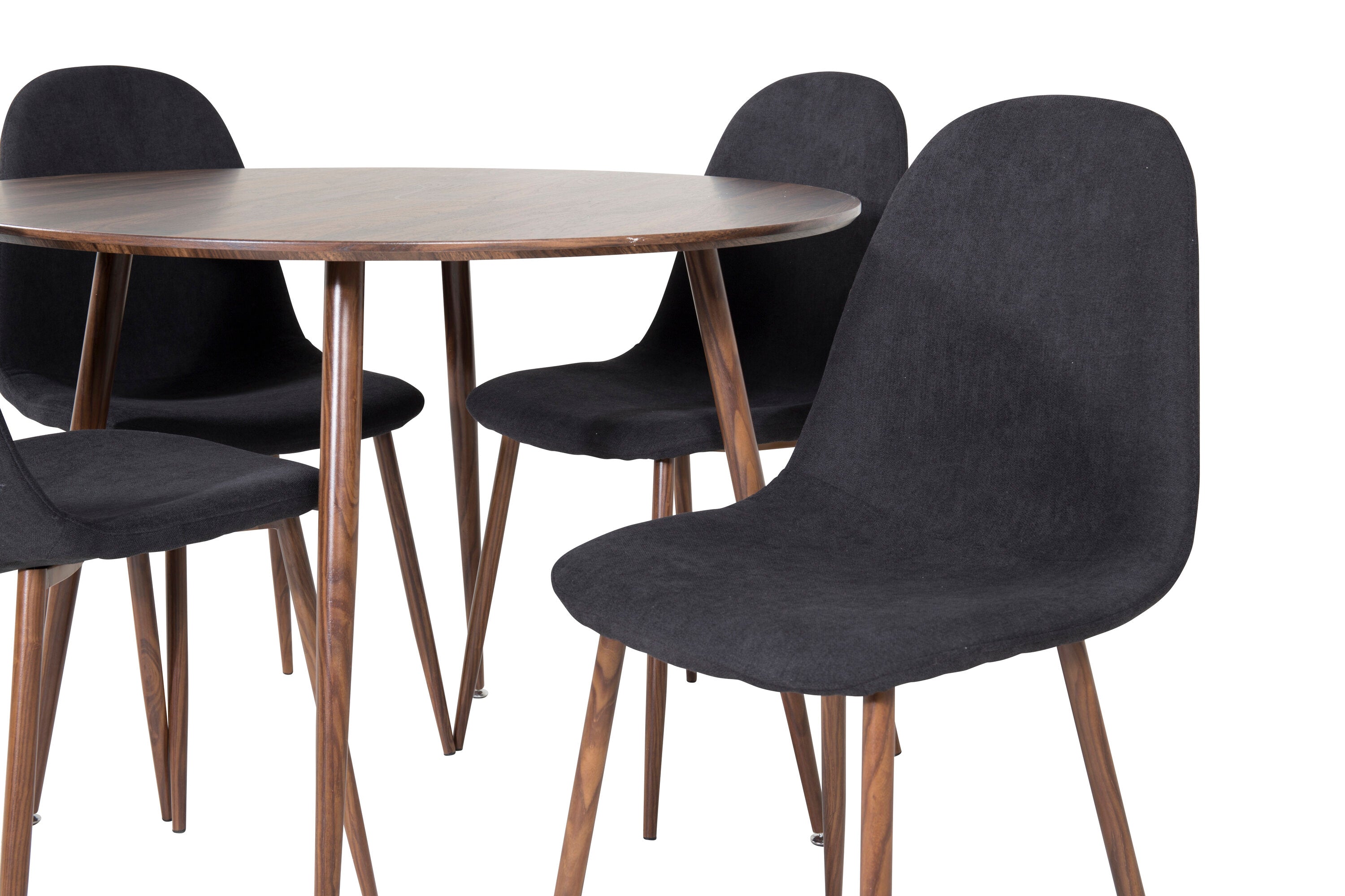 Plaza Kulatý stůl 100 cm - Ořechová deska - Ořechové nohy+Jídelní židle Polar - Ořechové nohy - Černá látka_4