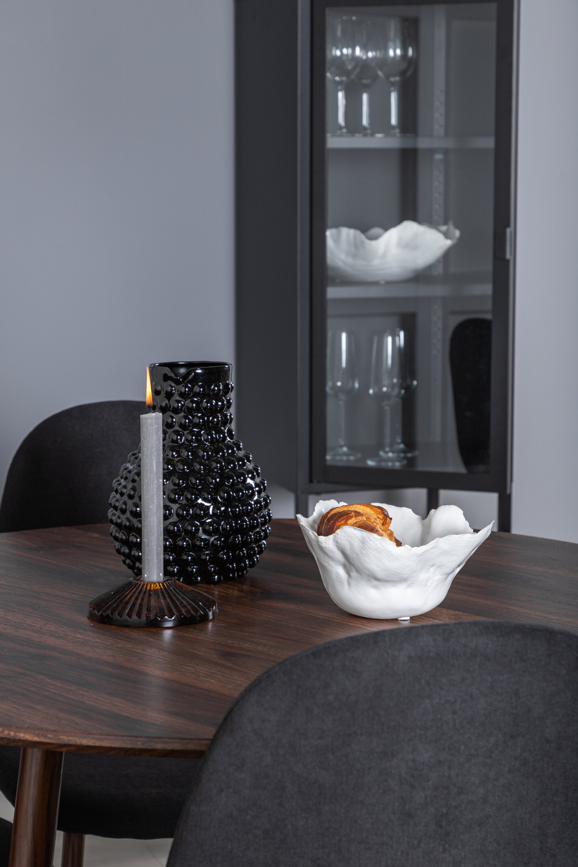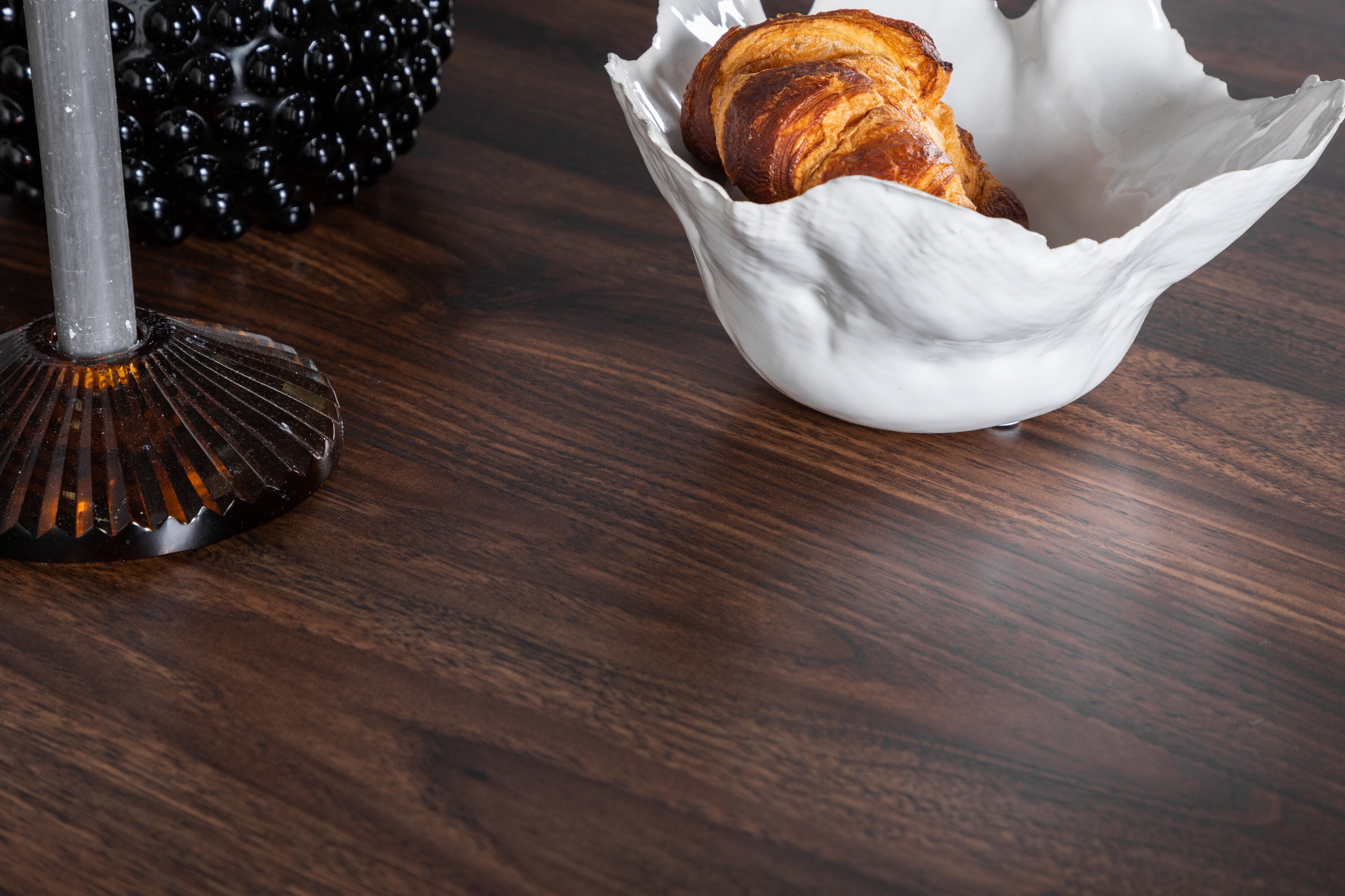 Stolní filtr ve tvaru souvislého dřeva spolu se 4 jídelními židlemi ze série Polar. Dřevěné kostice v kombinaci s jídelním stolem působí útulně a luxusně - a hodí se do většiny domácností!