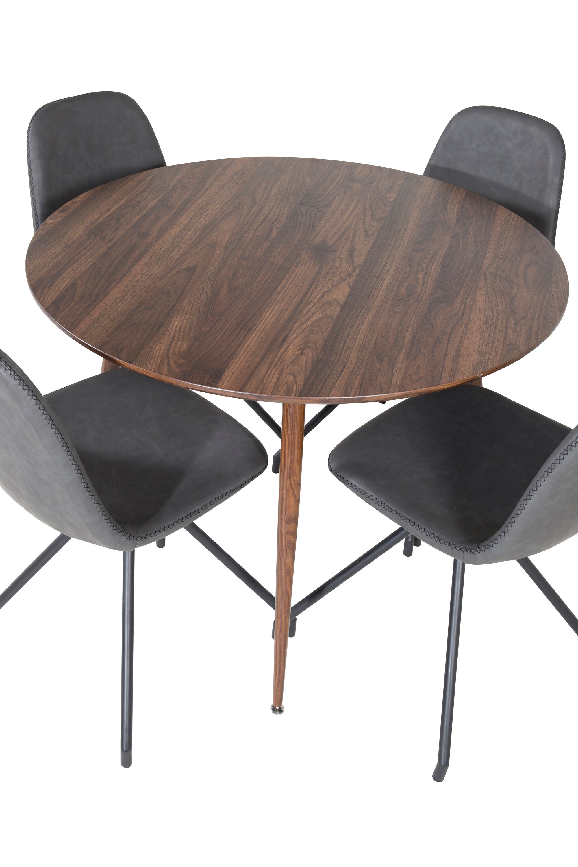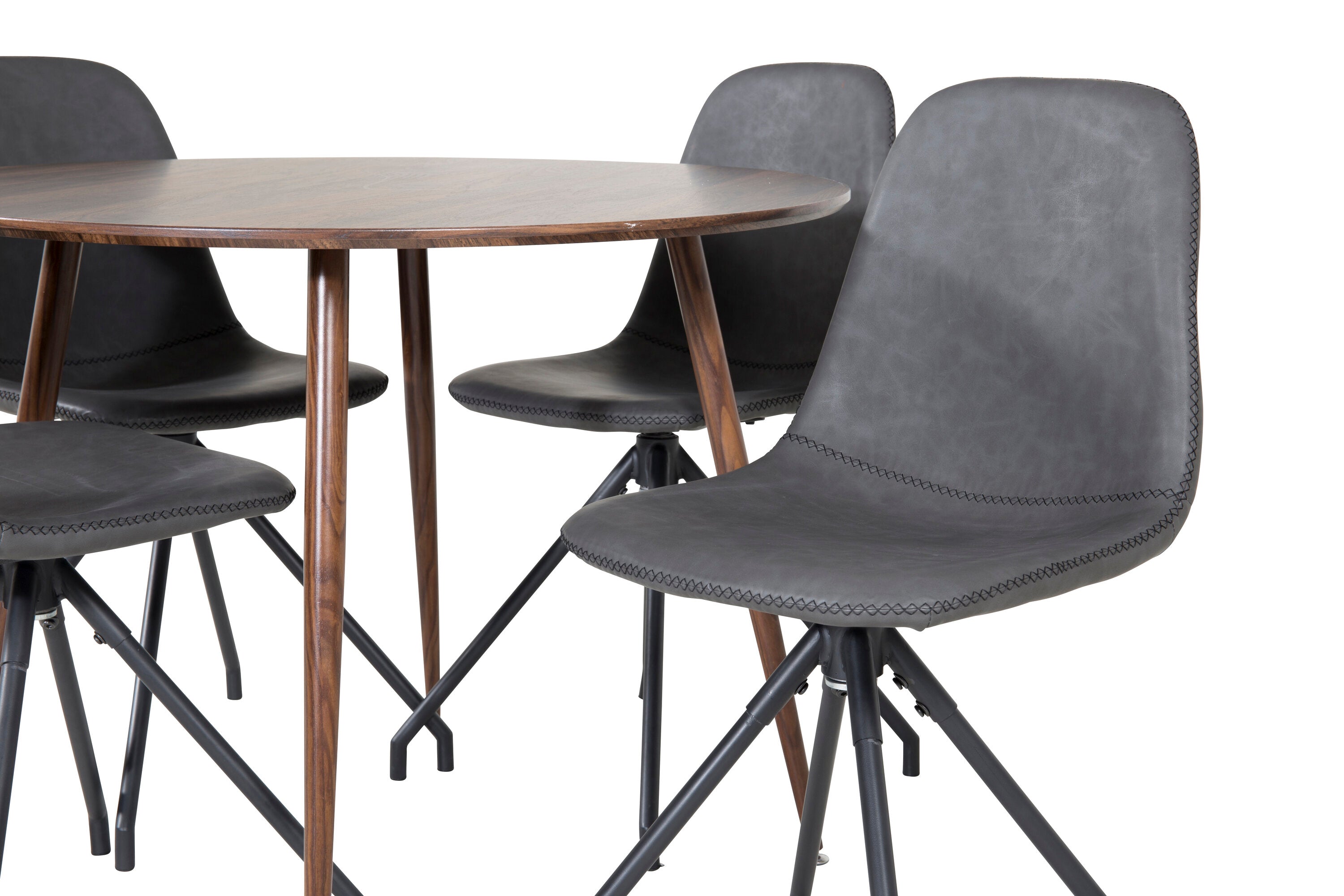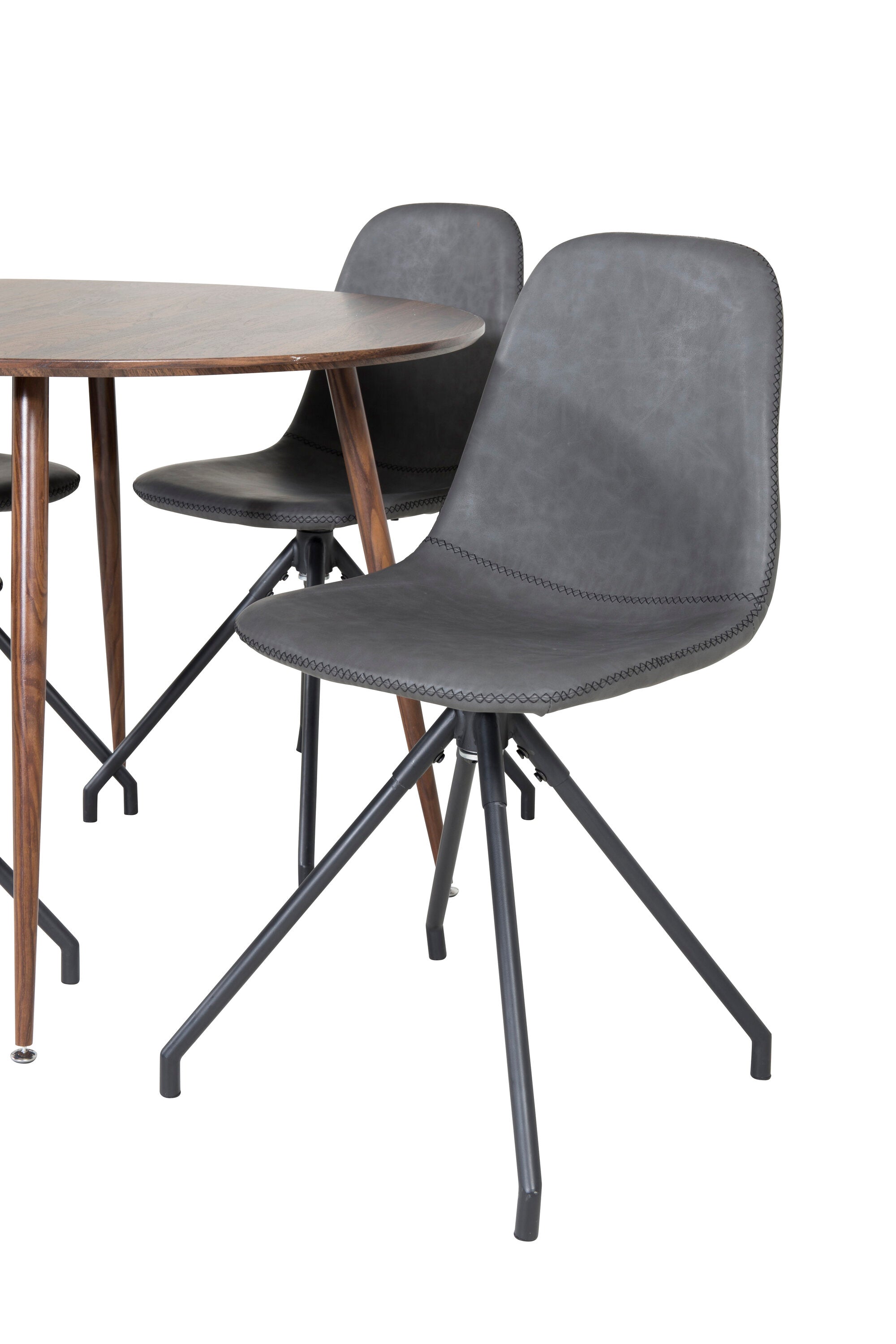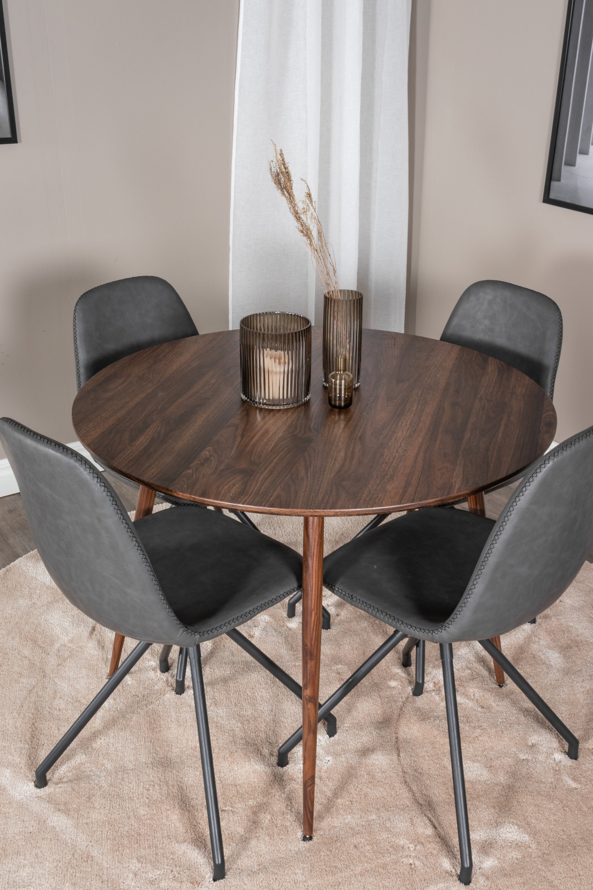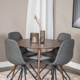 Plaza Kulatý stůl 100 cm - Ořechová deska - Ořechové nohy+Jídelní židle Polar s funkcí Spin - černá Nohy - Černá PU - Černé Stitches_4