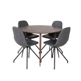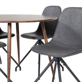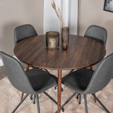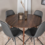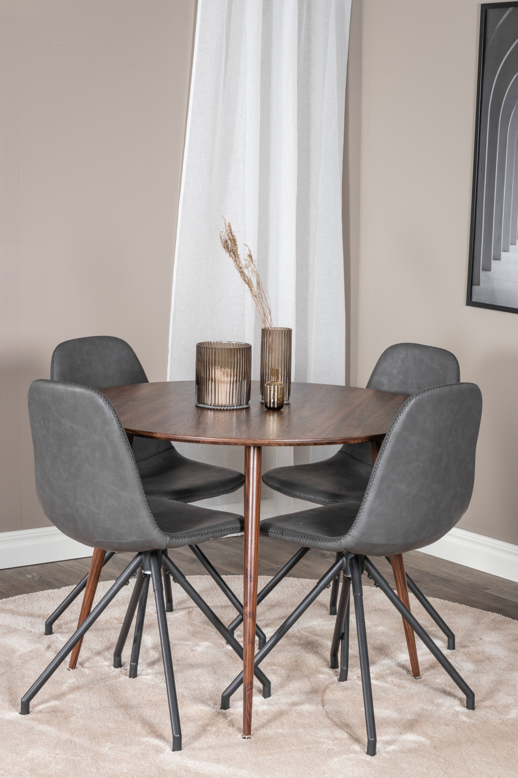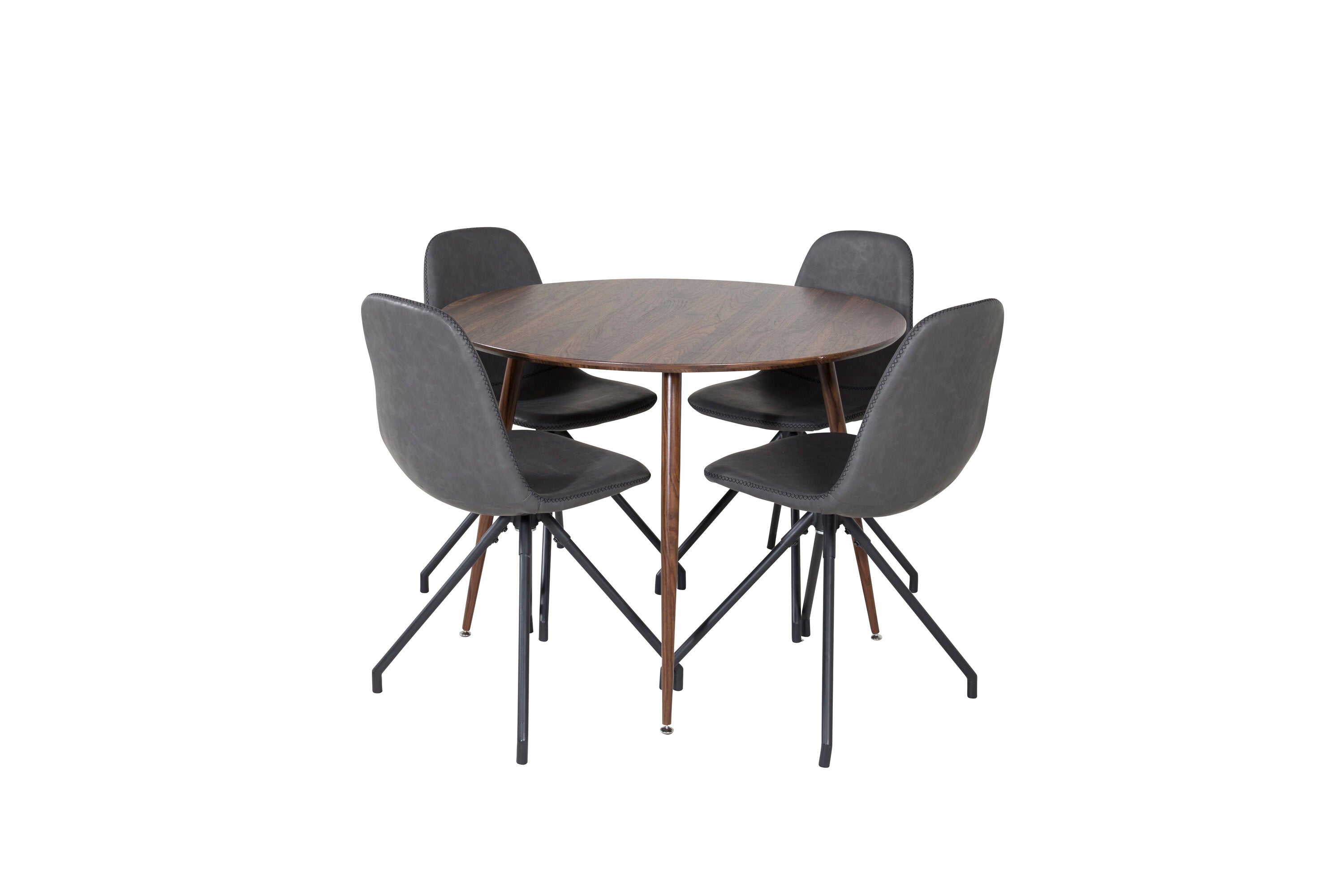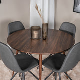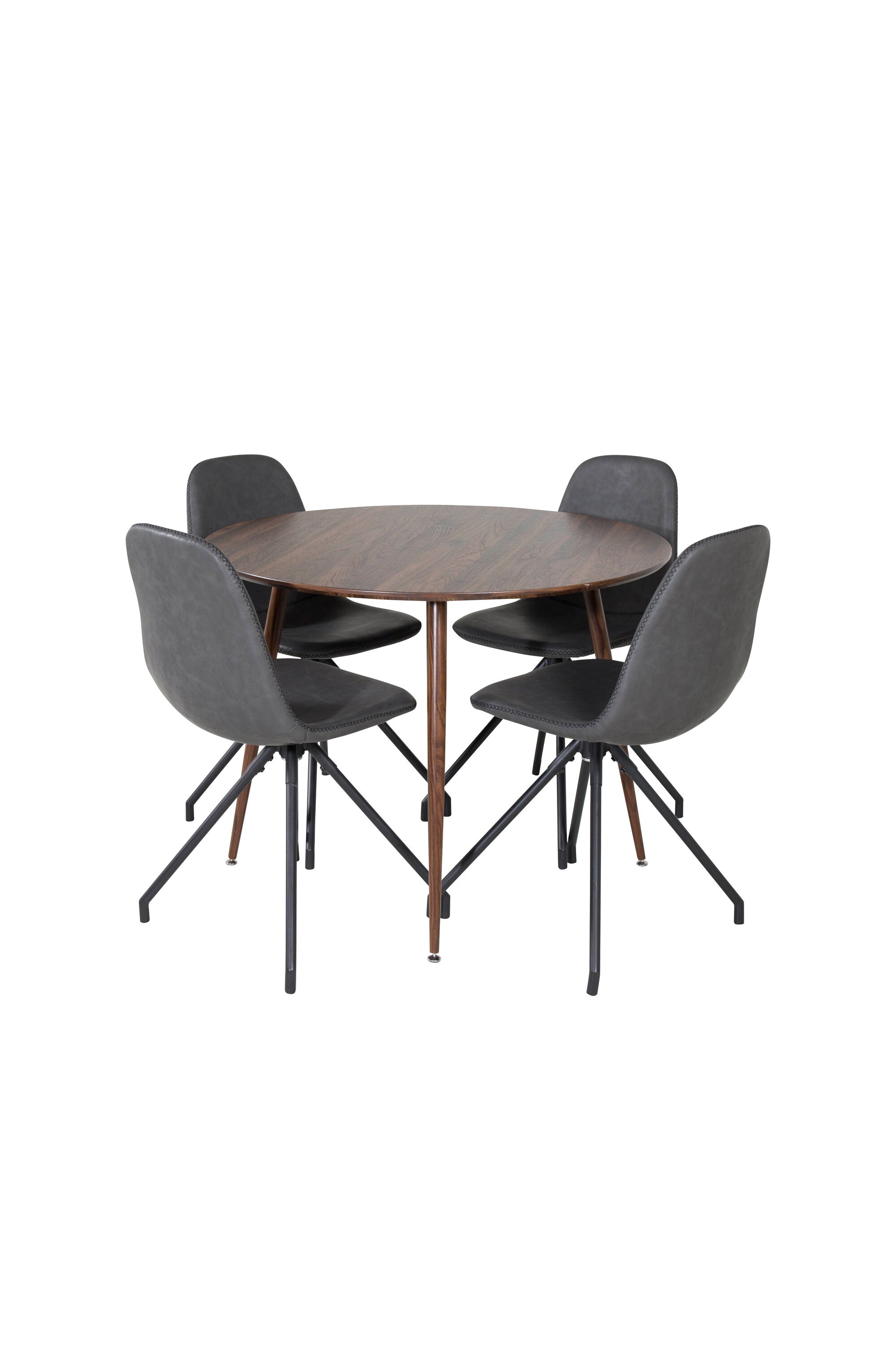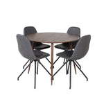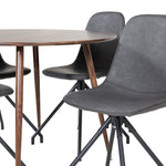 Plaza Kulatý stůl 100 cm - Ořechová deska - Ořechové nohy+Jídelní židle Polar s funkcí Spin - černá Nohy - Černá PU - Černé Stitches_4