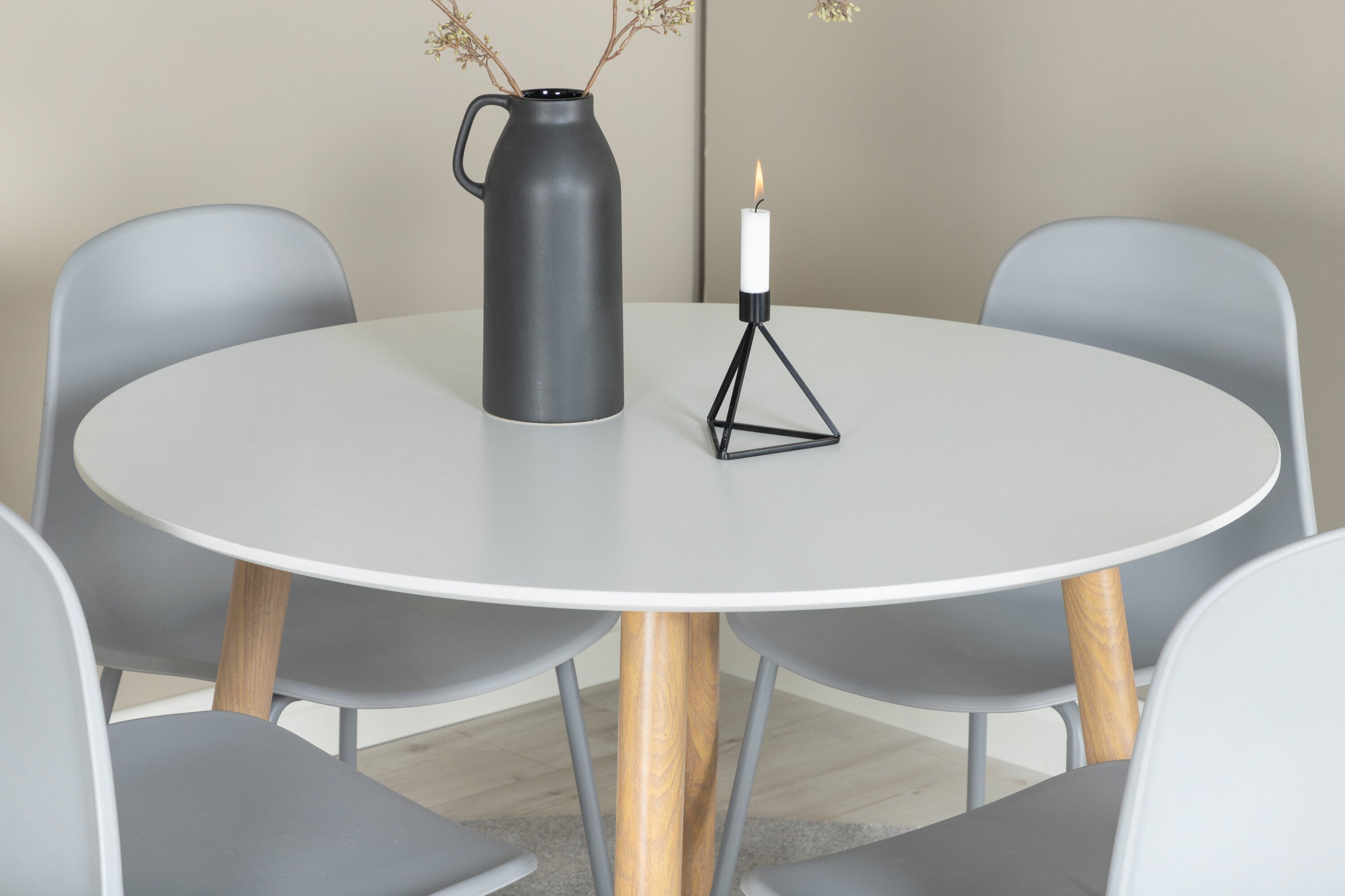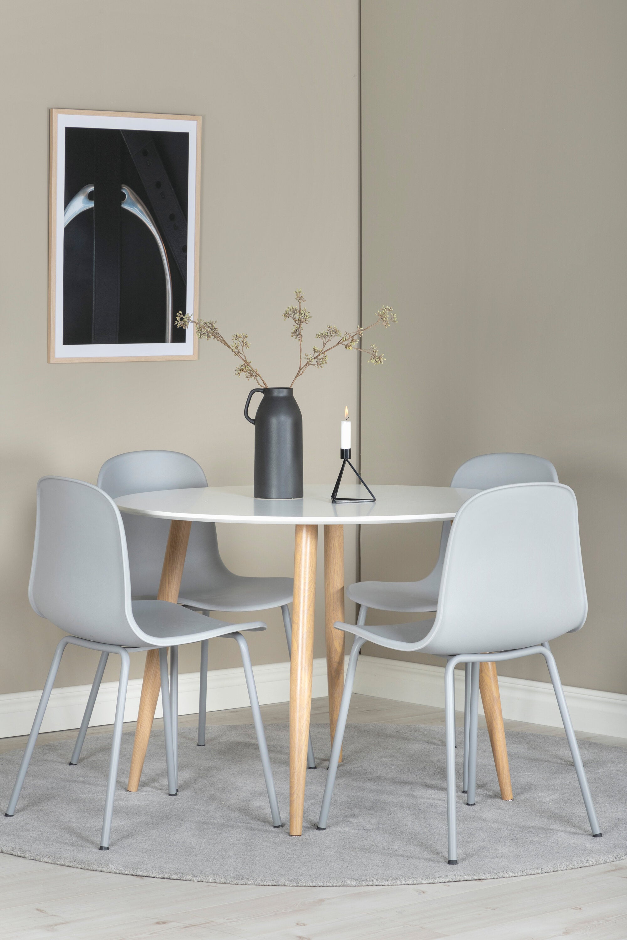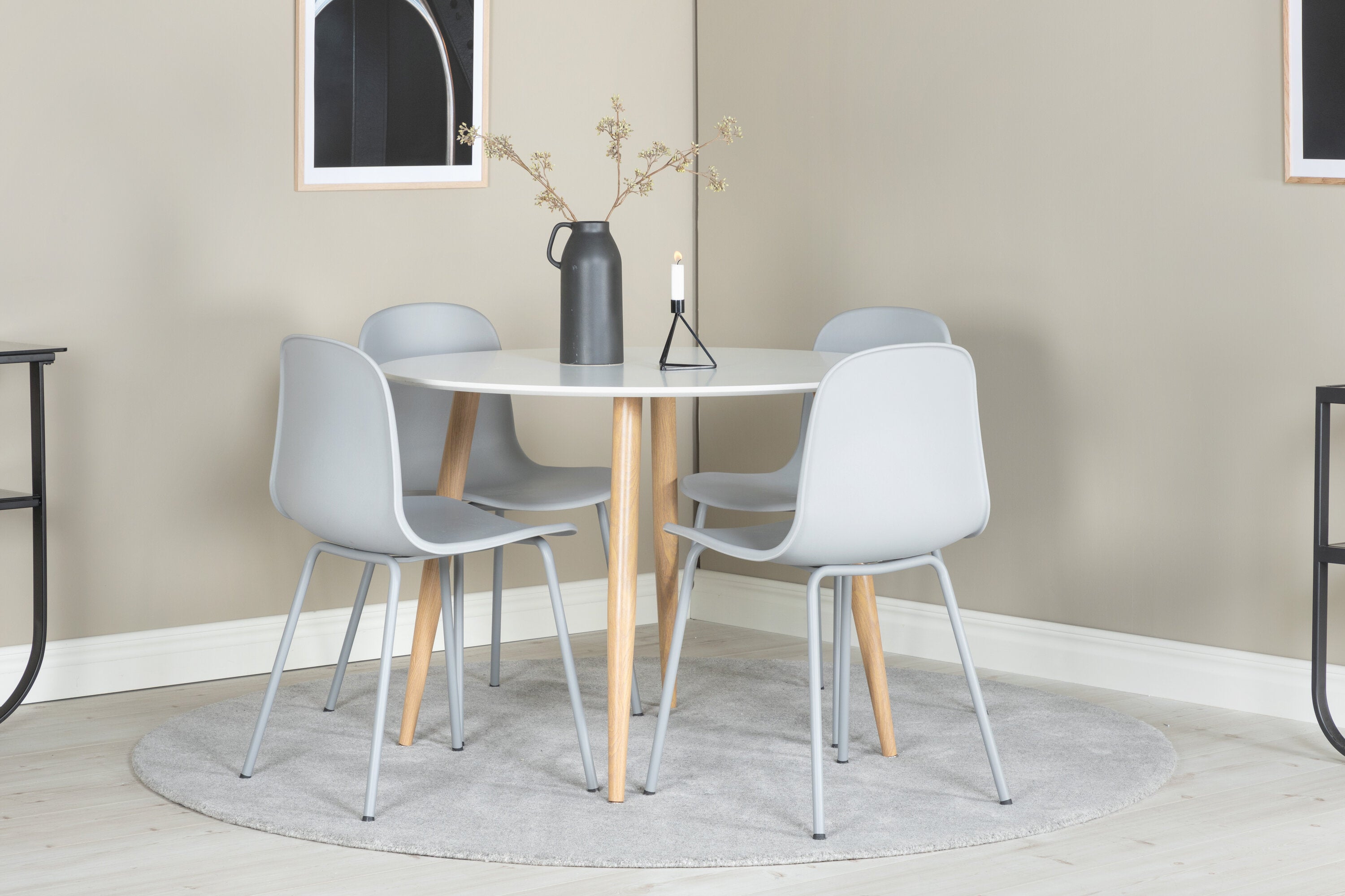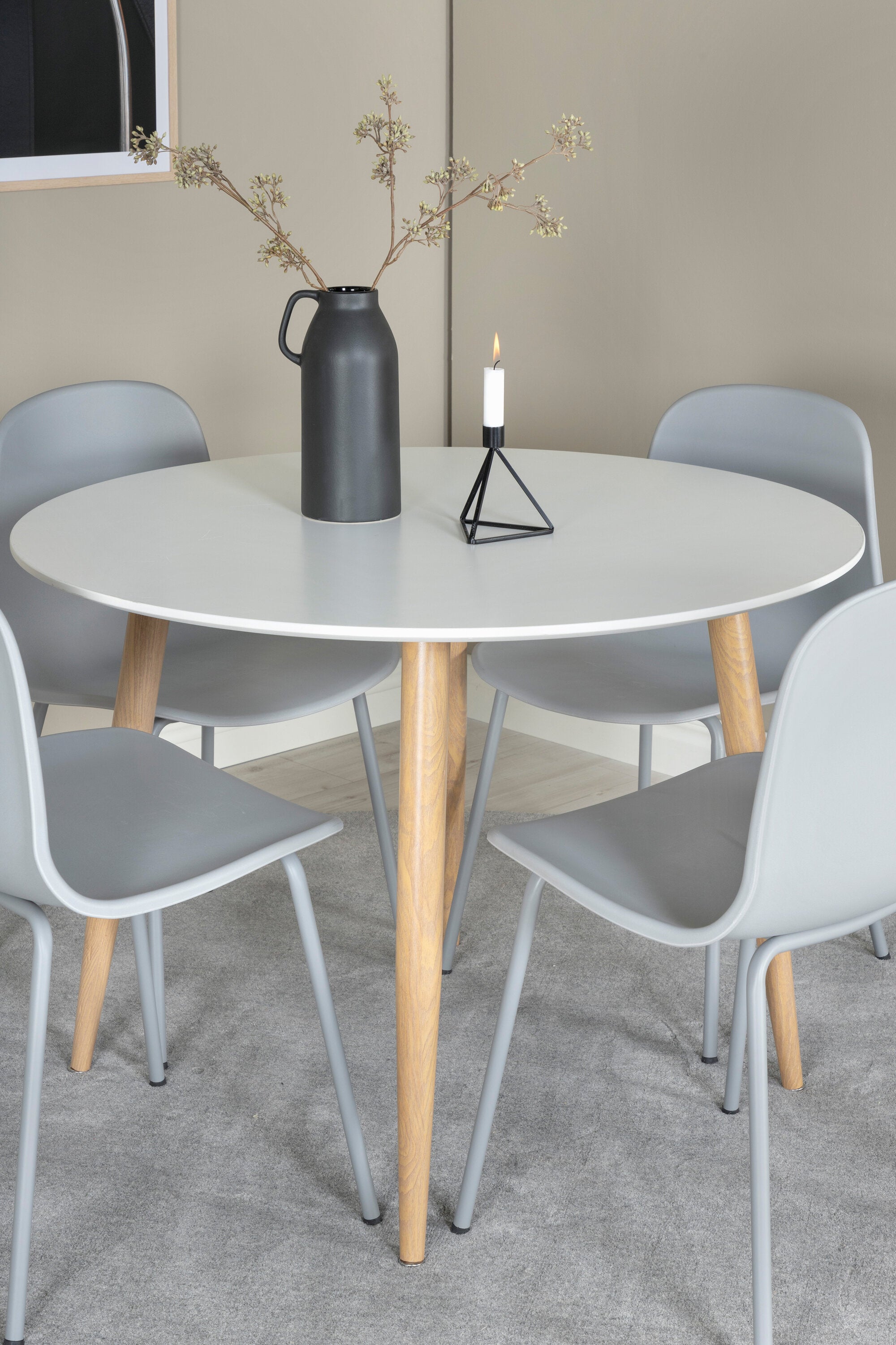 Plaza Runt Matbord - Ek-Look / Vit - ø100*H75 + Jídelní židle Arctic - šedé nohy - šedý plast _4