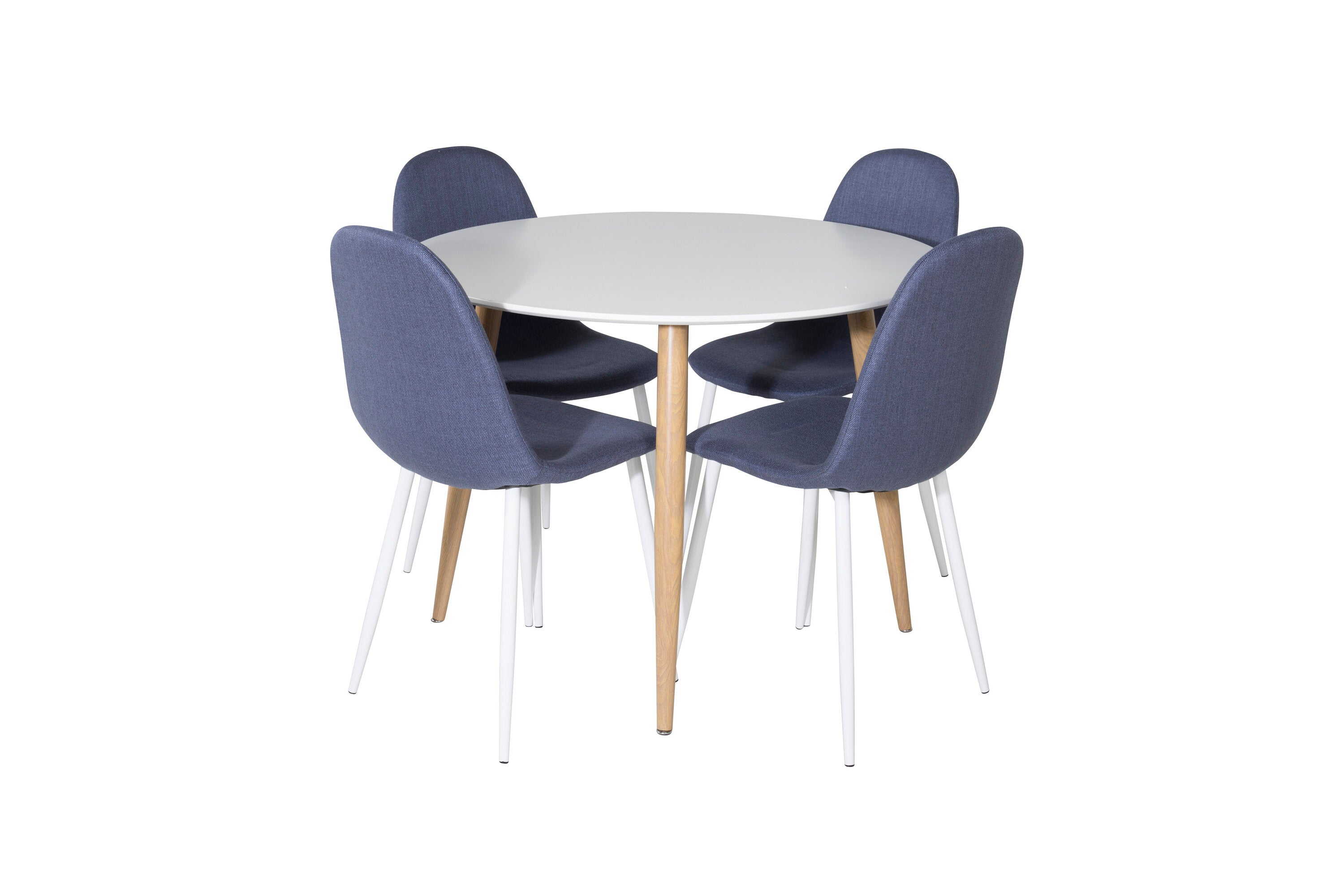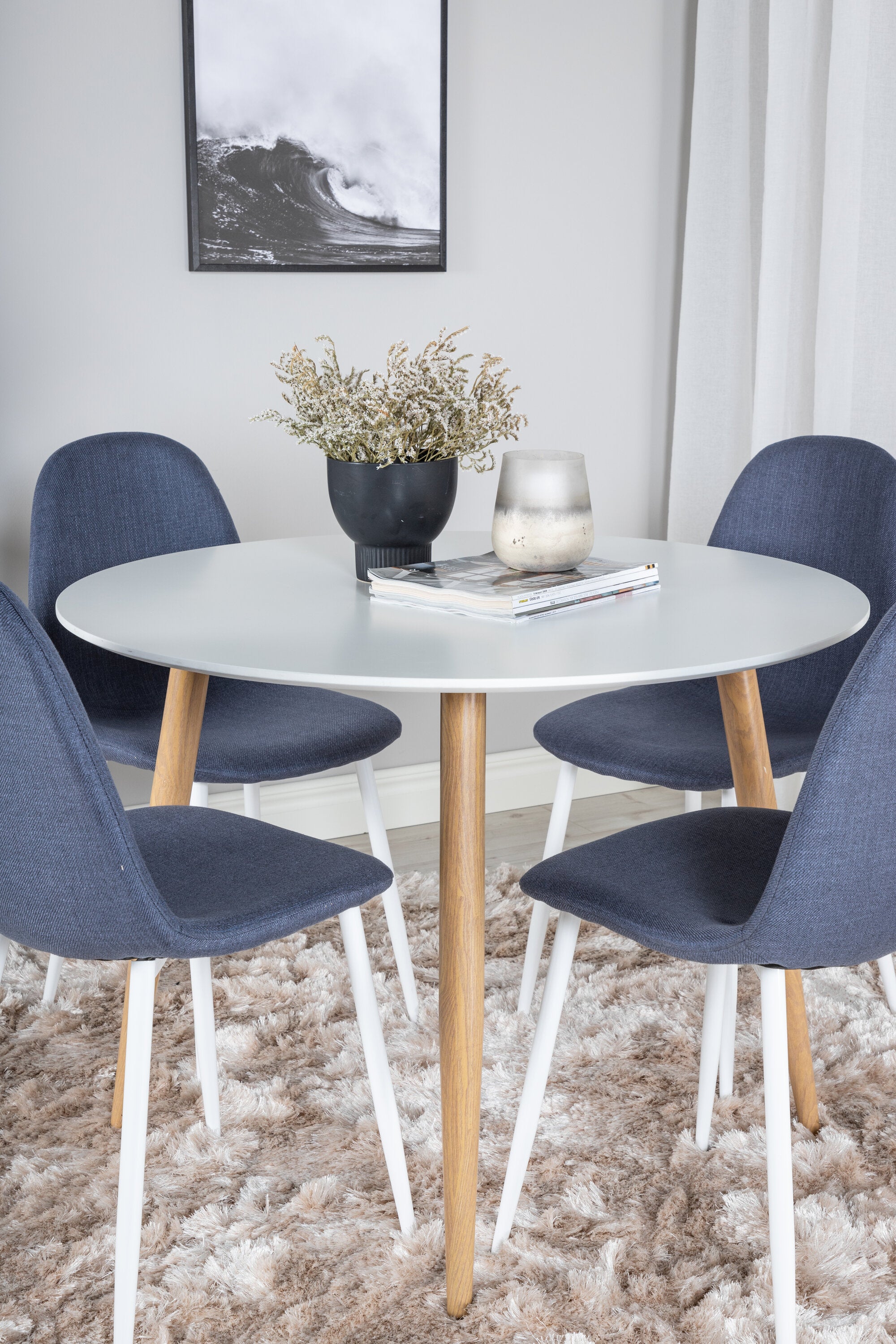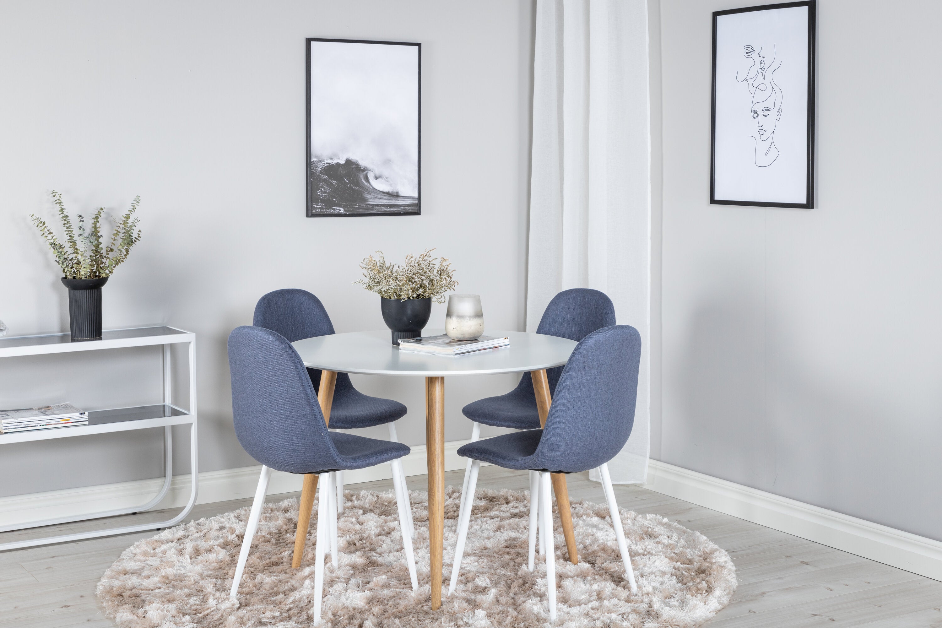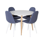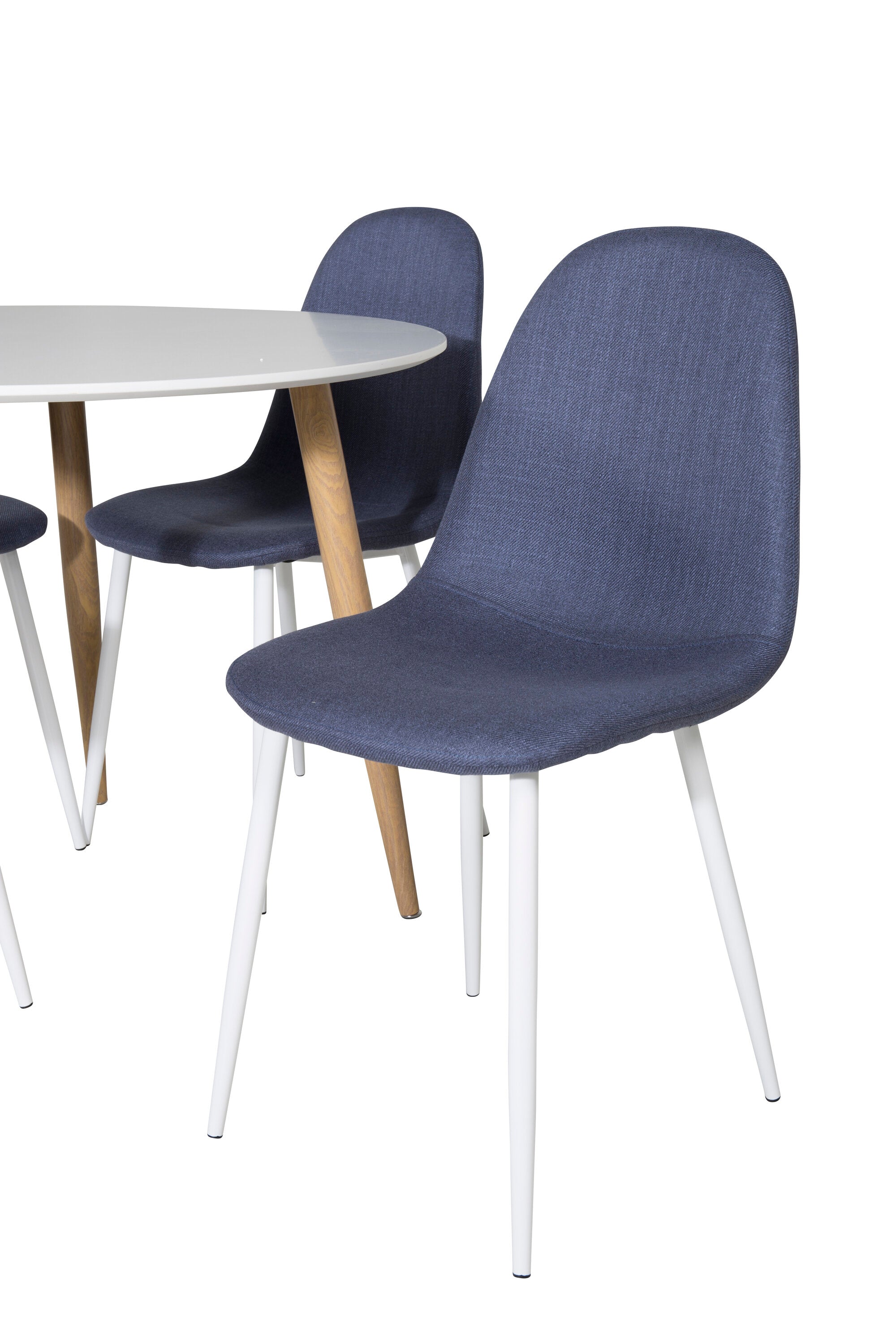 Plaza Runt Matbord - Ek-Look / Vit - ø100*H75 + Jídelní židle Polar - Bílé nohy - Modrá látka _4