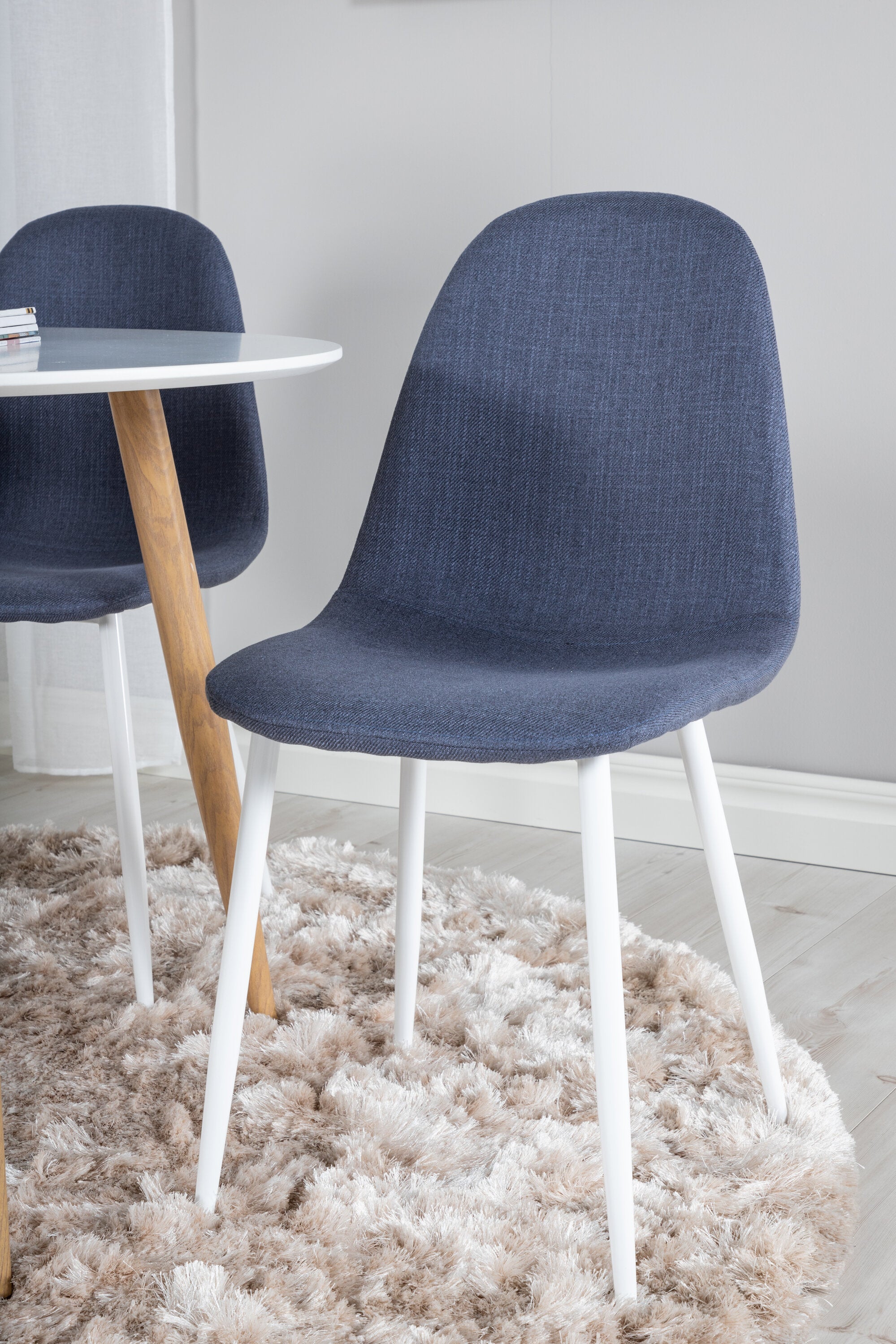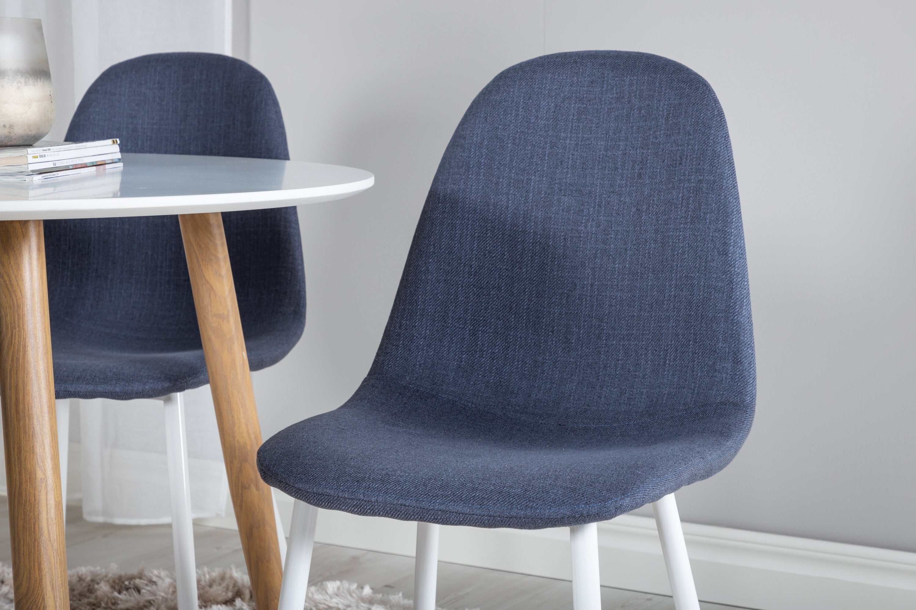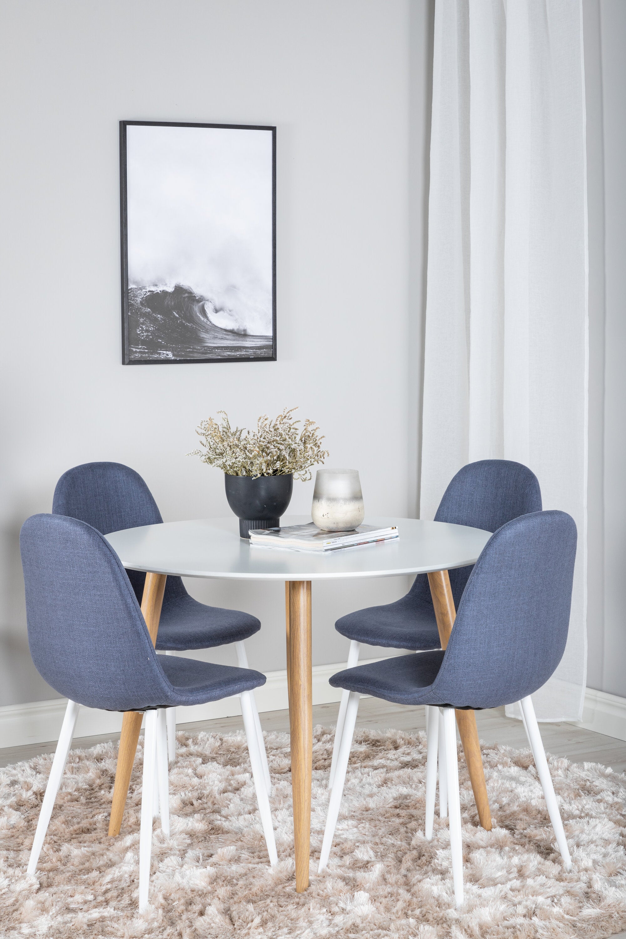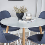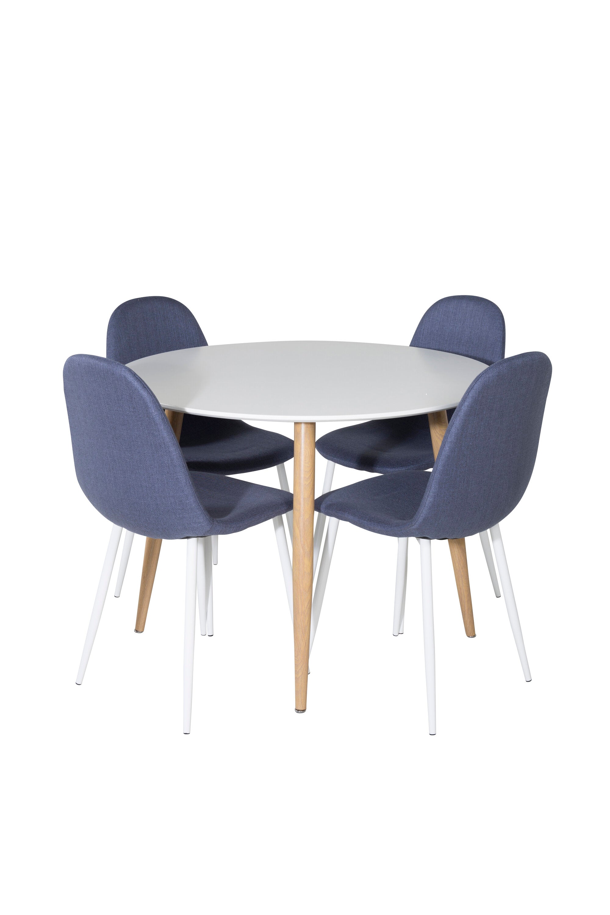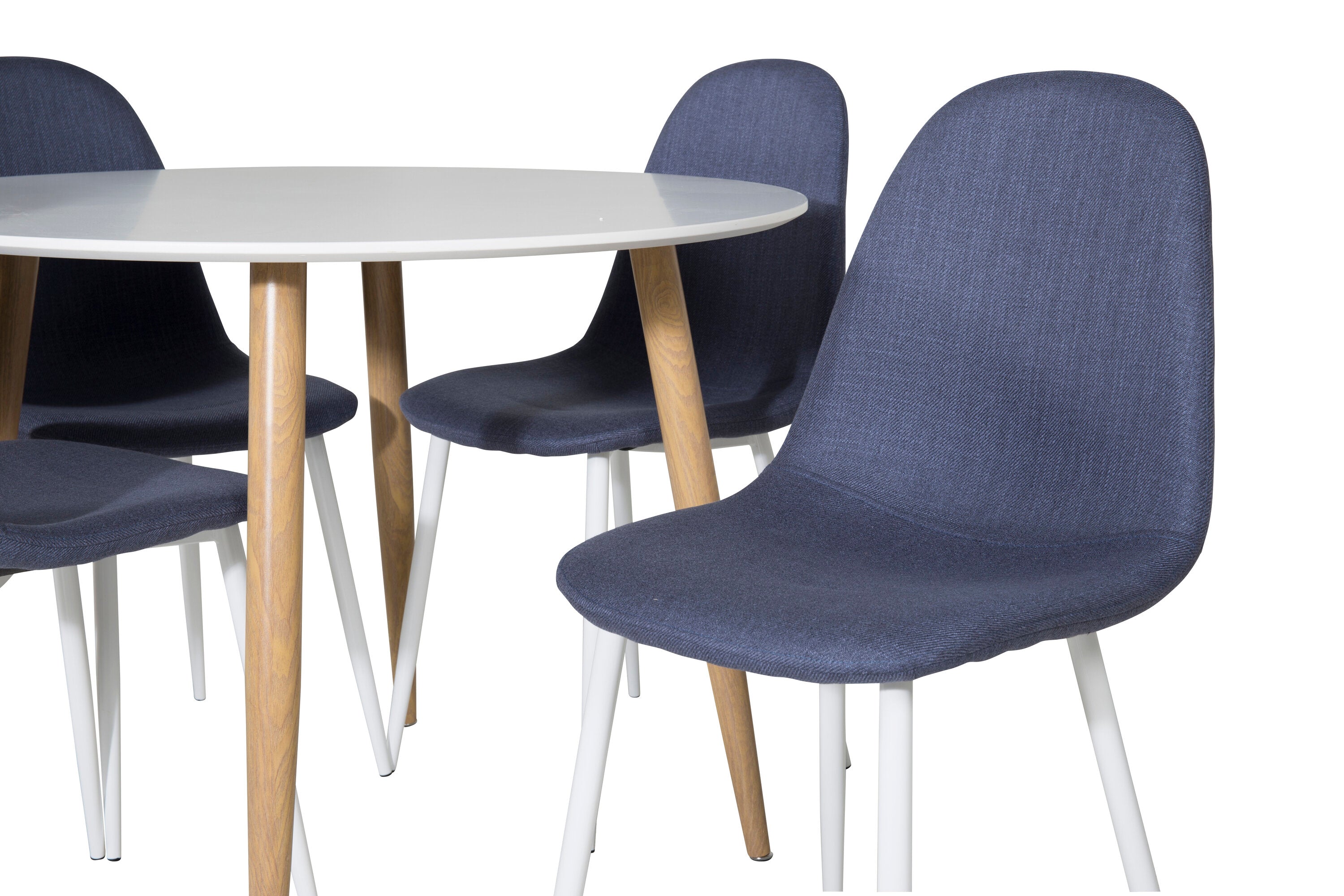 Plaza Runt Matbord - Ek-Look / Vit - ø100*H75 + Jídelní židle Polar - Bílé nohy - Modrá látka _4
