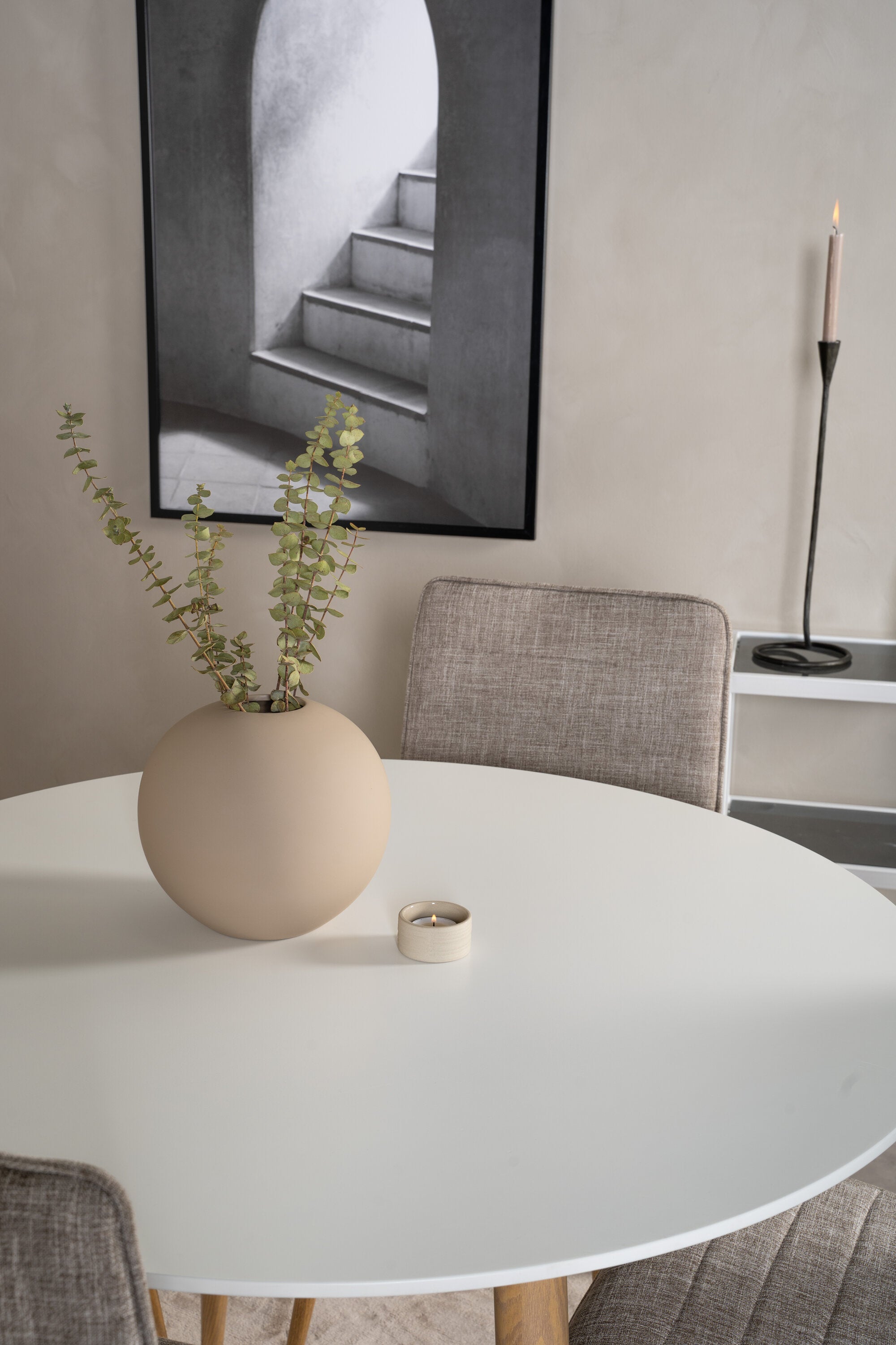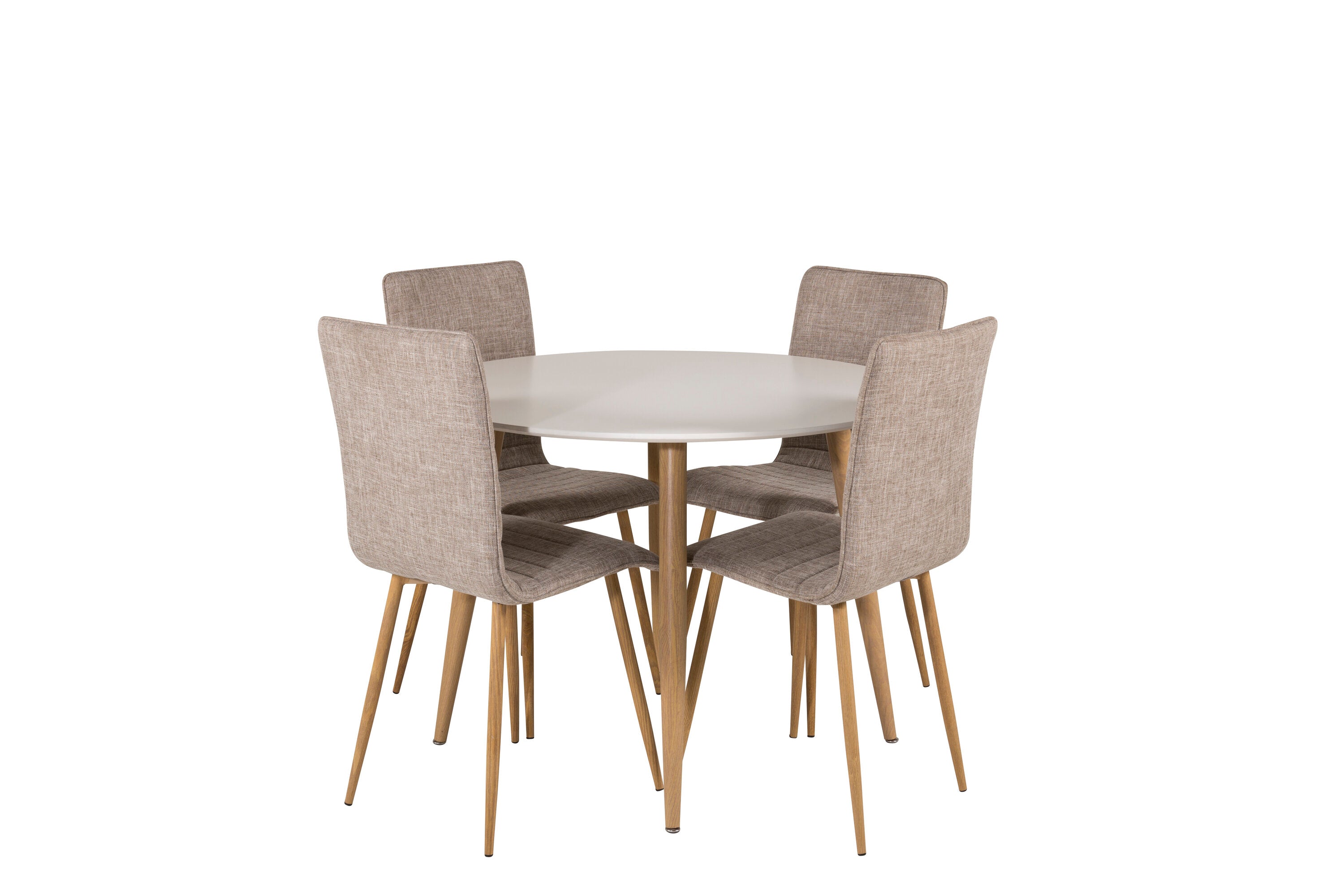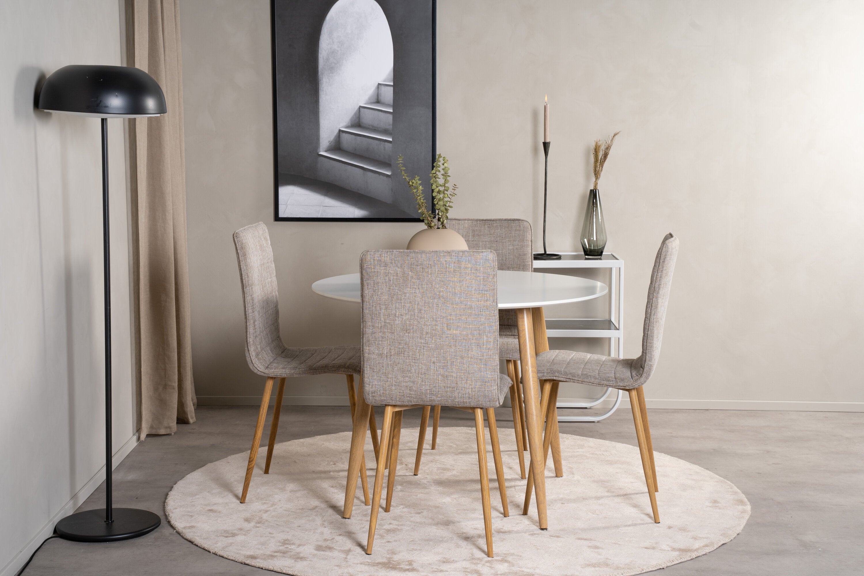 Plaza Runt Matbord - Ek-Look / Vit - ø100*H75 +Jídelní židle Windu Lyx - Dub-Look / Světle šedá _4
