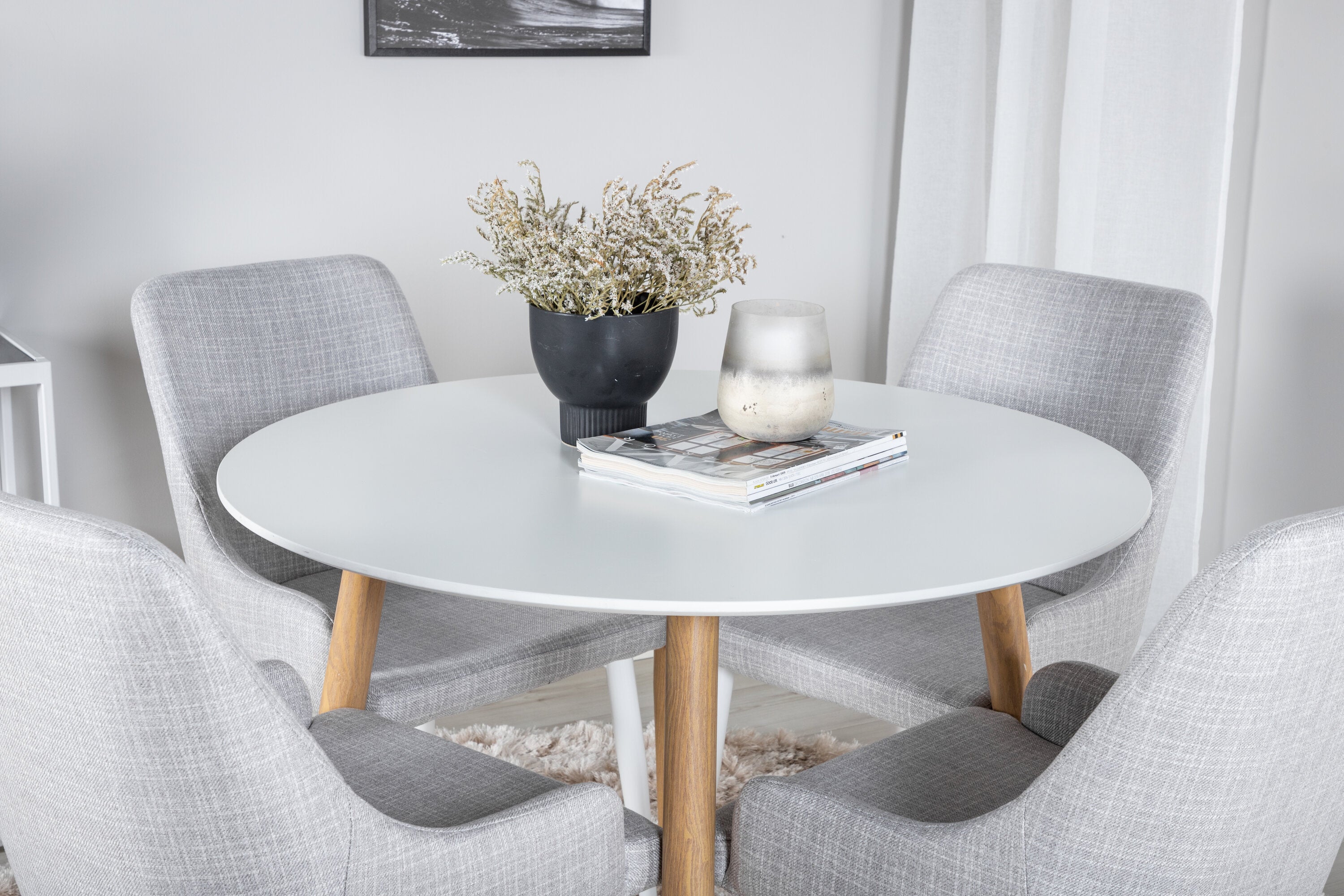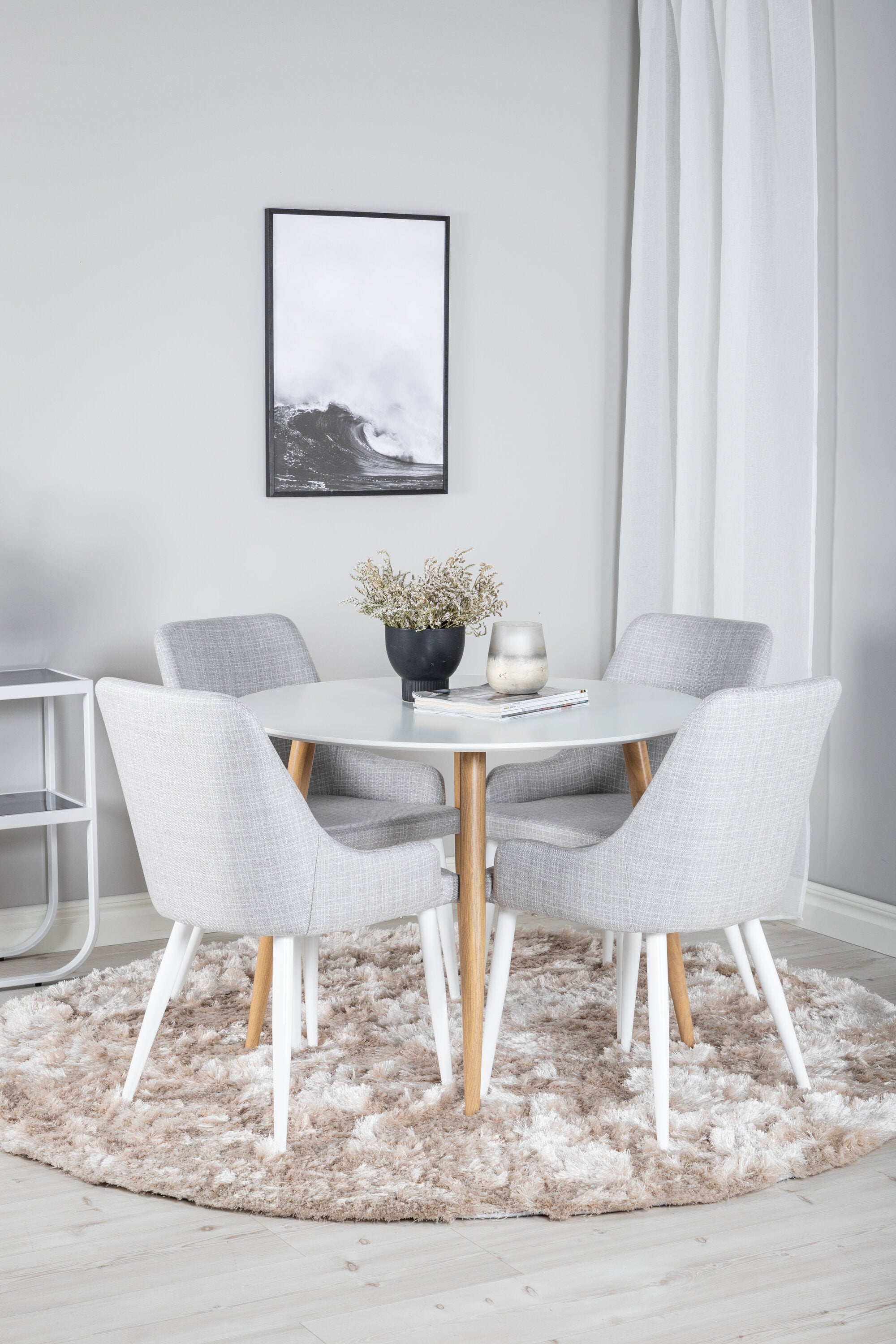 Plaza Runt Matbord - Ek-Look / Vit - ø100*H75 +Plaza Jídelní židle - Bílé nohy - Světle šedá látka _4