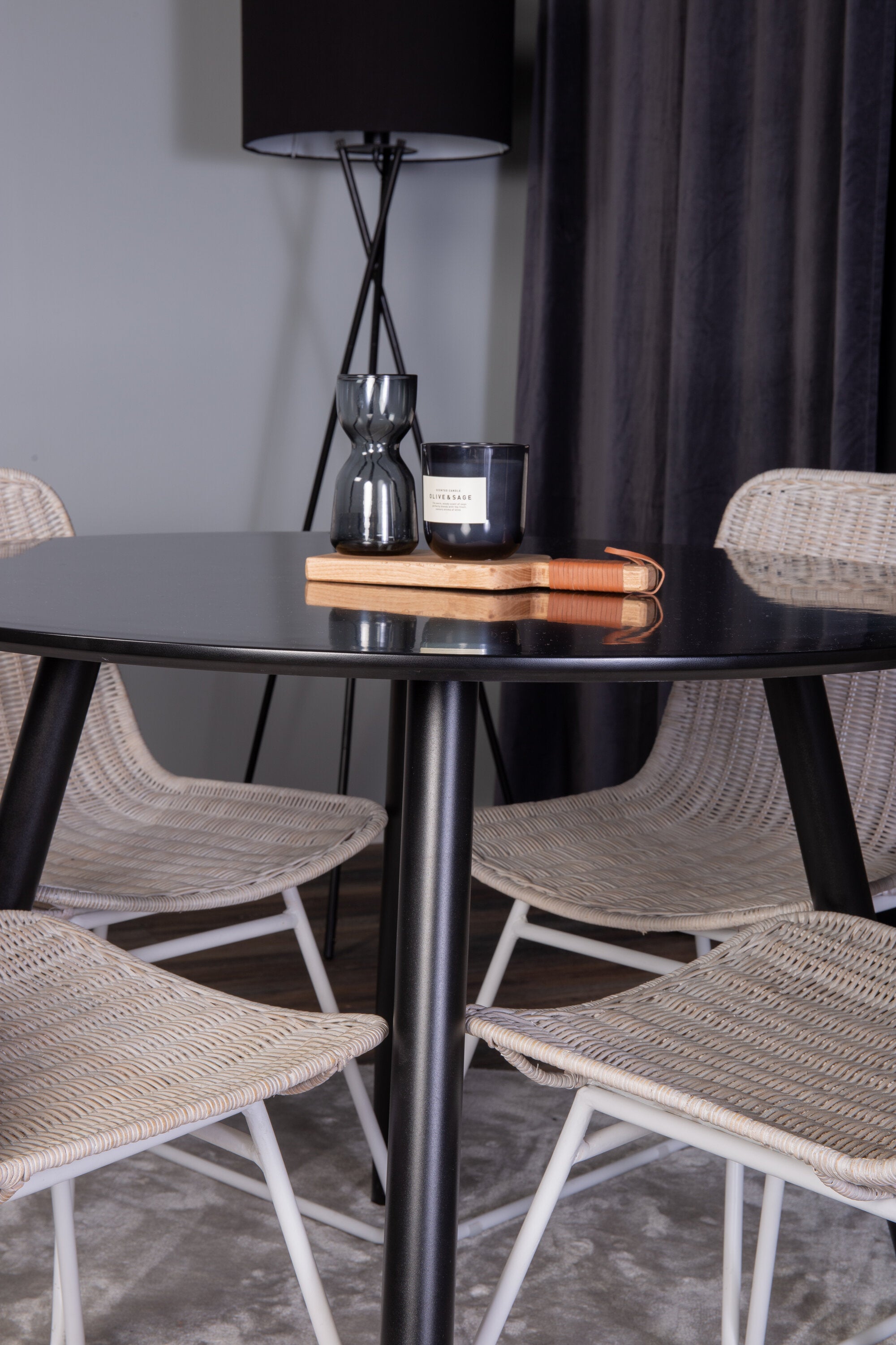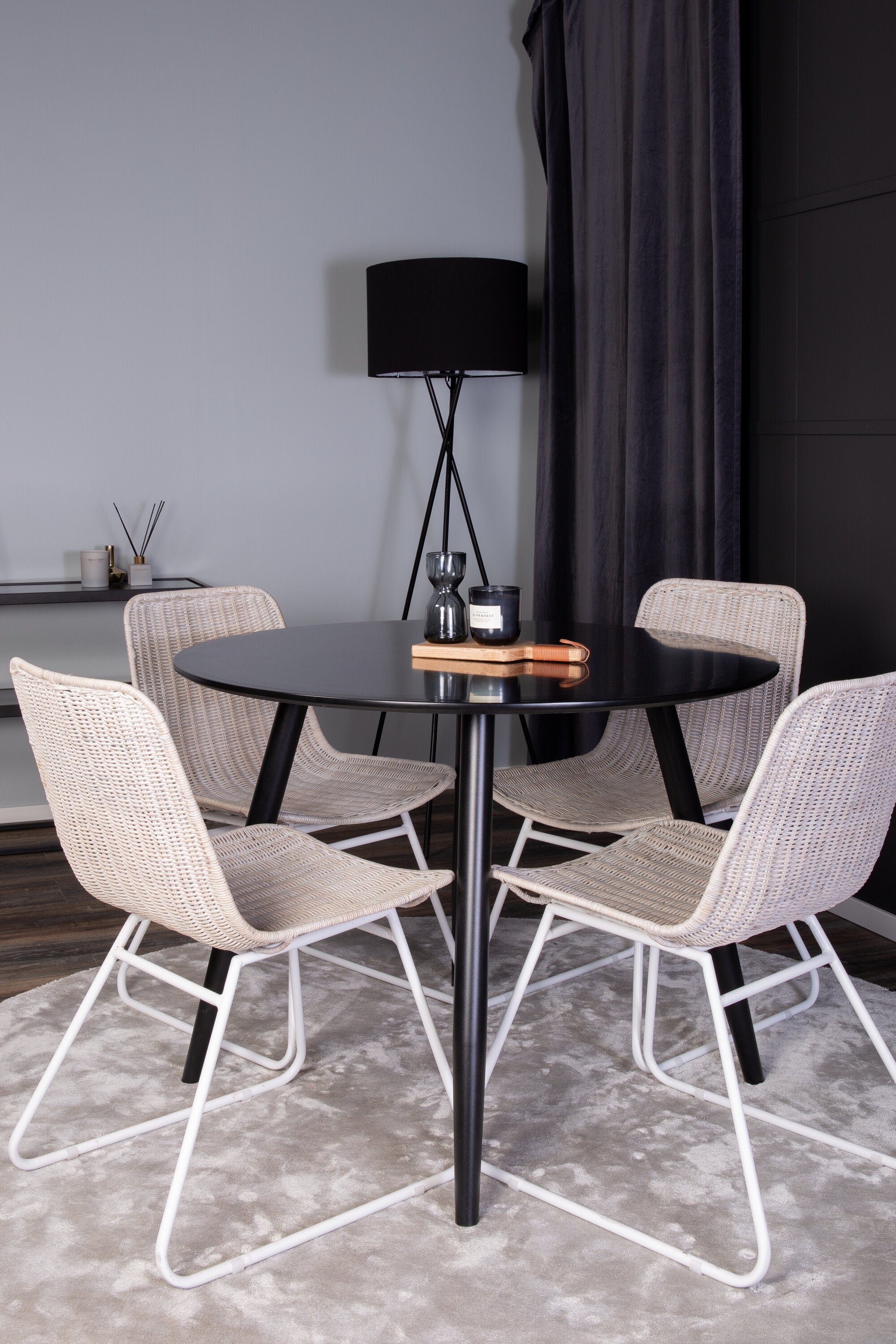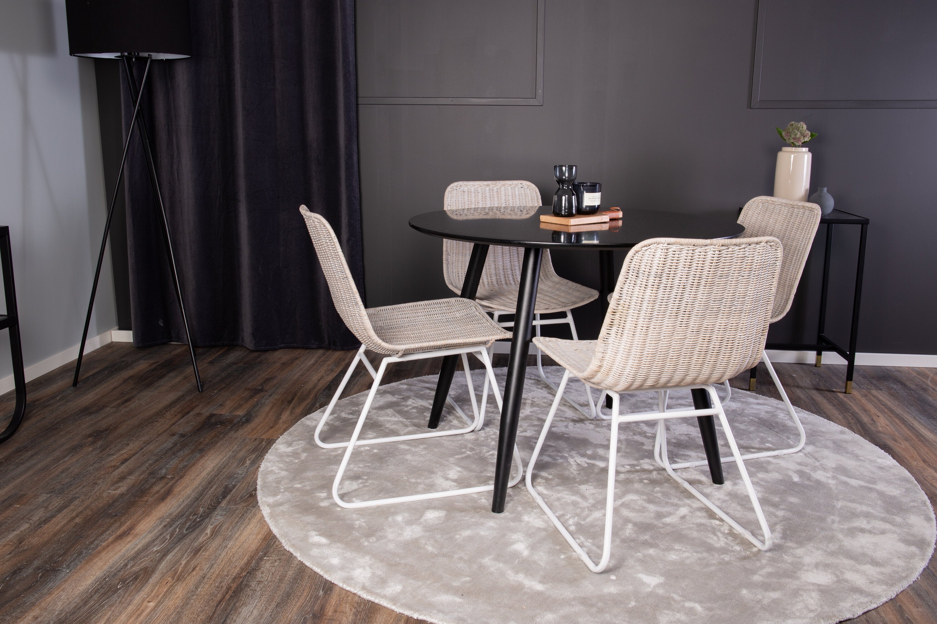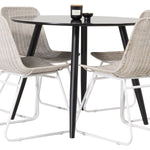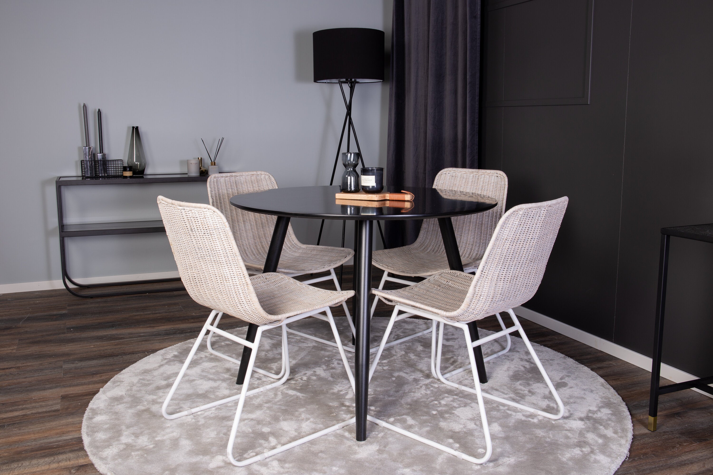 Plaza Runt Matbord - Svart / Svart - ø100*H75 +Jídelní židle Cirebon - bílá / bílá praní přírodní ratan _4