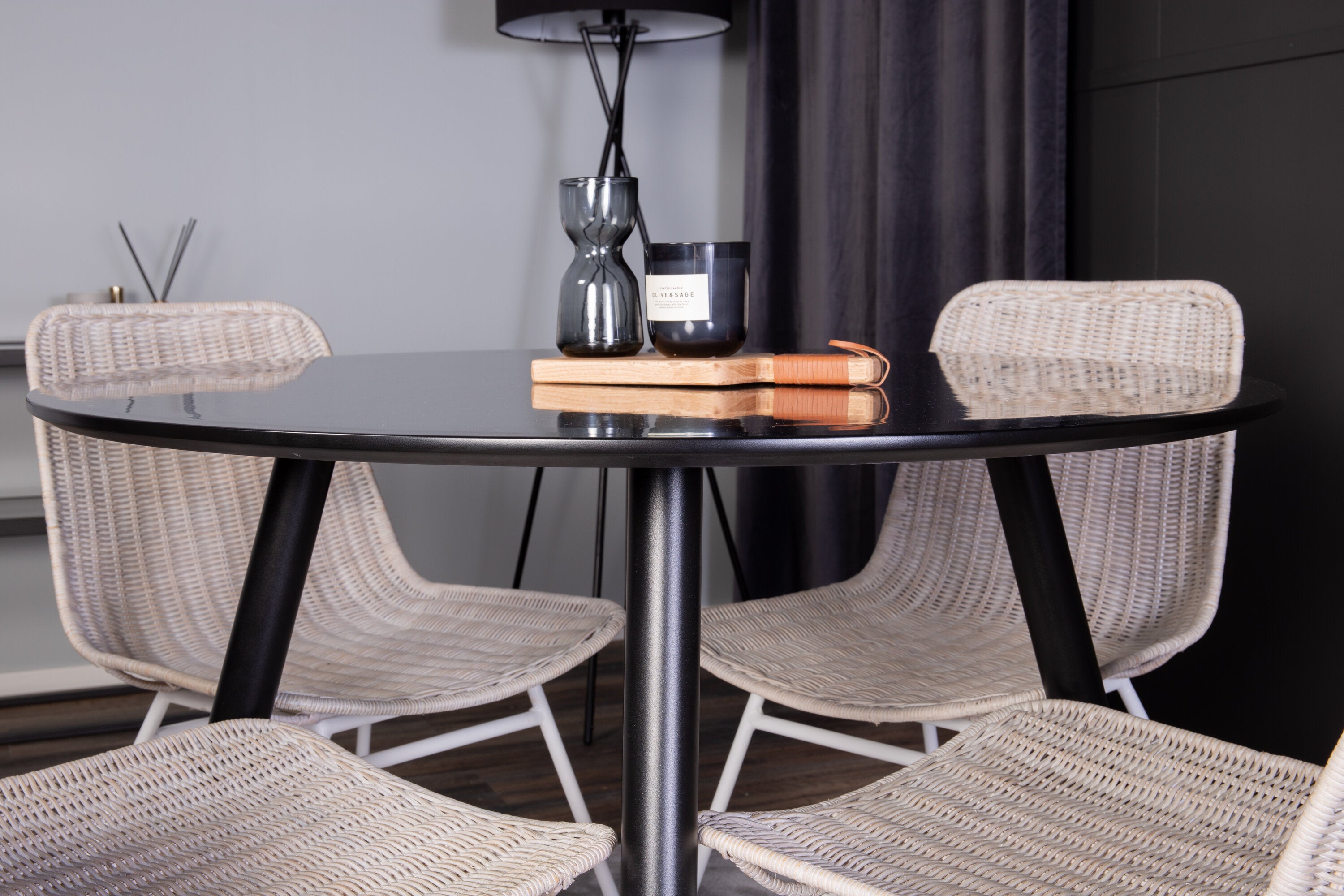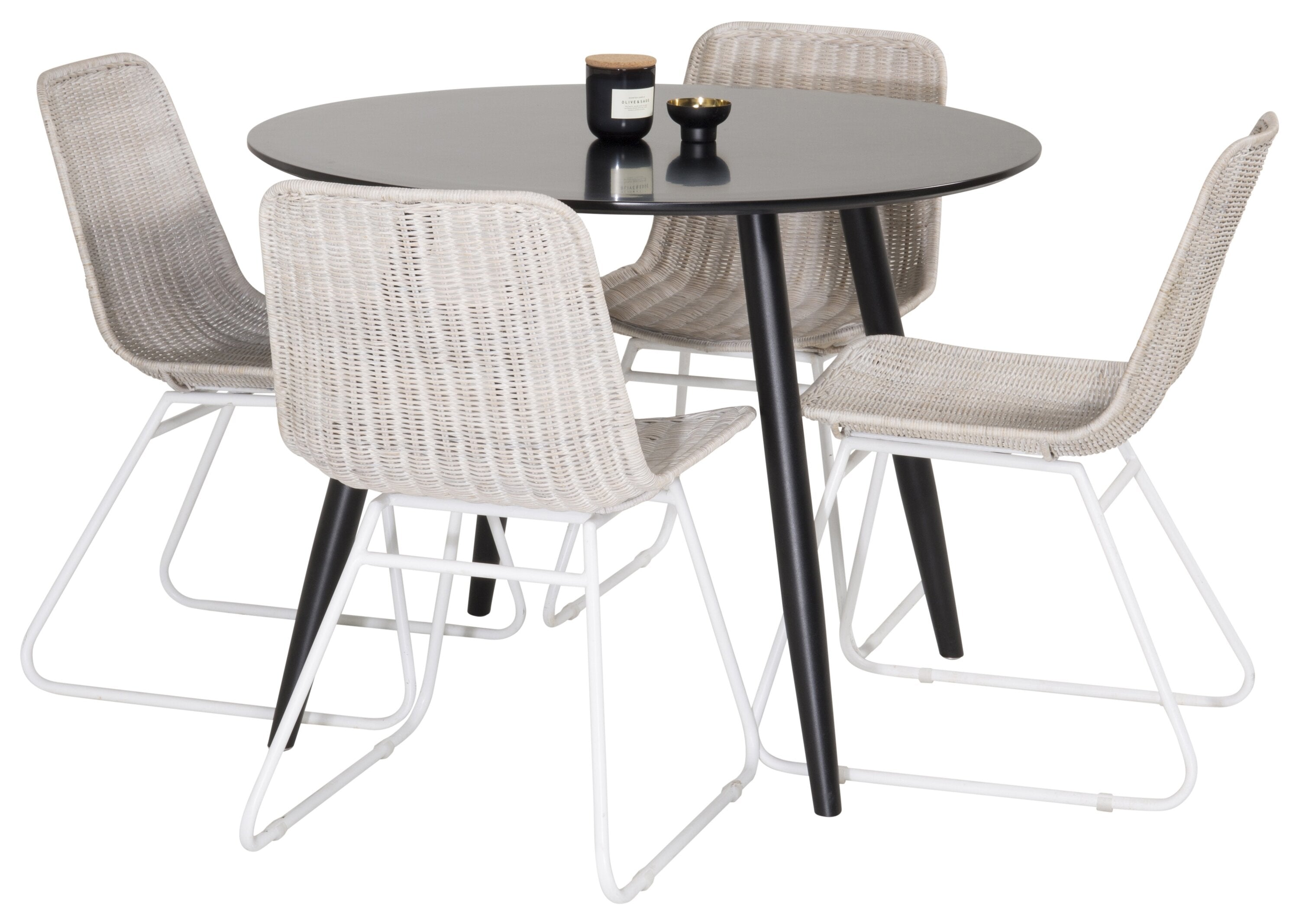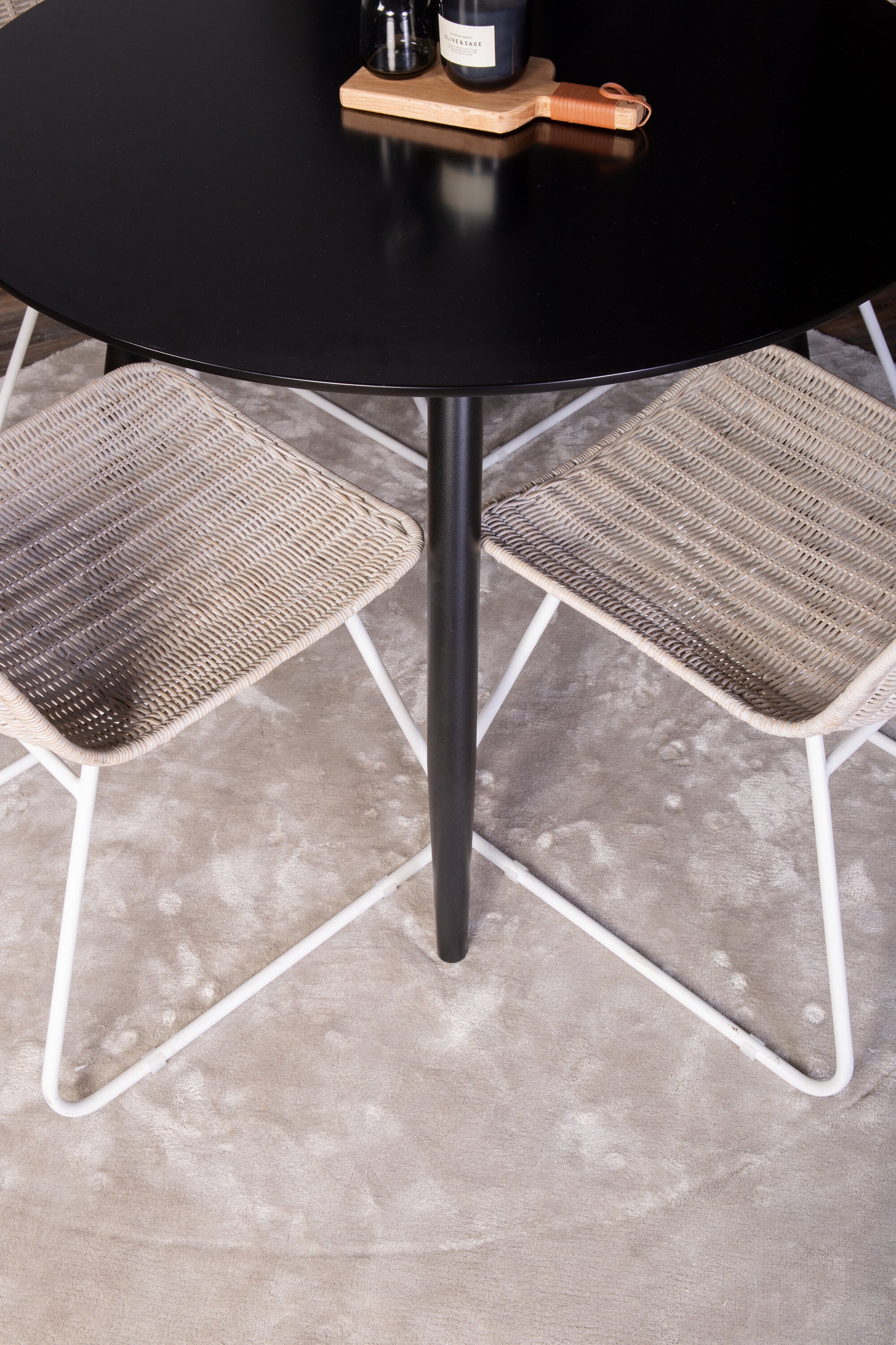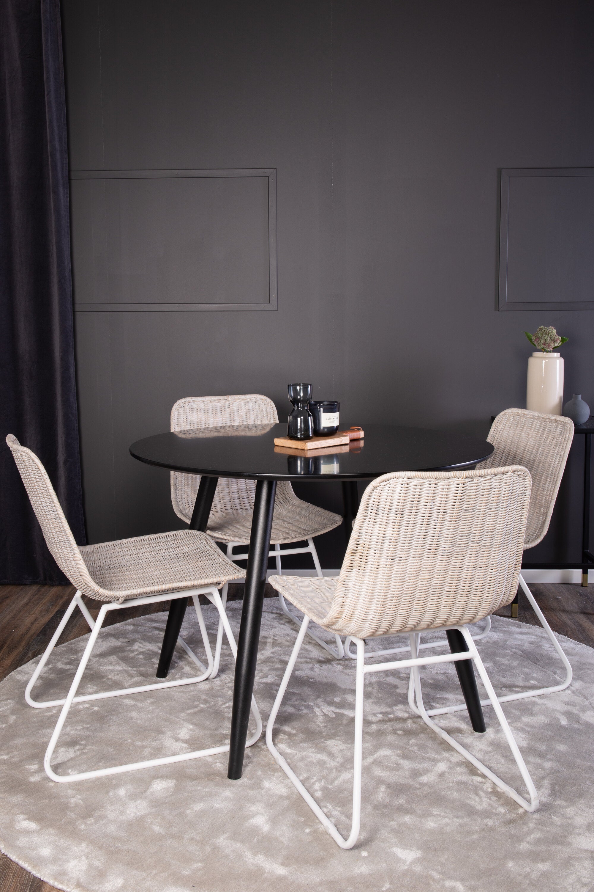 Plaza Runt Matbord - Svart / Svart - ø100*H75 +Jídelní židle Cirebon - bílá / bílá praní přírodní ratan _4
