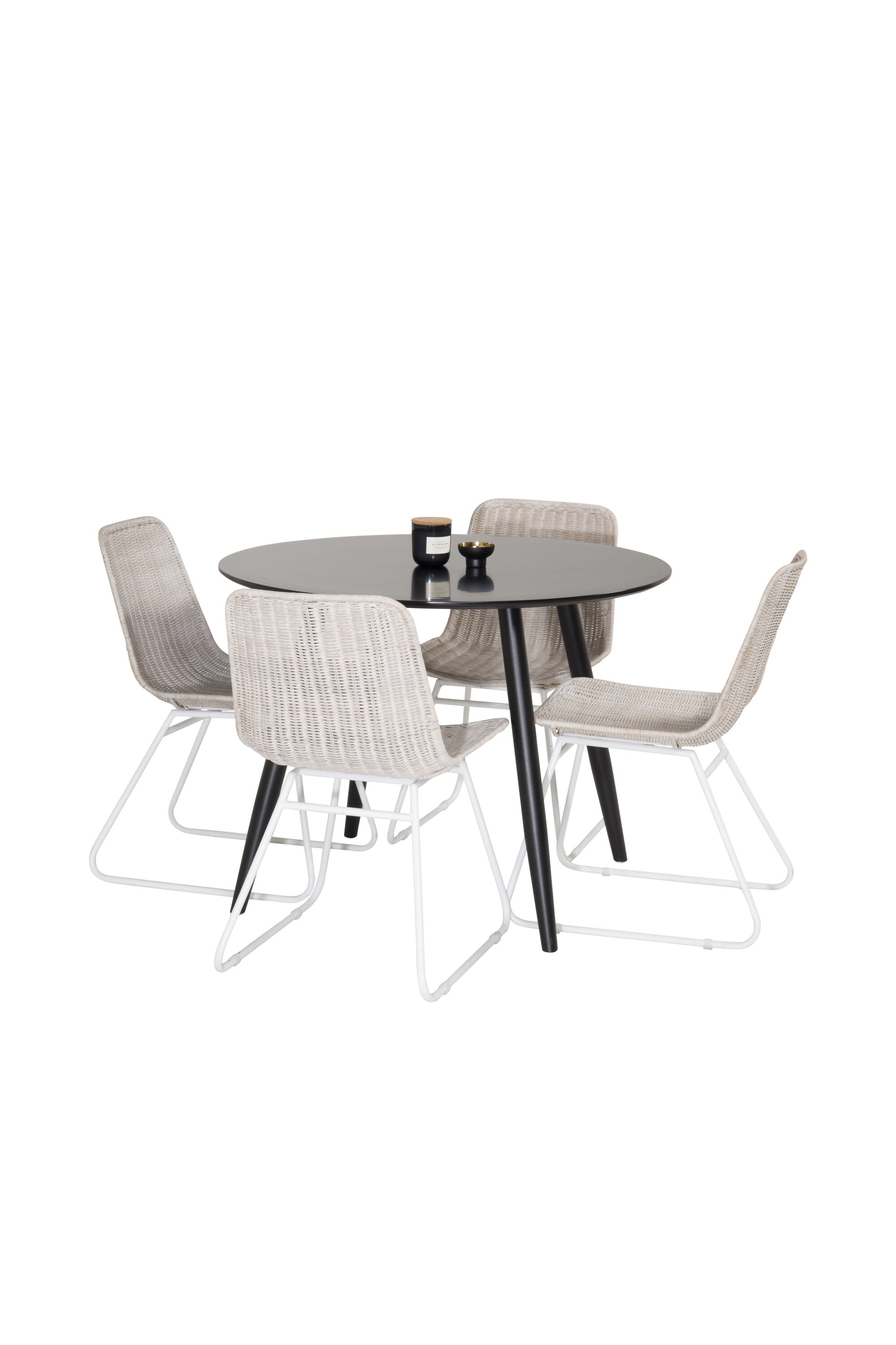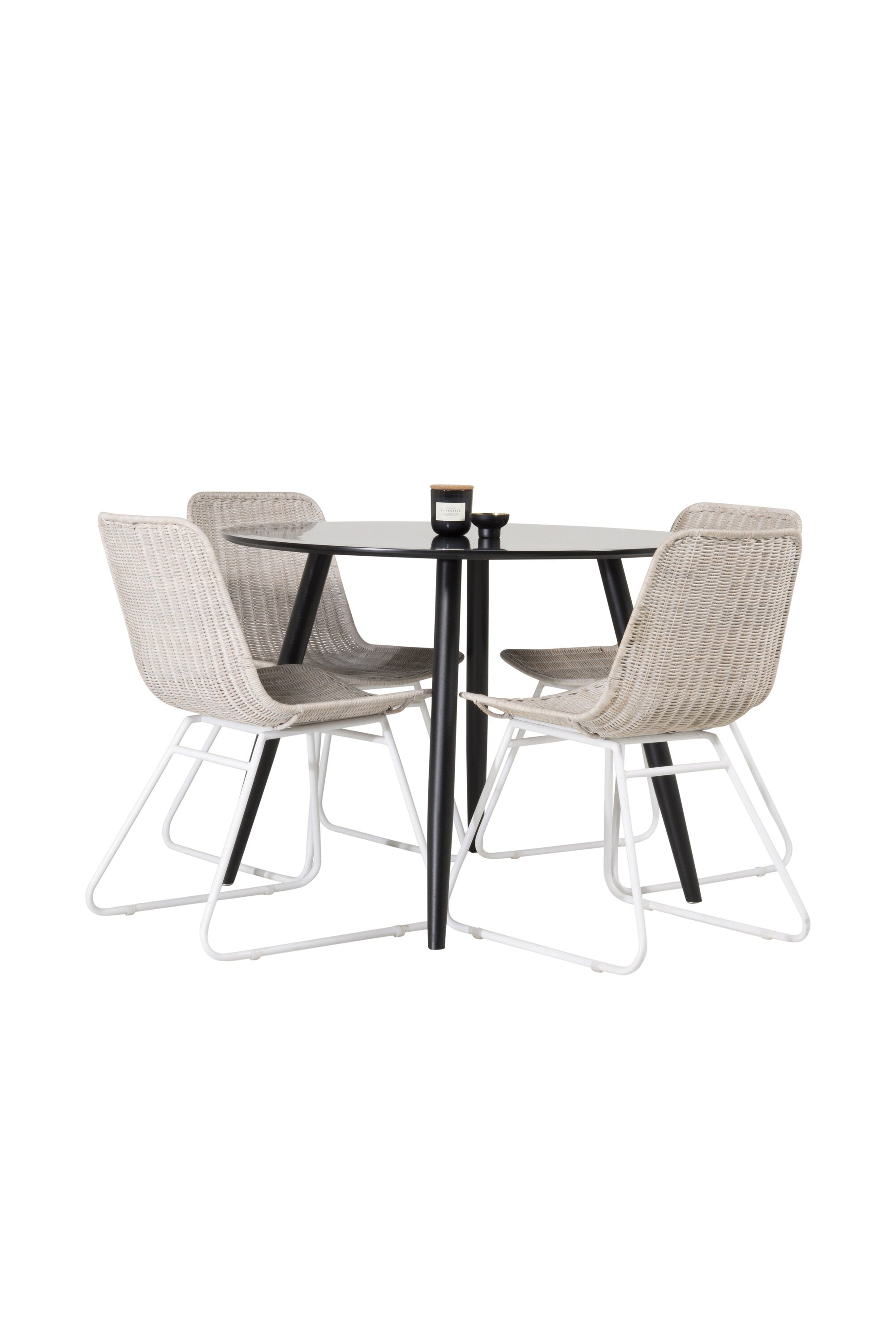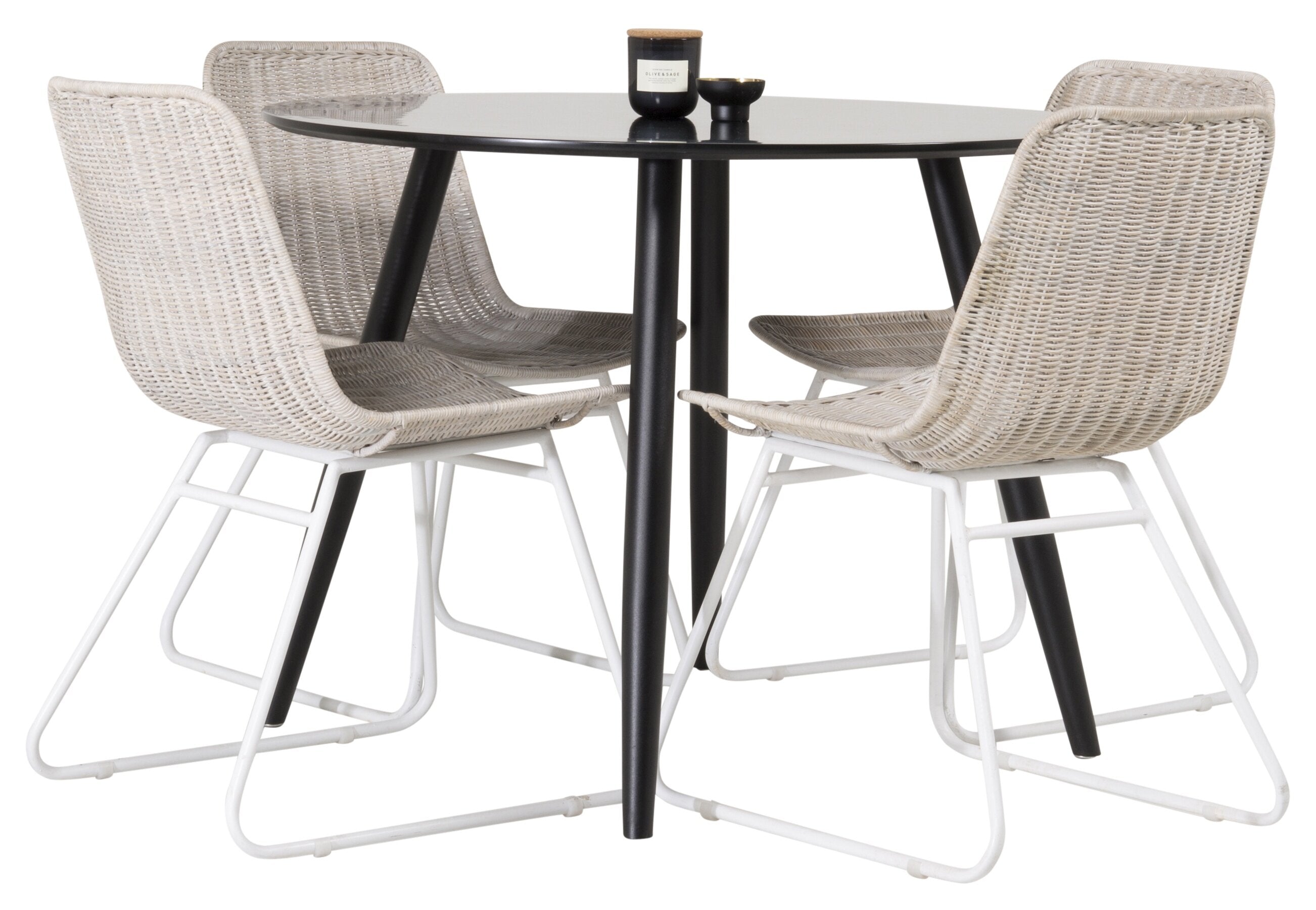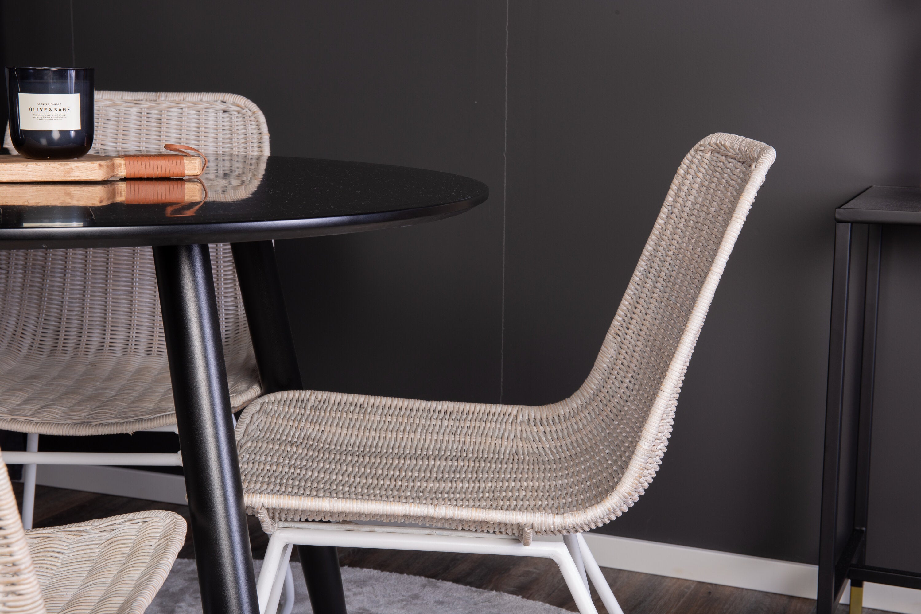 Plaza Runt Matbord - Svart / Svart - ø100*H75 +Jídelní židle Cirebon - bílá / bílá praní přírodní ratan _4