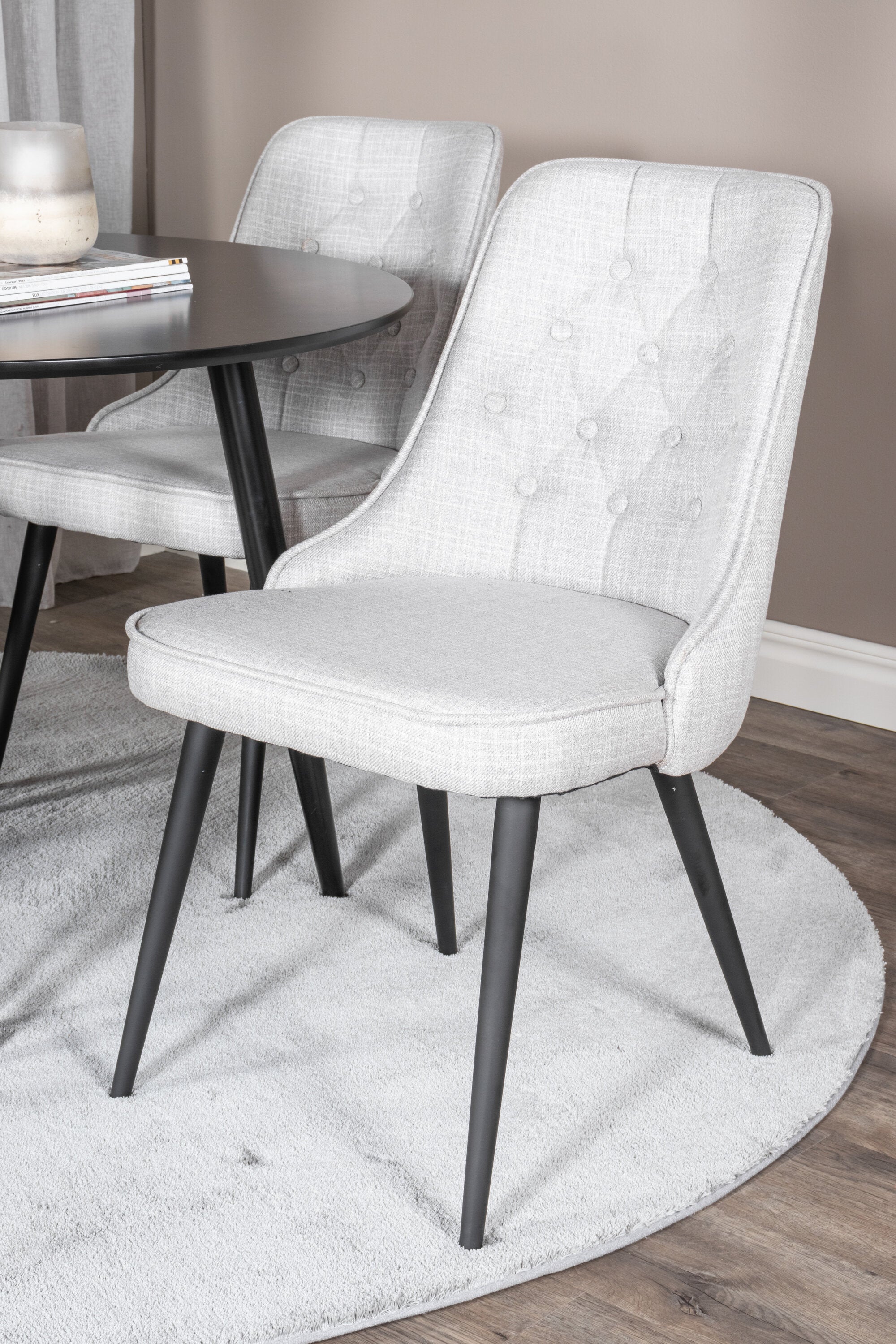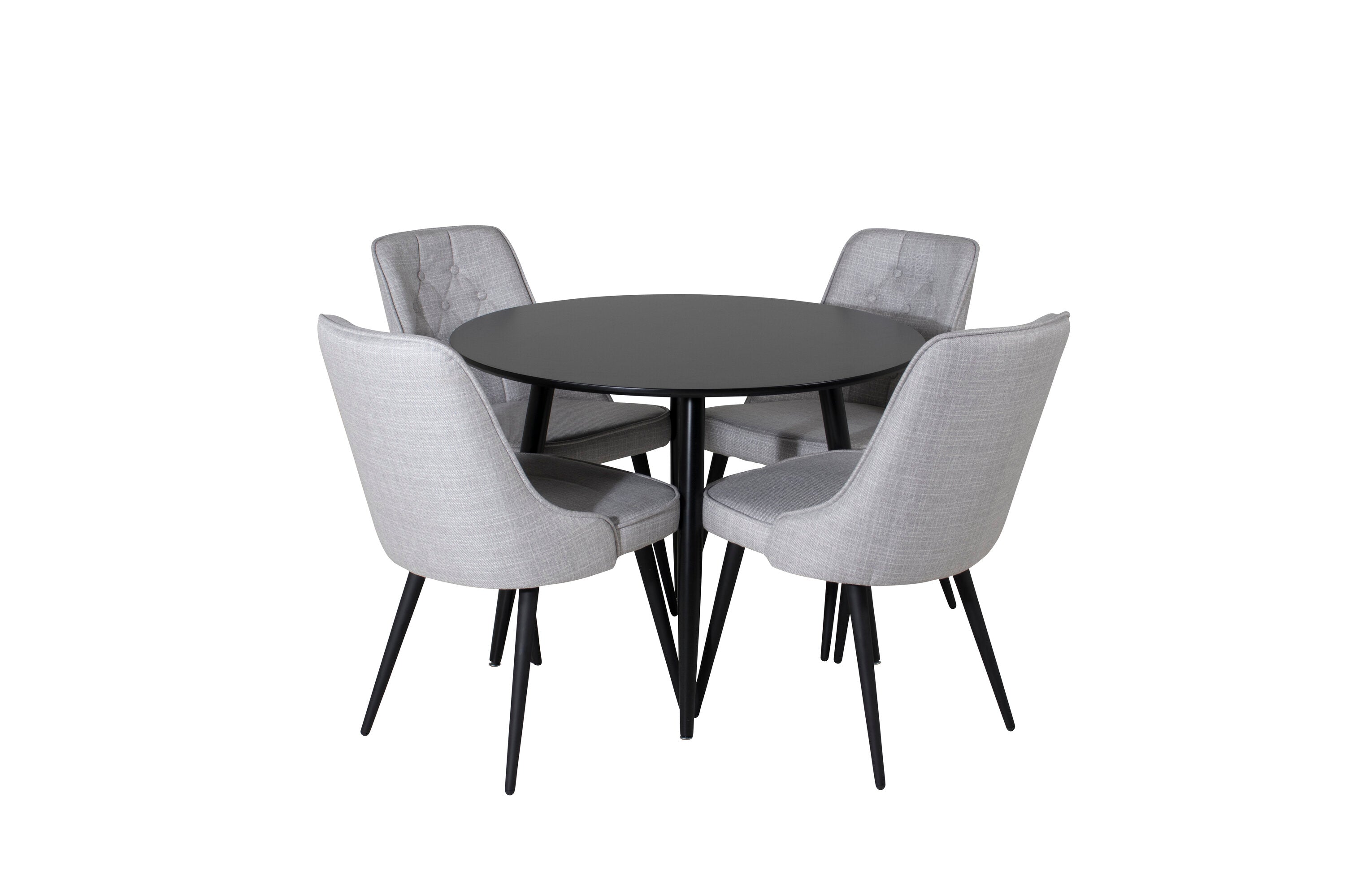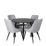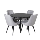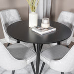 Plaza Runt Matbord - Svart / Svart - ø100*H75 +Jídelní židle Velvet Deluxe - Černé nohy - Světle šedá látka _4