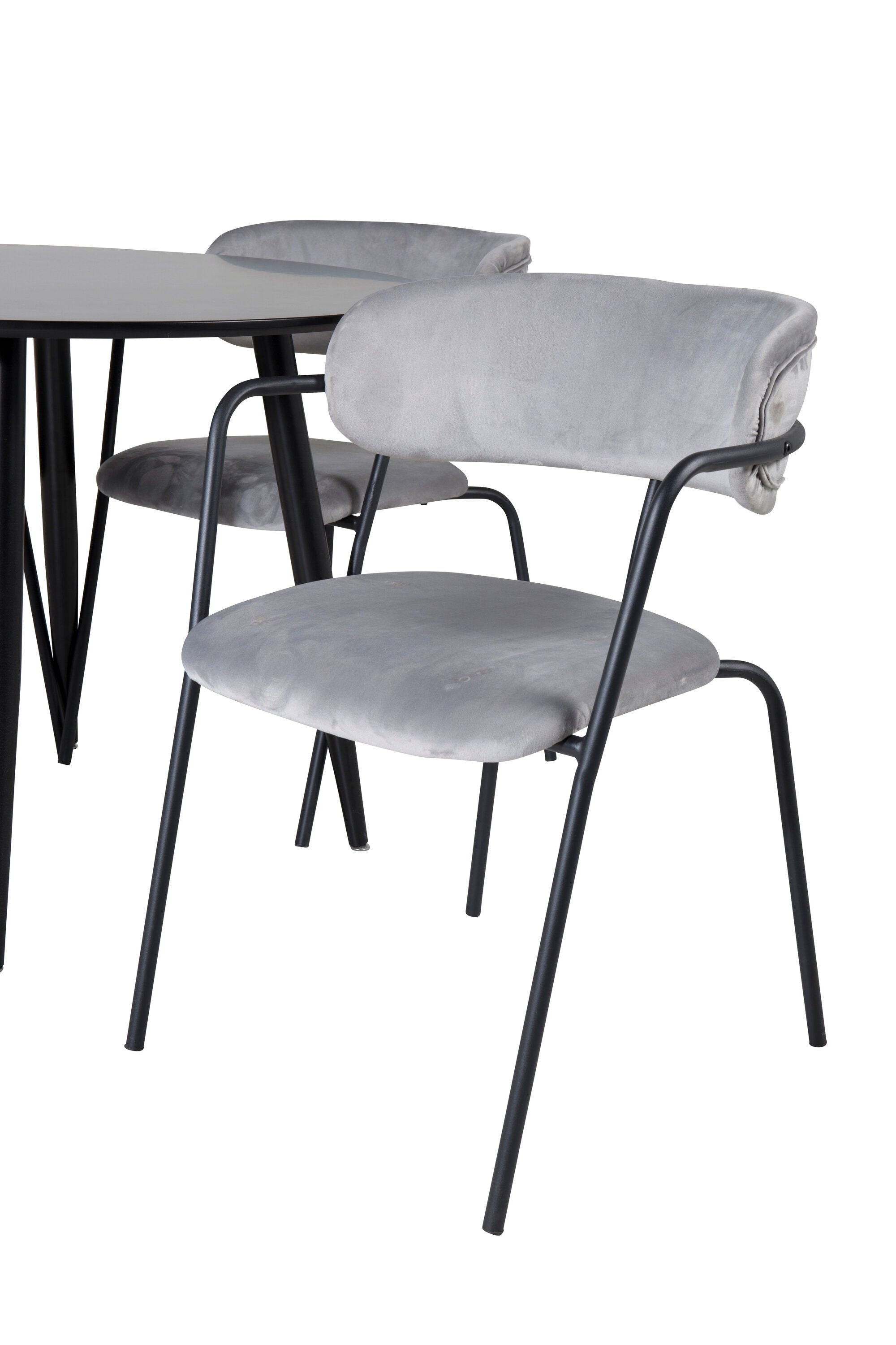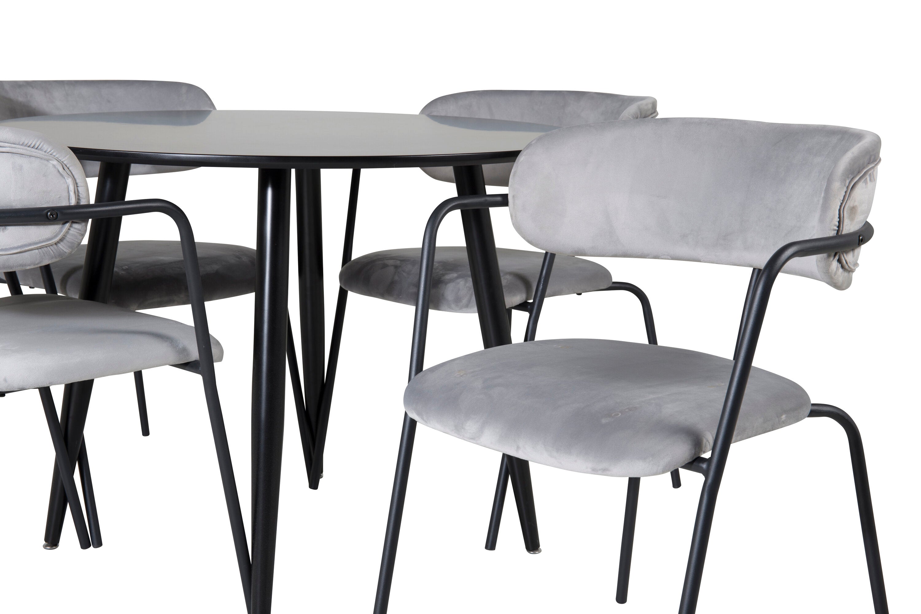 Plaza Runt Matbord - Svart / Svart - ø100*H75 +Křeslo Arrow - Black Legs - Grey Velvet _4