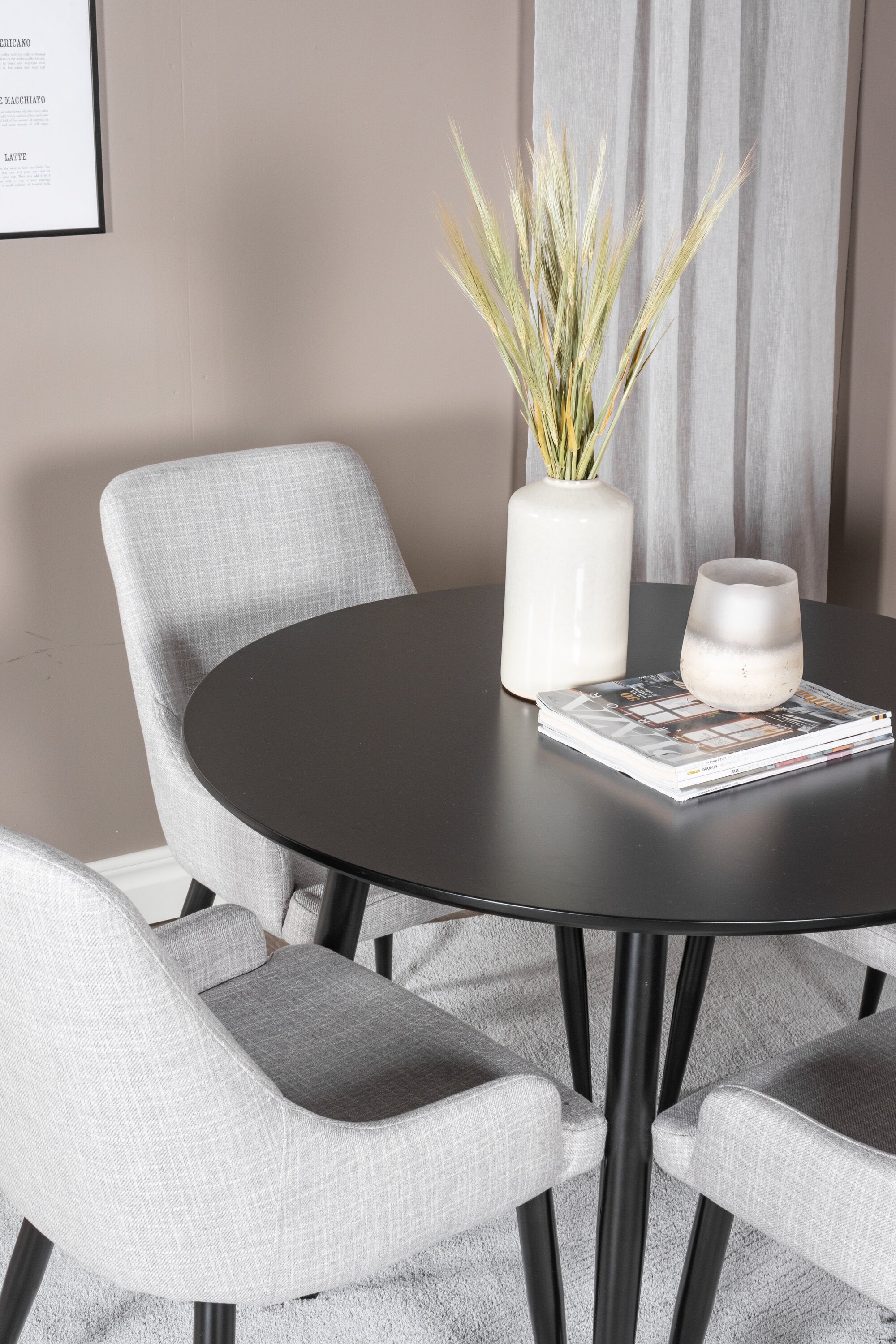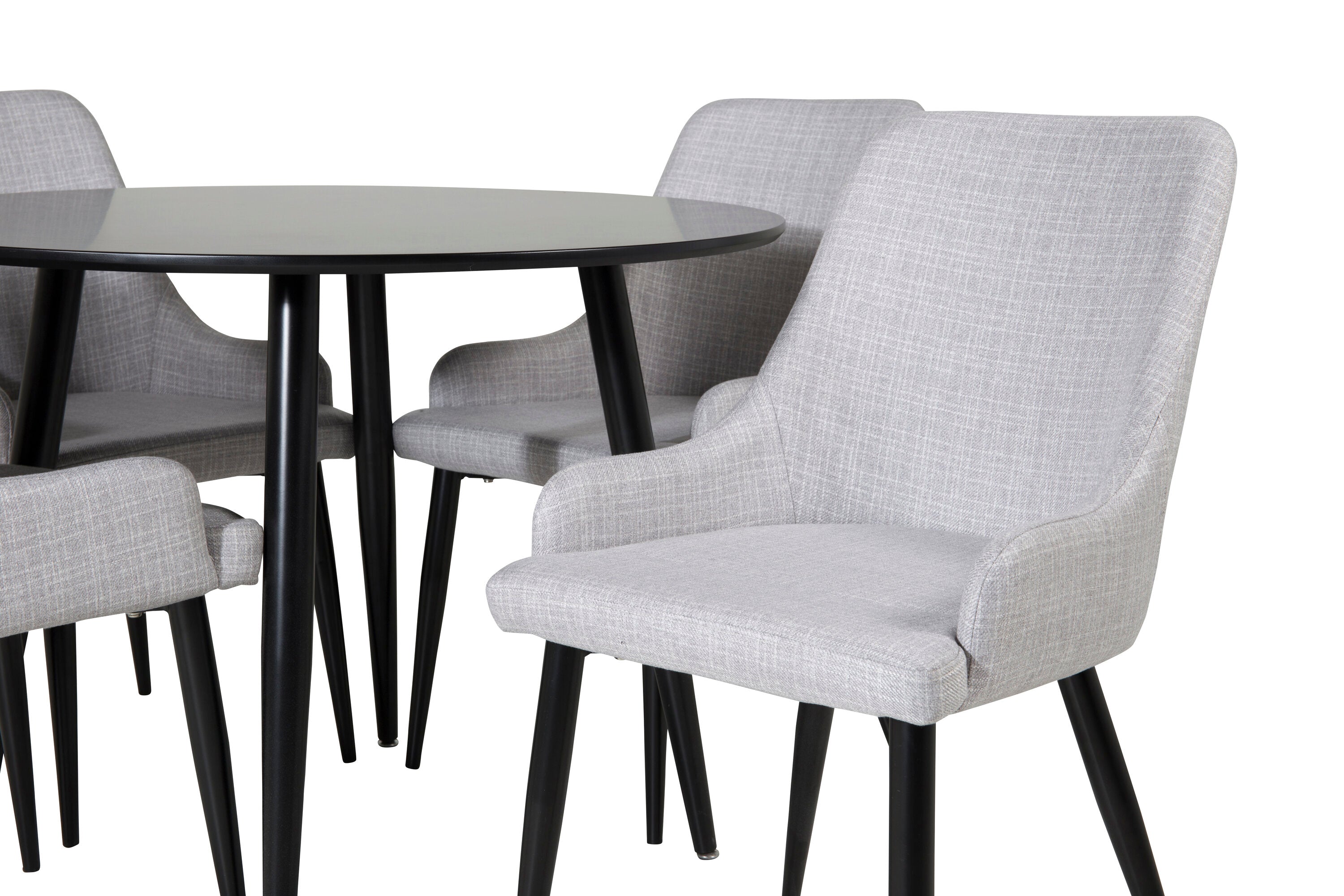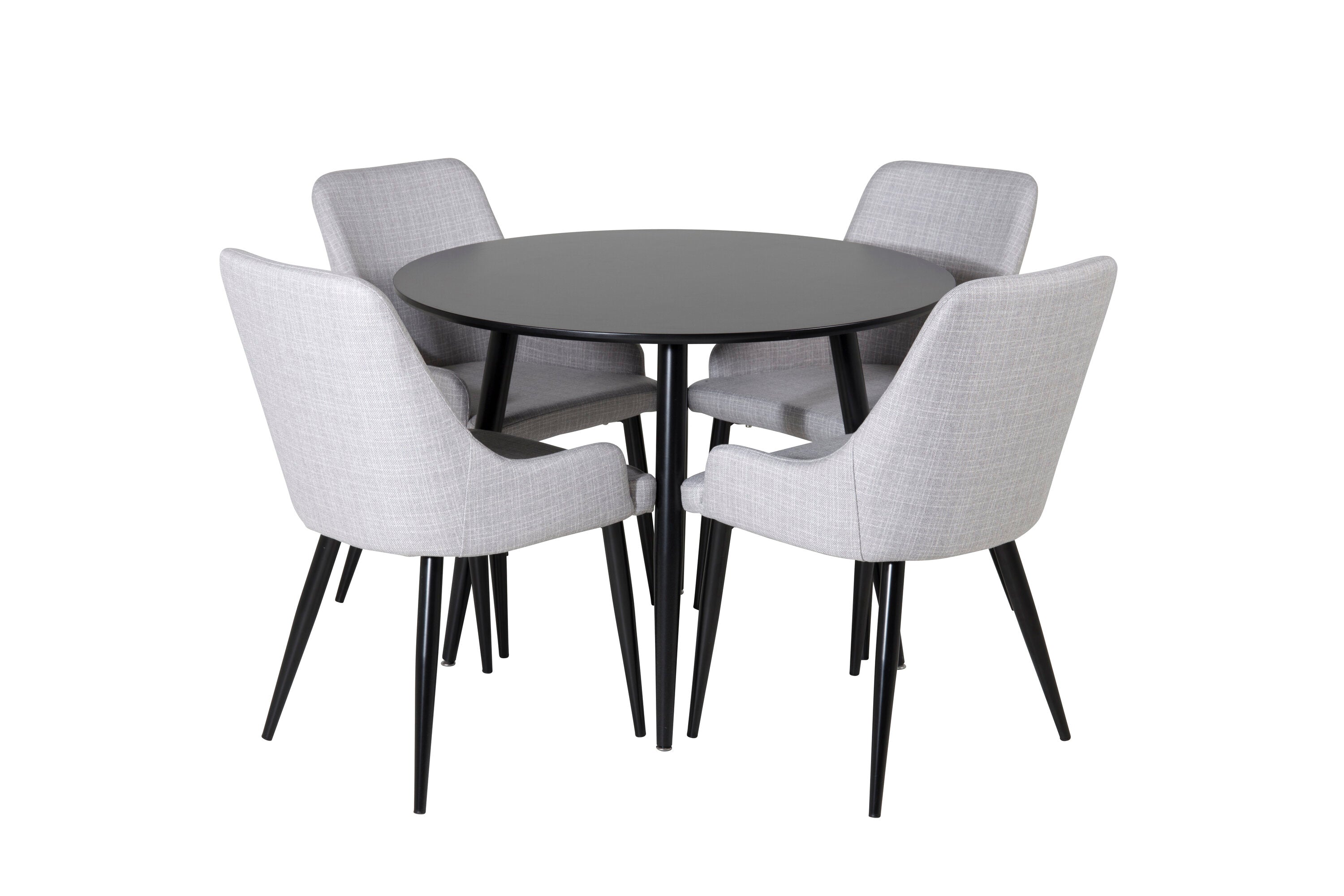 Plaza Runt Matbord - Svart / Svart - ø100*H75 +Plaza Jídelní židle - Černé nohy - Světle šedá látka _4