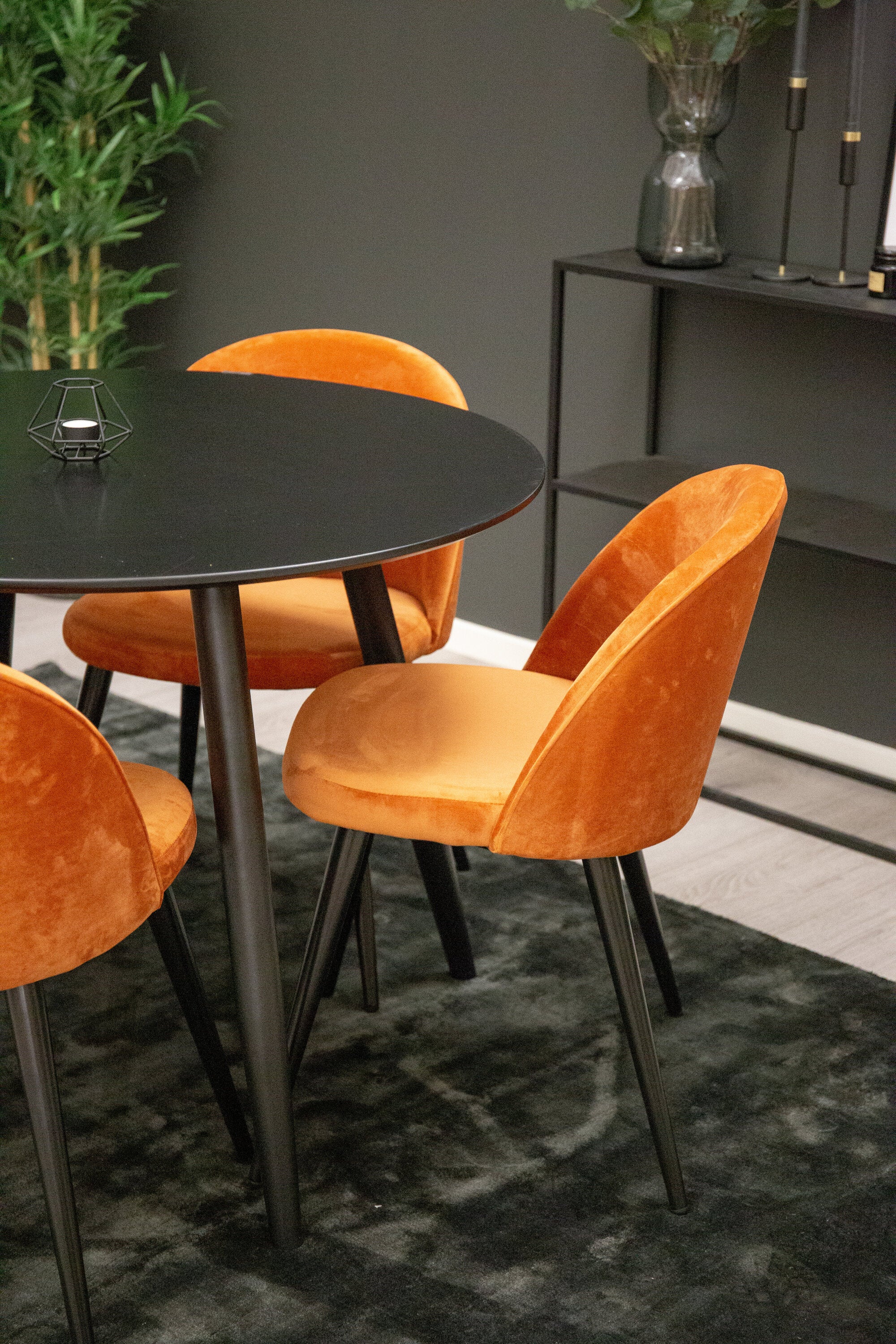 Plaza Runt Matbord - Svart / Svart - ø100*H75 +Velvetová jídelní židle - oranžová / černá _4