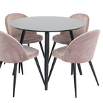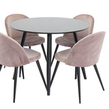 Plaza Runt Matbord - Svart / Svart - ø100*H75 +Velvetová jídelní židle - růžová / černá _4