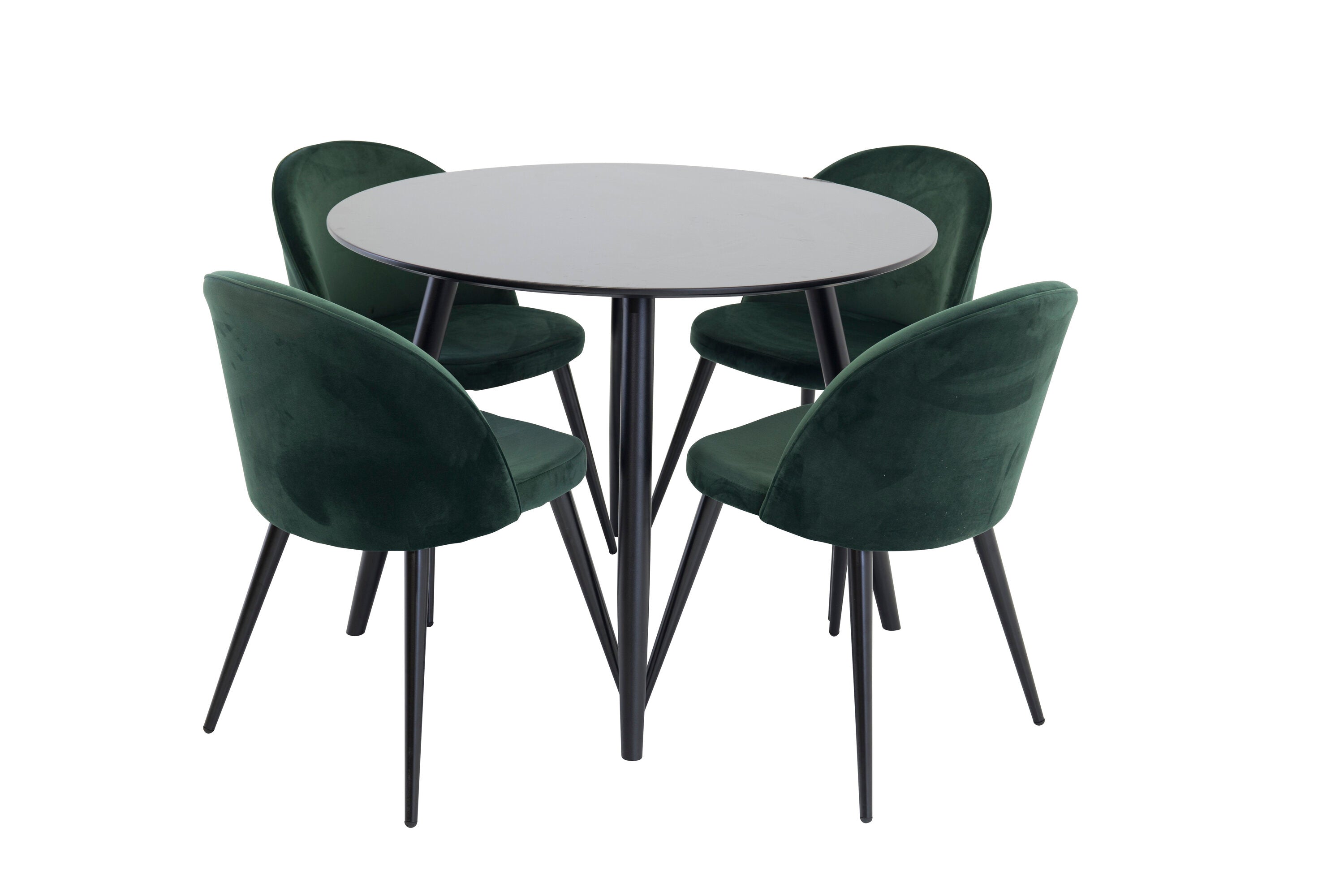 Plaza Runt Matbord - Svart / Svart - ø100*H75 +Velvetová jídelní židle - zelená / černá _4