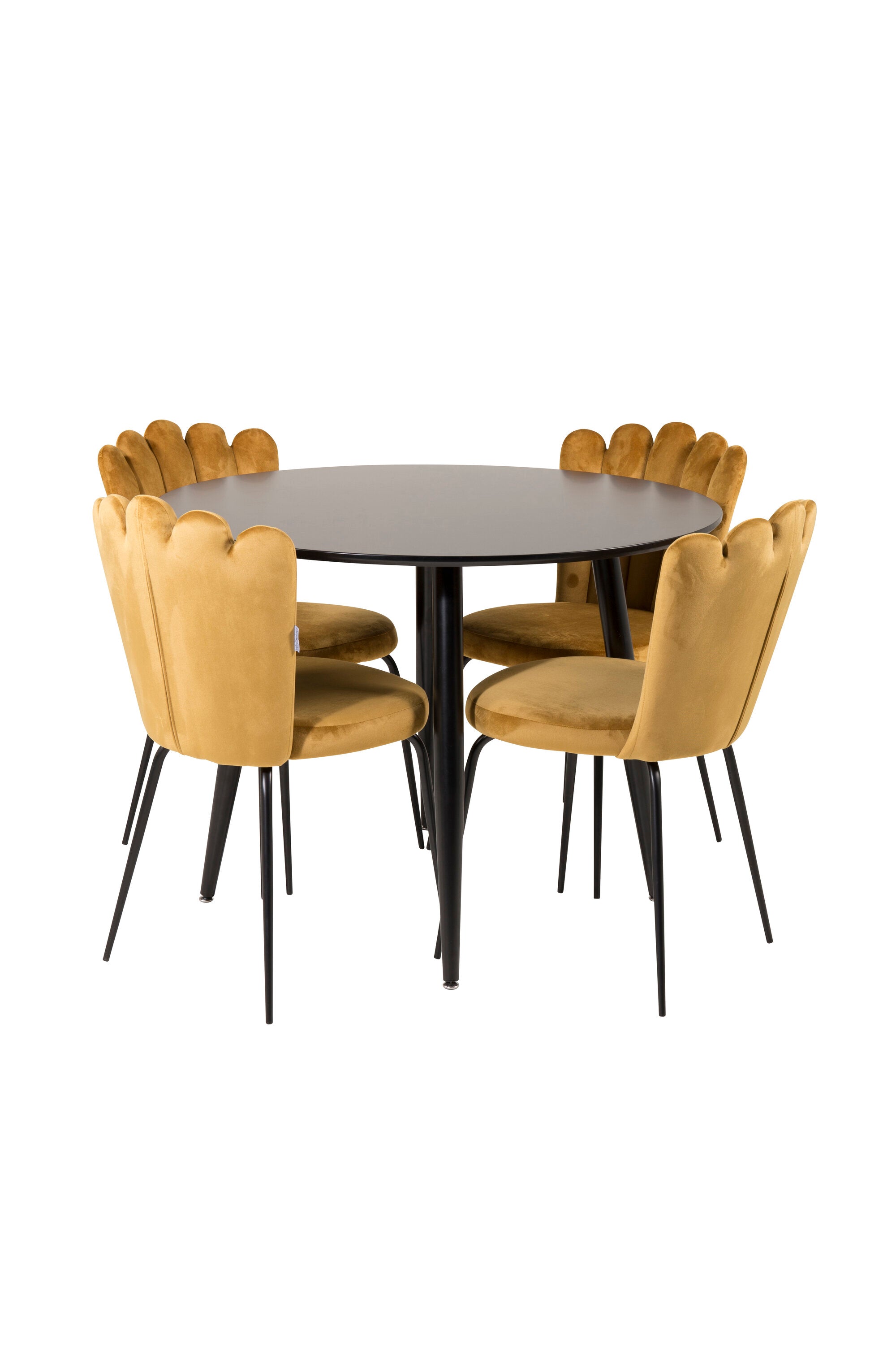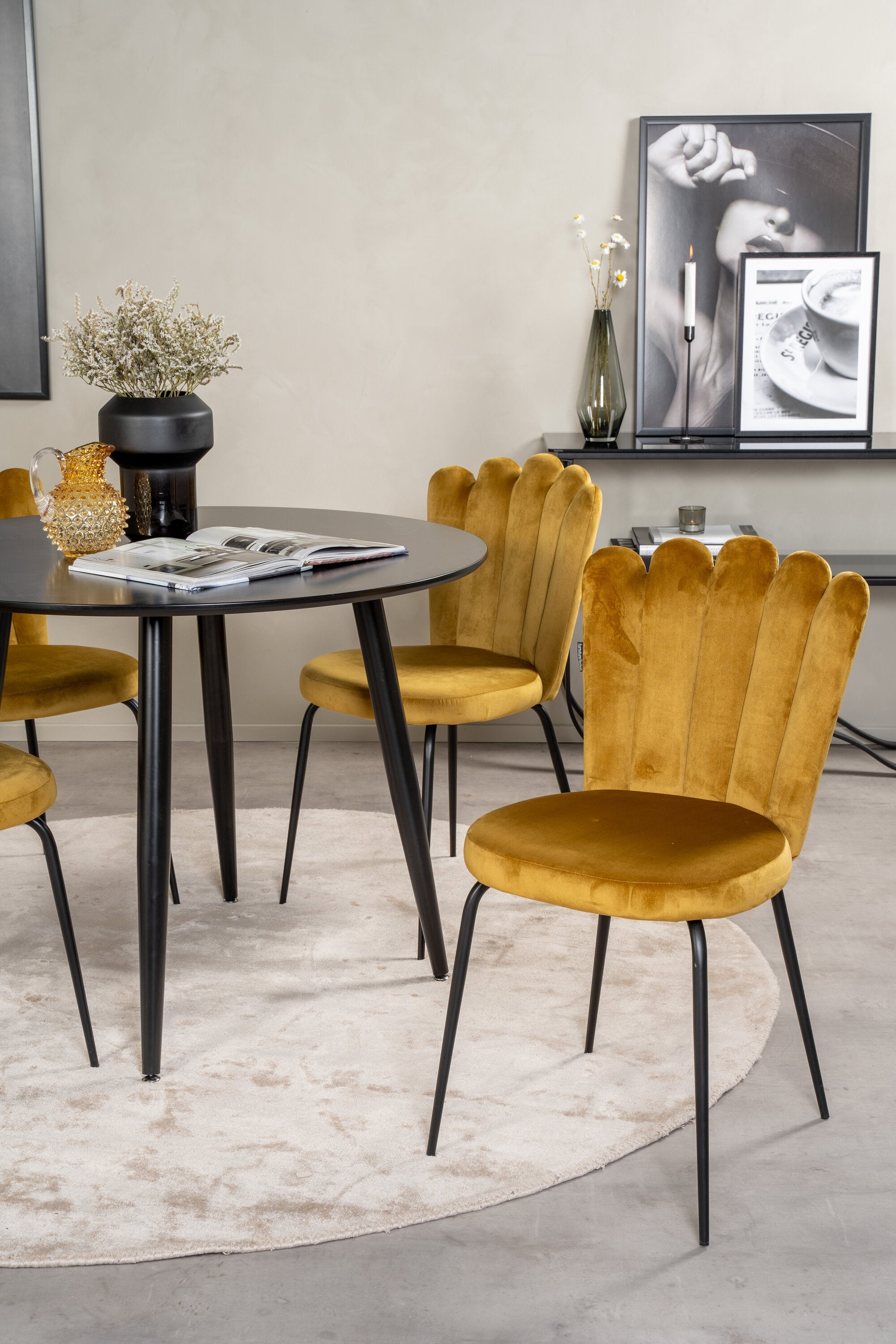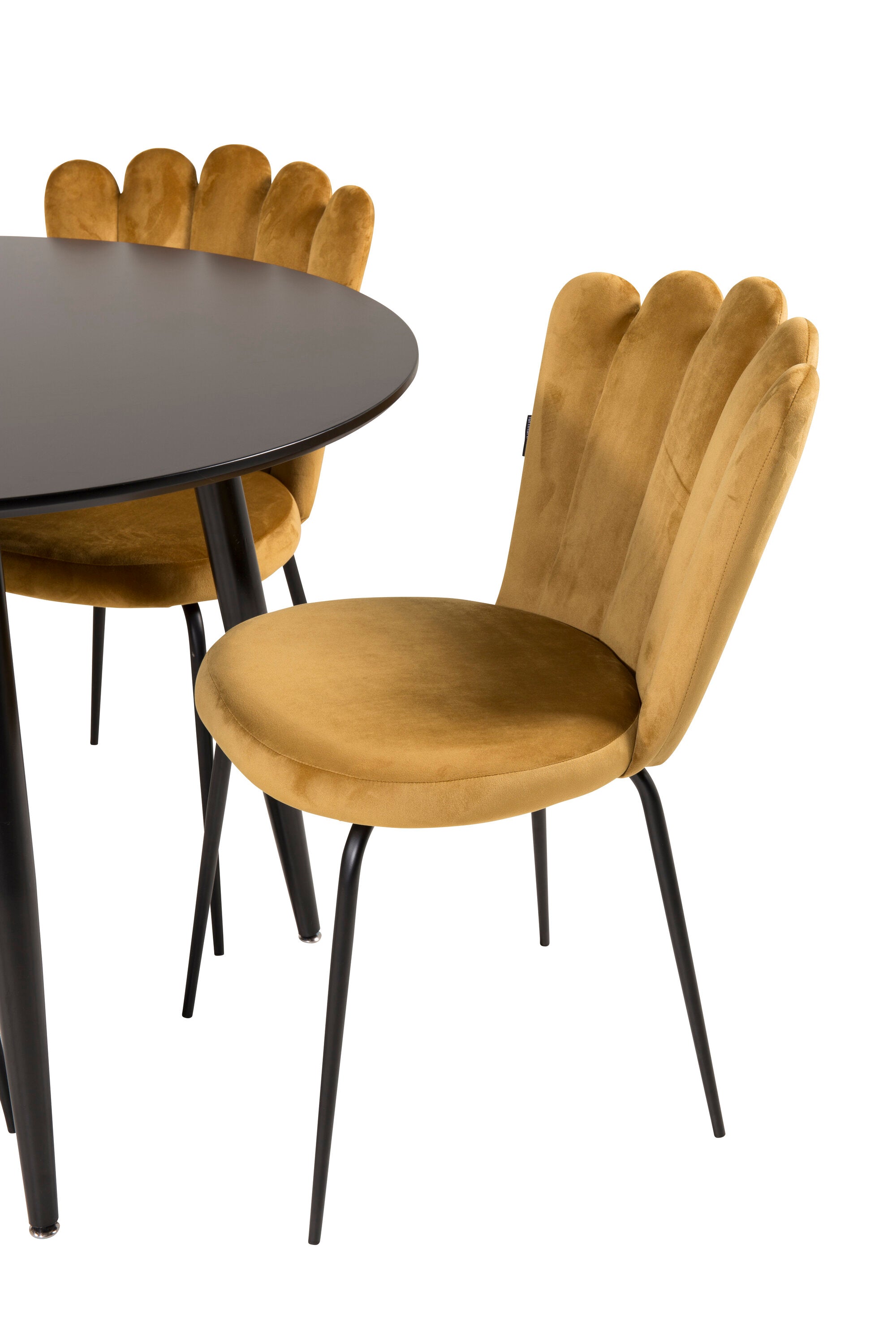 Plaza Runt Matbord - Svart / Svart - ø100*H75 + židle Limhamn - žlutá _4