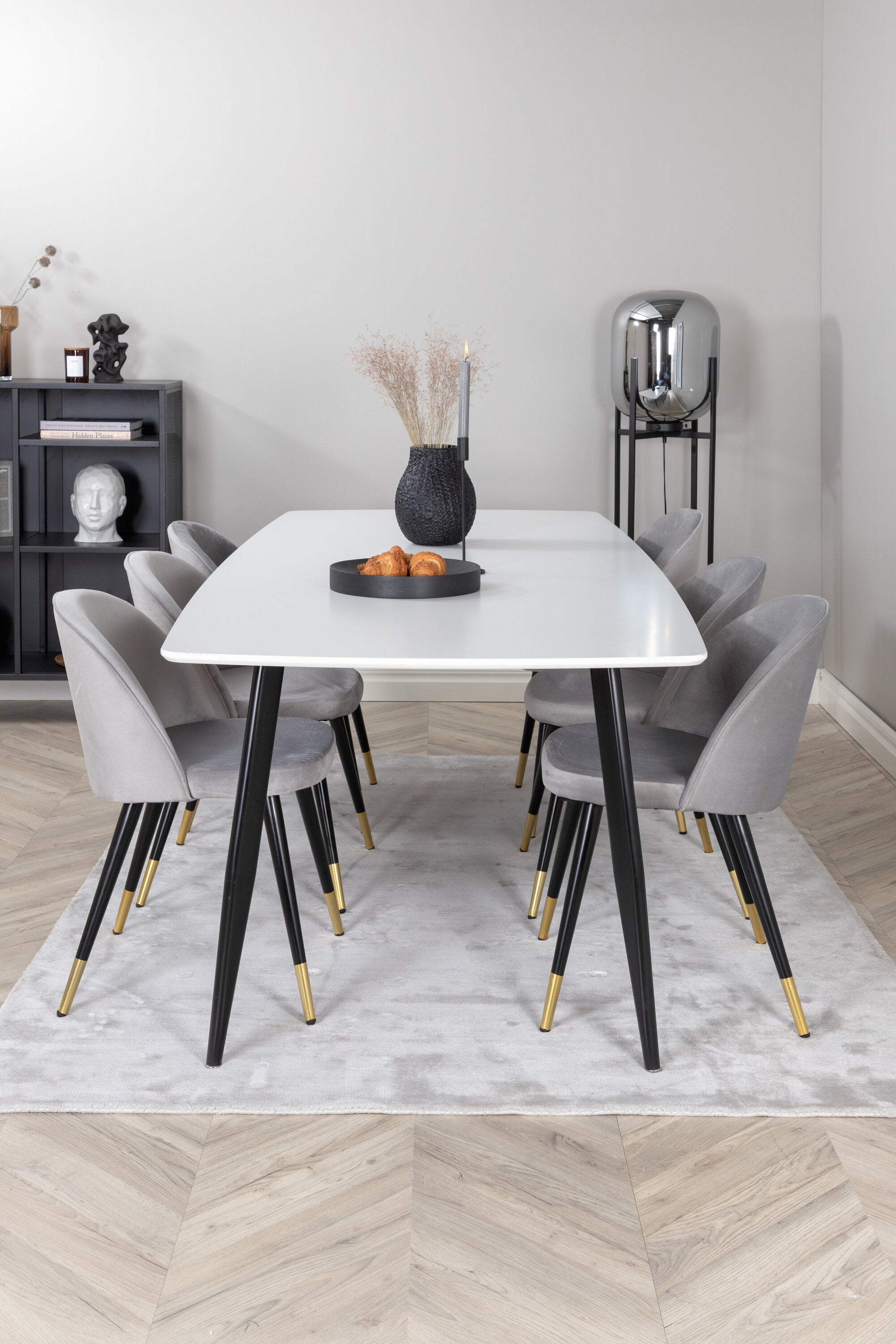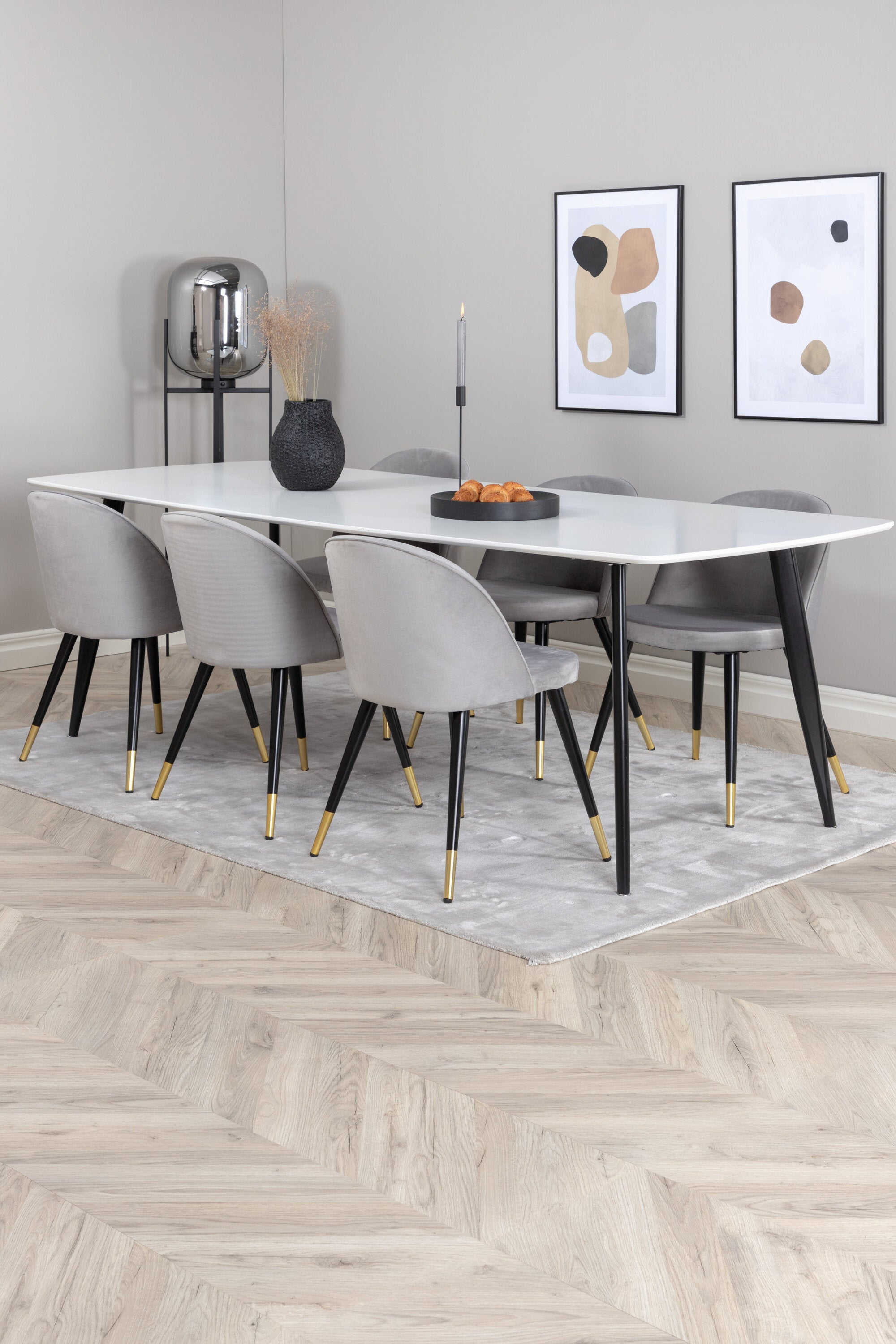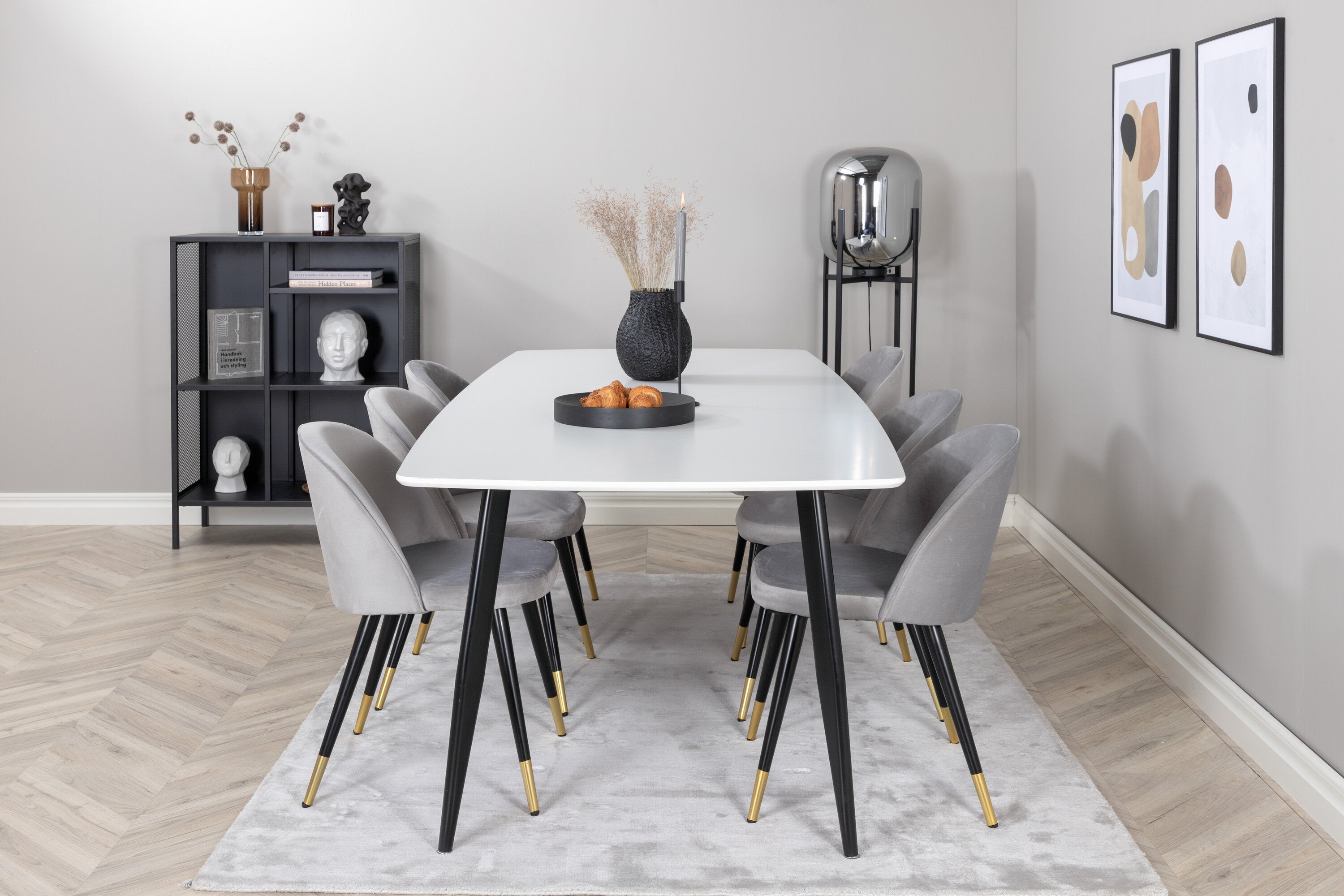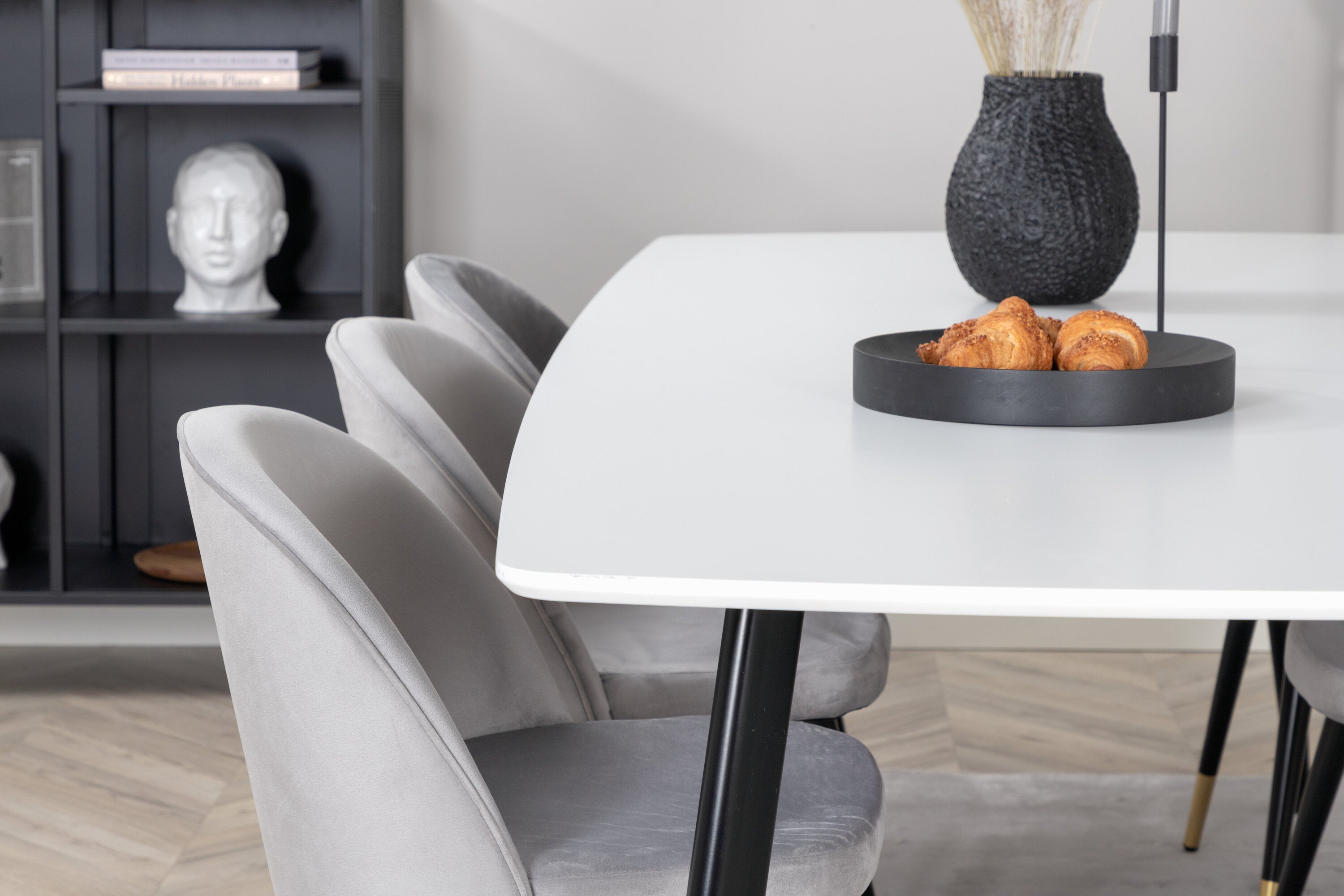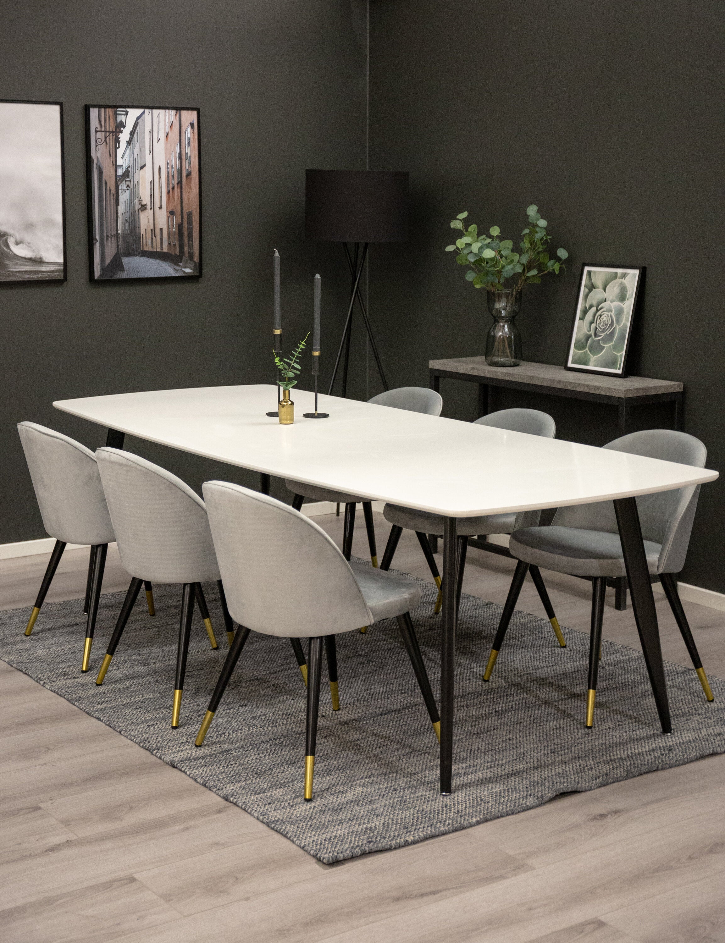 Polar Elips Matbord - Svart / Vit - 240*100*H75 +Sametová jídelní židle Mosaz - světle šedá / černá _6