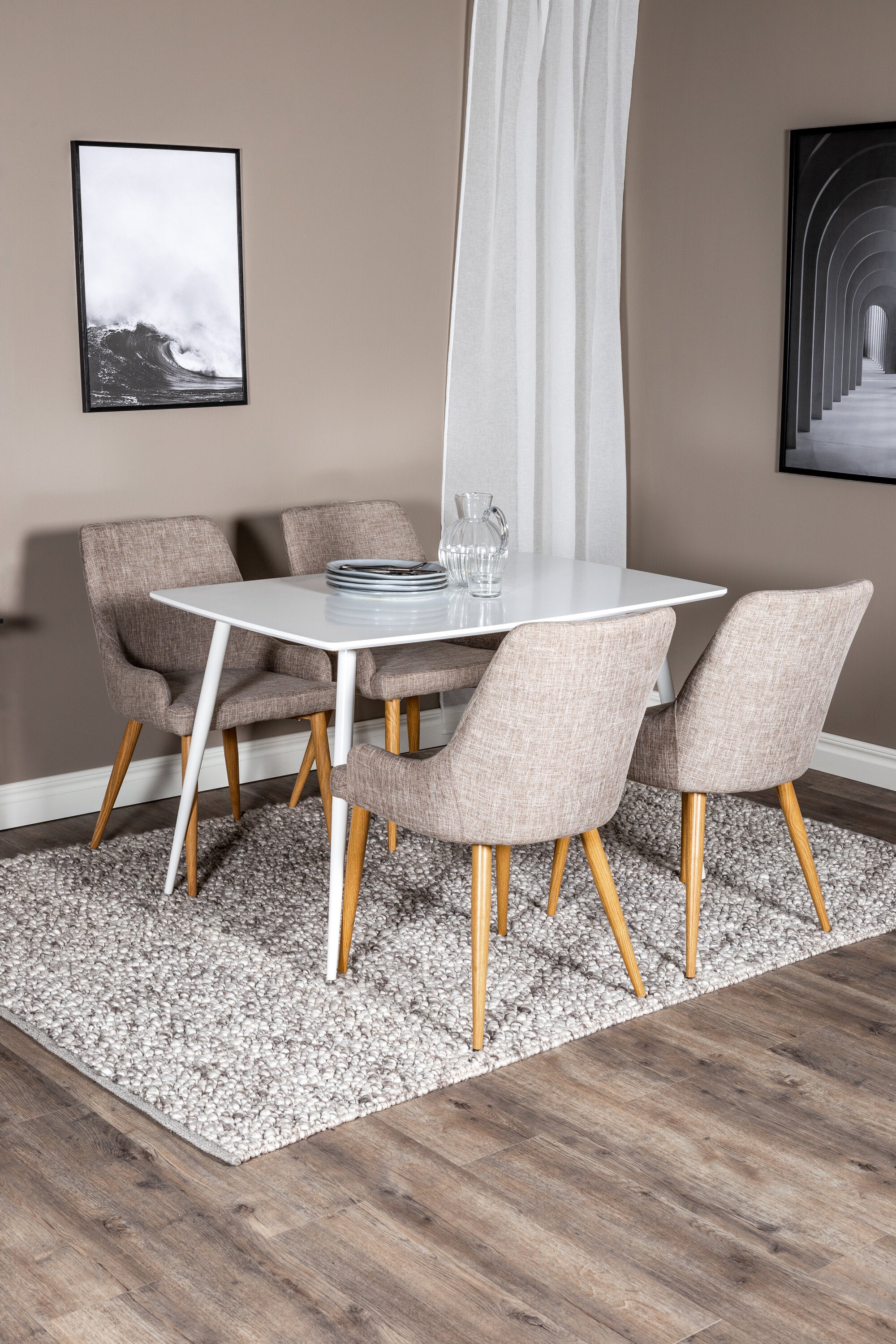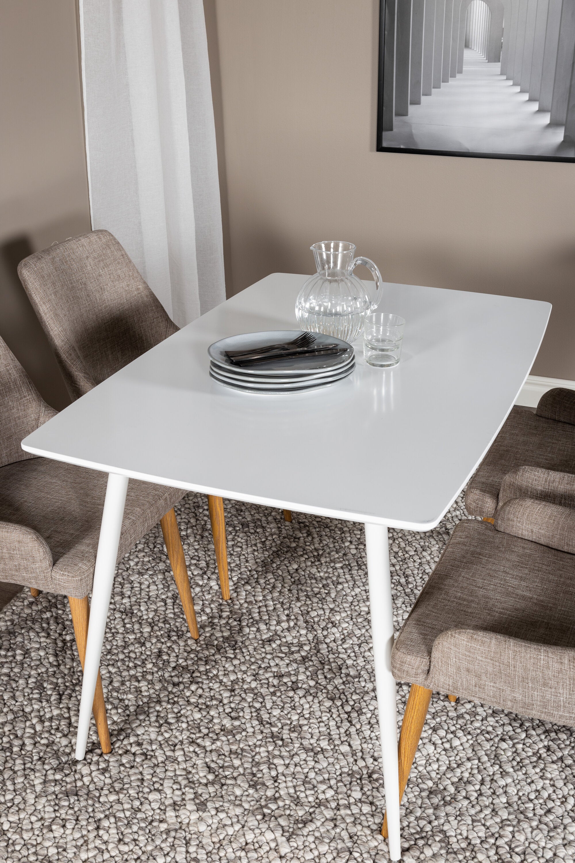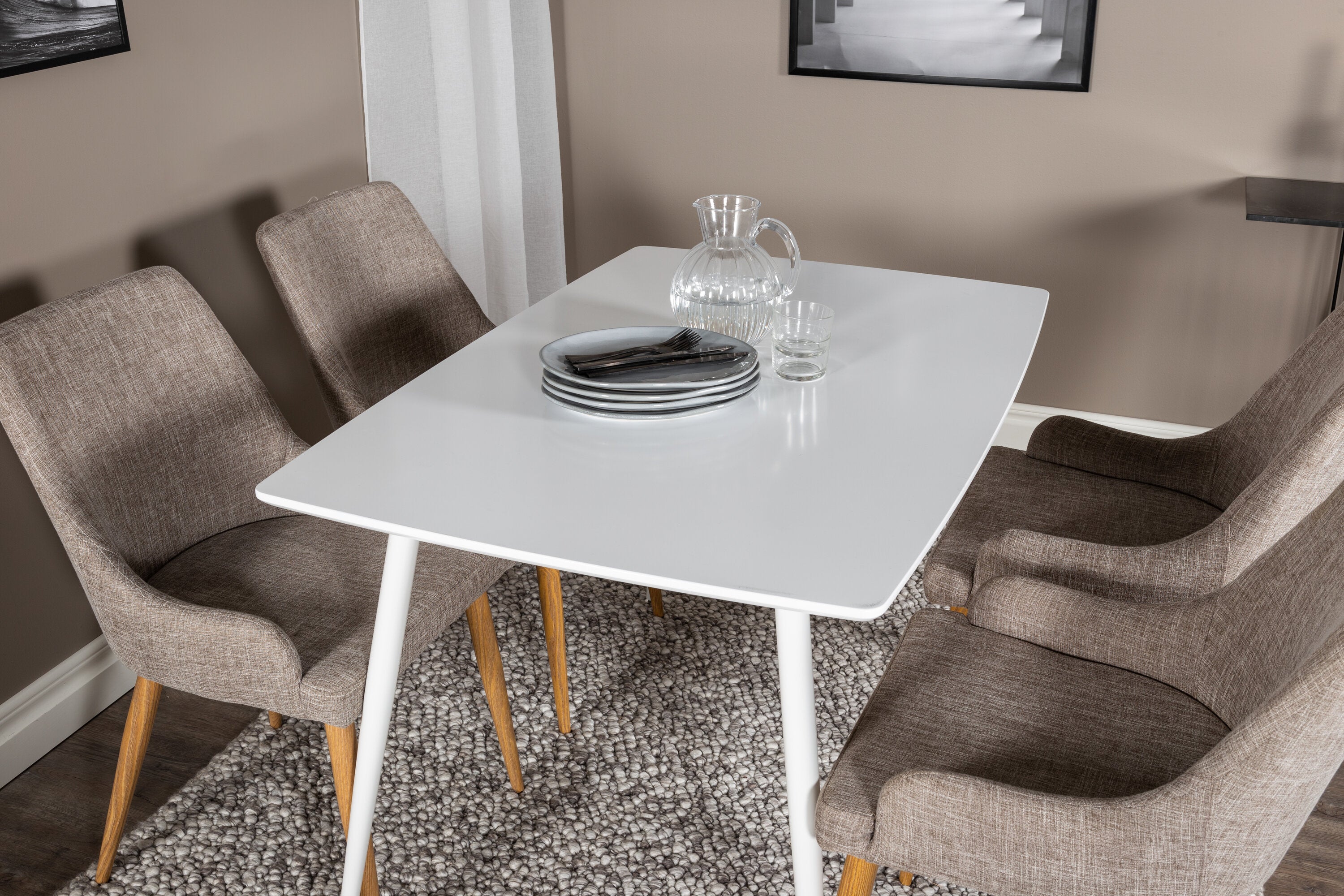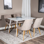 Náš jednoduchý jídelní stůl Polar a naše pohodlné židle Plaza společně vytvářejí klasickou skupinu jídel, která dodává místnosti útulný pocit!