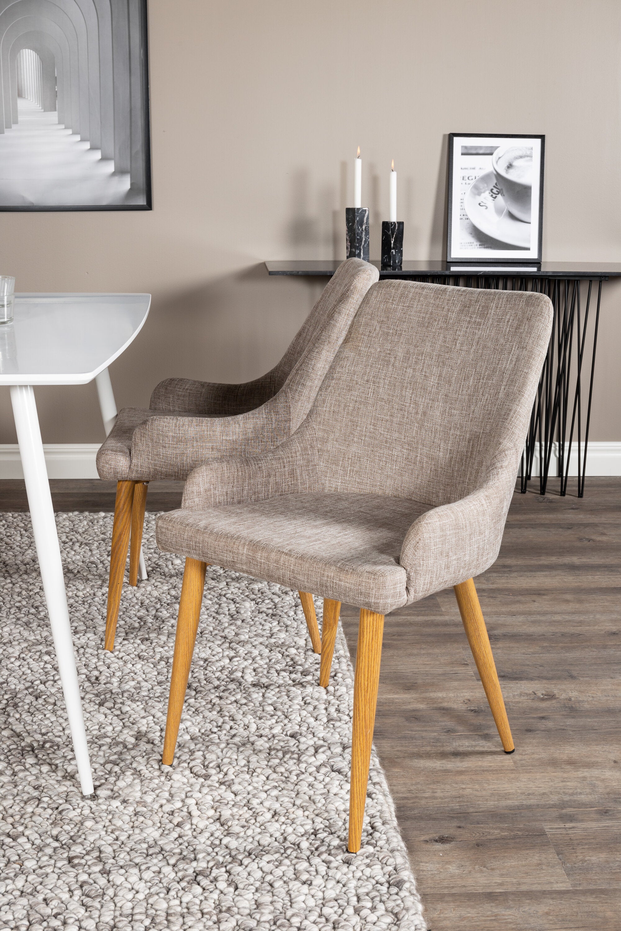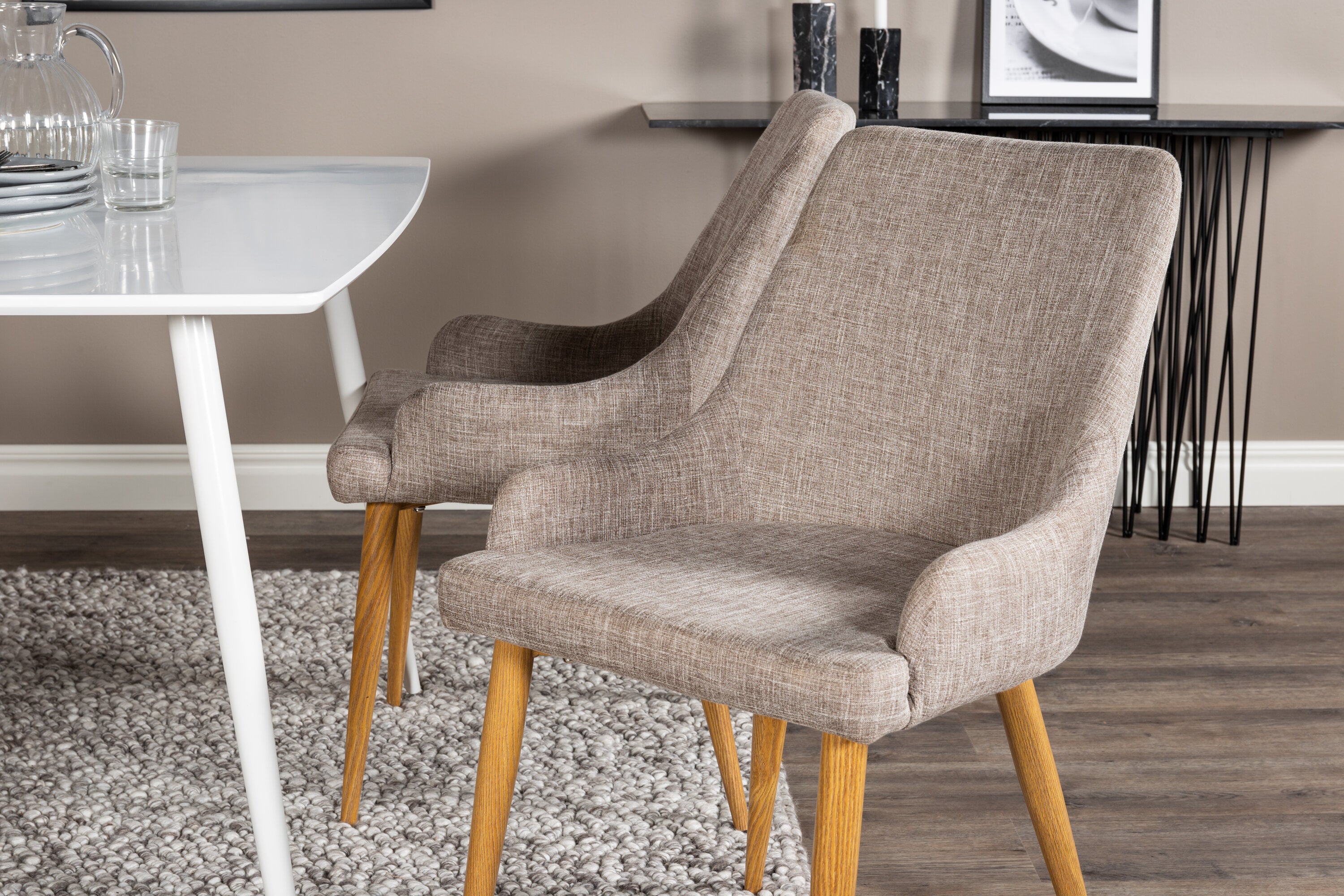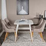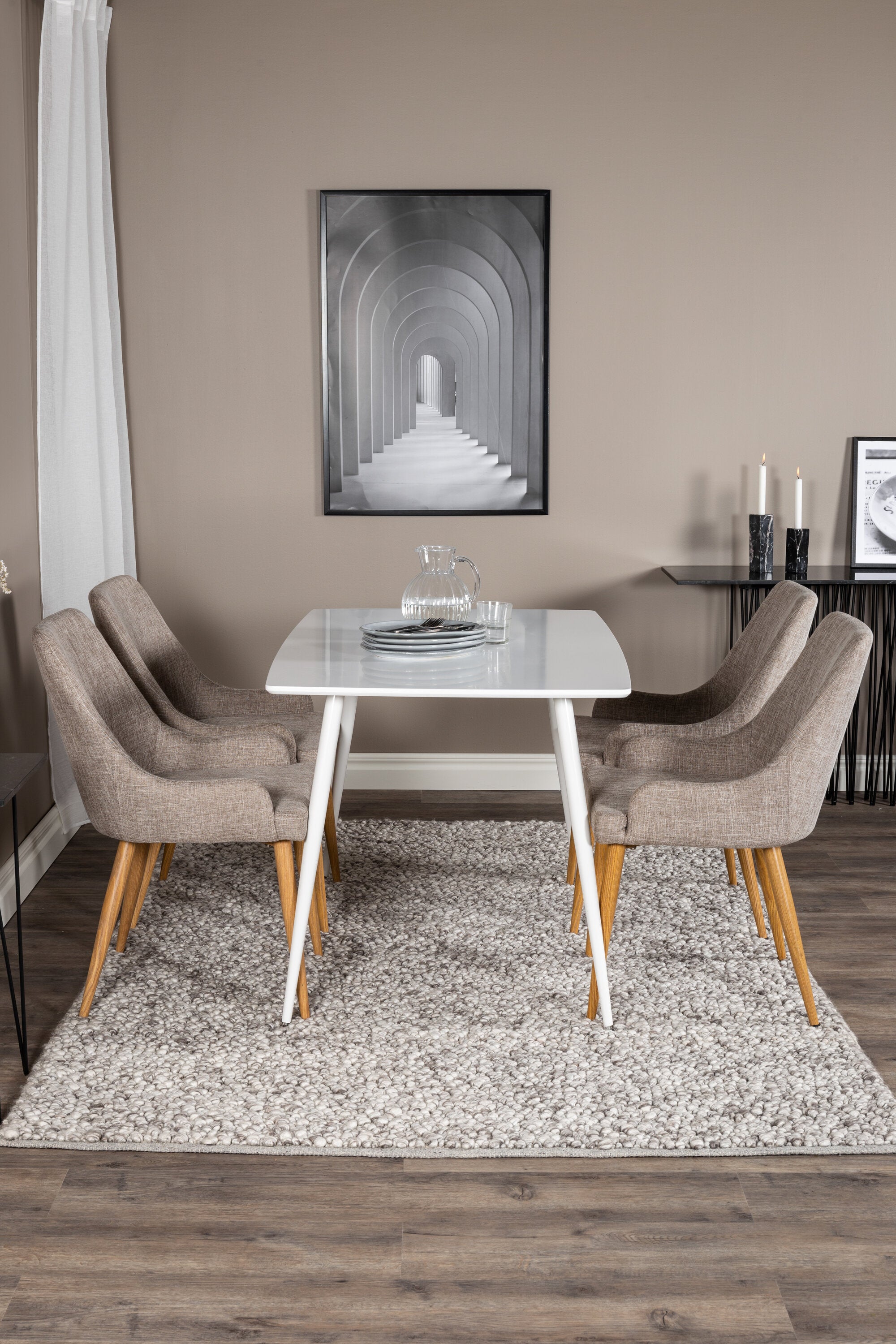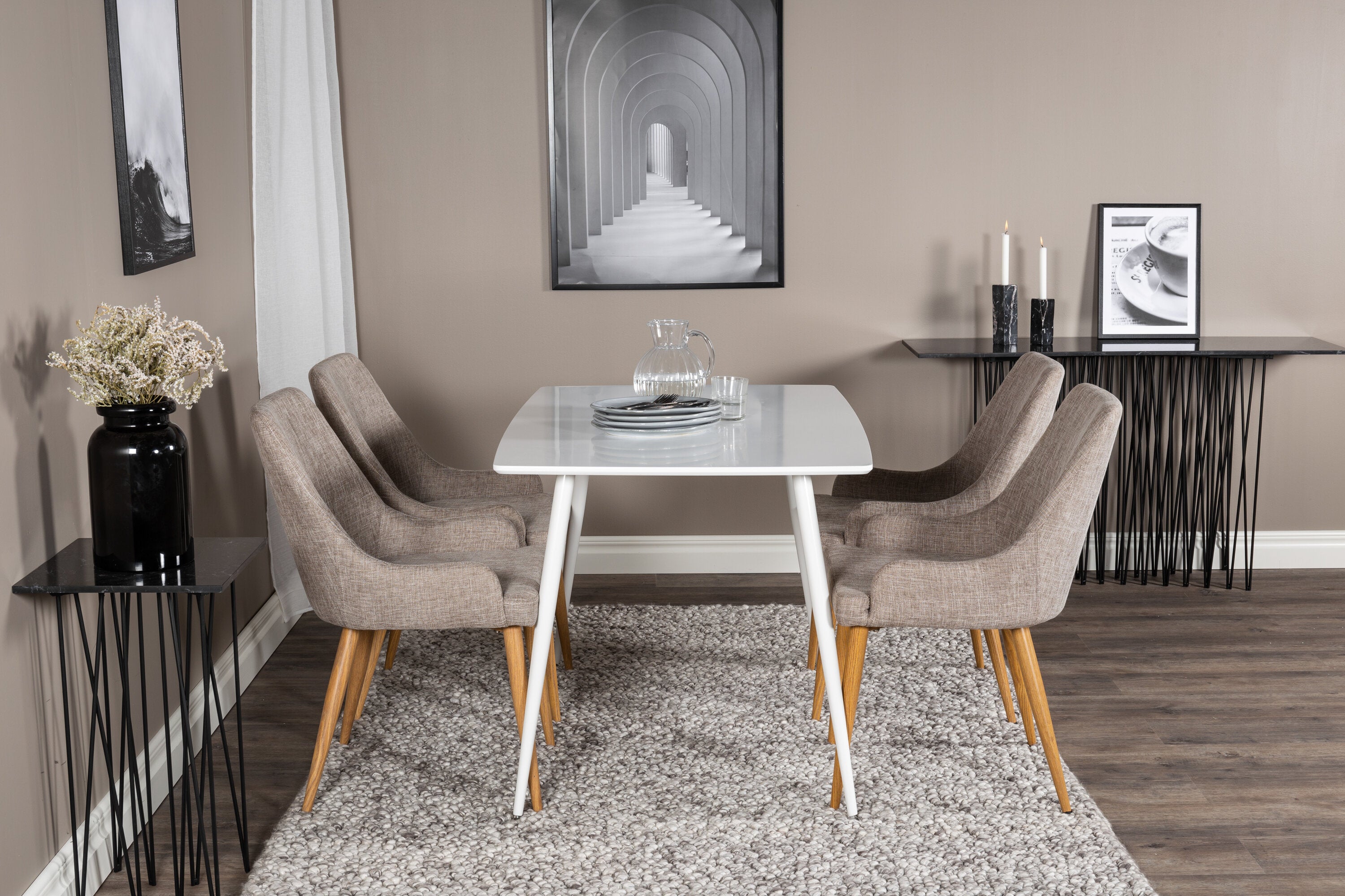 Náš jednoduchý jídelní stůl Polar a naše pohodlné židle Plaza společně vytvářejí klasickou skupinu jídel, která dodává místnosti útulný pocit!