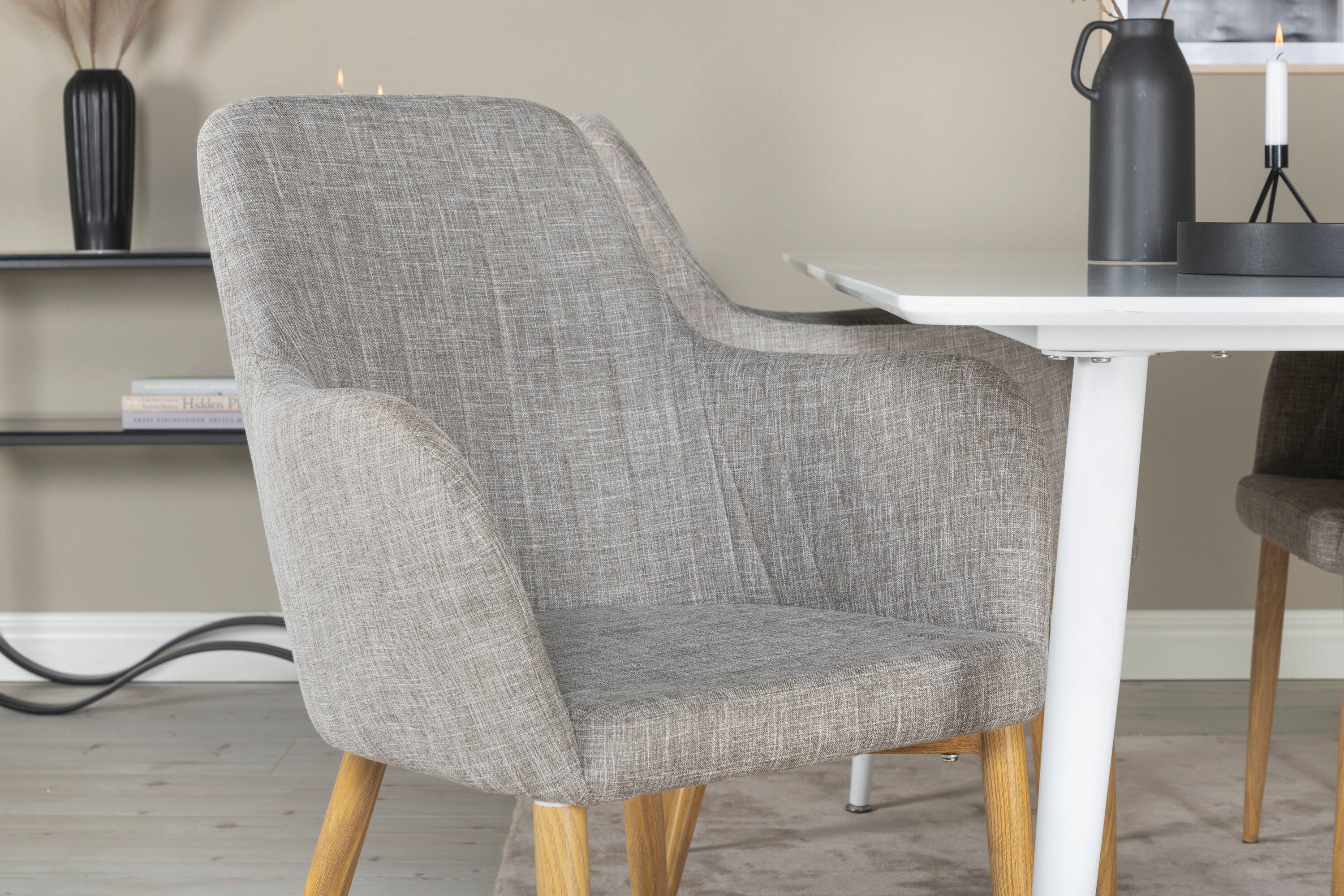 Polar Jídelní stůl 180 cm - Bílá deska / Bílé nohy +Comfort - Jídelní židle - Dub/Světle šedá _4