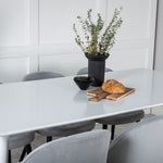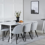 Náš jednoduchý a klasický jídelní stůl Polar spolu s našimi jídelními židlemi Velvet vhodnými k sezení. Zde získáte luxusní a stylovou kombinaci, která stojí v průběhu času. Pozvěte na večeři a společenské setkání!