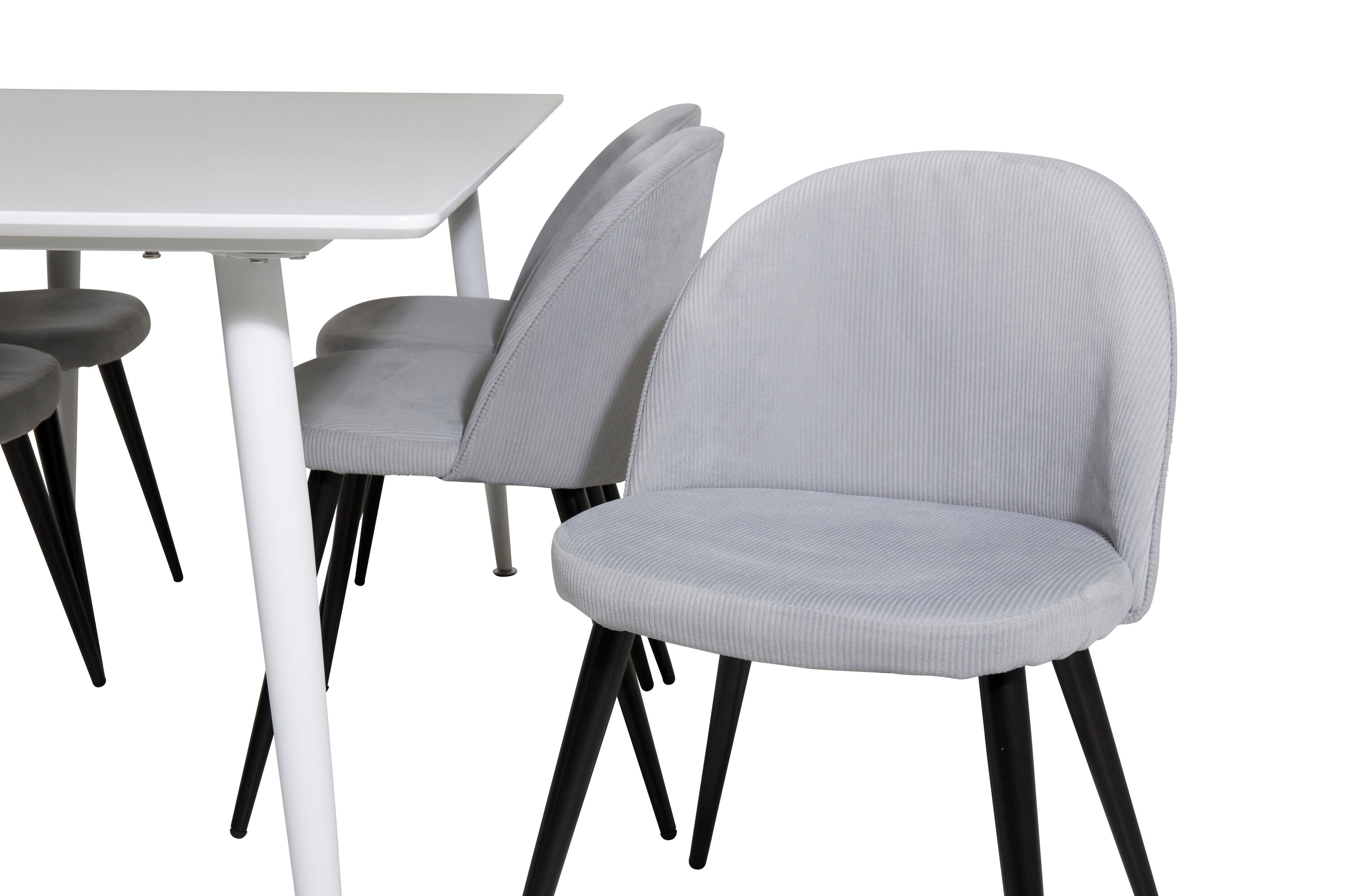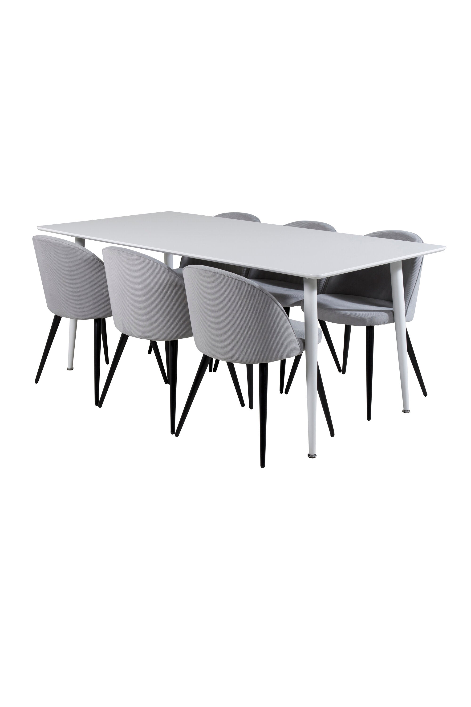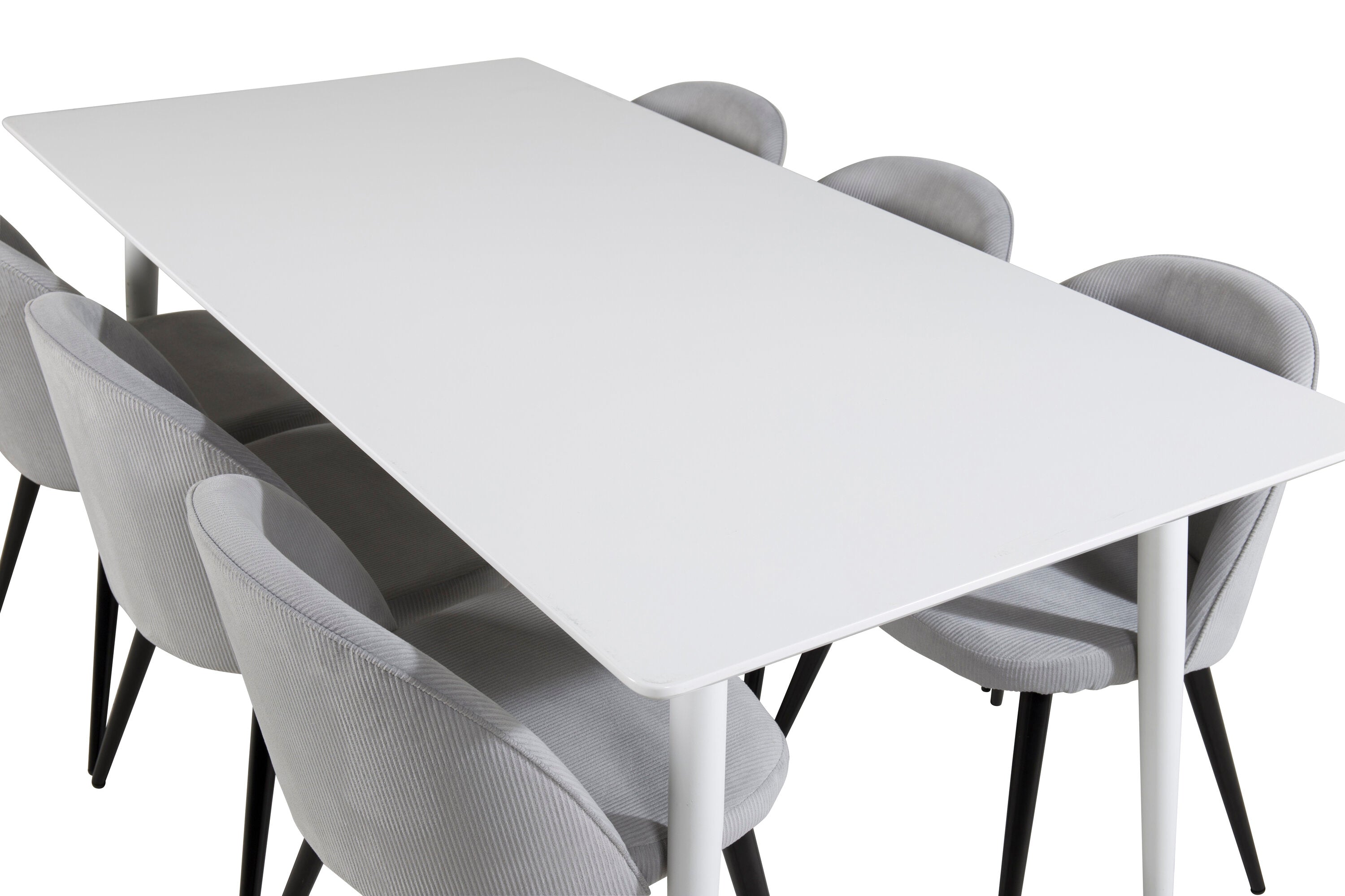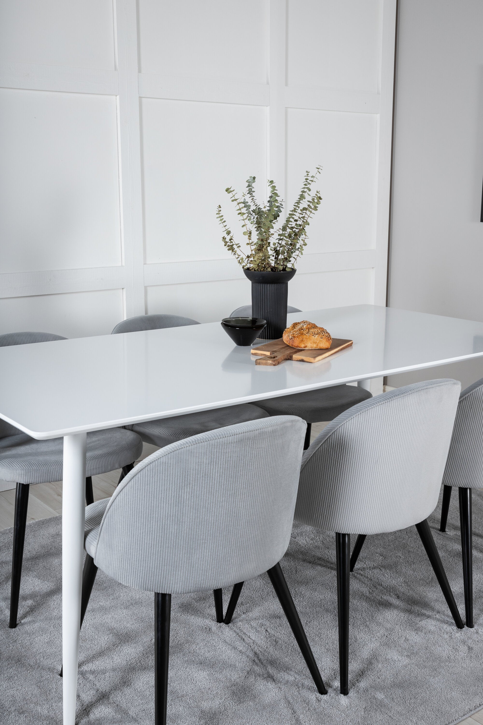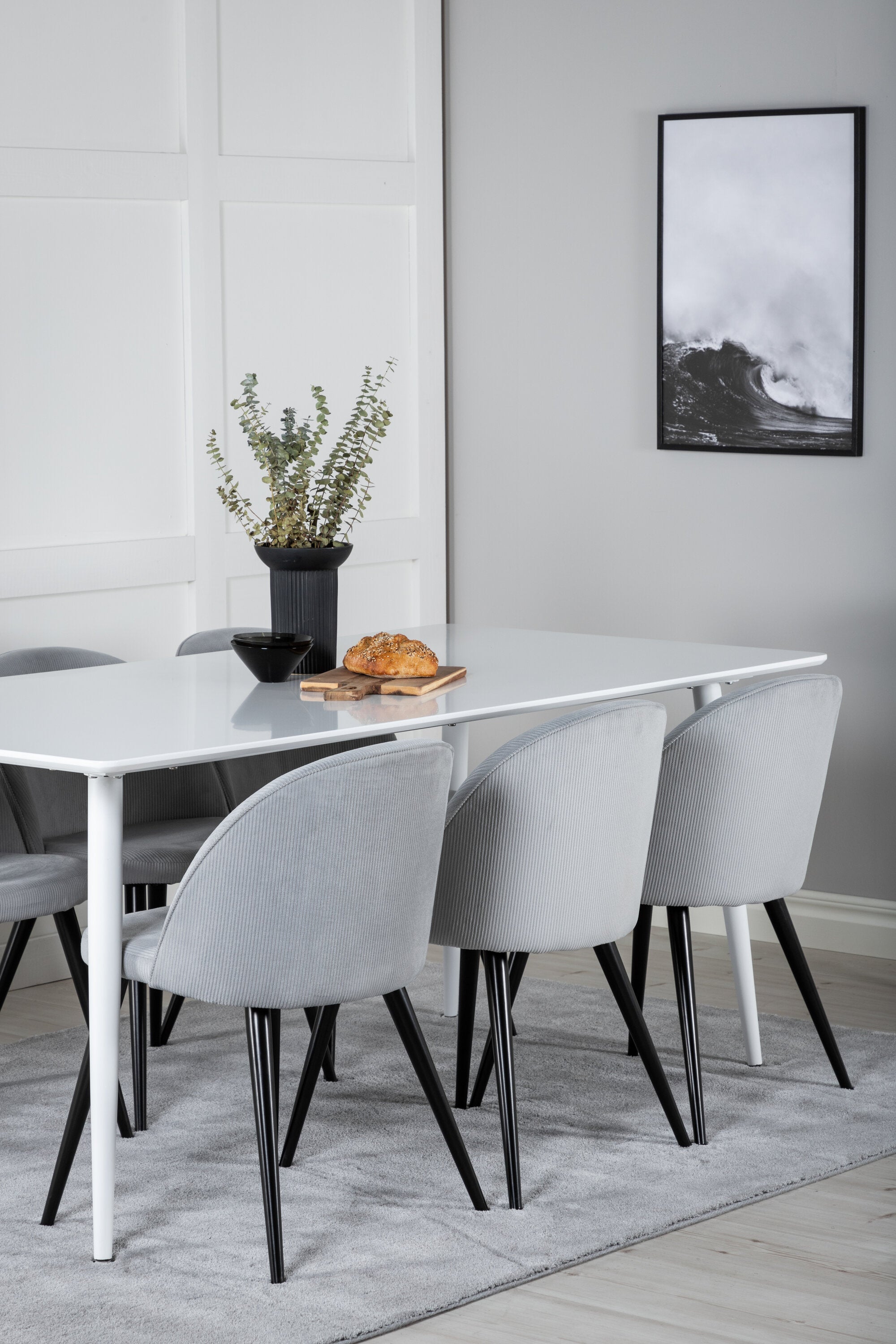 Polar Jídelní stůl 180 cm - Bílá deska / Bílé nohy + Sametová jídelní židle Manšestr - Světle Šedá / Černá_6