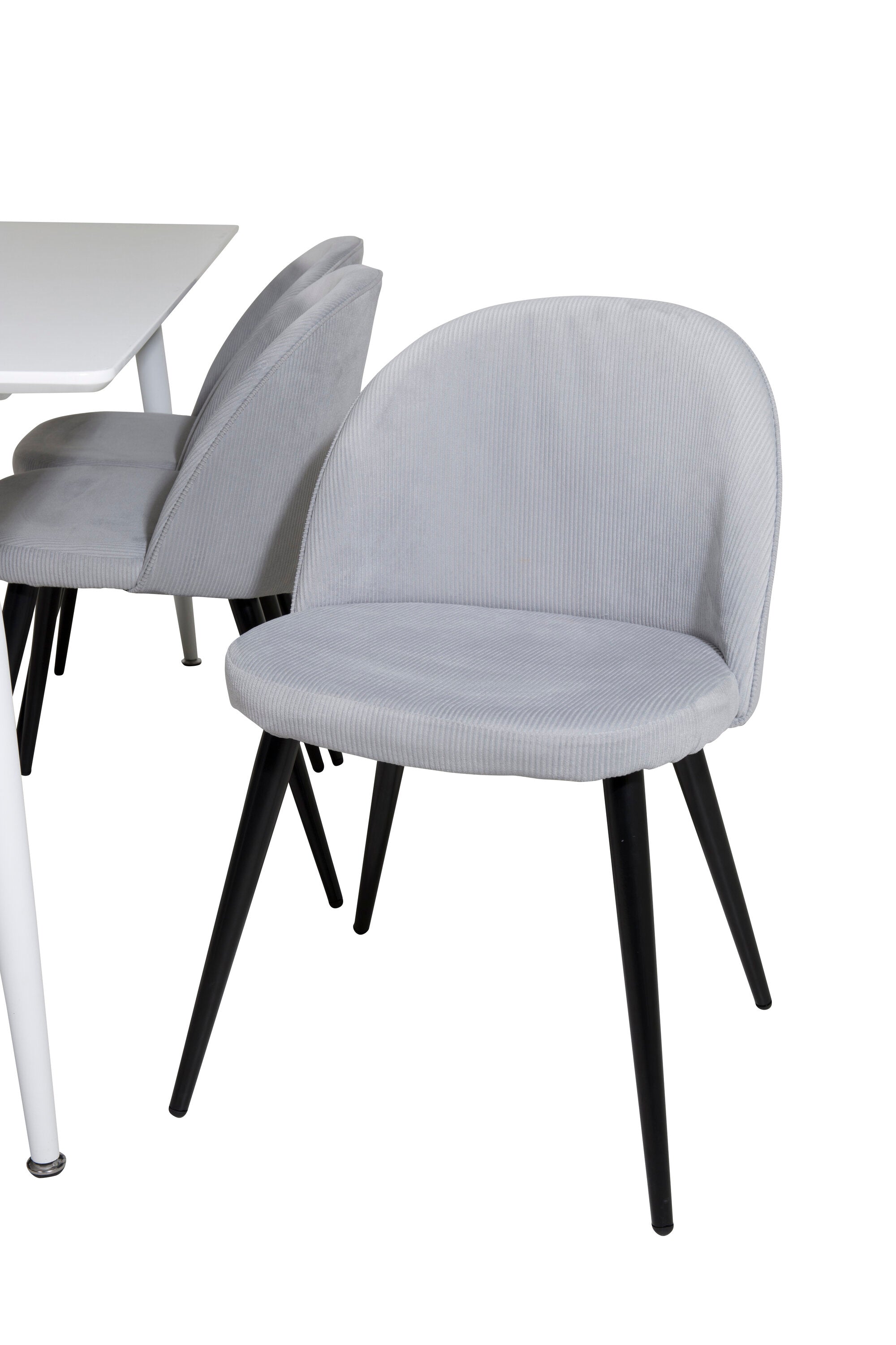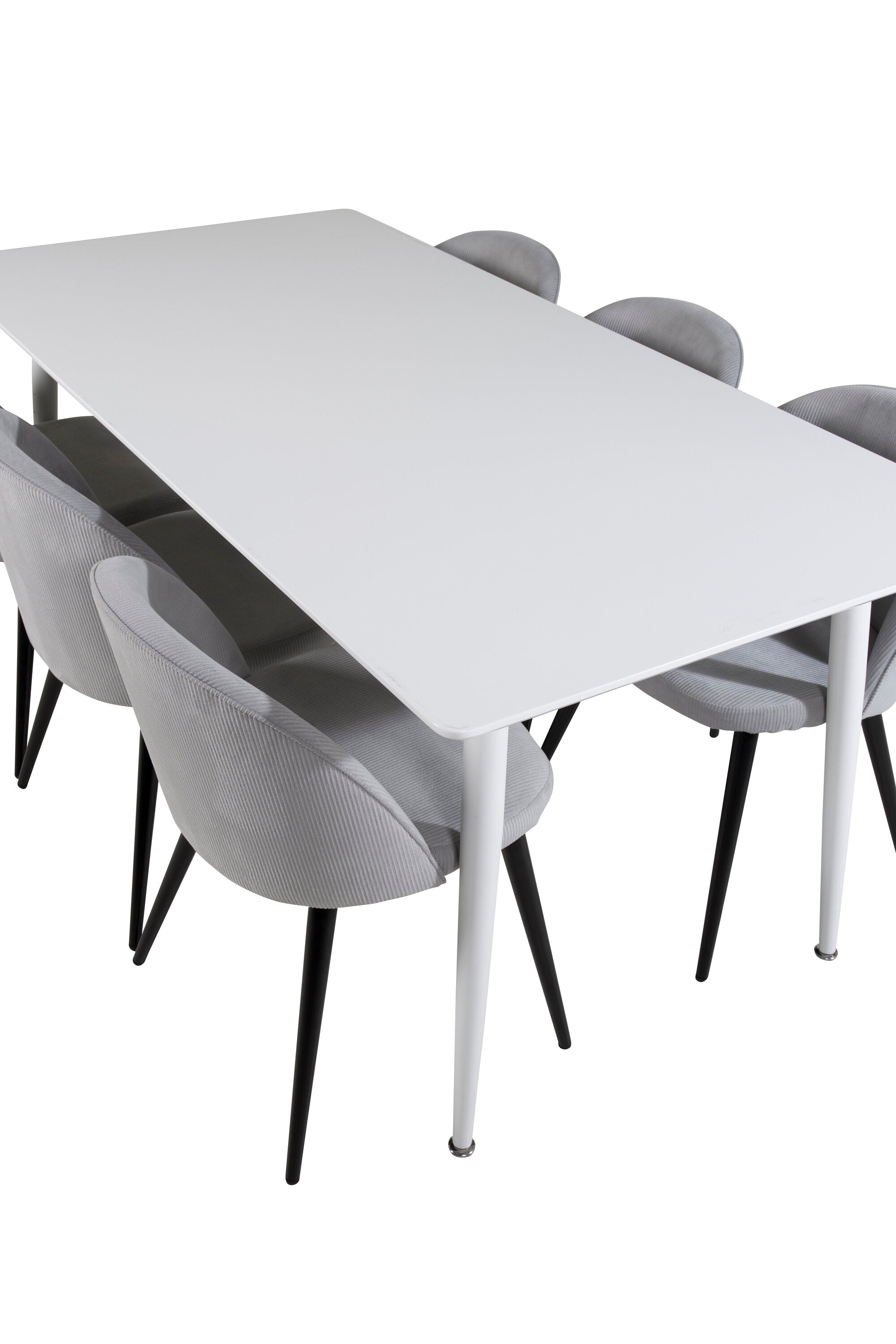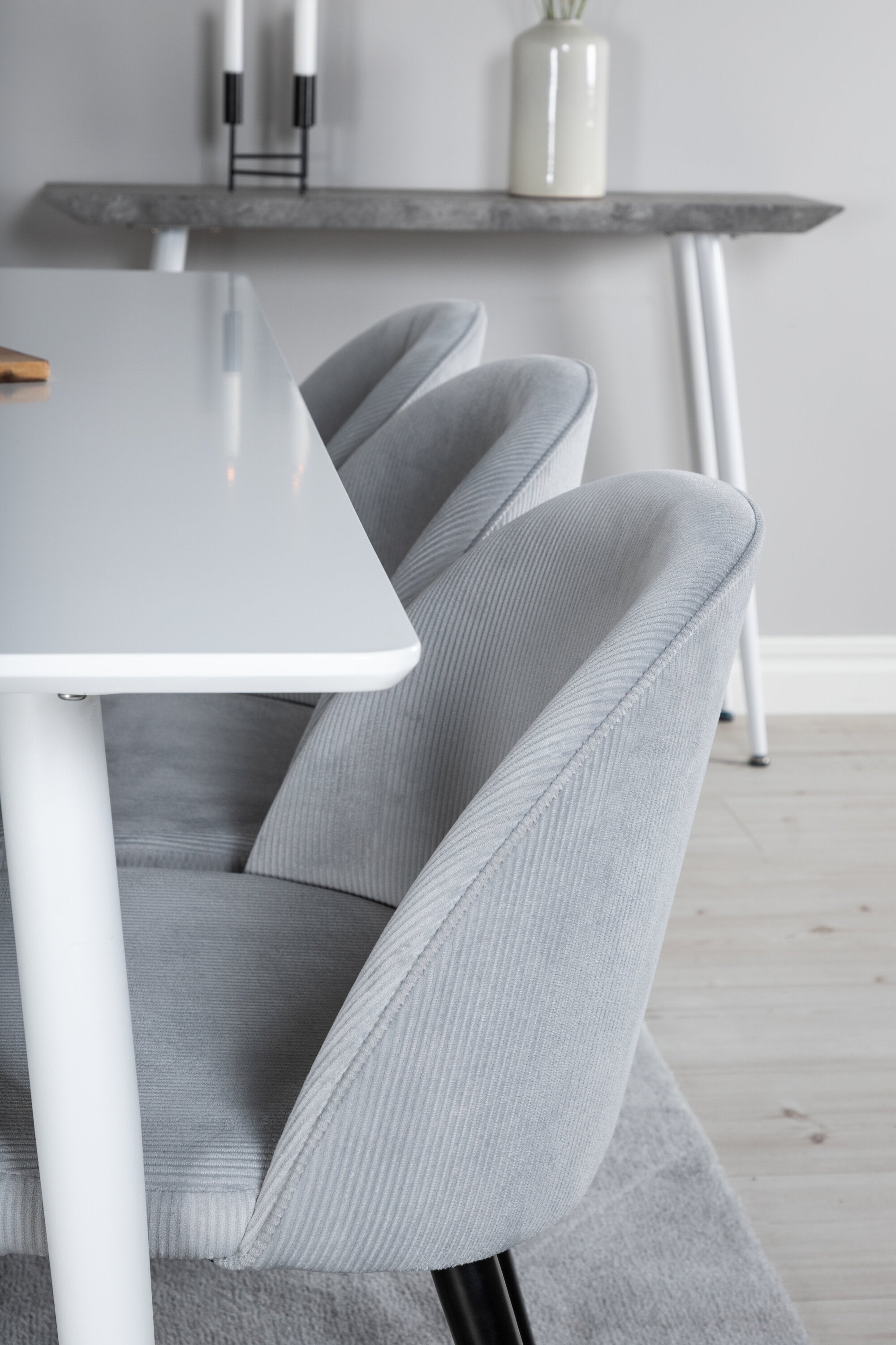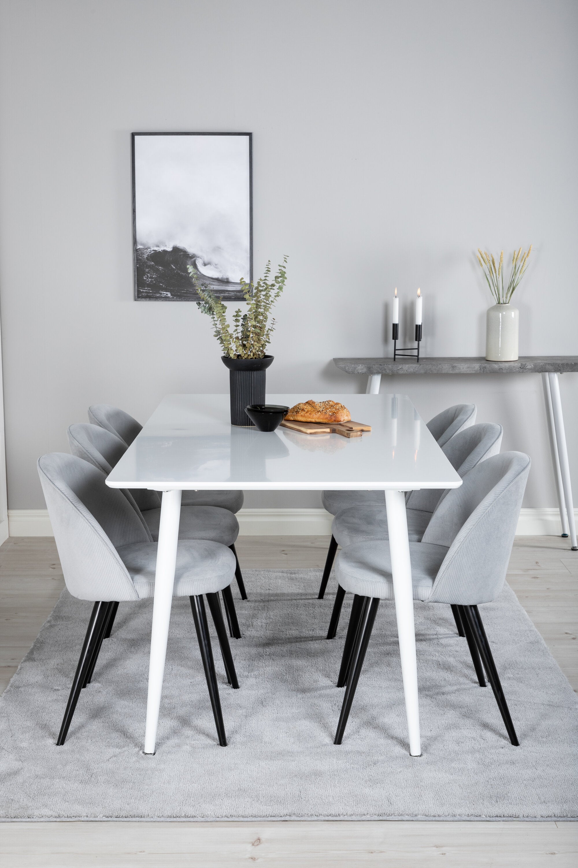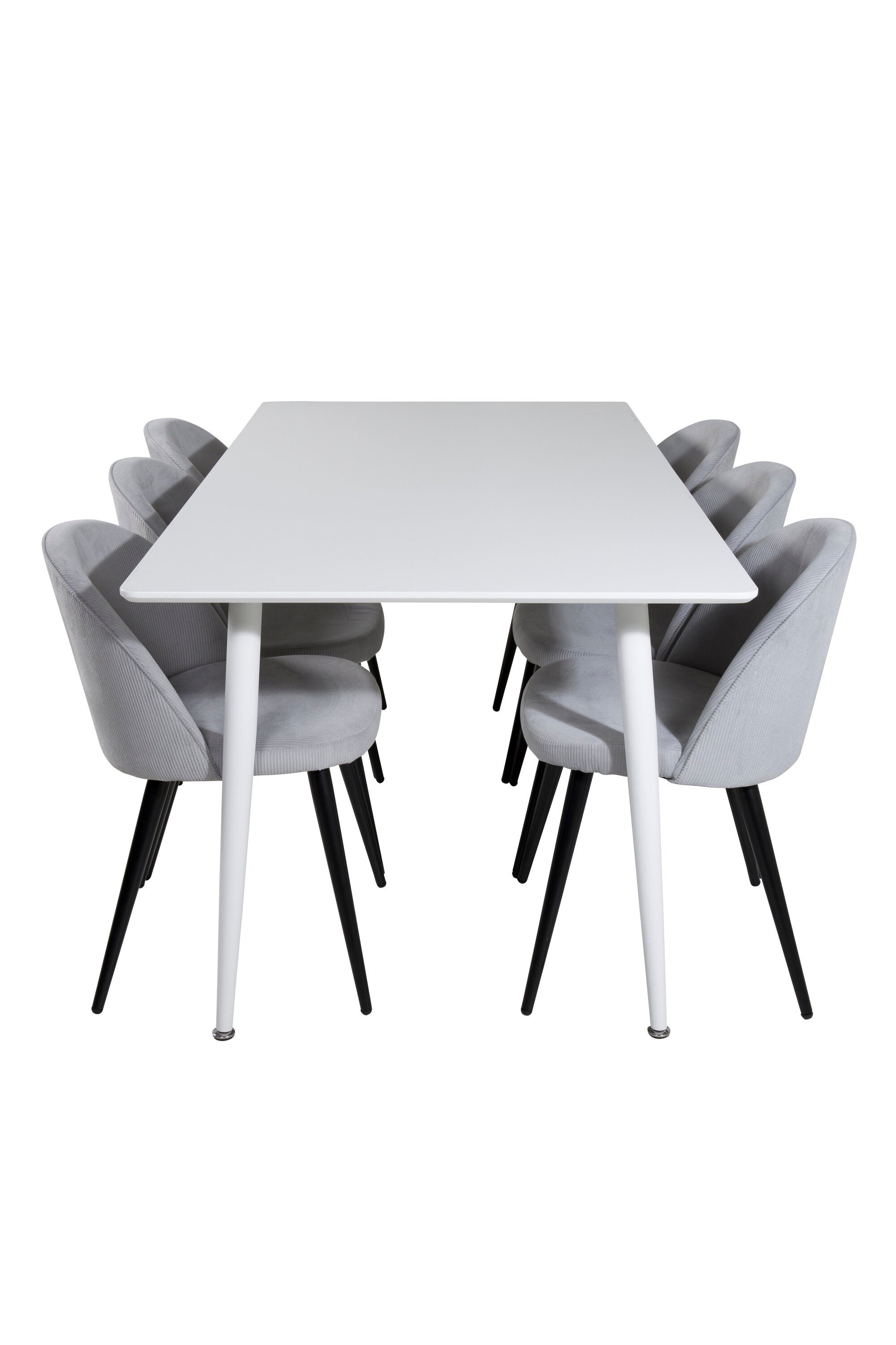Polar Jídelní stůl 180 cm - Bílá deska / Bílé nohy + Sametová jídelní židle Manšestr - Světle Šedá / Černá_6