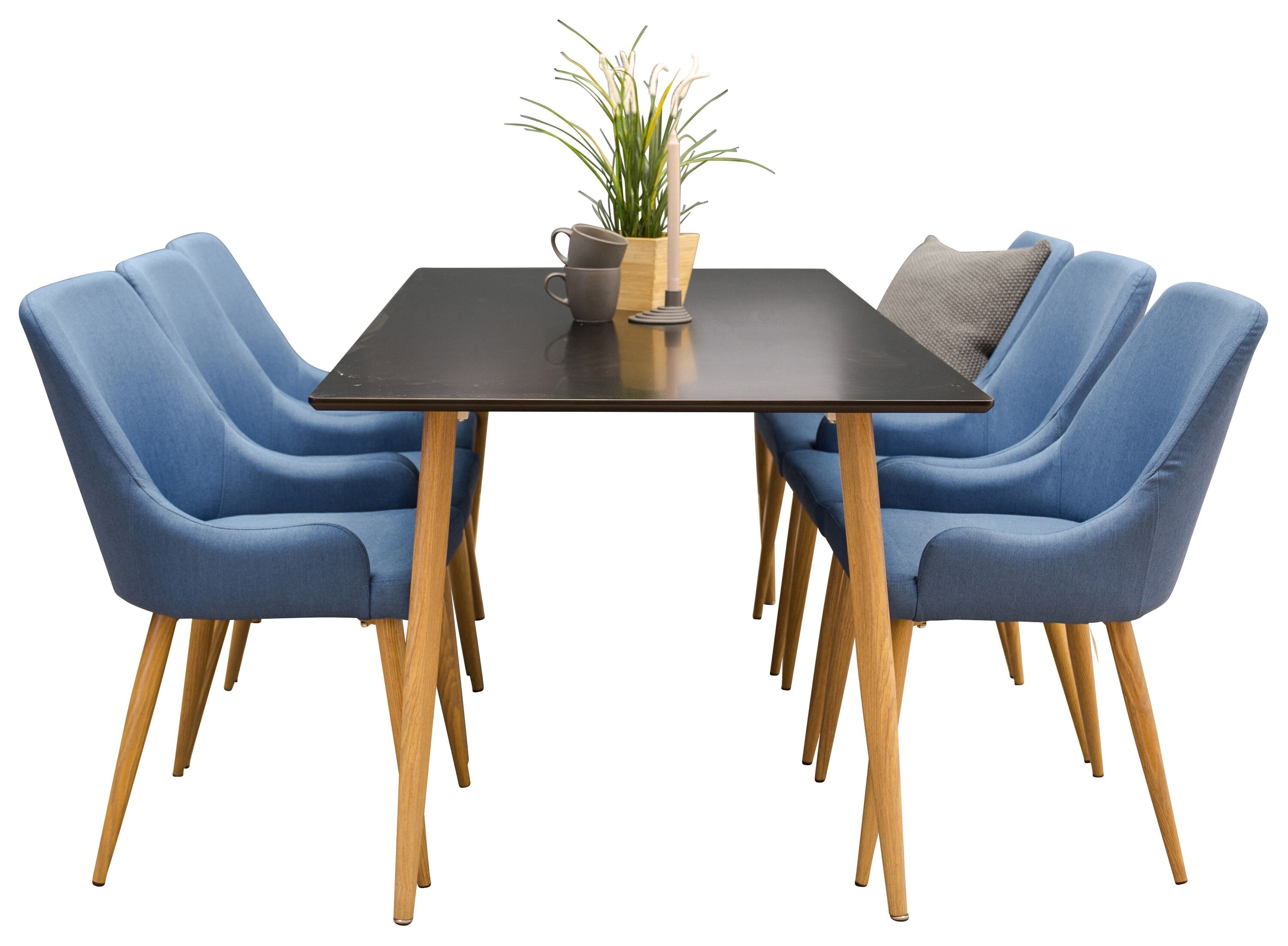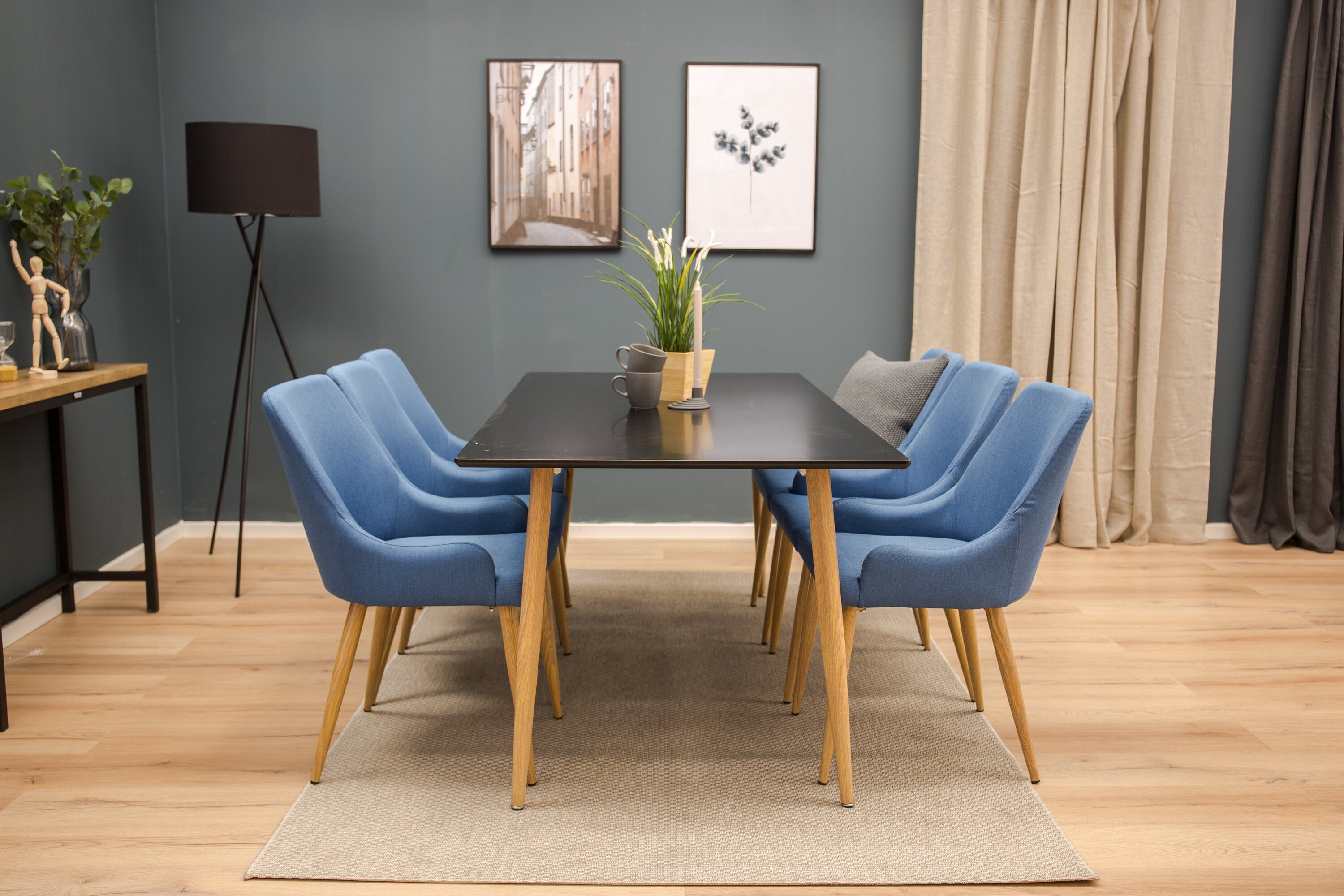 Polar Matbord - Ek-Look / Svart- 180*90*H75 +Plaza - Jídelní židle - Modrá / Dub _6