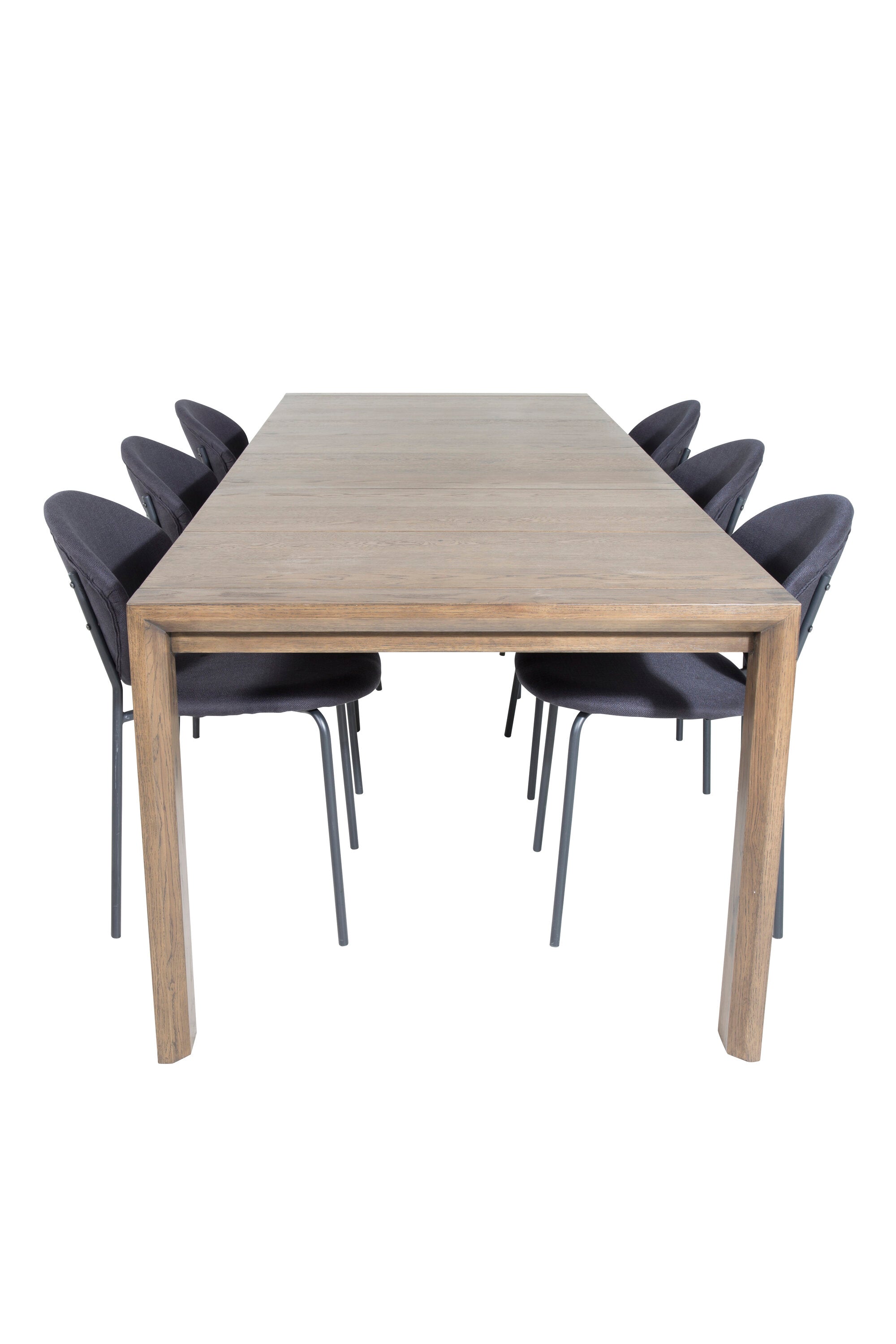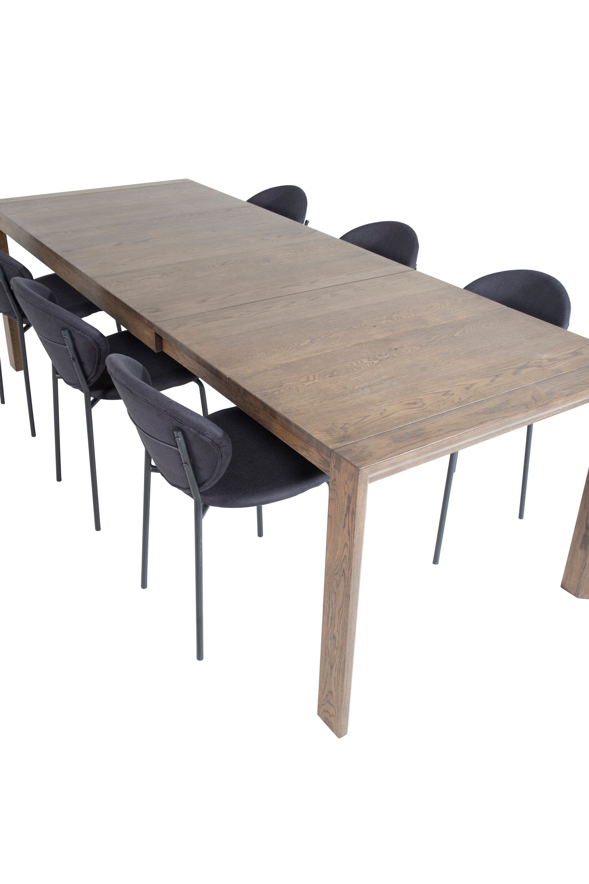 Posuvný rozkládací stůl - Dub kouřový - 170+40+40cm + Jídelní židle Trezor - Černá L
