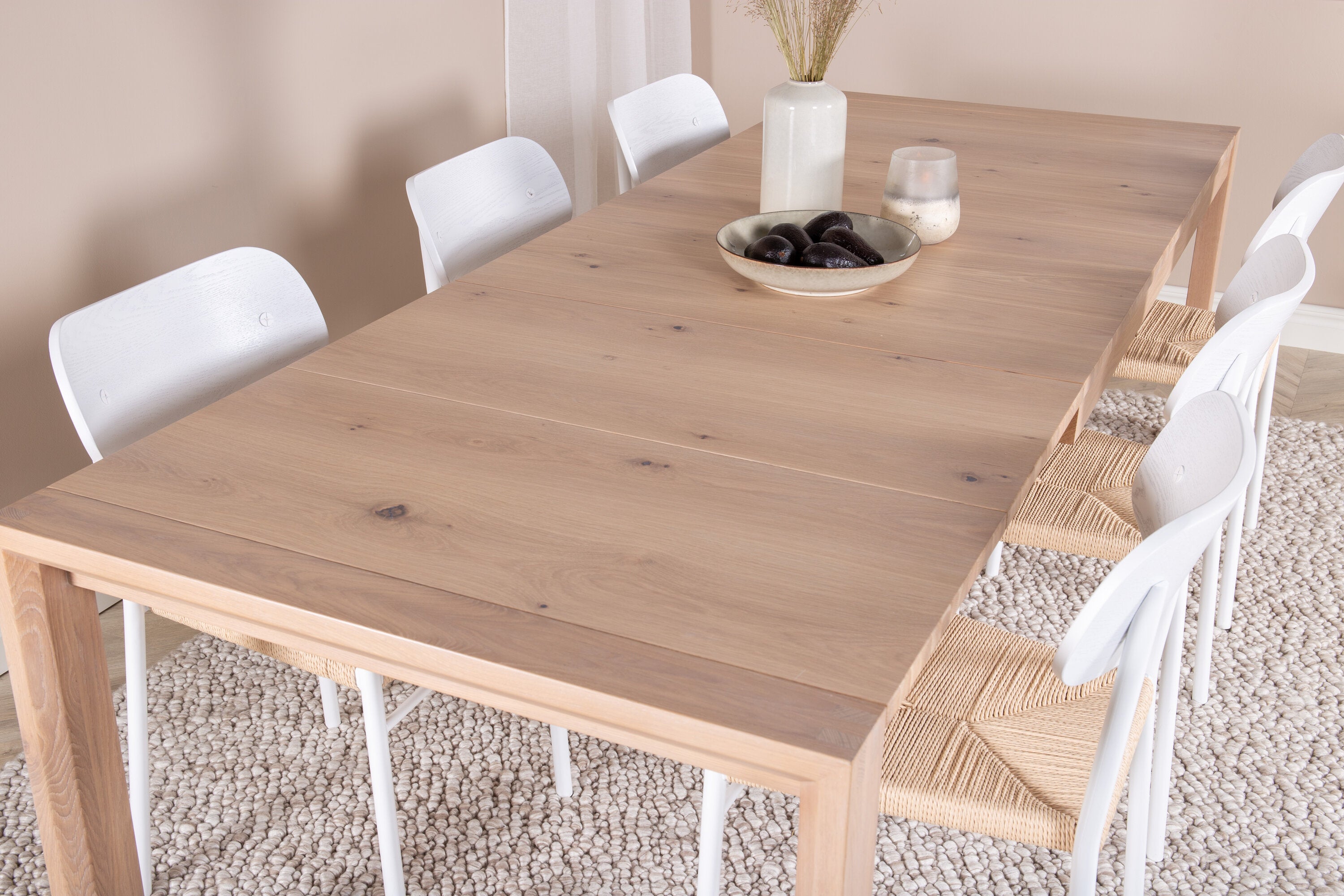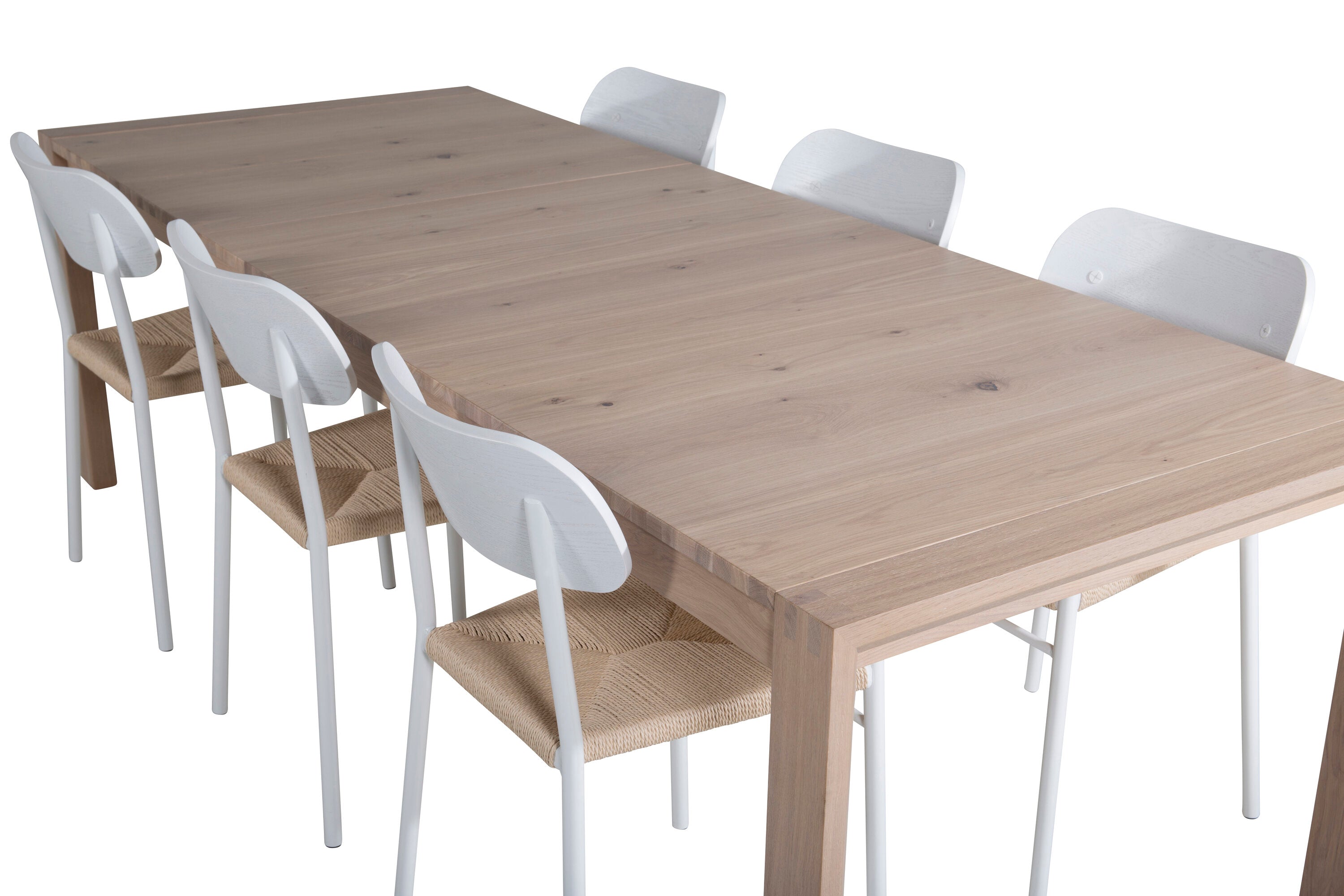 Posuvný rozkládací stůl - White Wash - 170+40+40cm +Jídelní židle Polly - Bílá / Přírodní _6