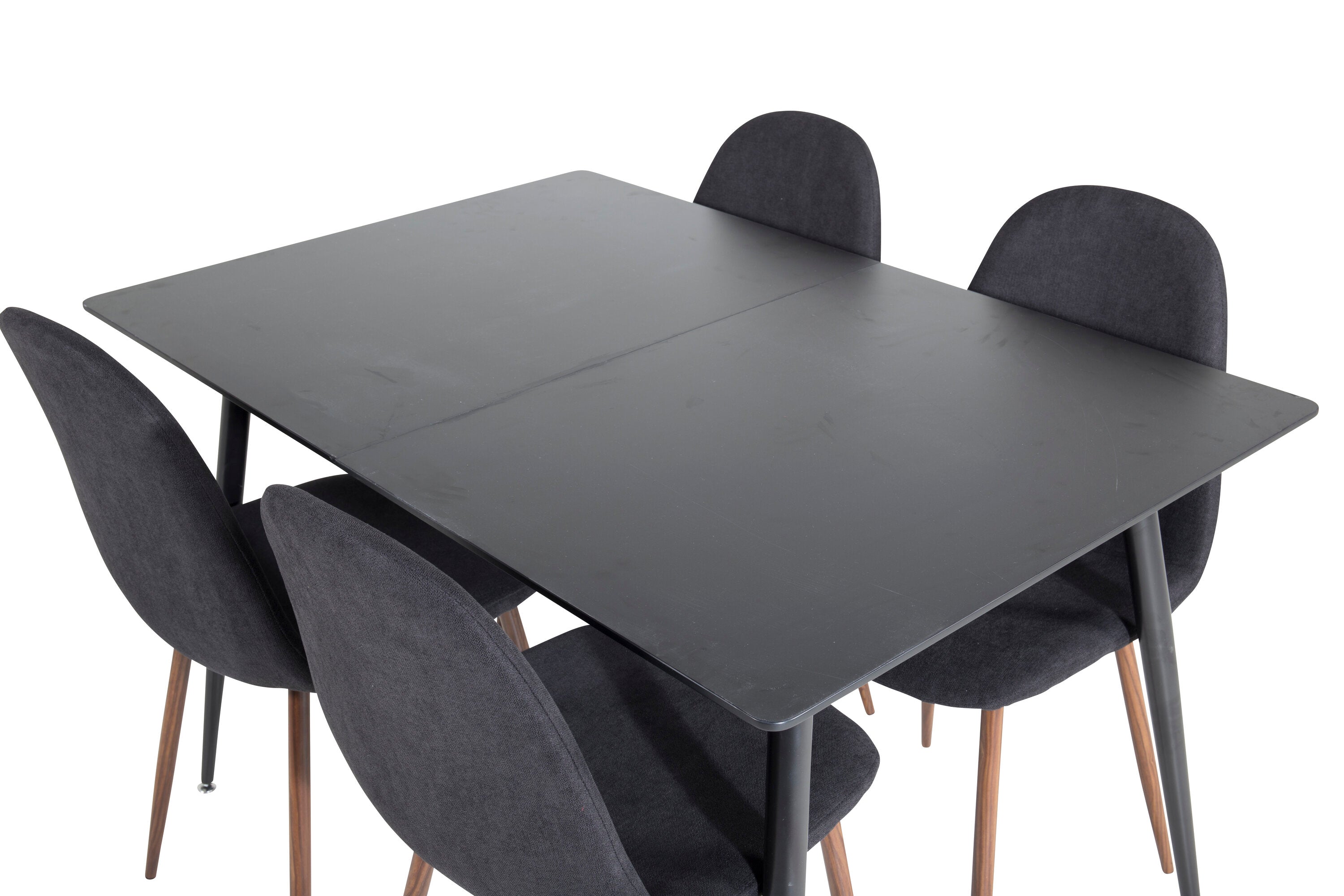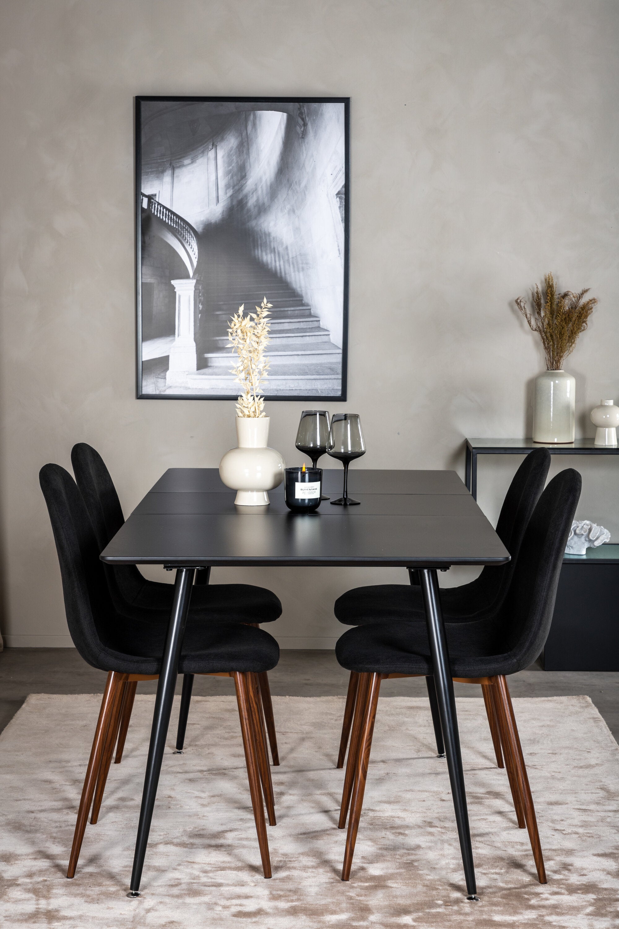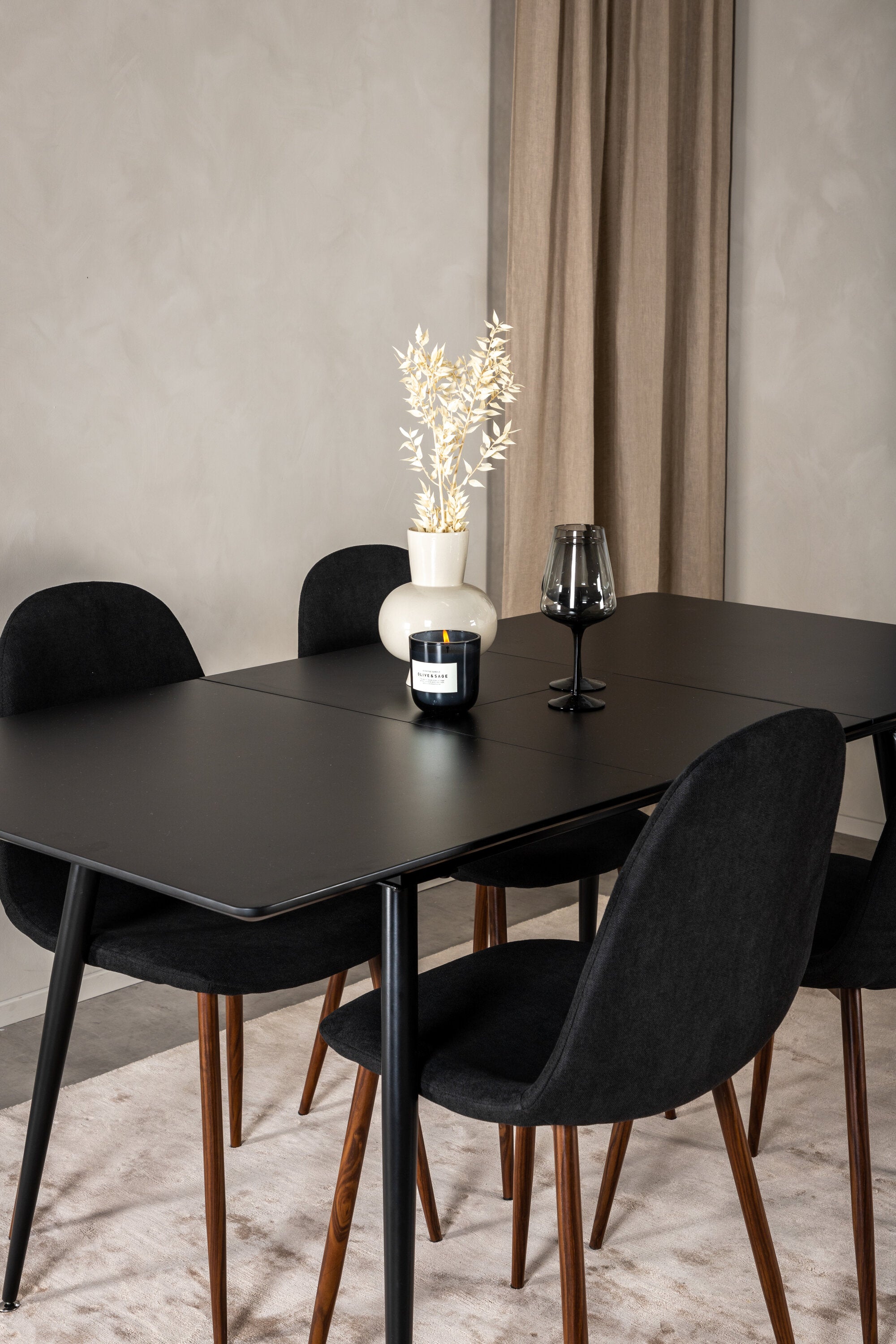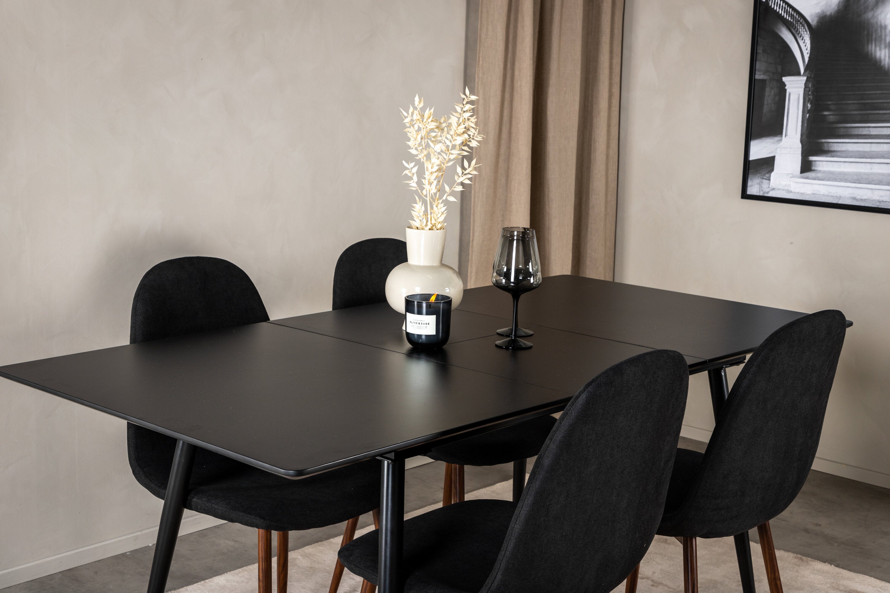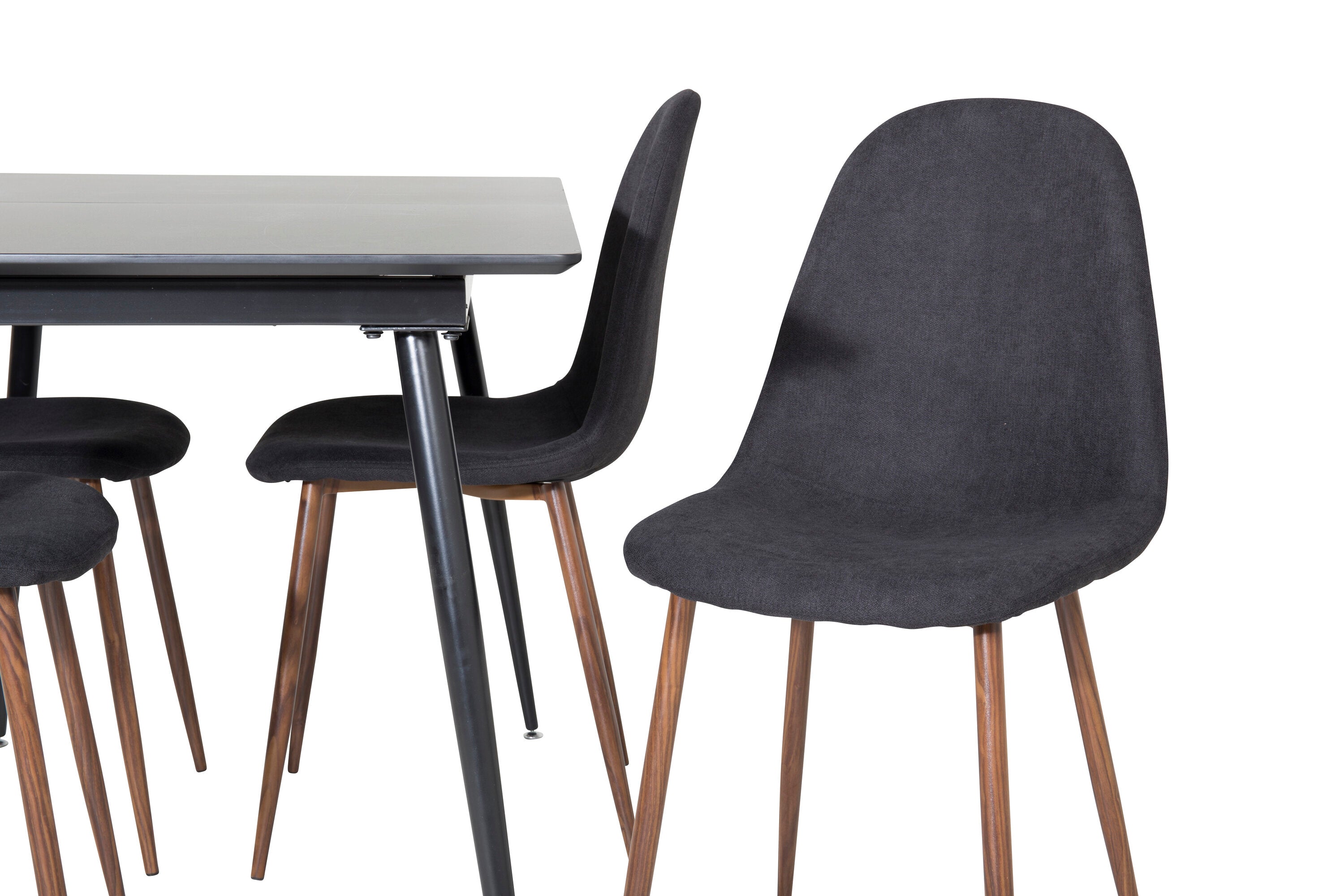 Prodlužovací stůl Silar – černý melamin/černé nohy+jídelní židle Polar – ořechové nohy – černá látka_4