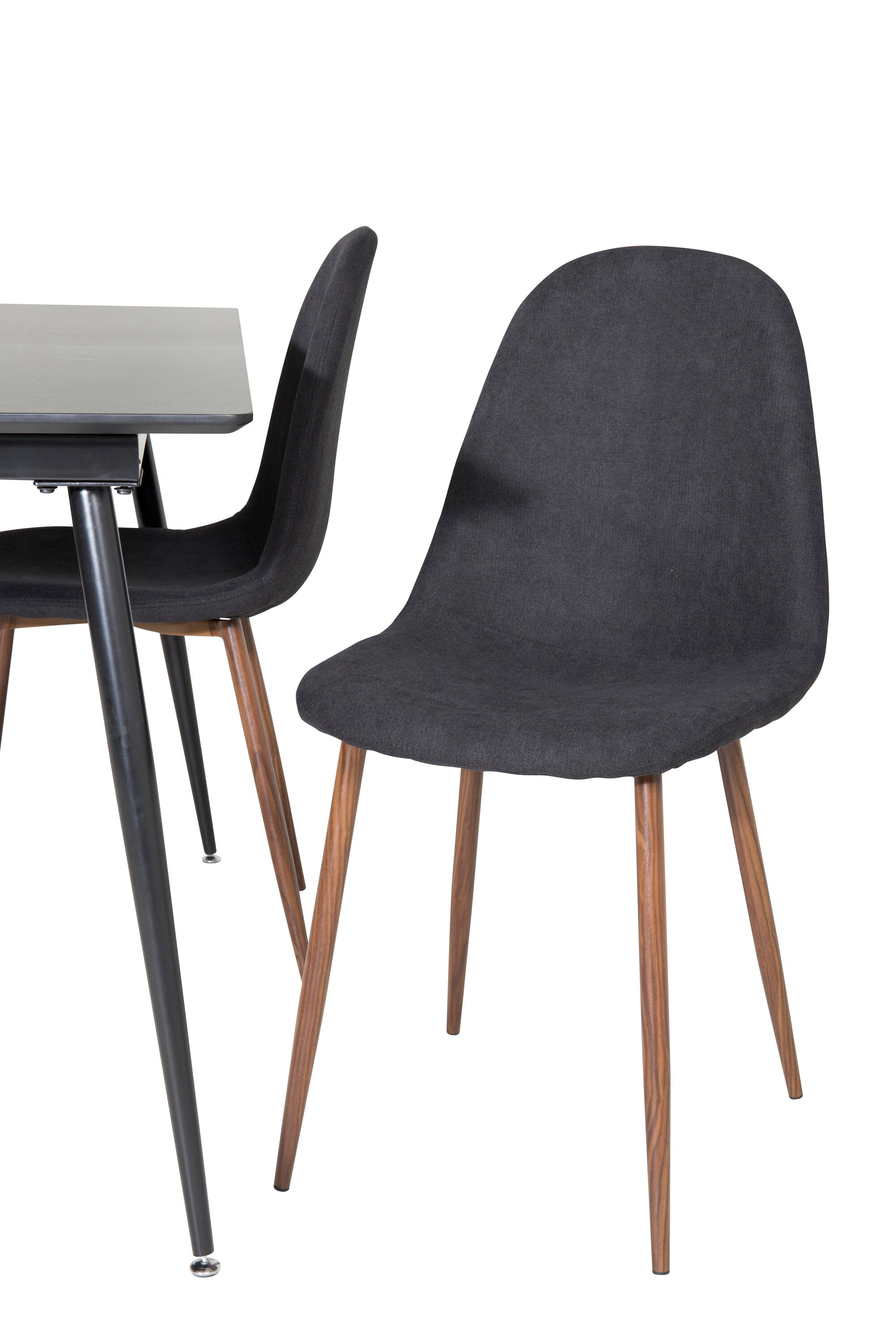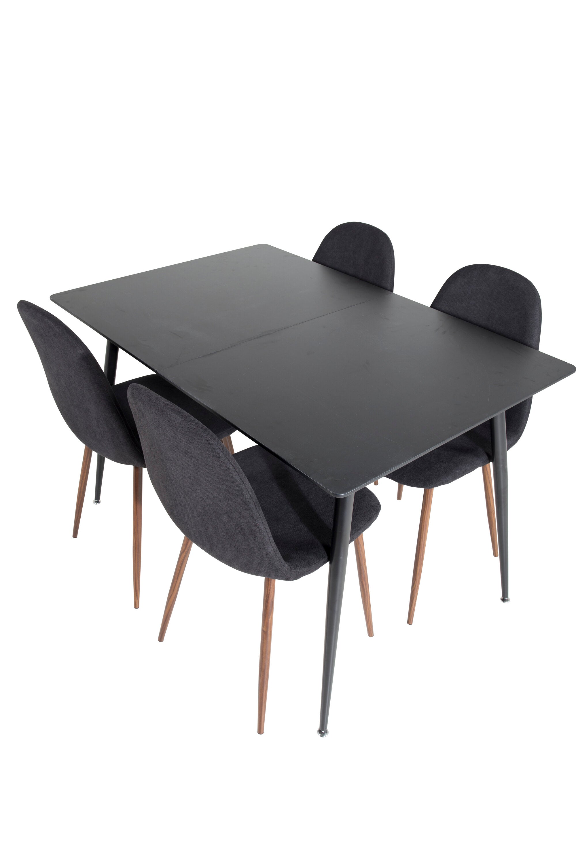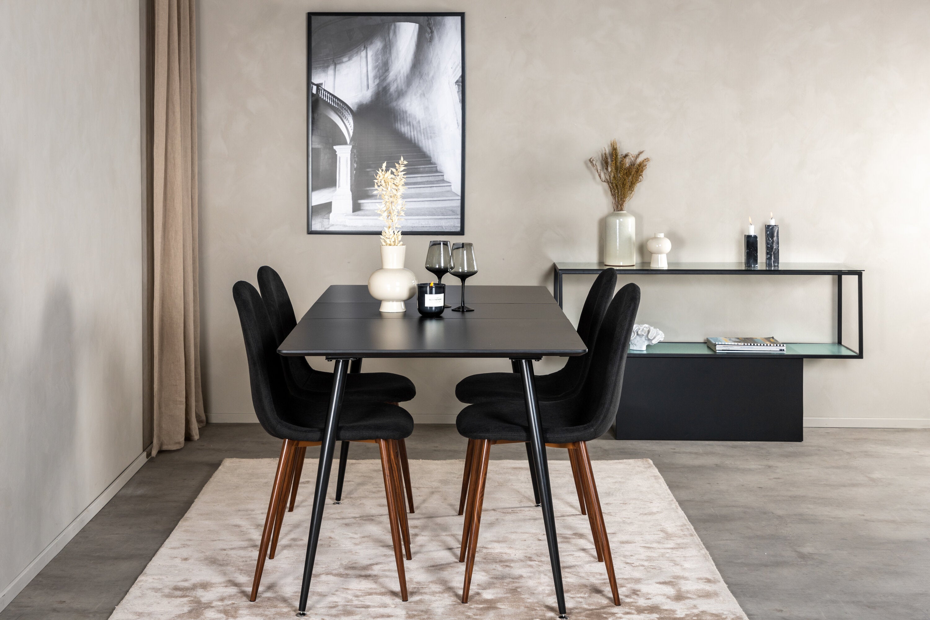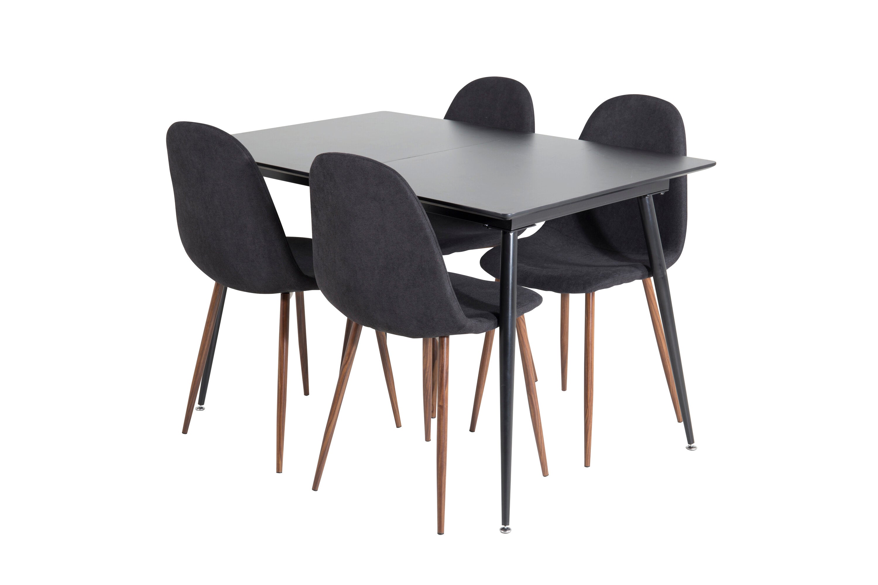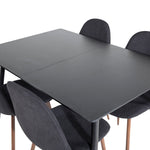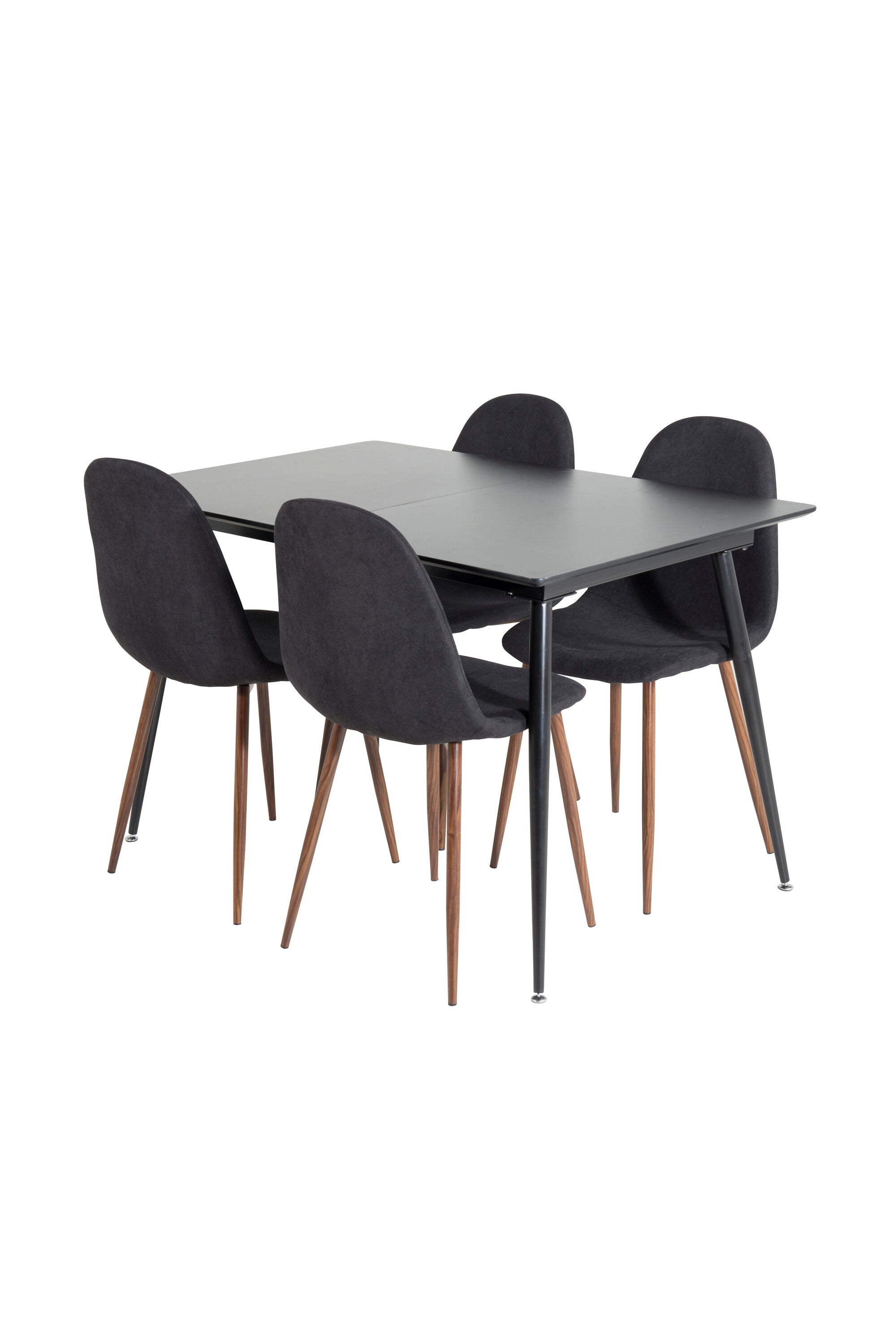 Prodlužovací stůl Silar – černý melamin/černé nohy+jídelní židle Polar – ořechové nohy – černá látka_4