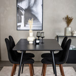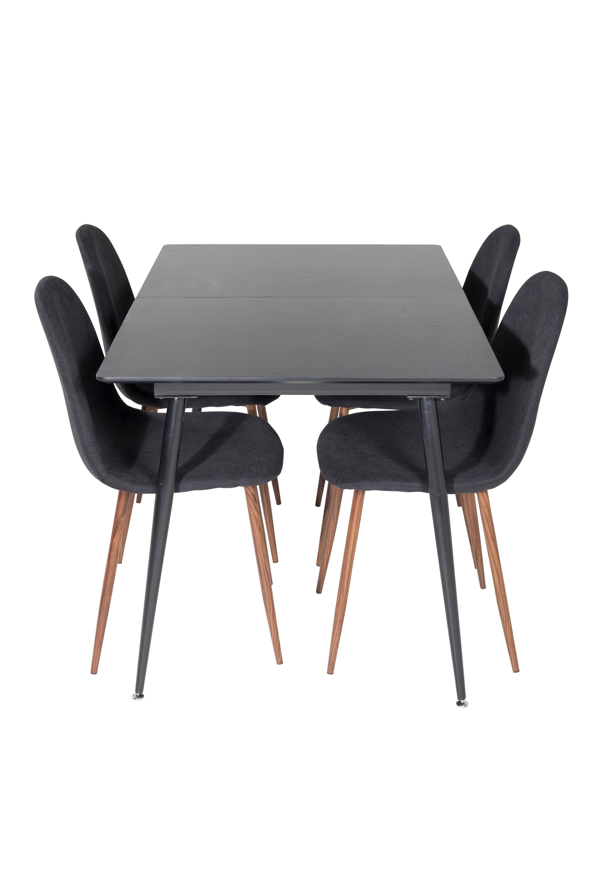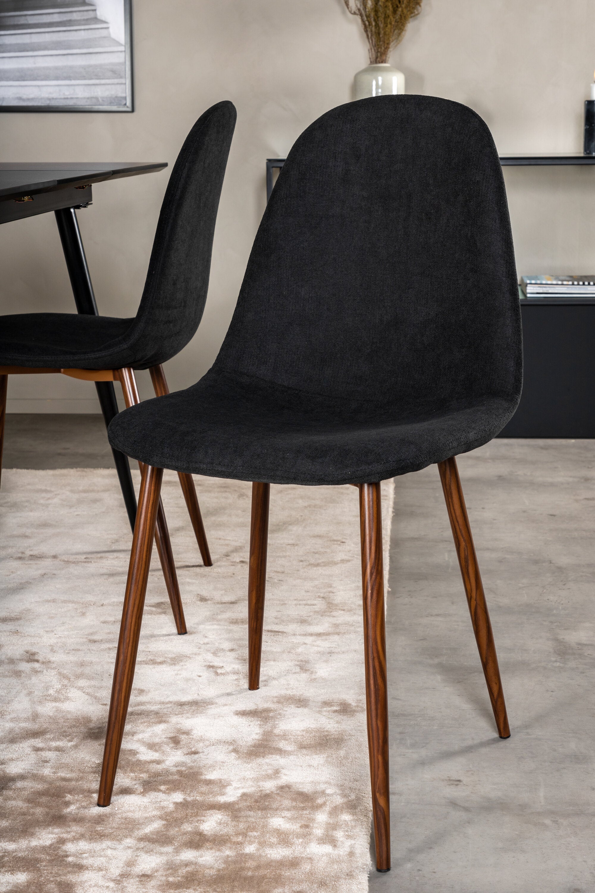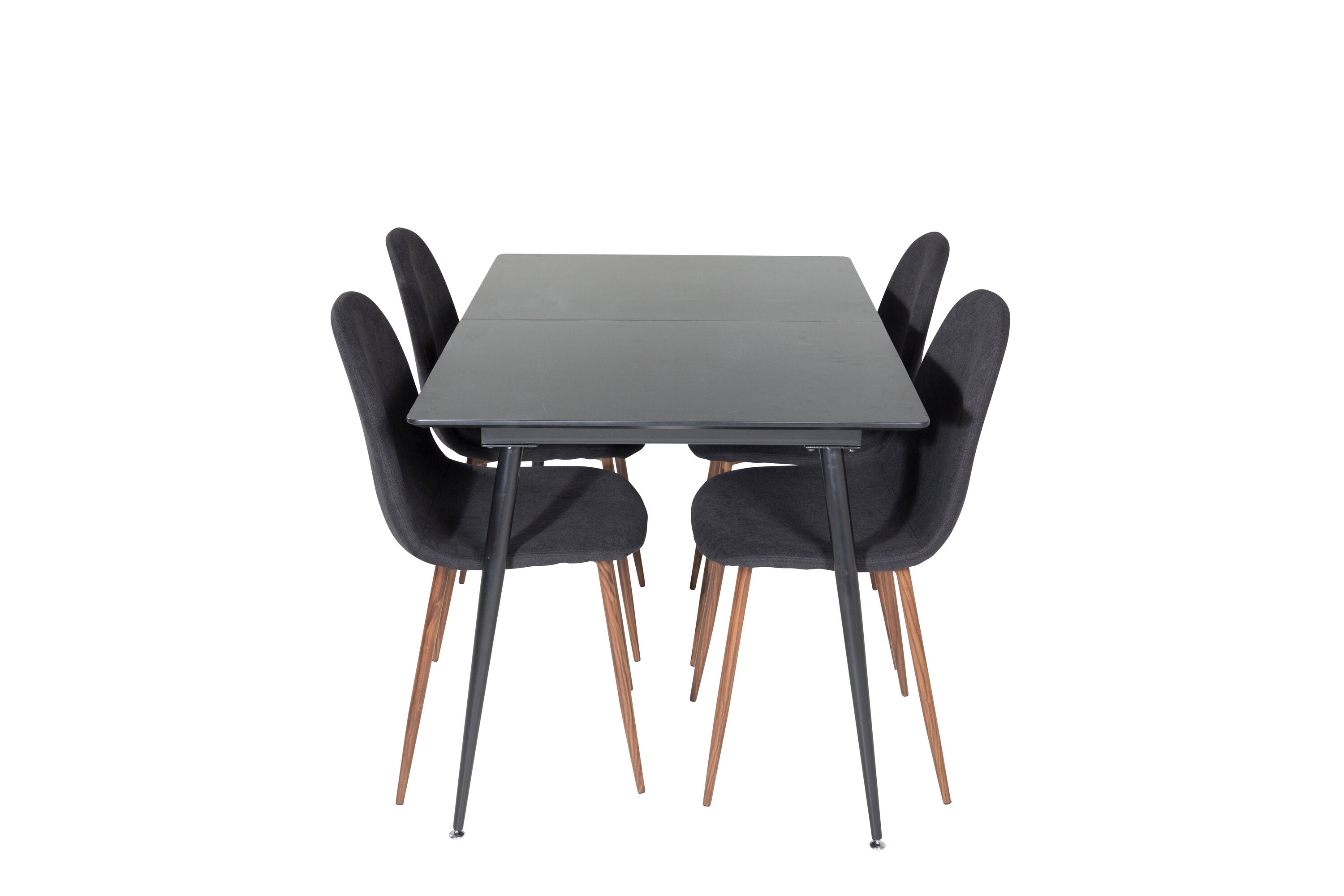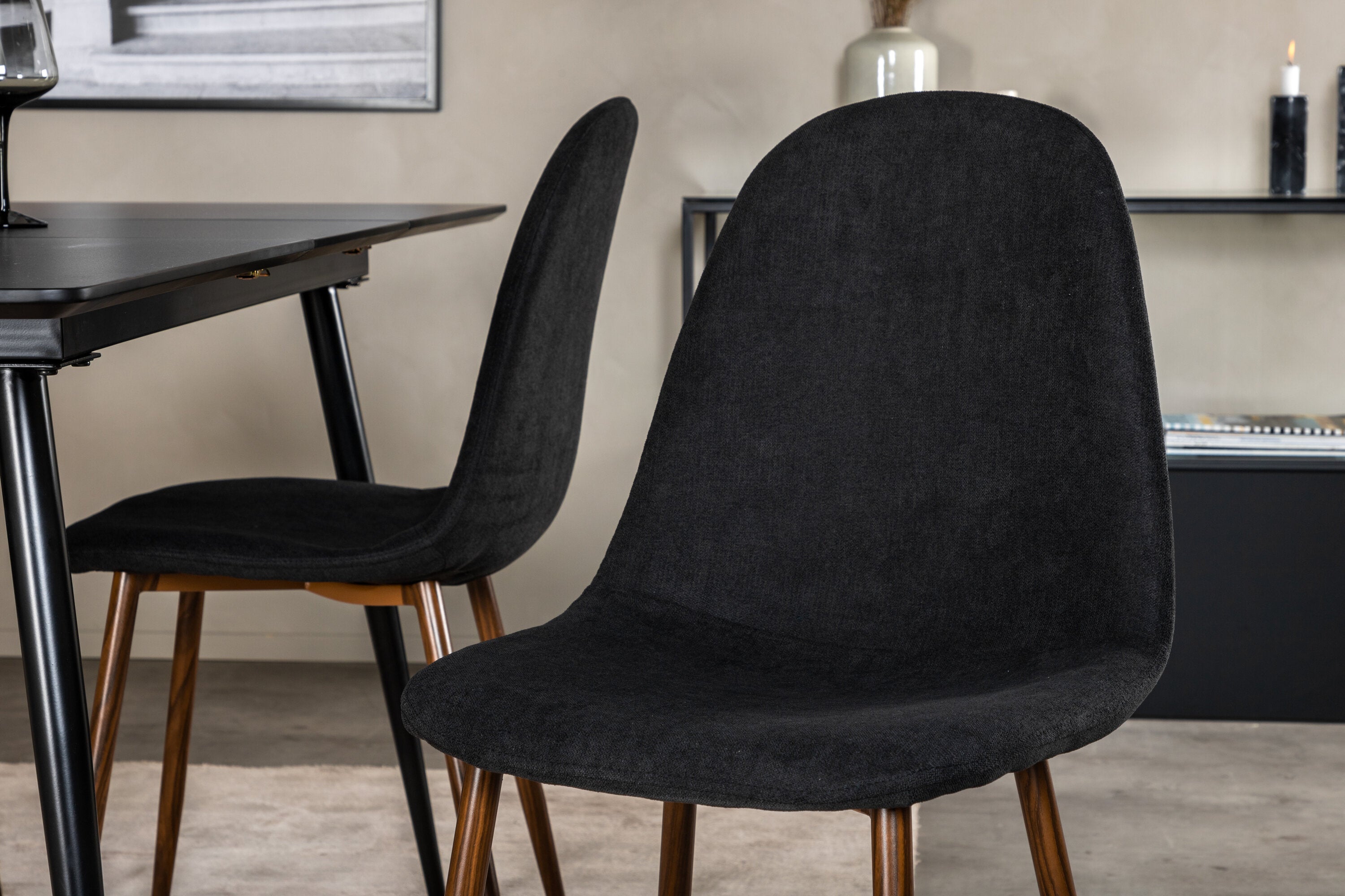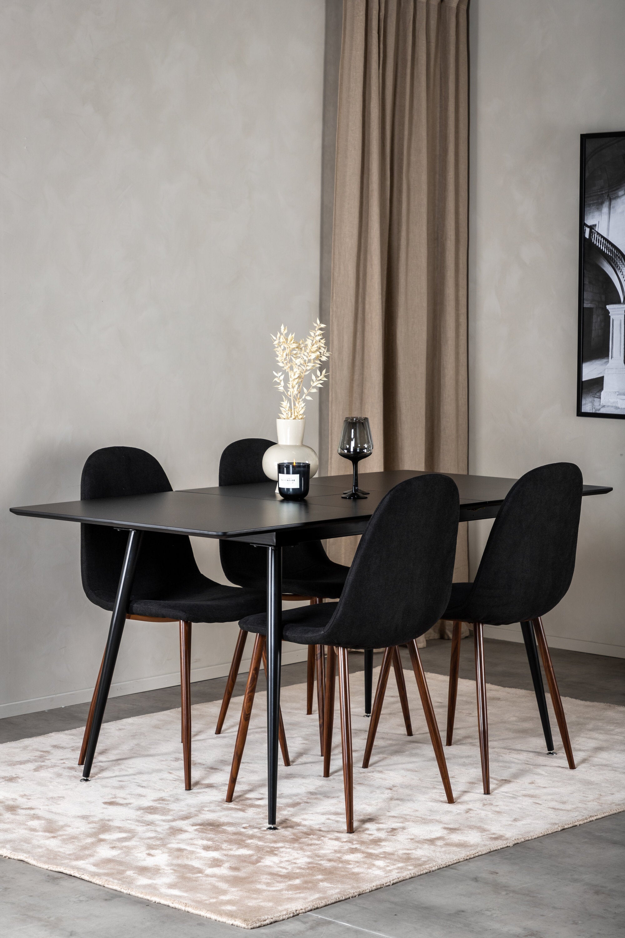Prodlužovací stůl Silar – černý melamin/černé nohy+jídelní židle Polar – ořechové nohy – černá látka_4