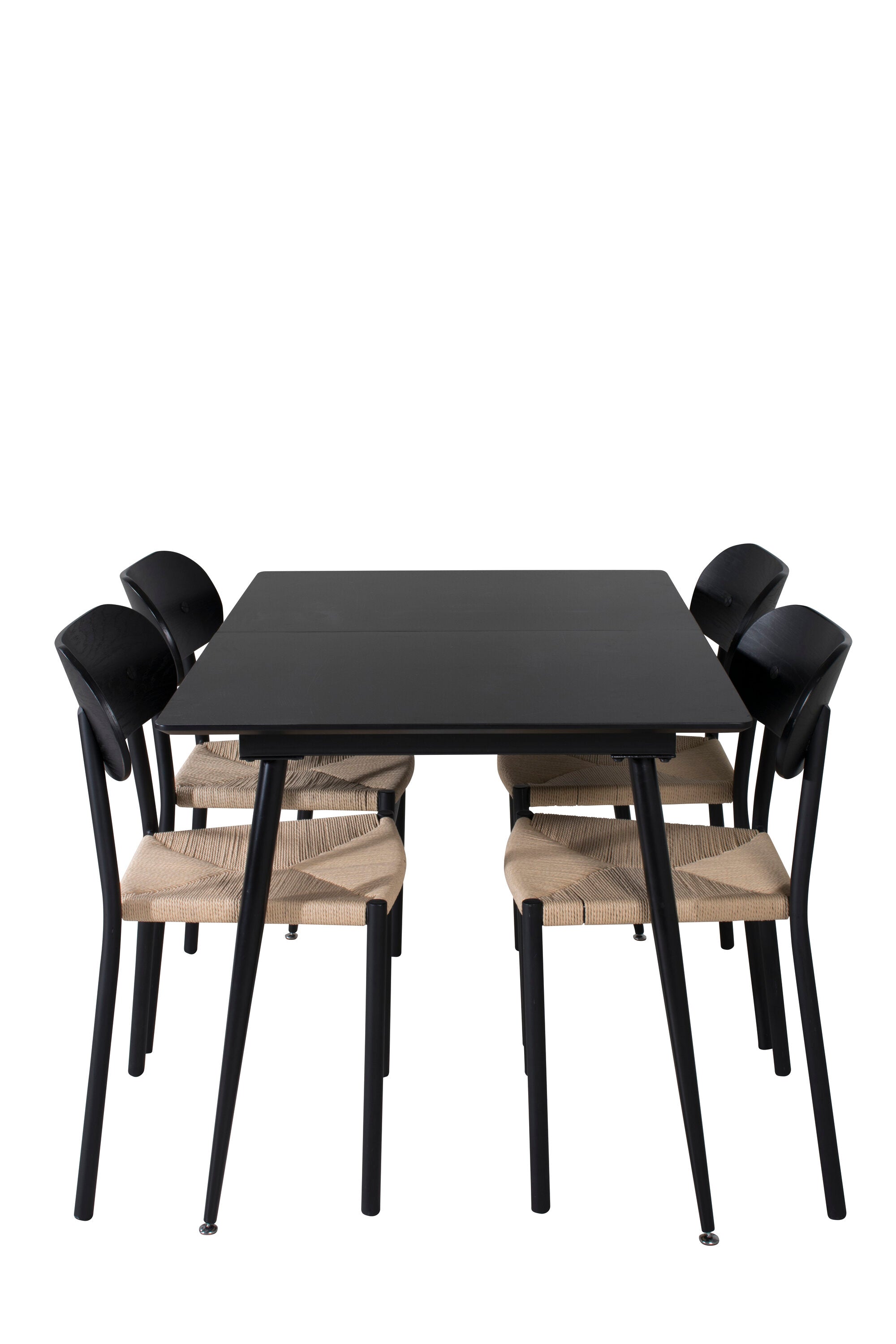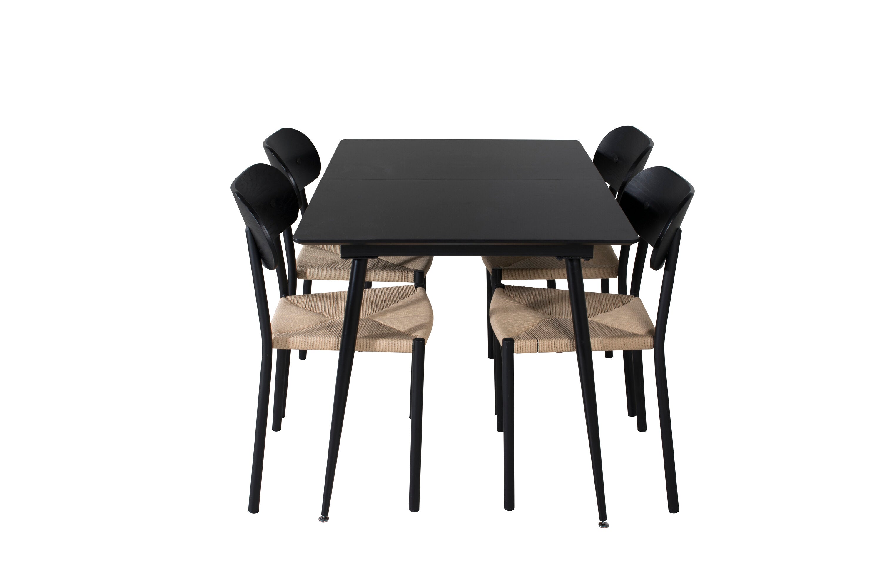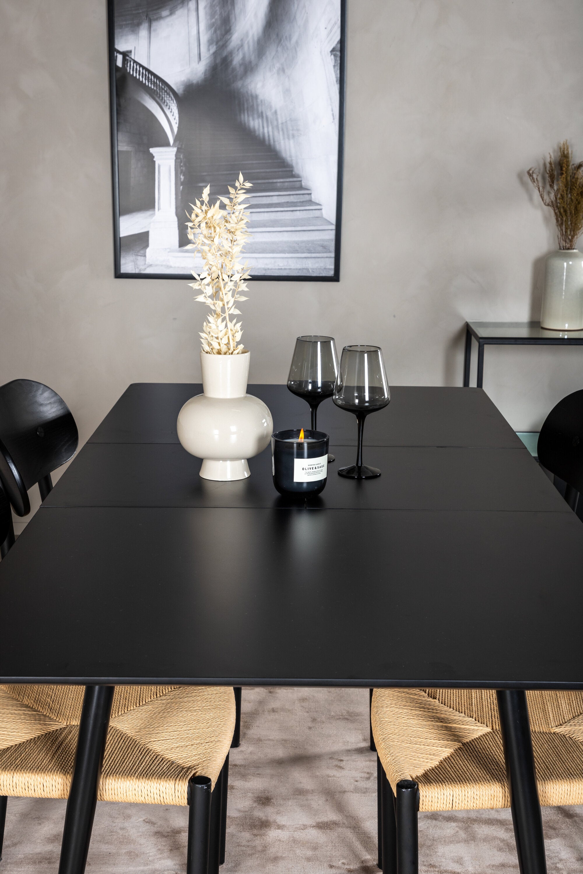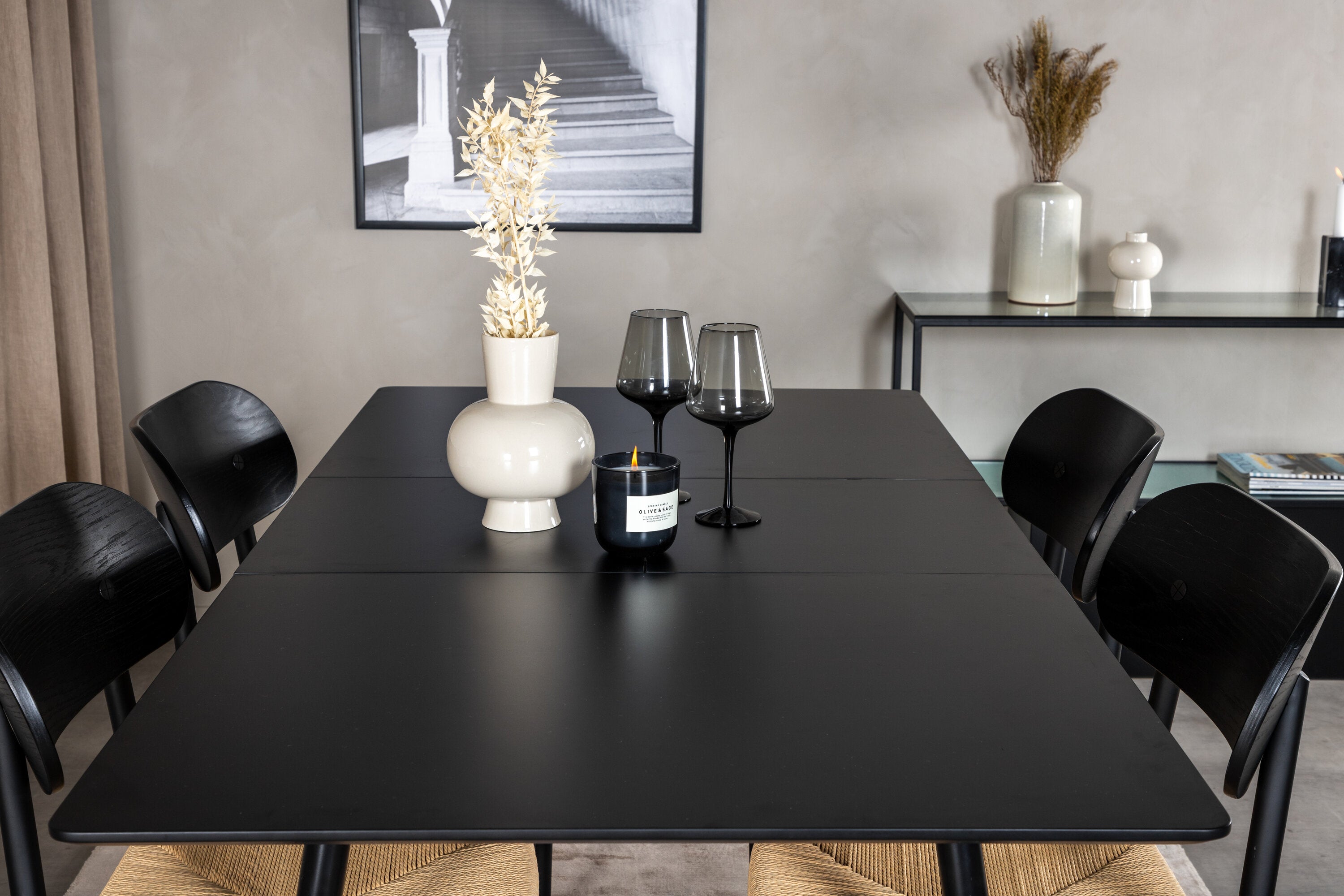 Prodlužovací stůl Silar - černý melamin / černé nohy + jídelní židle Polly - černá / přírodní _4