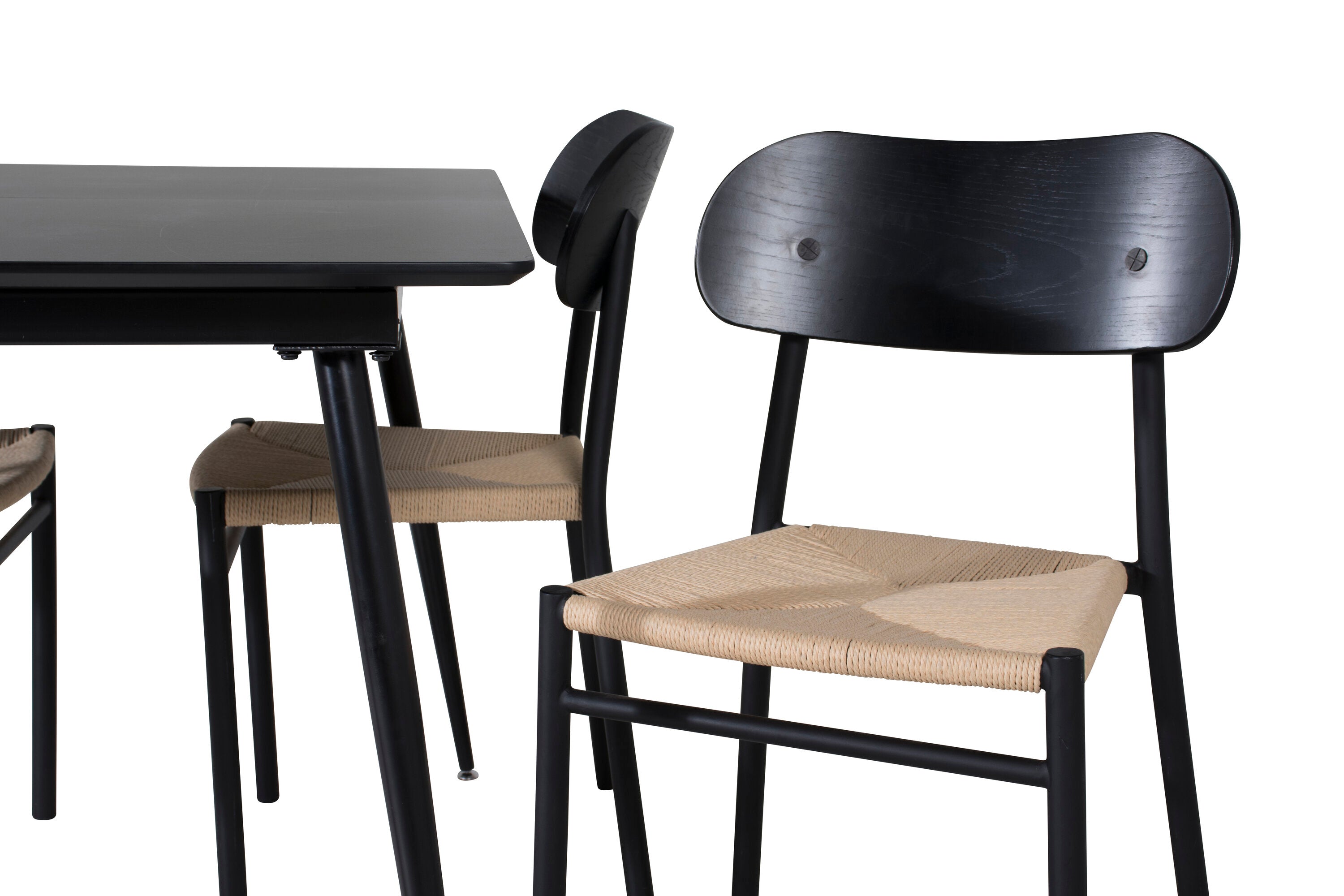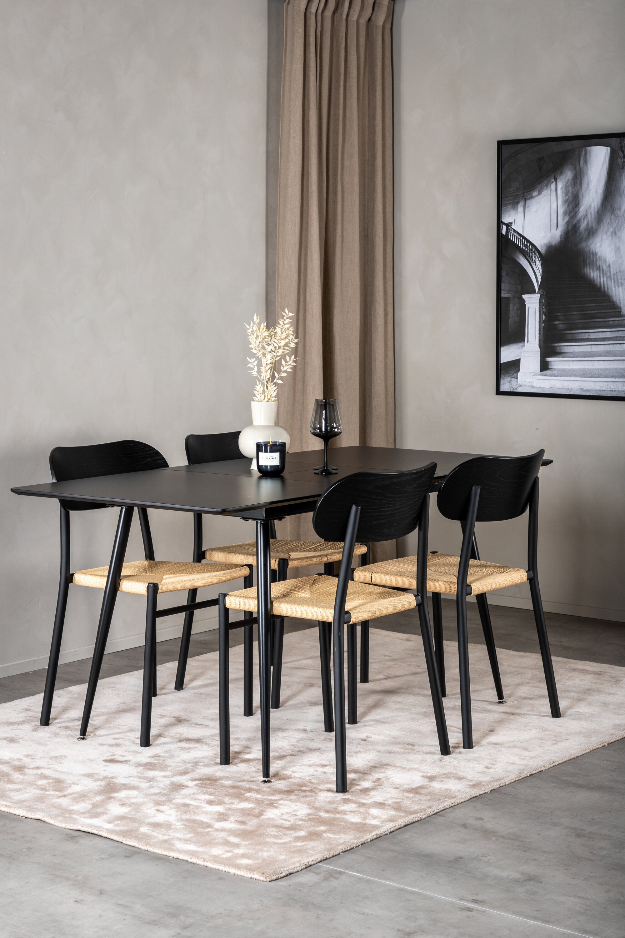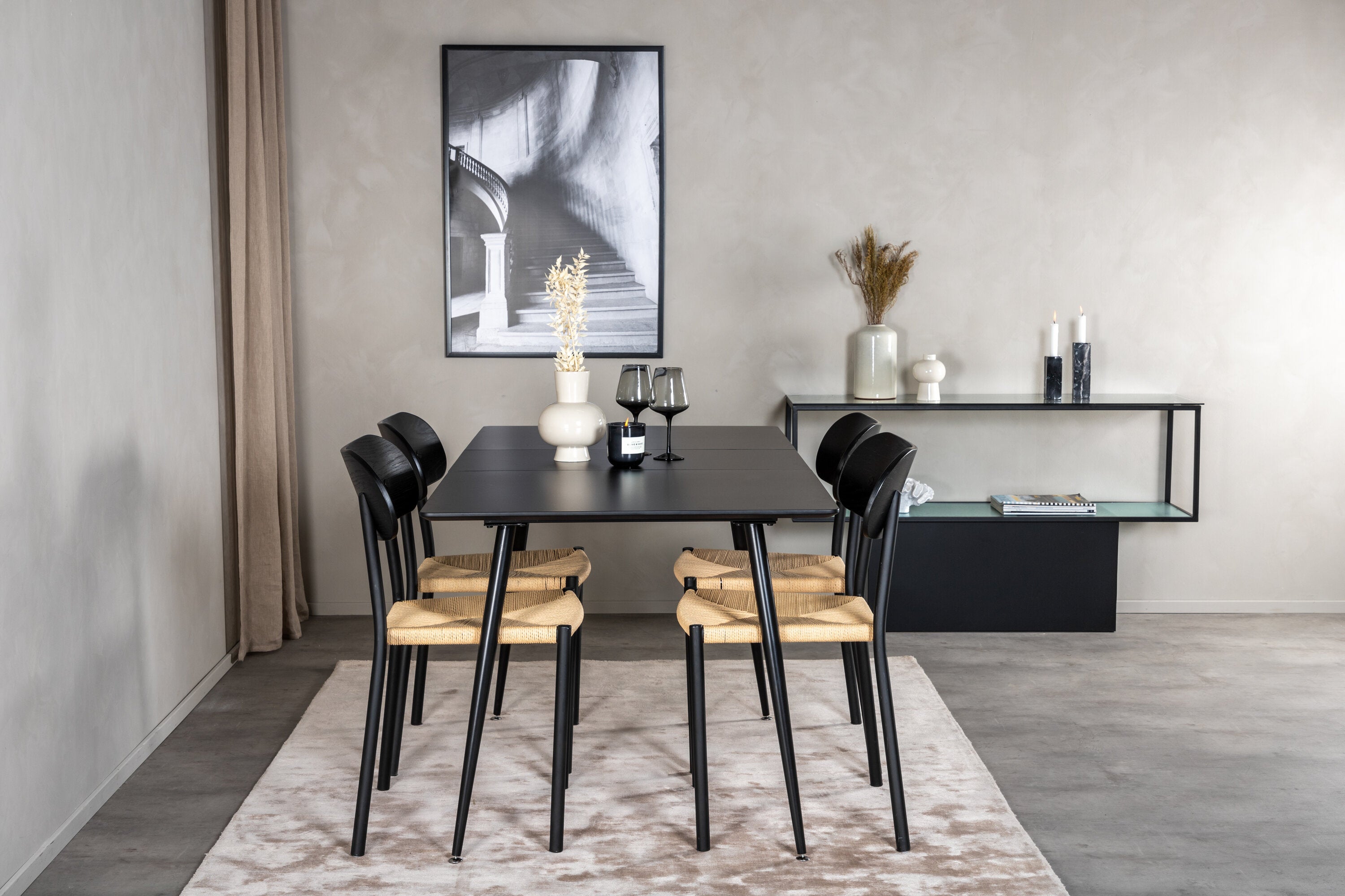 Prodlužovací stůl Silar - černý melamin / černé nohy + jídelní židle Polly - černá / přírodní _4