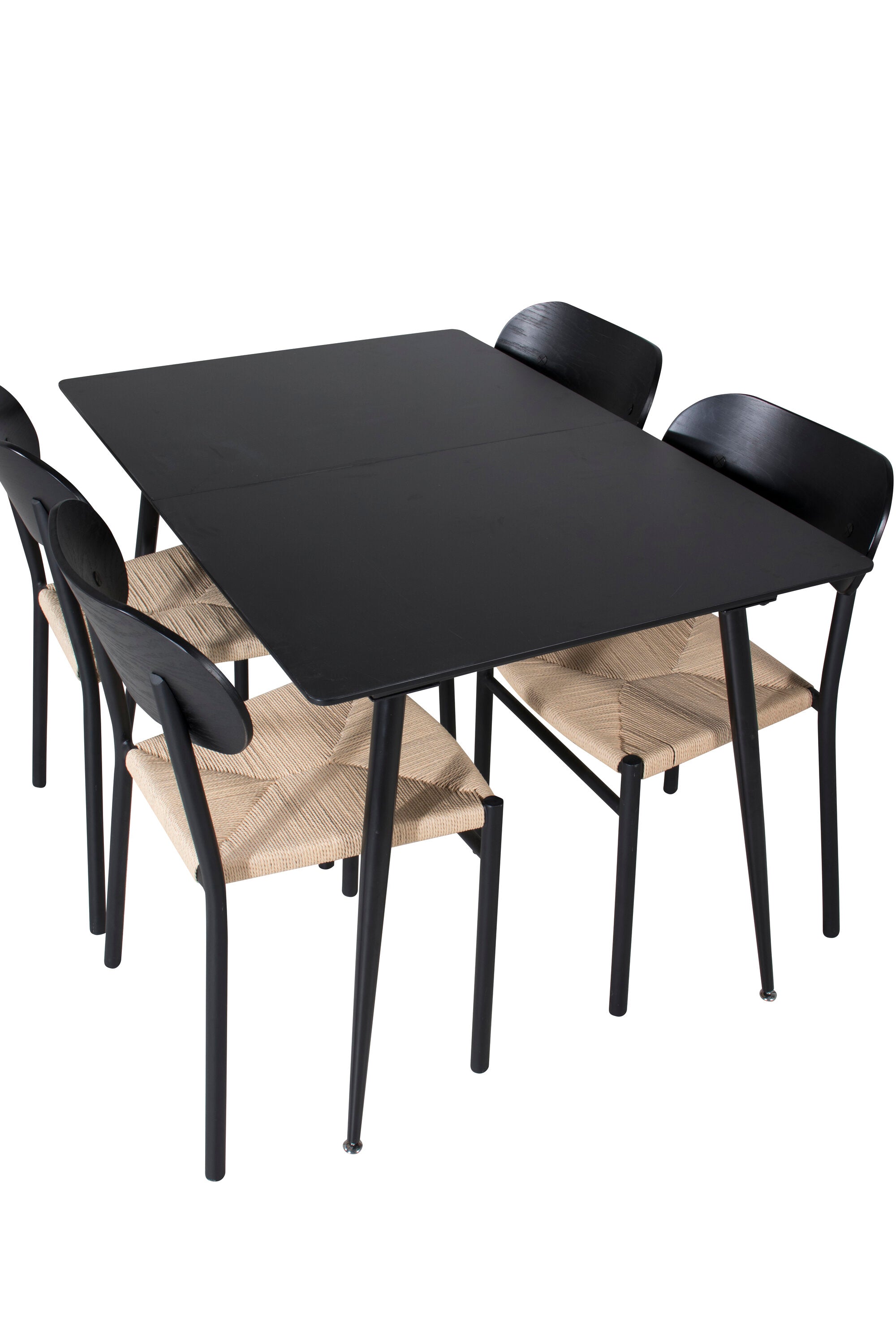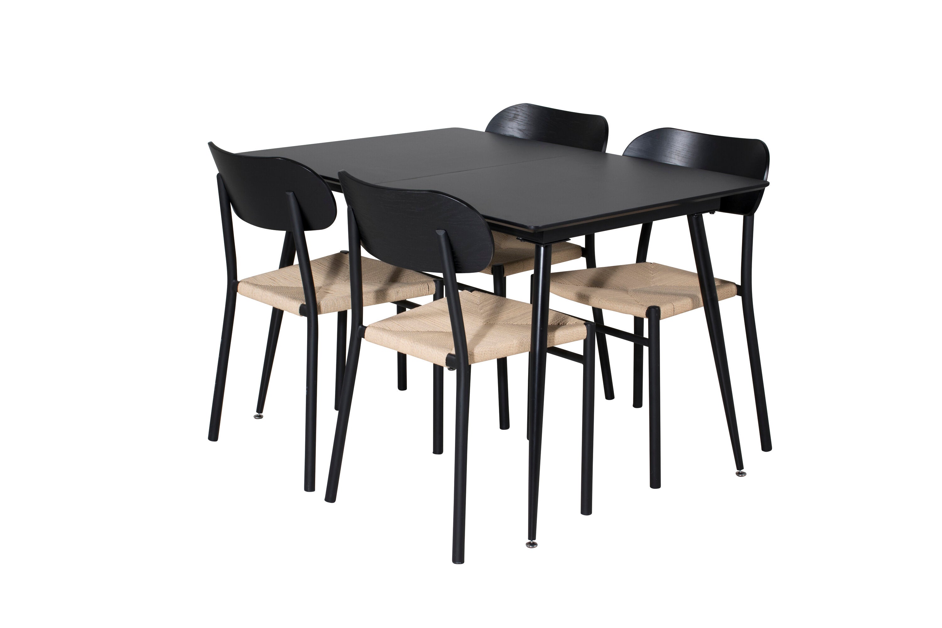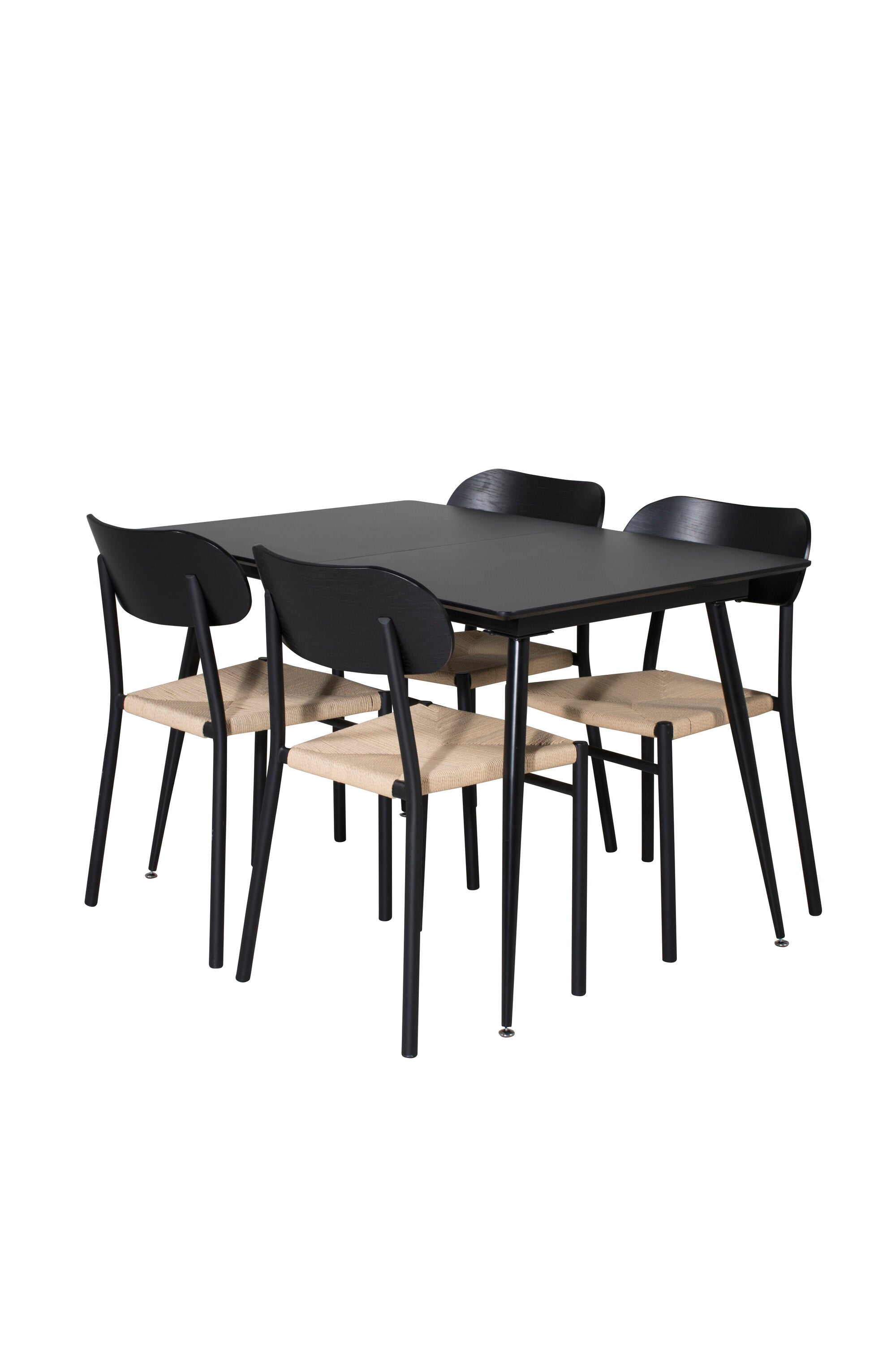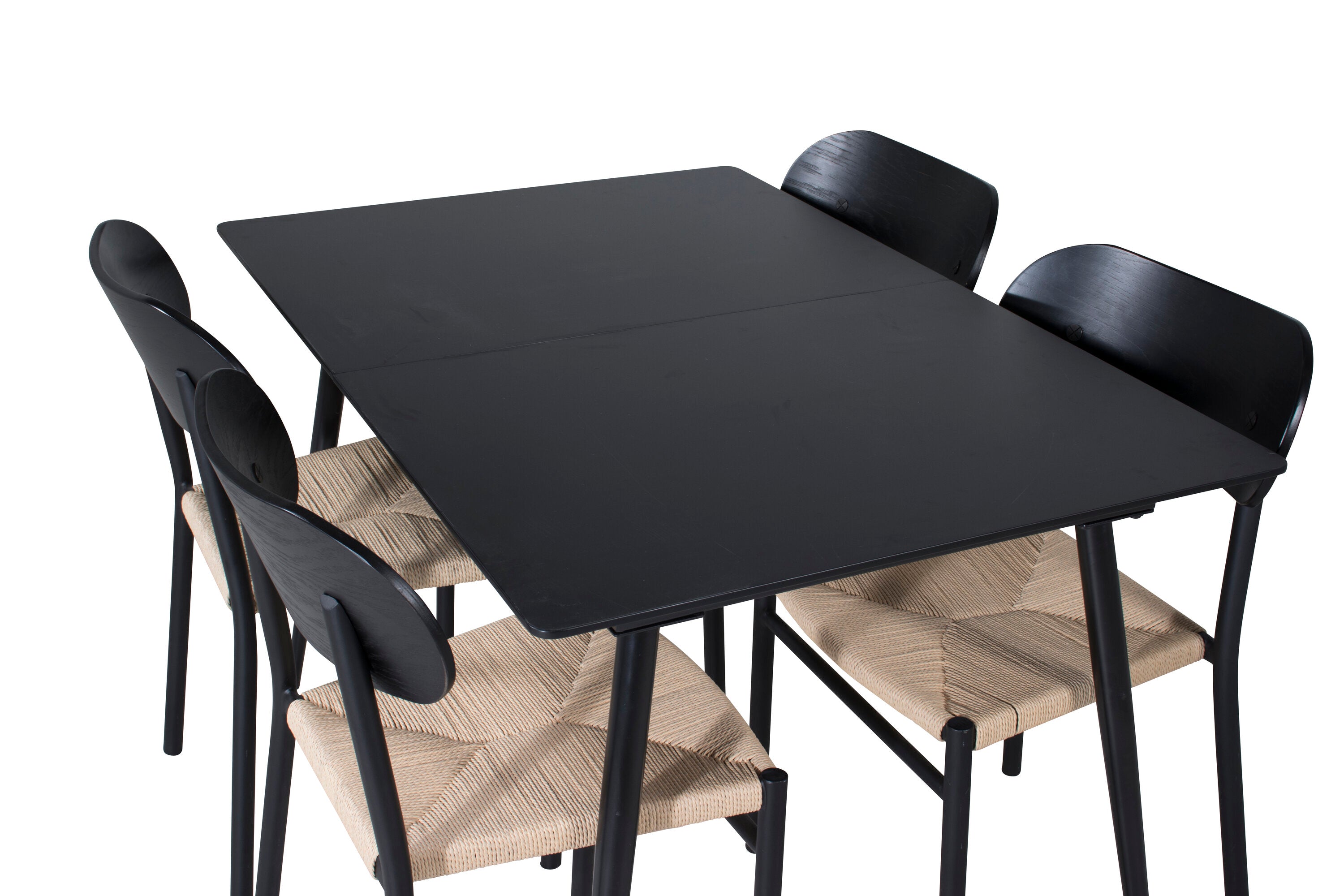 Prodlužovací stůl Silar - černý melamin / černé nohy + jídelní židle Polly - černá / přírodní _4