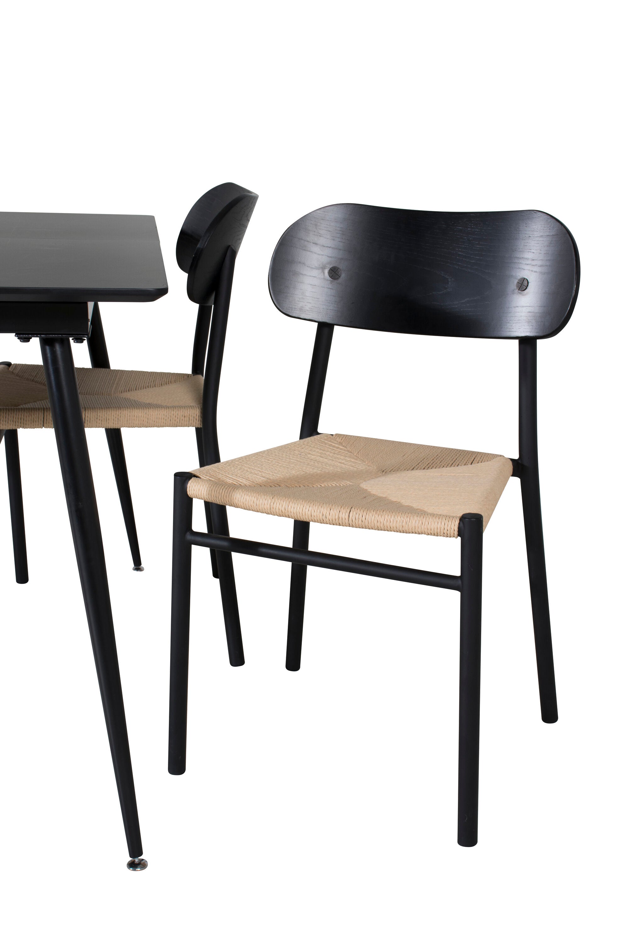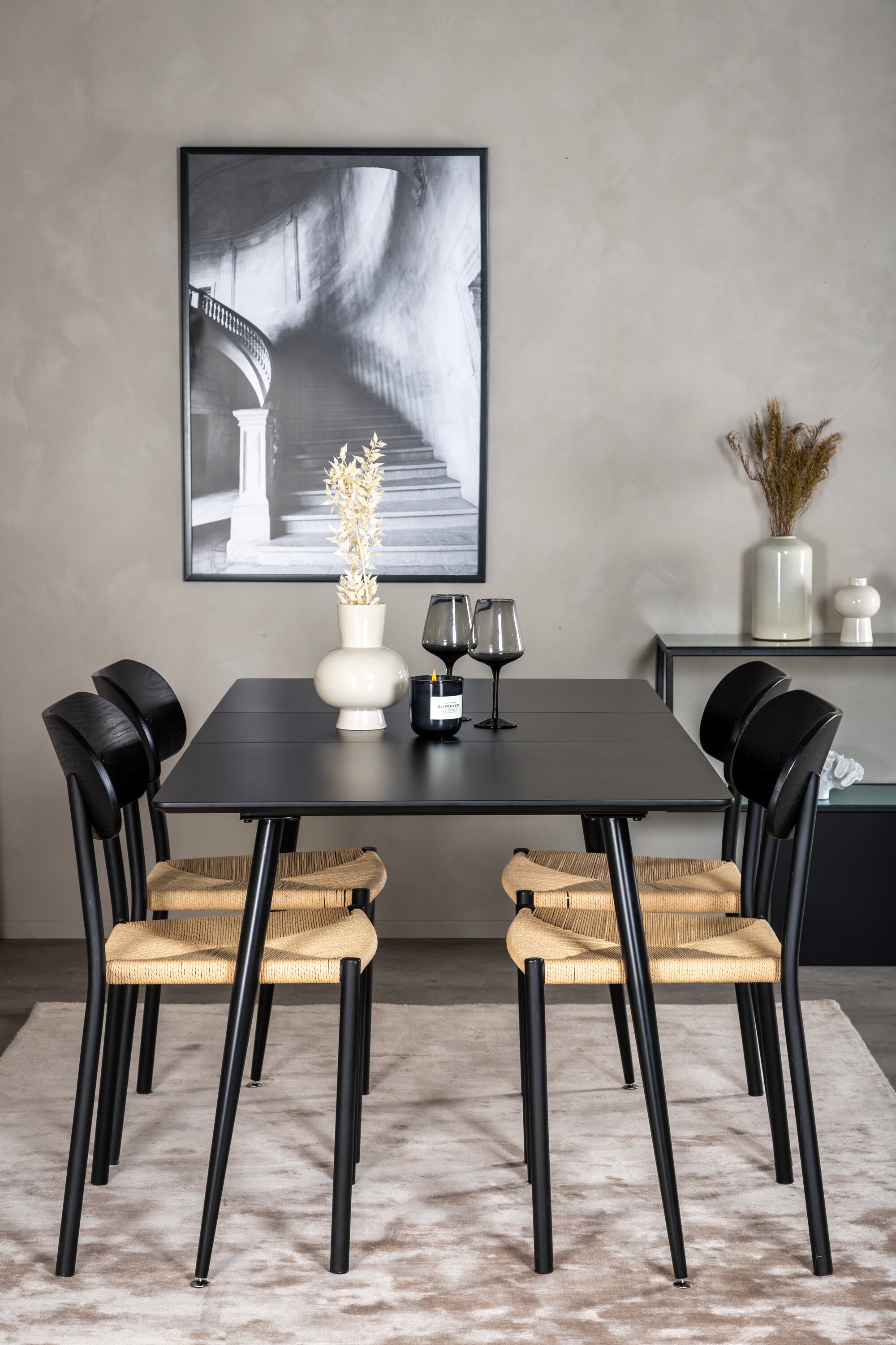 Skupina jídel v moderním a stylovém designu. Jídelní stůl je filtrovaný a jídelní židle Polly jsou dokonalou kombinací do srdce domova, která se pravděpodobně hodí stejně dobře k vašim potřebám jako k vašemu jinému interiéru.