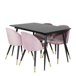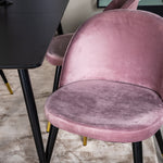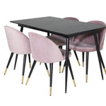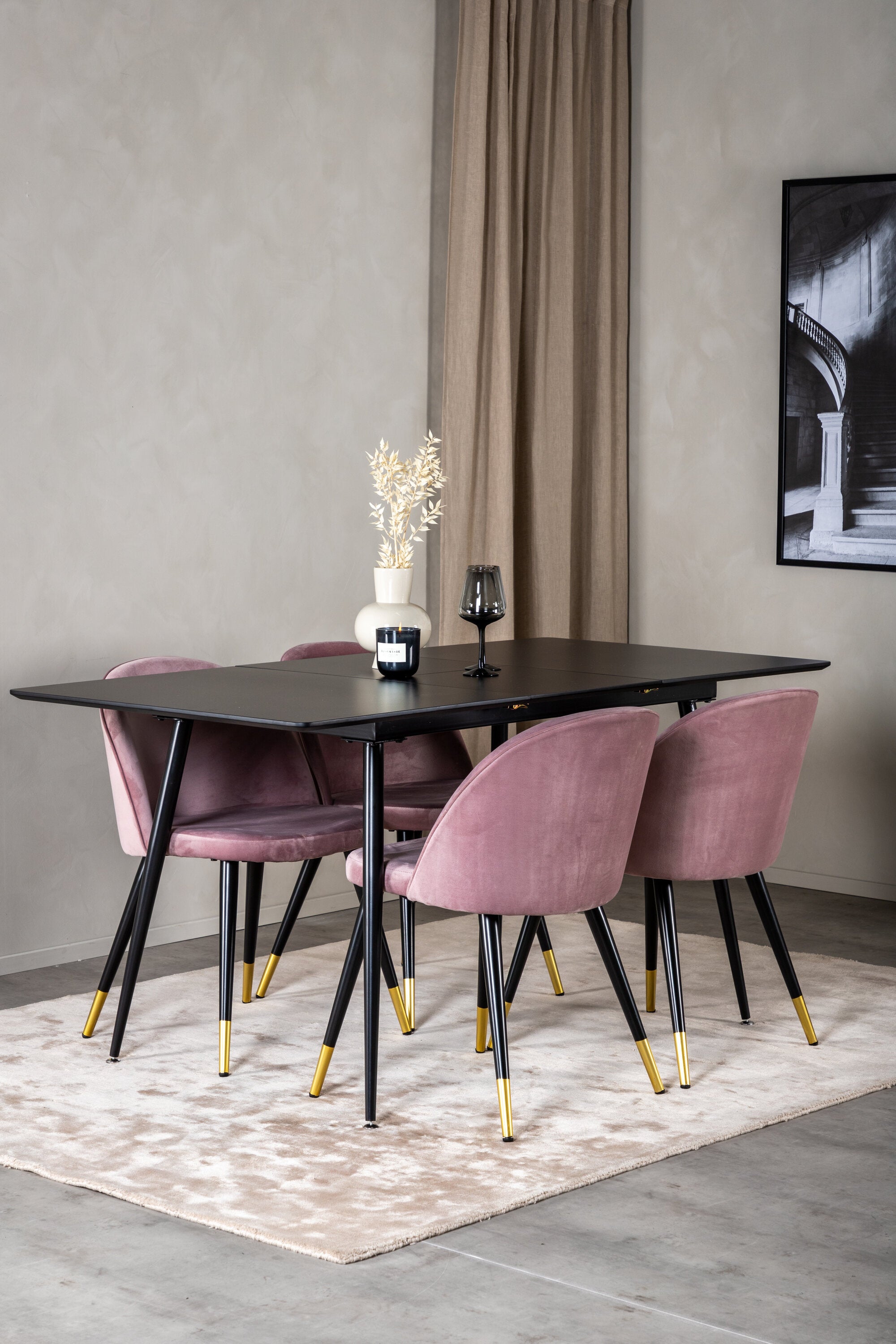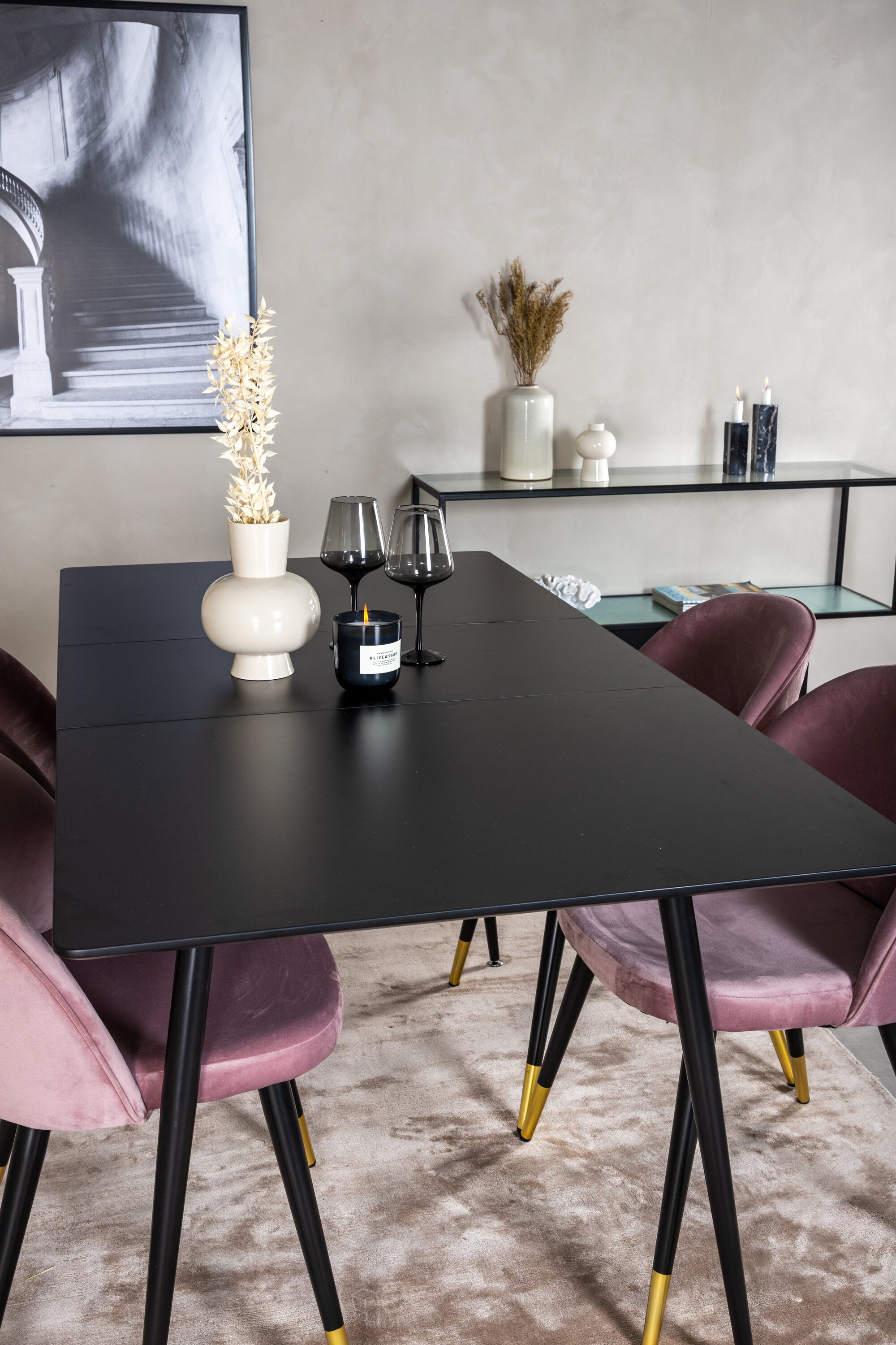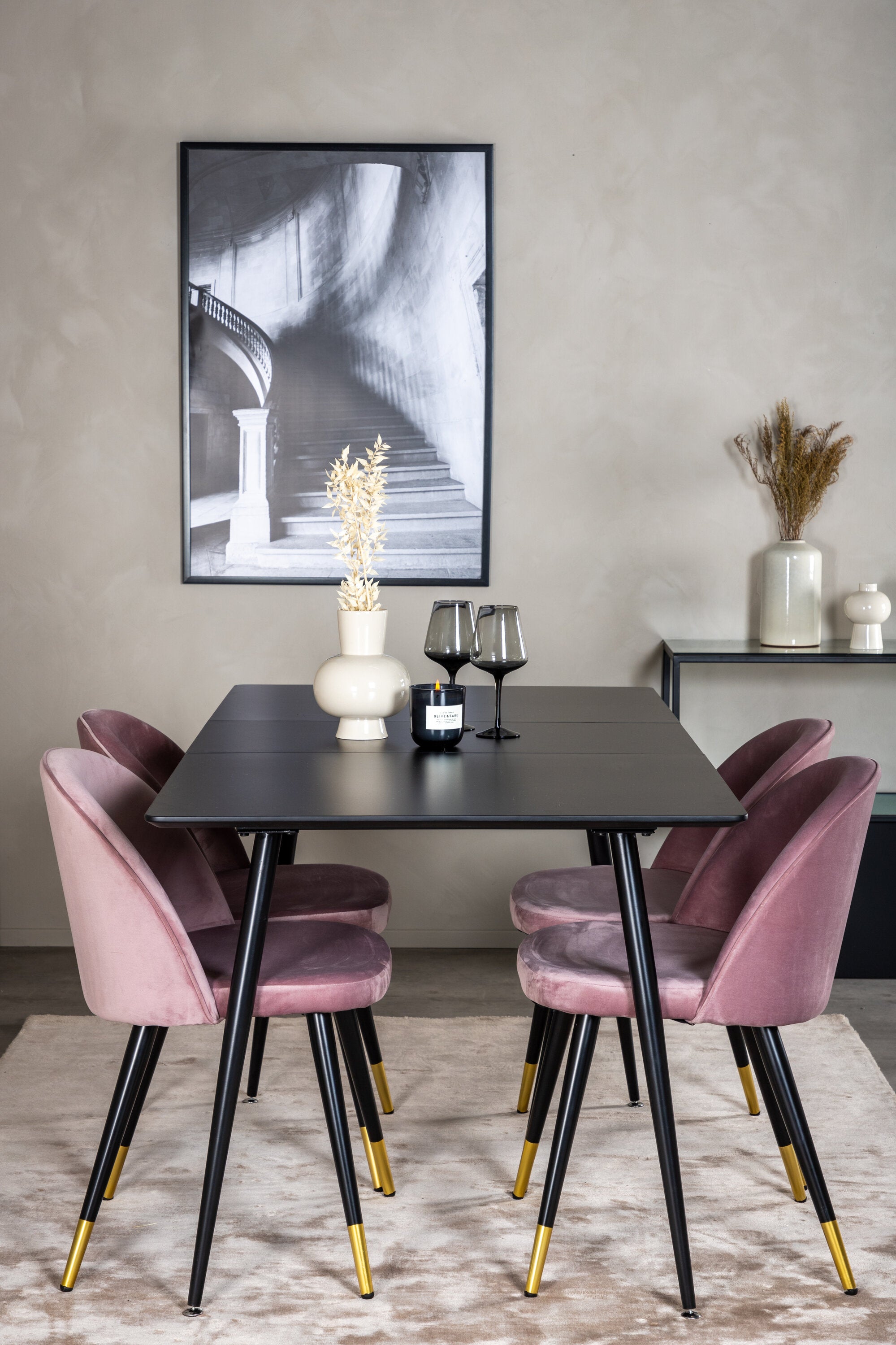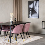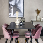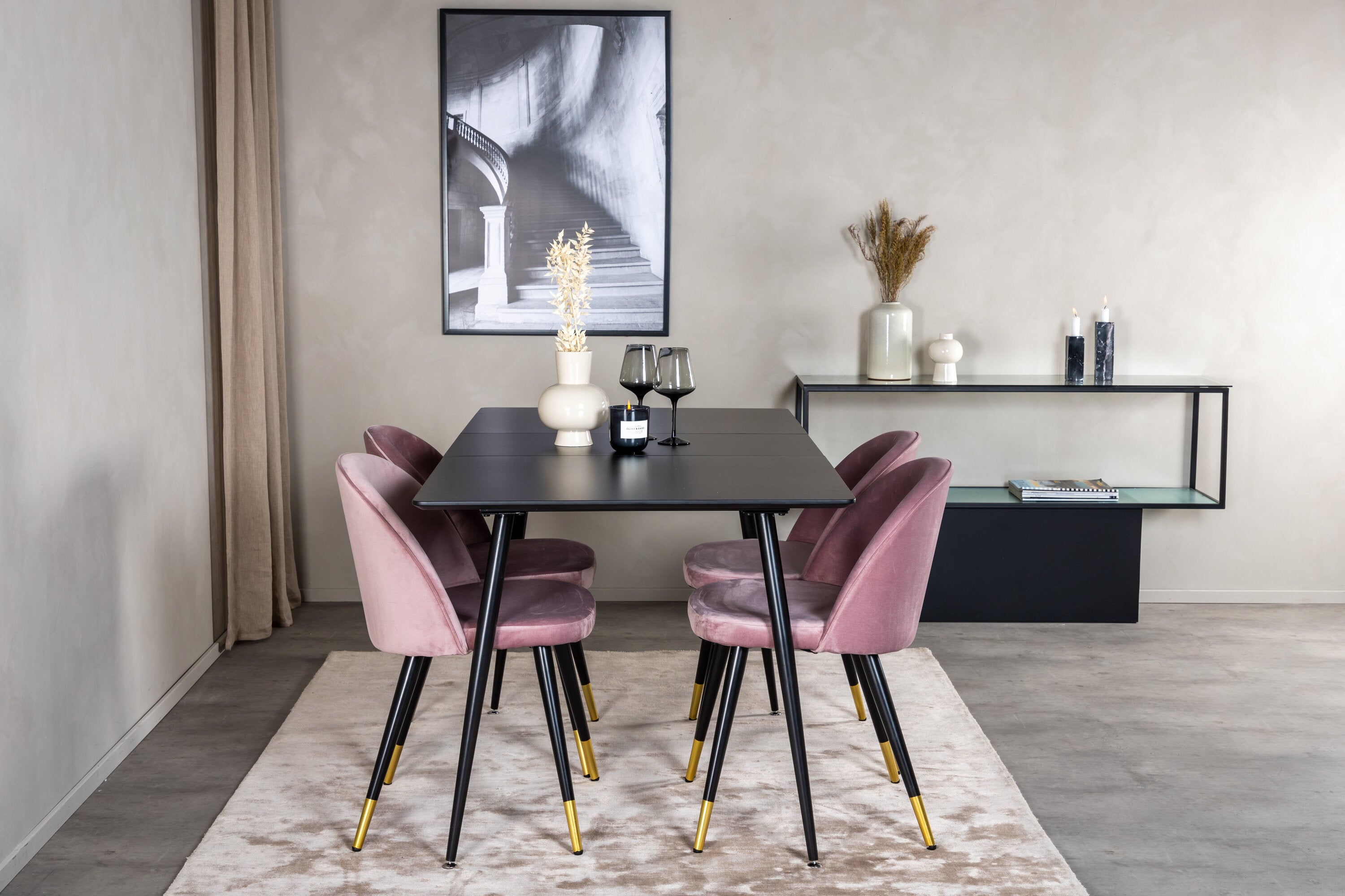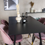 Kombinace různých barev a různých materiálů má obvykle velký úspěch. S naším filtrem na jídelní stůl v černé barvě a našimi pompézními růžovými jídelními židlemi ze sametu ze série Velvet získáte kombinaci - moderní, útulnou a nadčasovou!