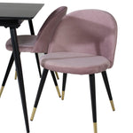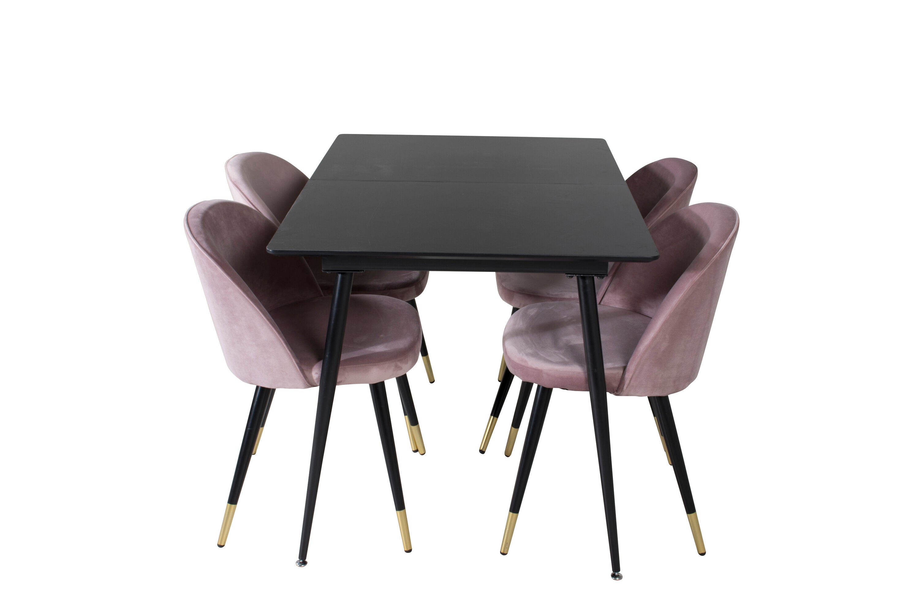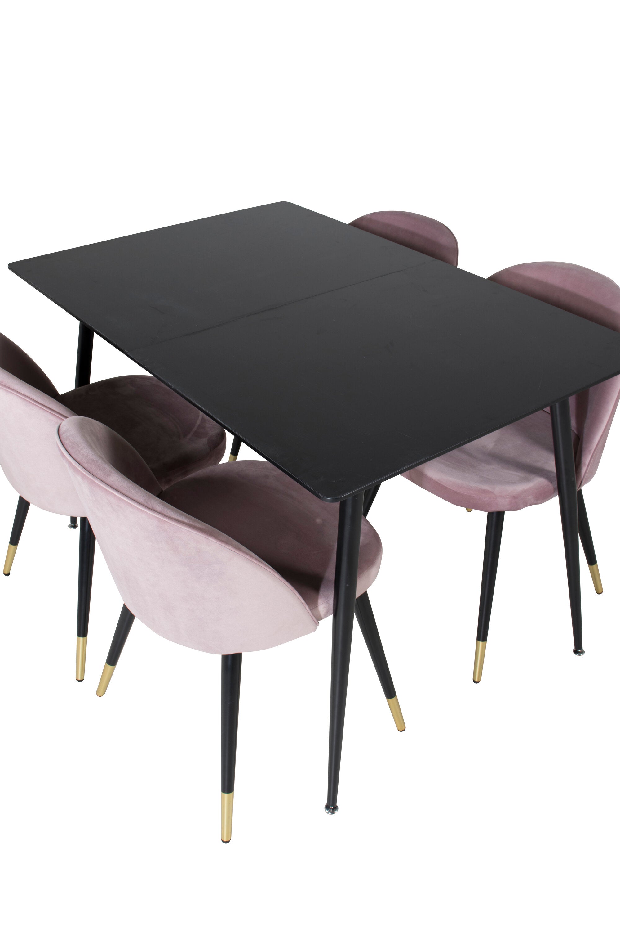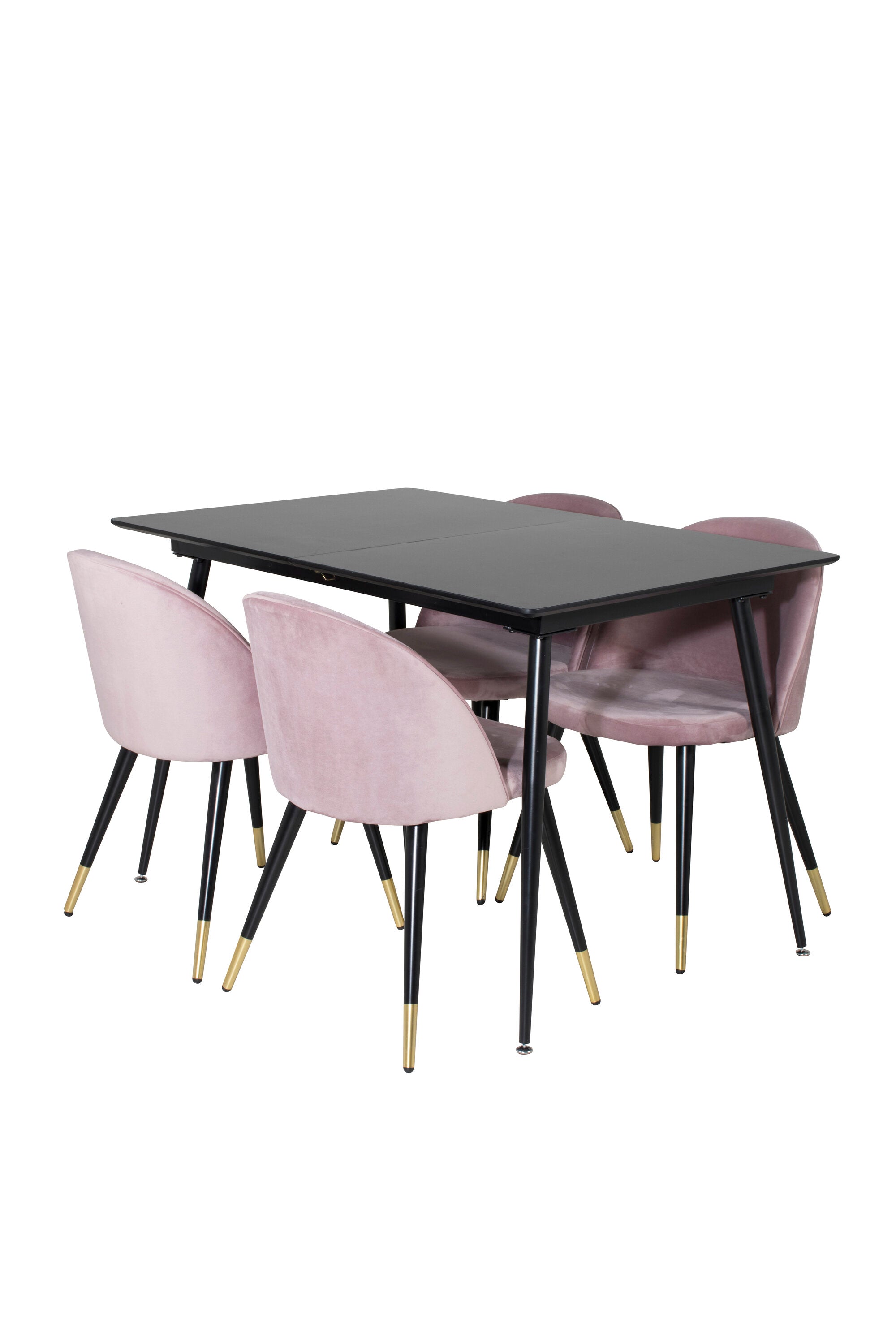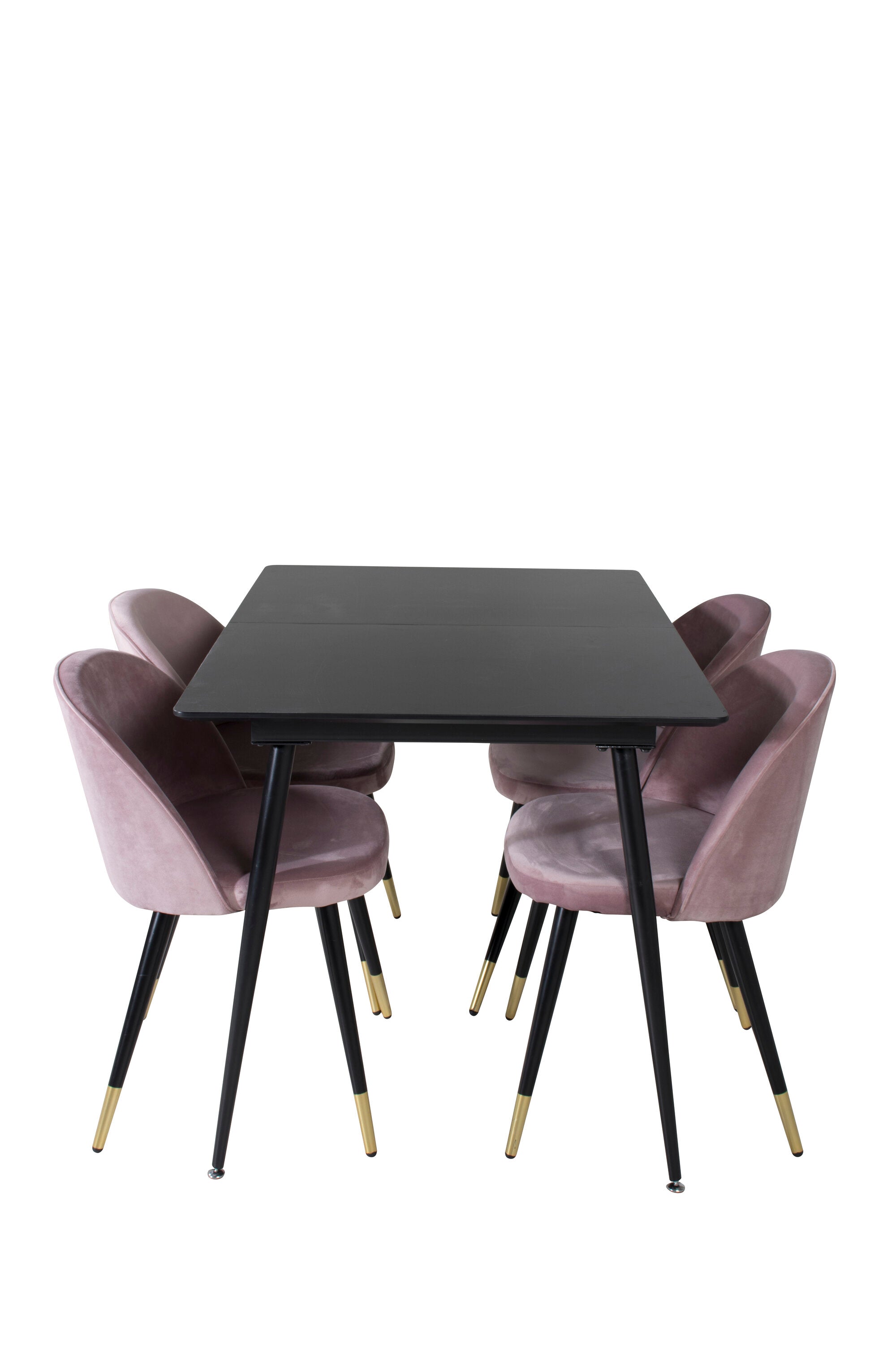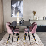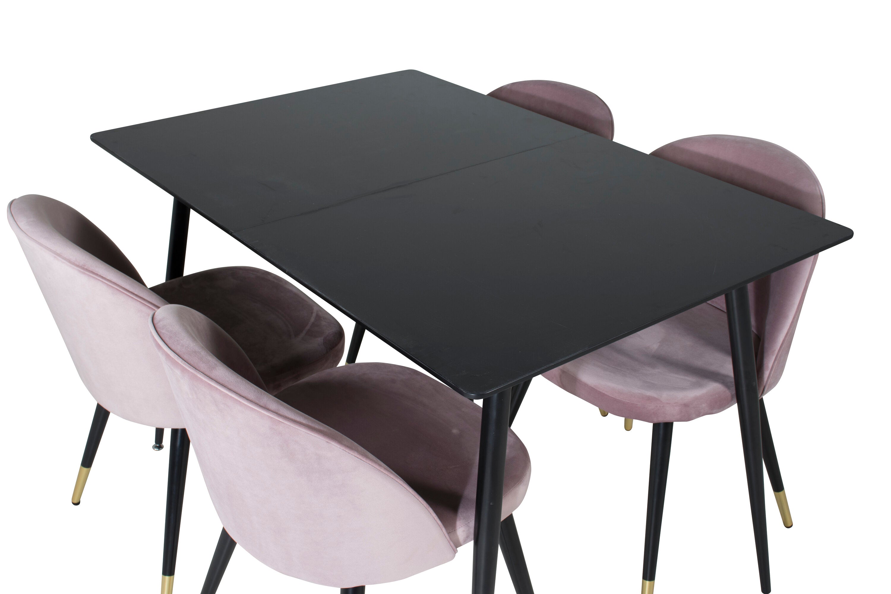 Kombinace různých barev a různých materiálů má obvykle velký úspěch. S naším filtrem na jídelní stůl v černé barvě a našimi pompézními růžovými jídelními židlemi ze sametu ze série Velvet získáte kombinaci - moderní, útulnou a nadčasovou!