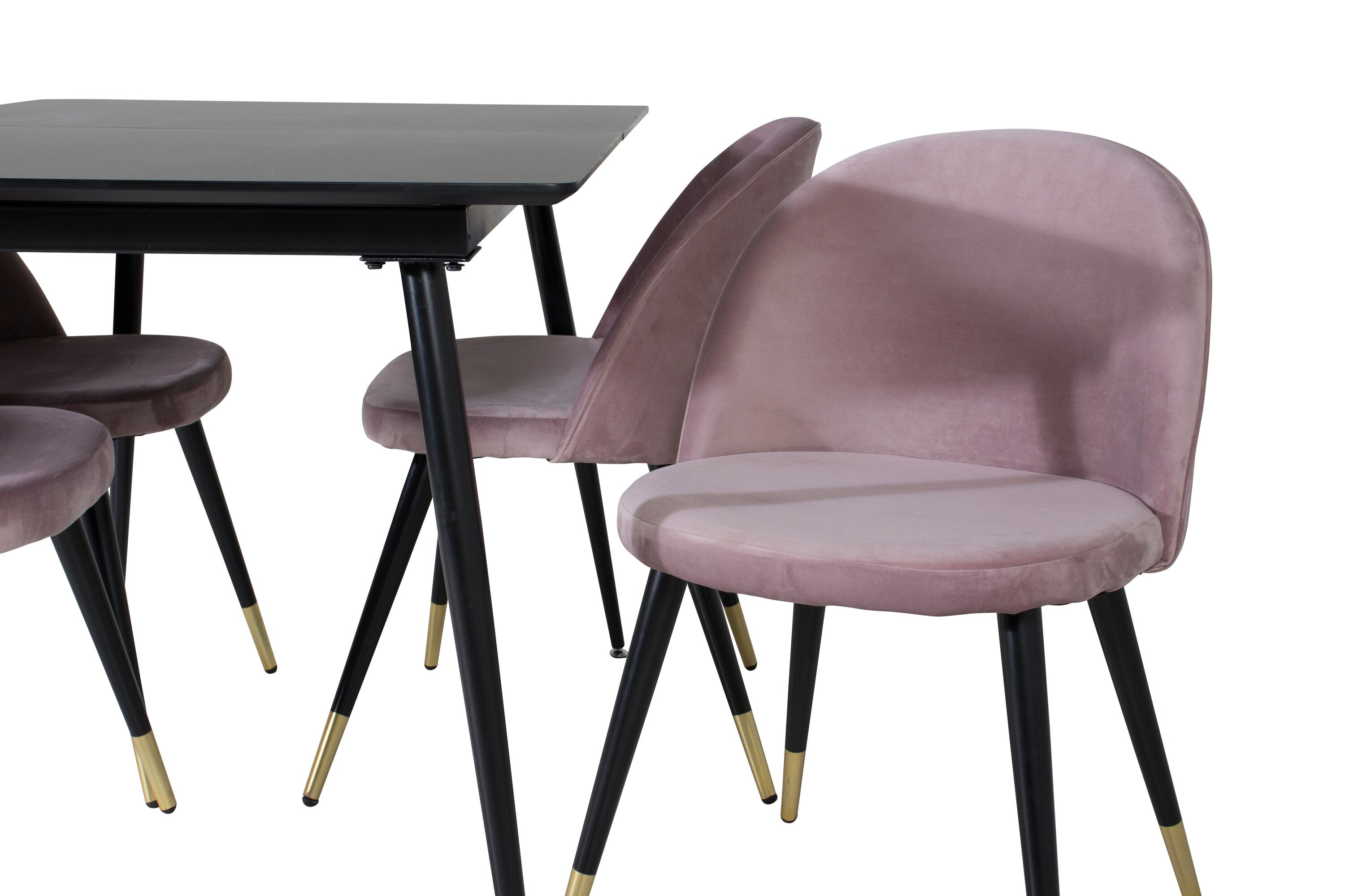 Prodlužovací stůl Silar - černý melamin / černé nohy + sametová jídelní židle mosaz - růžová / černá_4