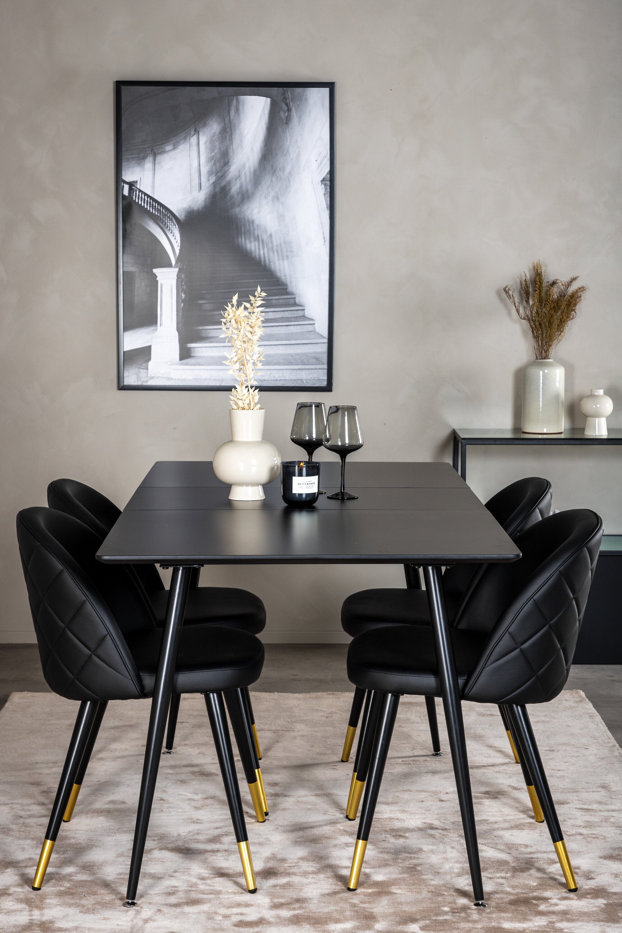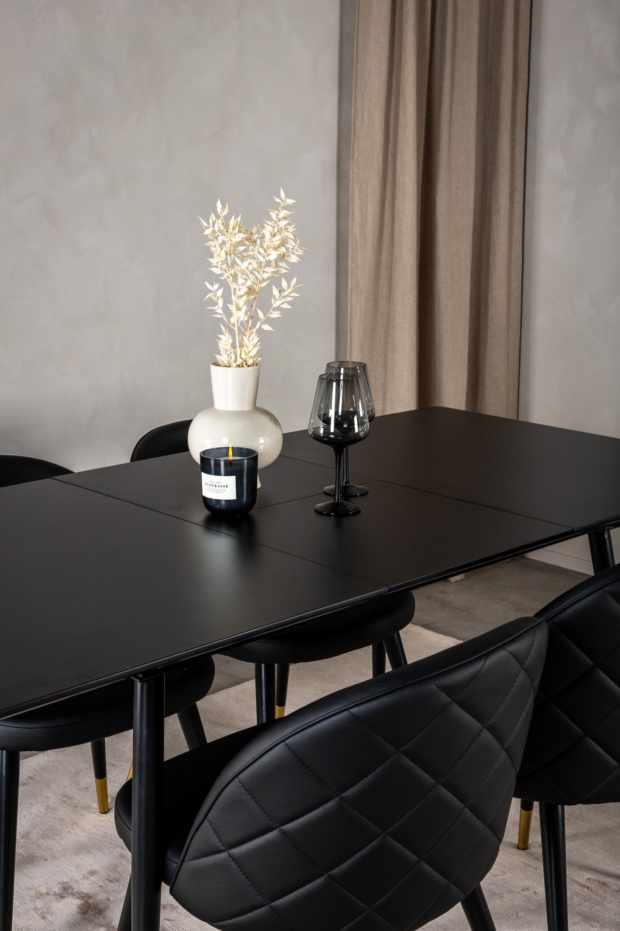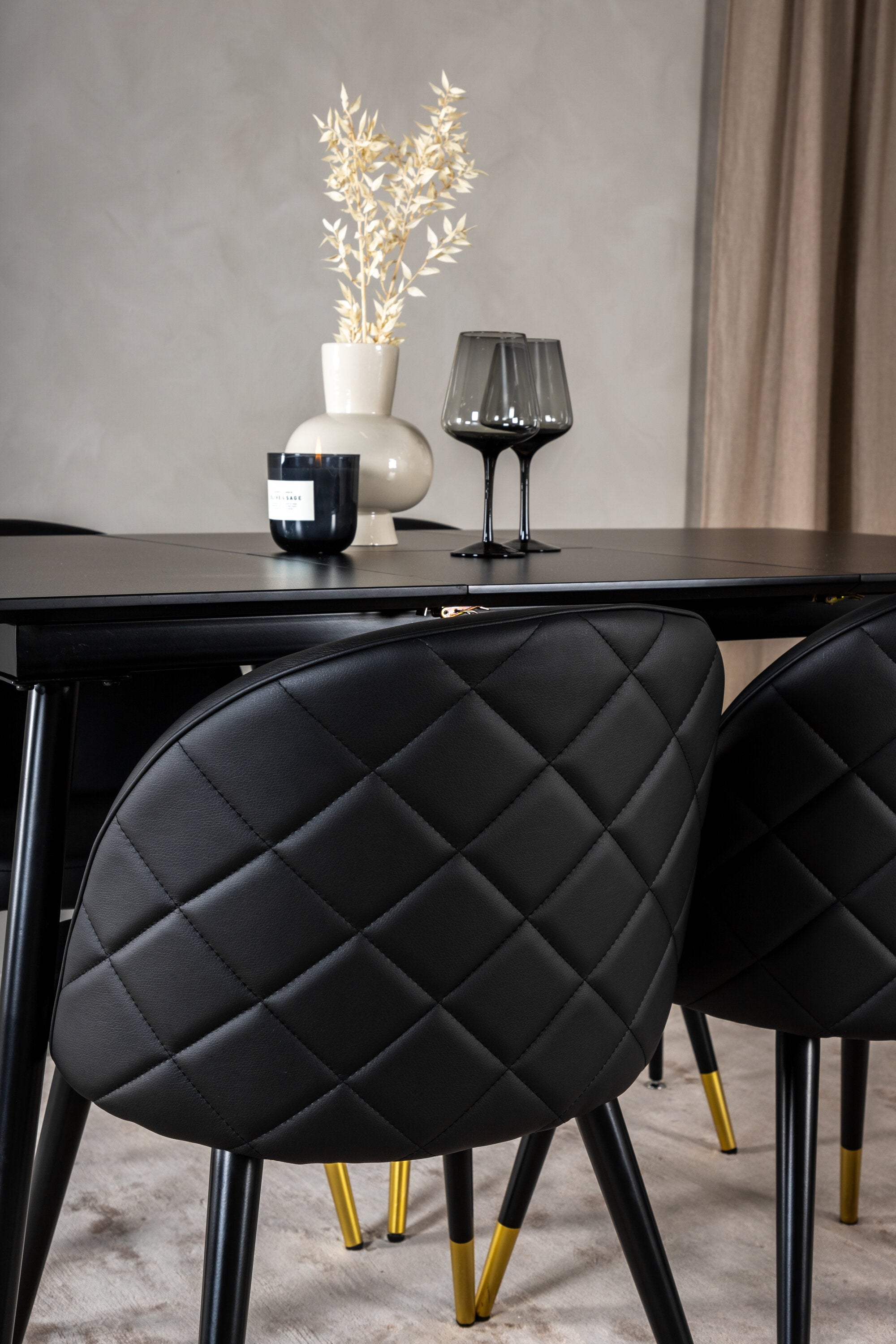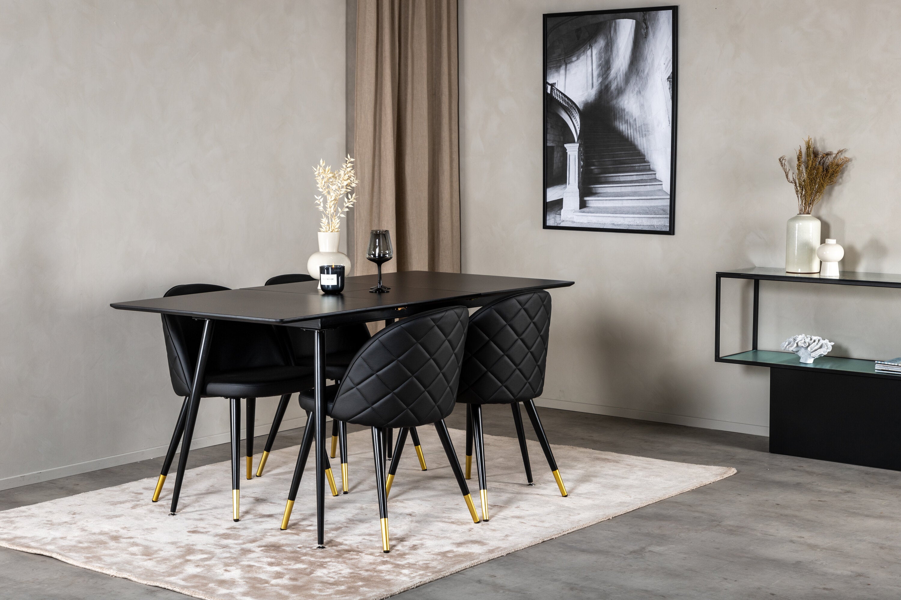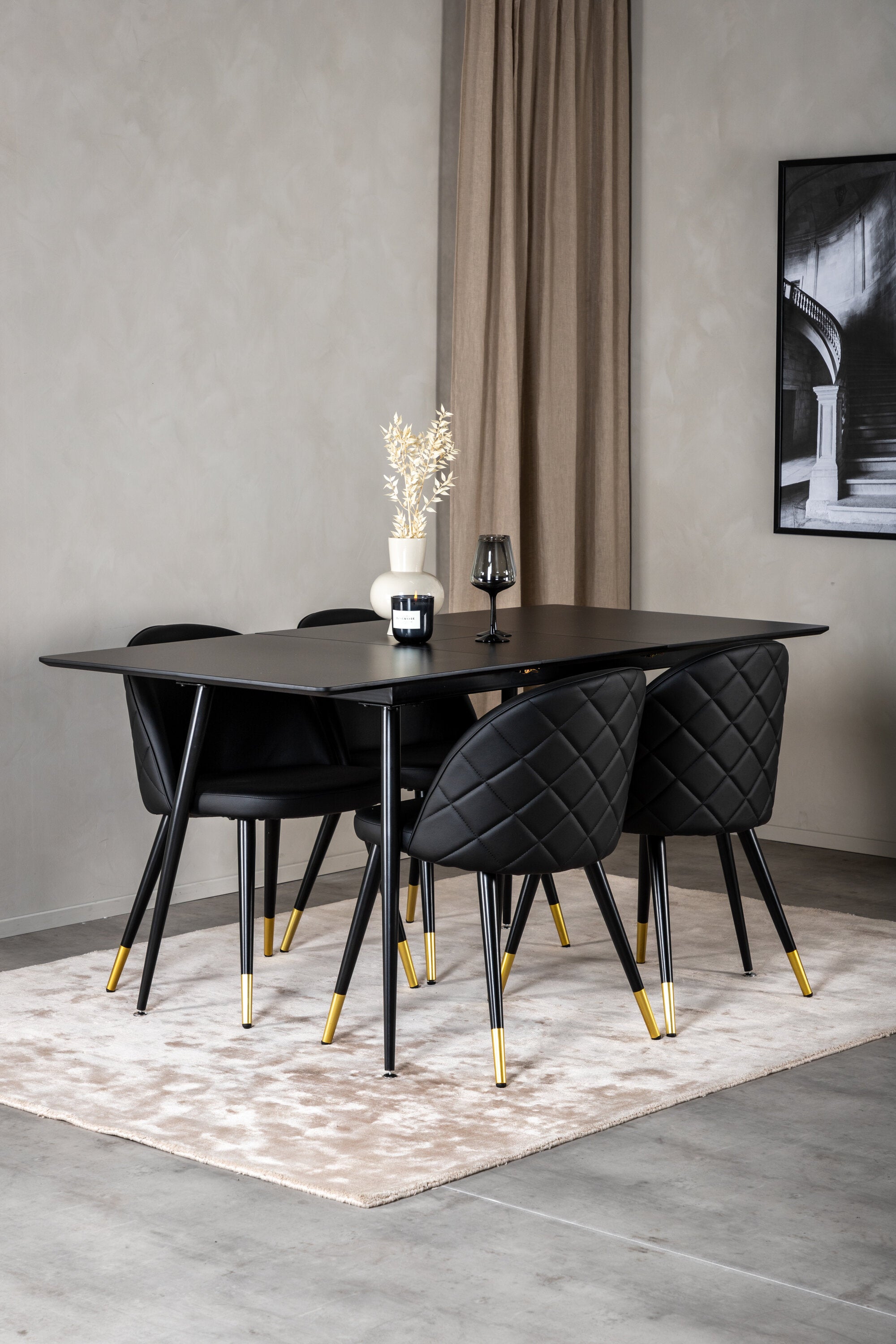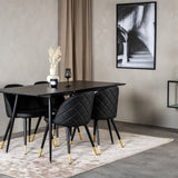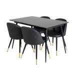 Moderní a útulné! Jídelní stůl je filtrován s jídelními židlemi Velvet vám poskytne jídelní skupinu, která touží po domově. Židle jsou robustní a dobře zvětšené s luxusními zlatými detaily ve spodní části - zde můžete dlouho sedět a užívat si společnost dobrých přátel!