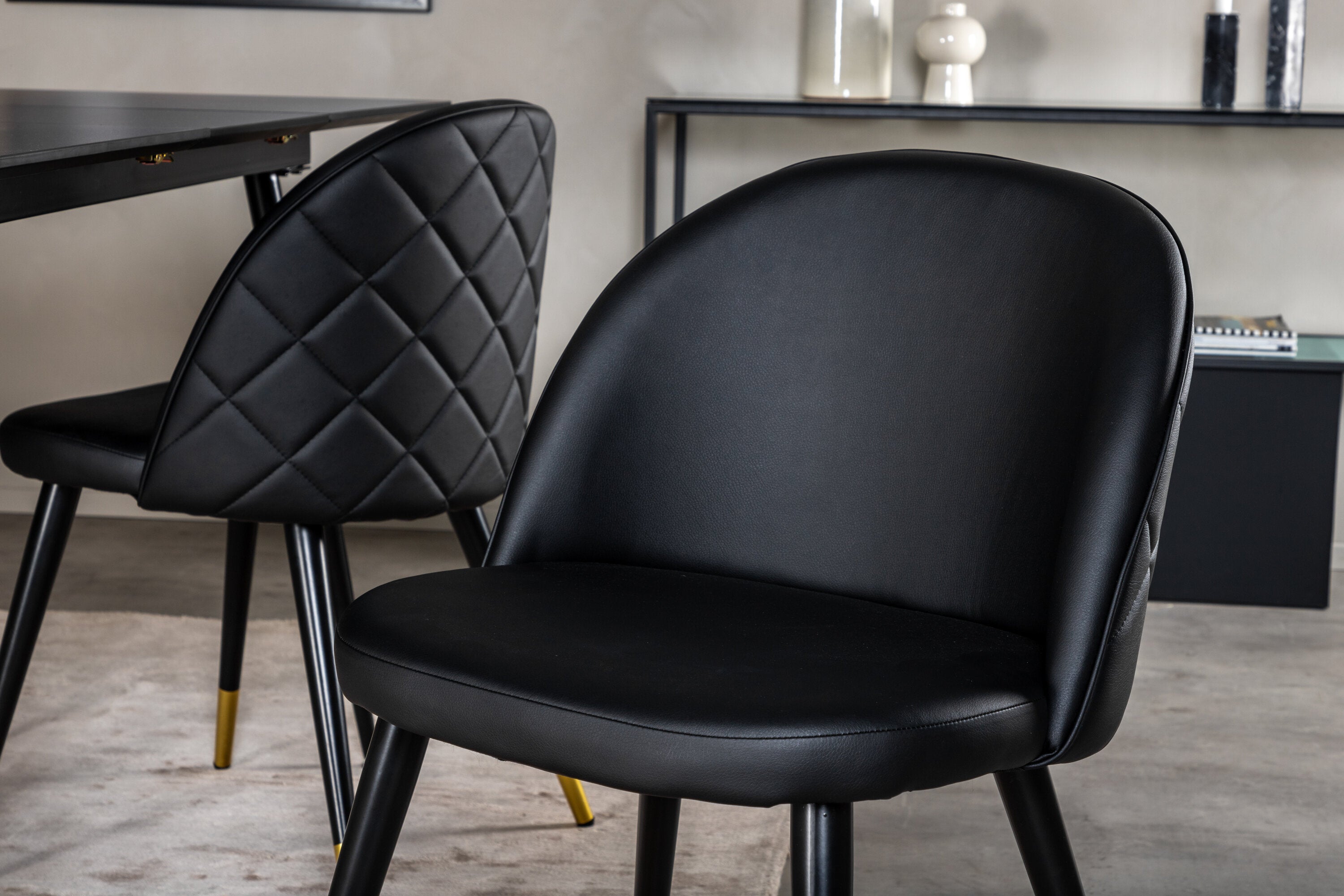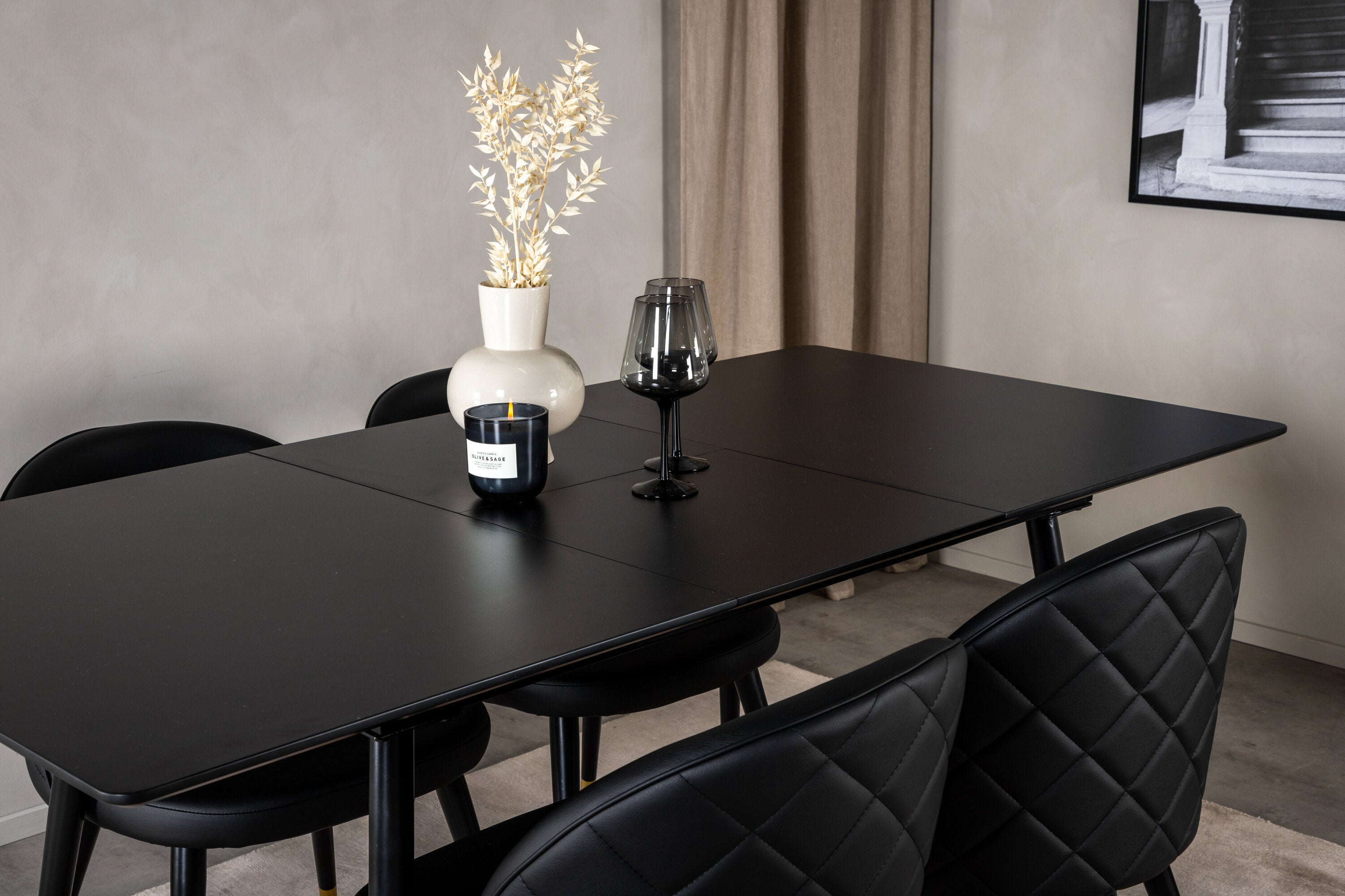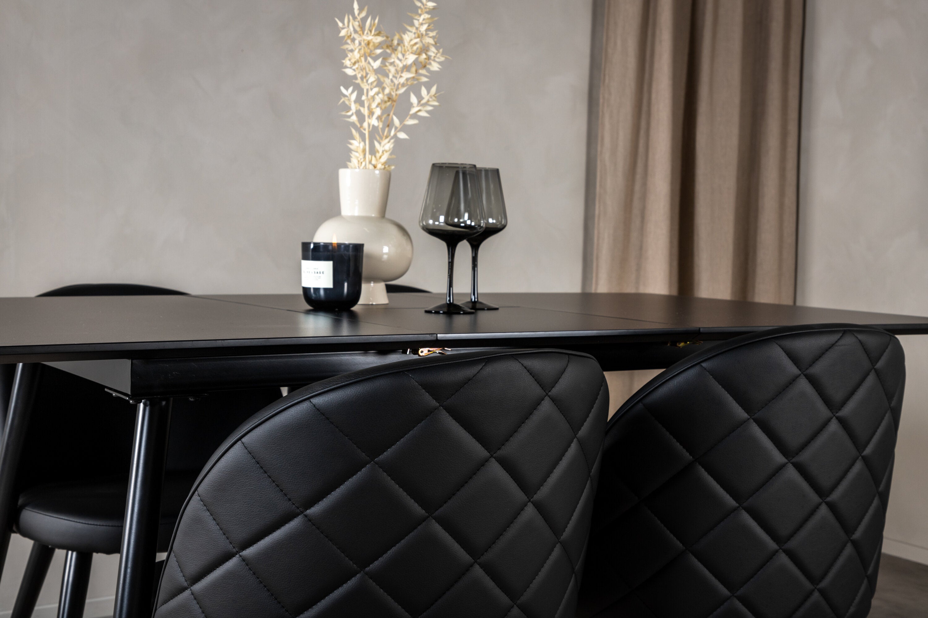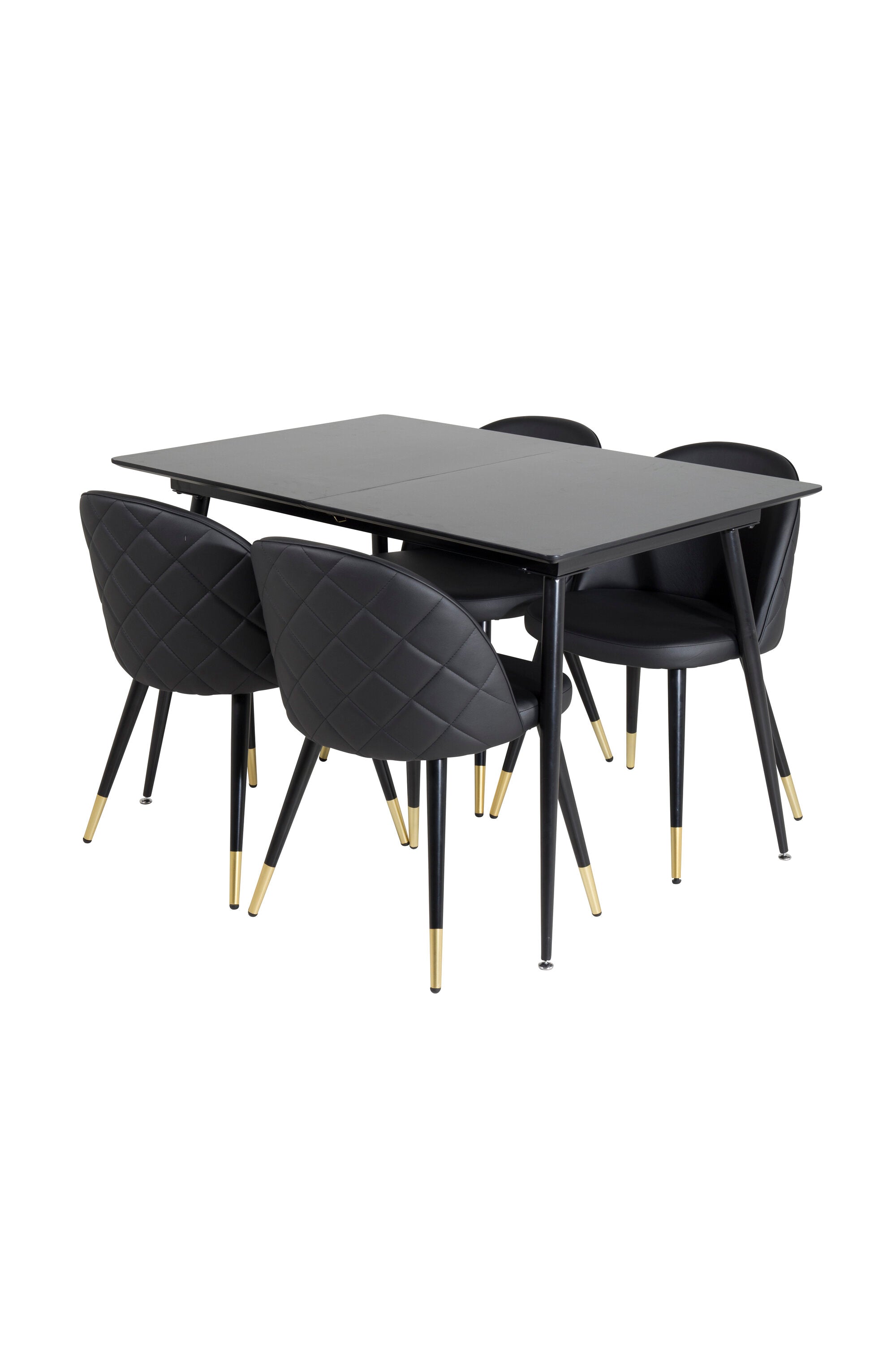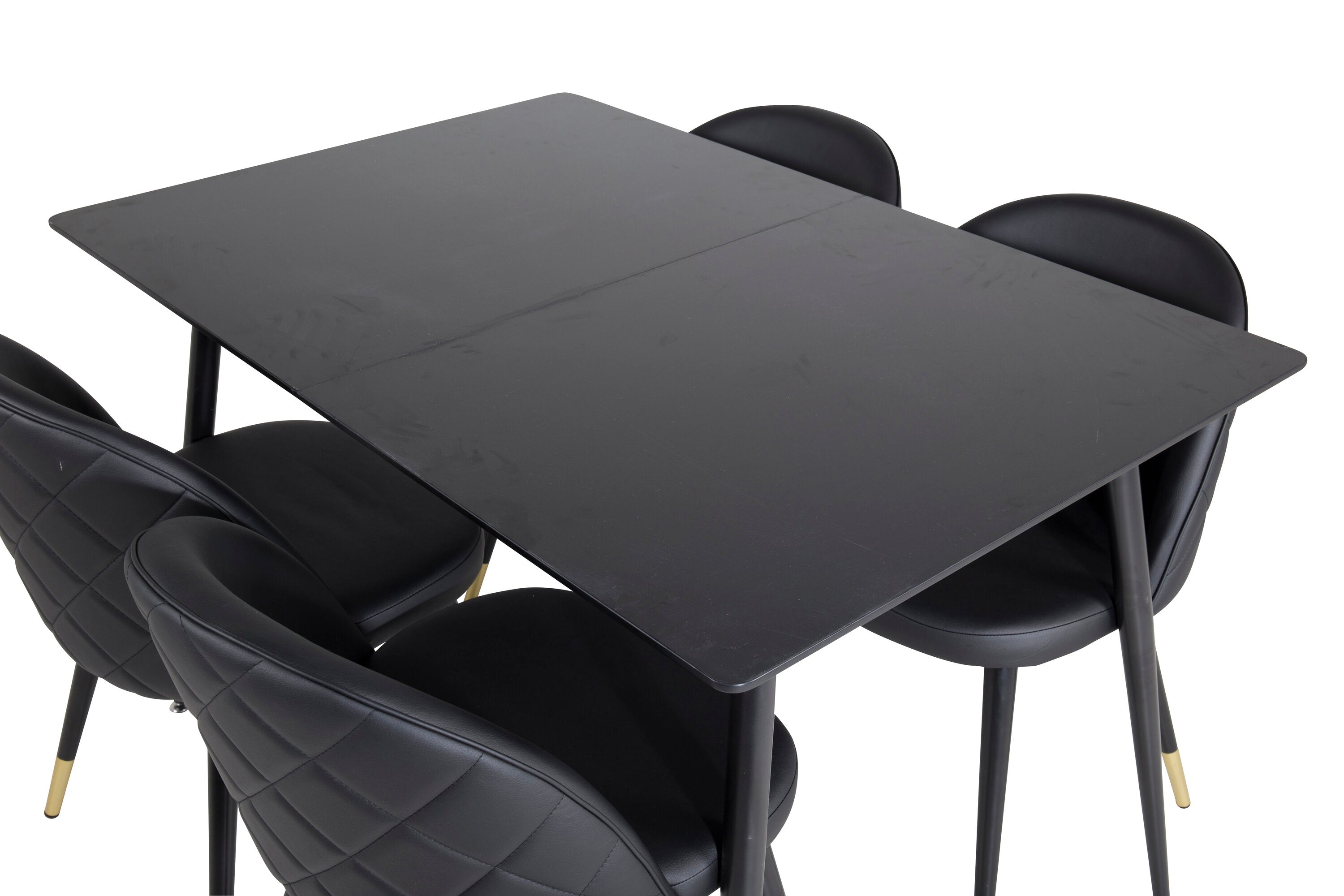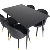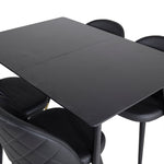Prodlužovací stůl Silar - černý melamin / černé nohy + sametová jídelní židle š. Stiches - PU - Black / Black_4